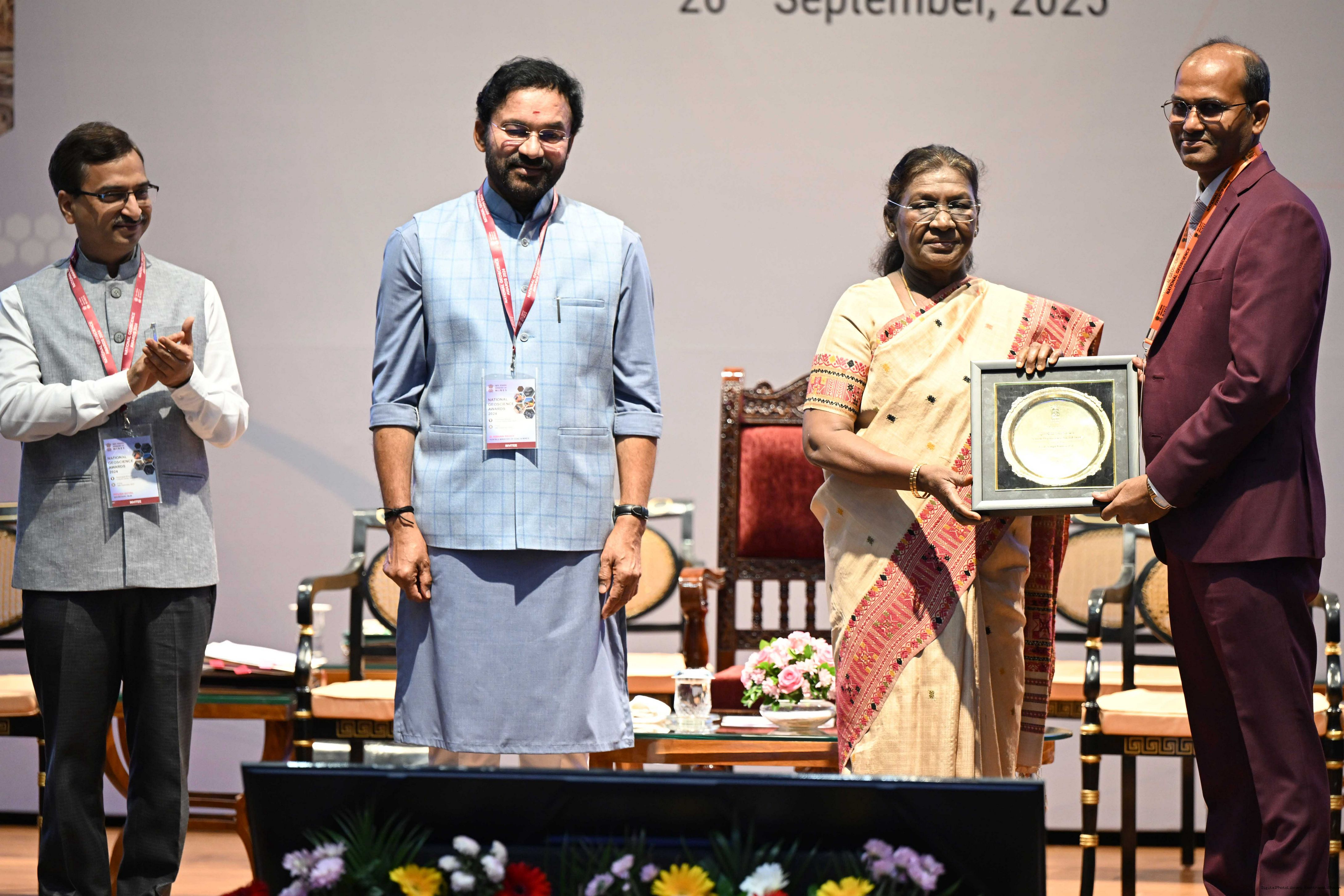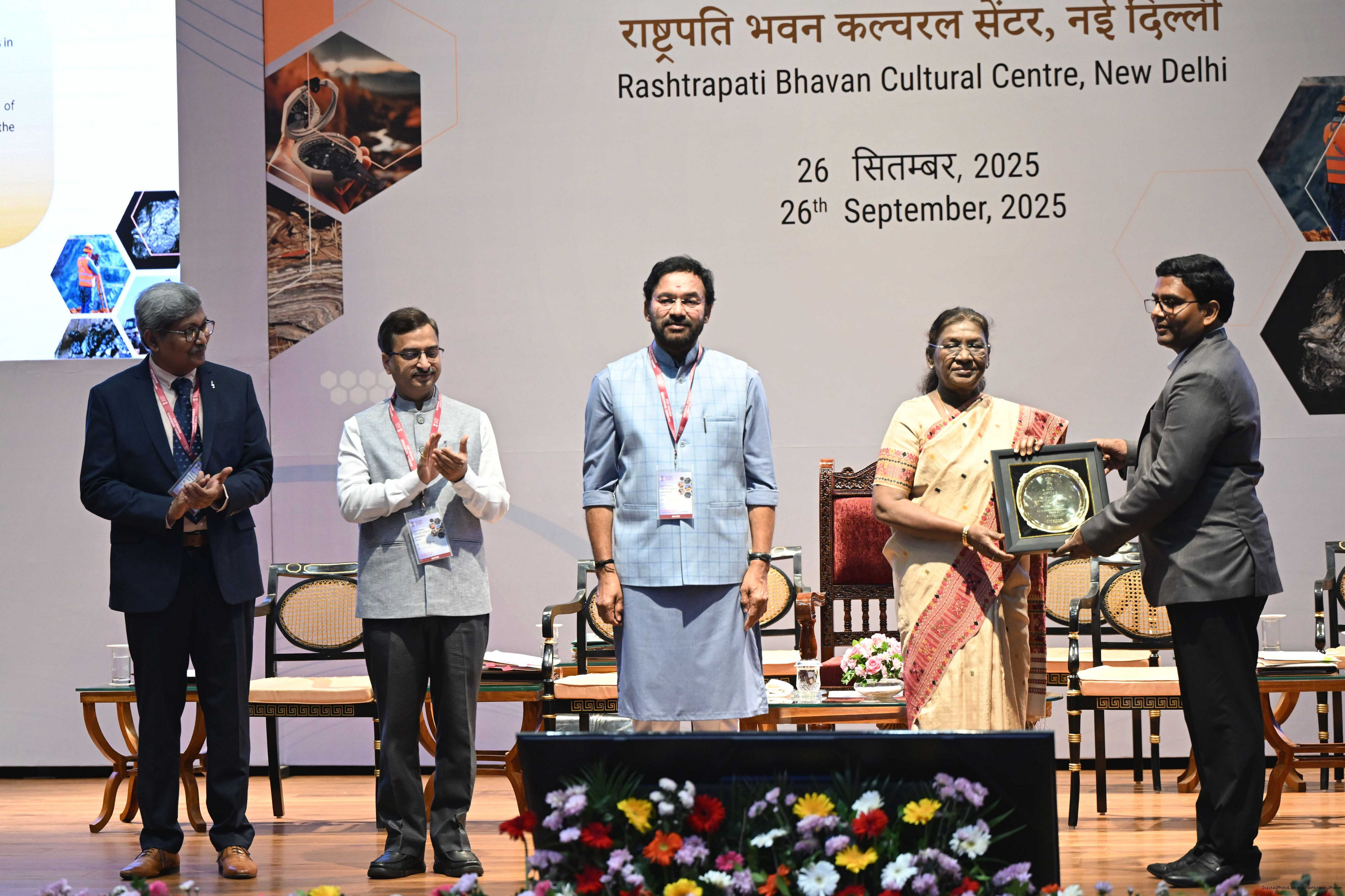 | Caption: | The President of India, Smt Droupadi Murmu, presented the National Geoscience Awards-2024 for outstanding contributions in the field of Geoscience at a ceremony held at Rashtrapati Bhavan Cultural Centre on September 26, 2025. |
