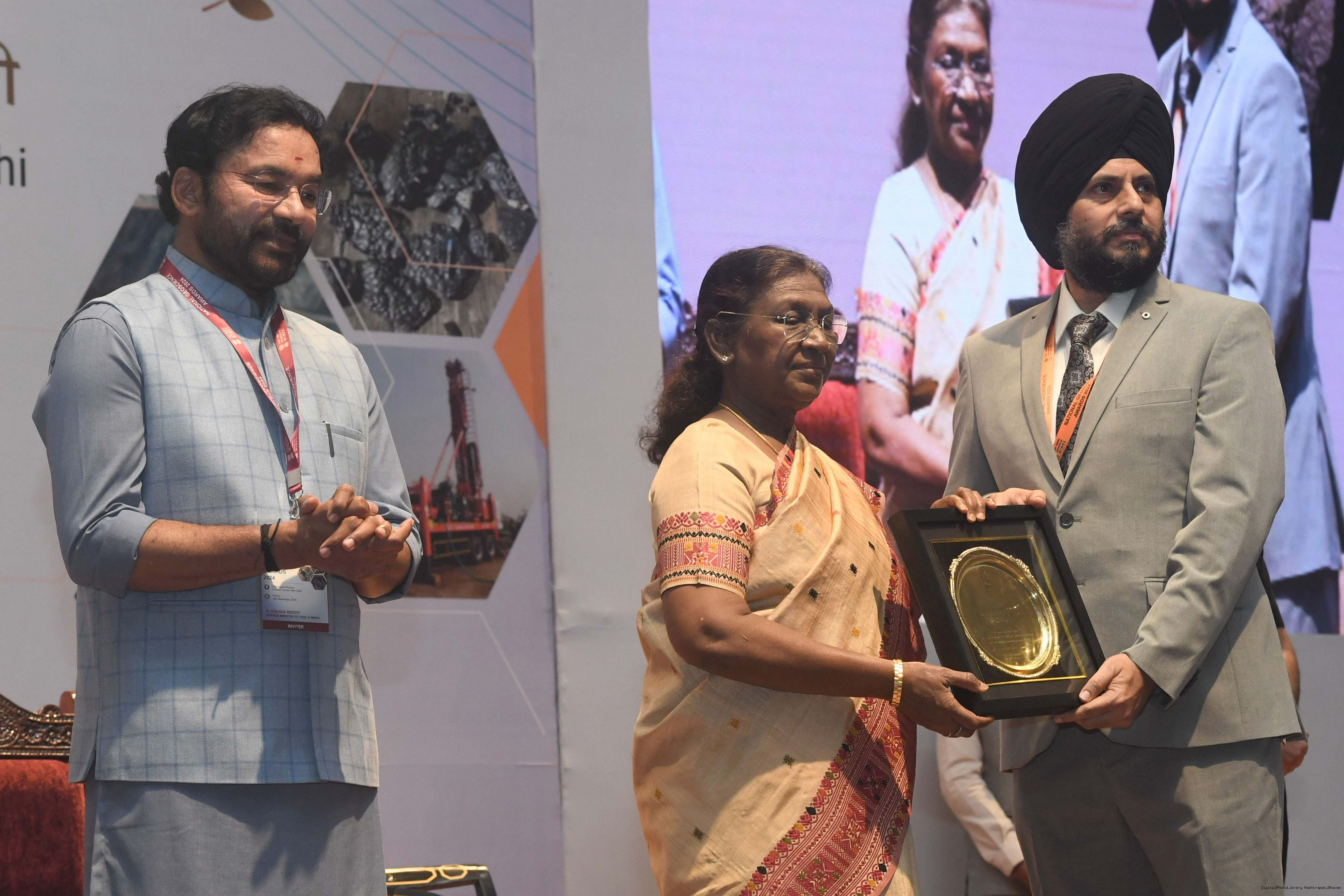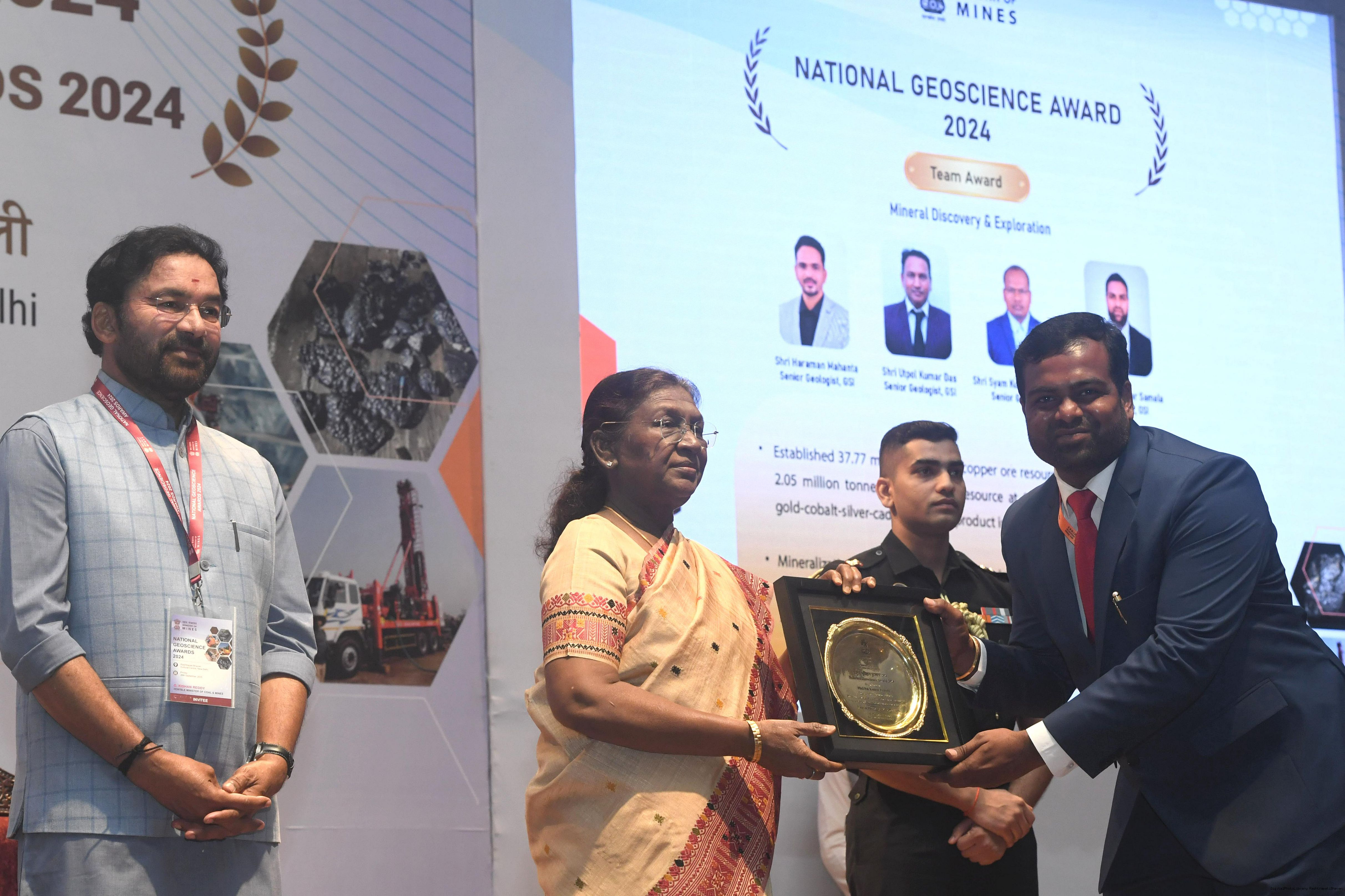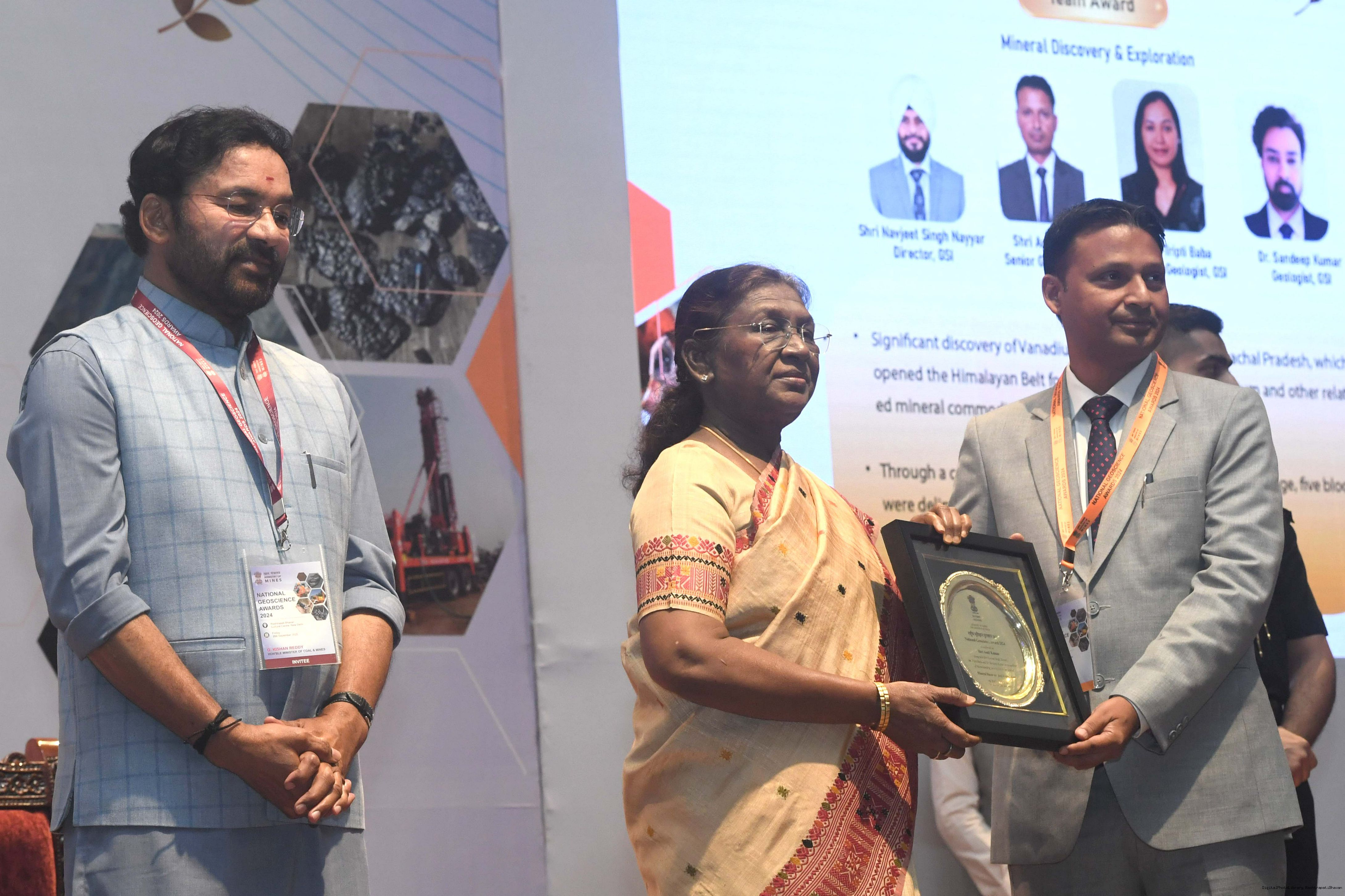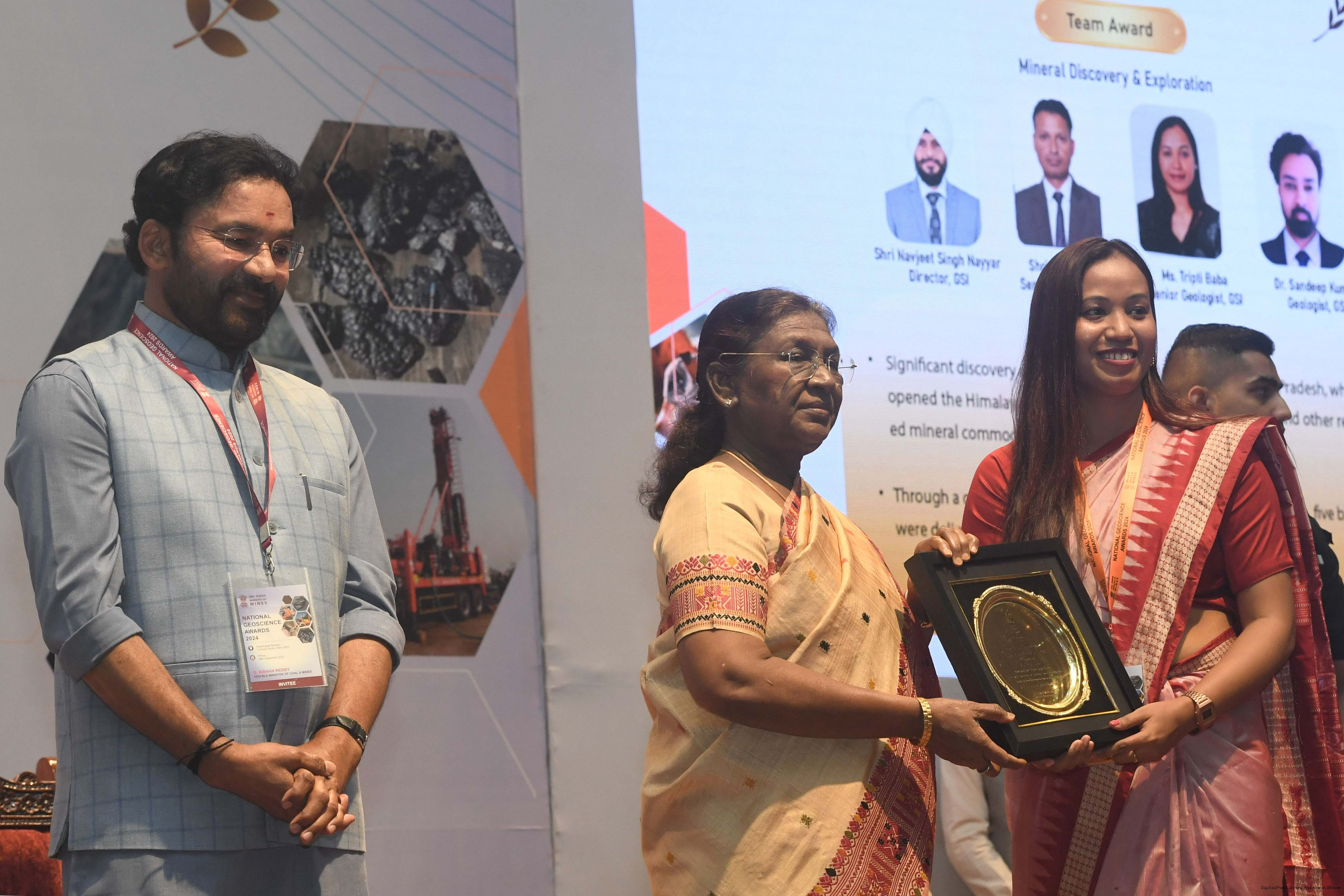 | Caption: | The President of India, Smt Droupadi Murmu, presented the National Geoscience Awards-2024 for outstanding contributions in the field of Geoscience at a ceremony held at Rashtrapati Bhavan Cultural Centre on September 26, 2025. |