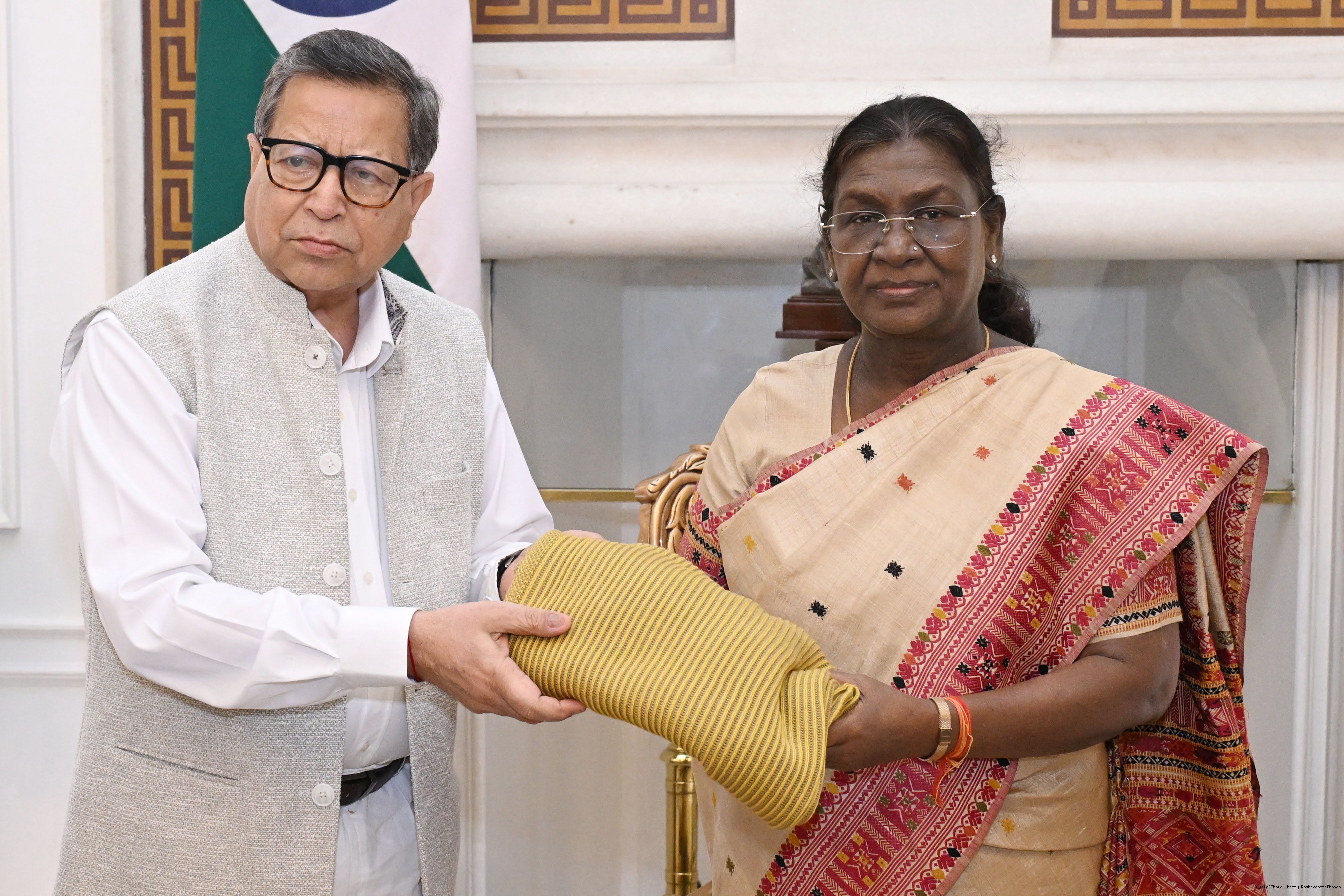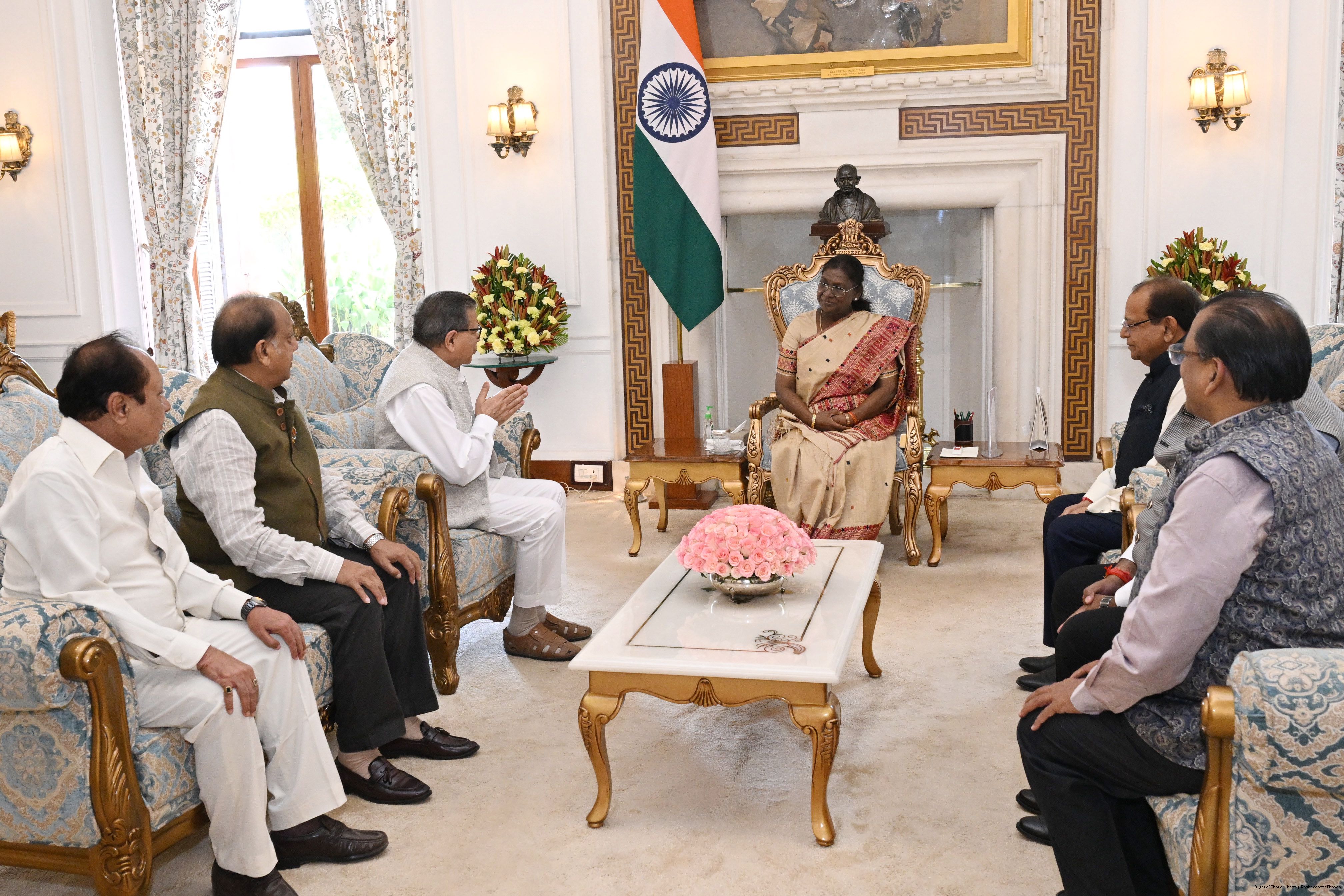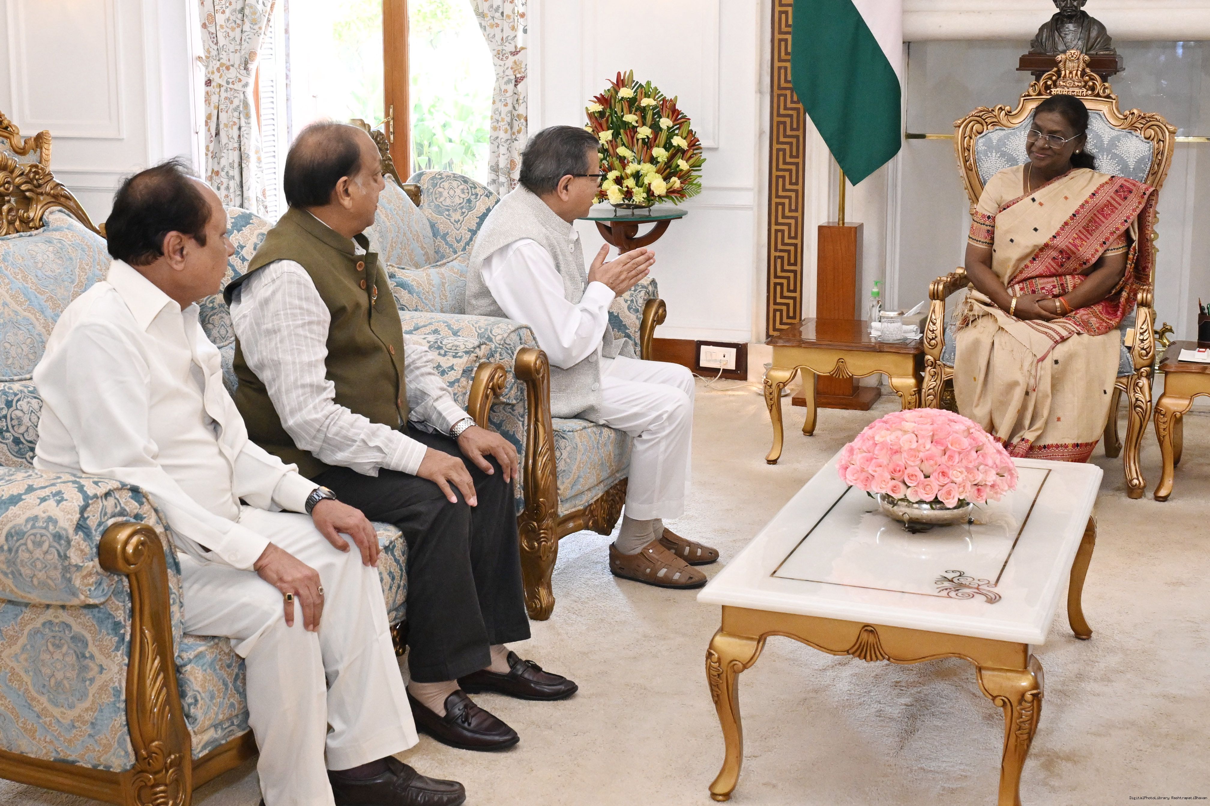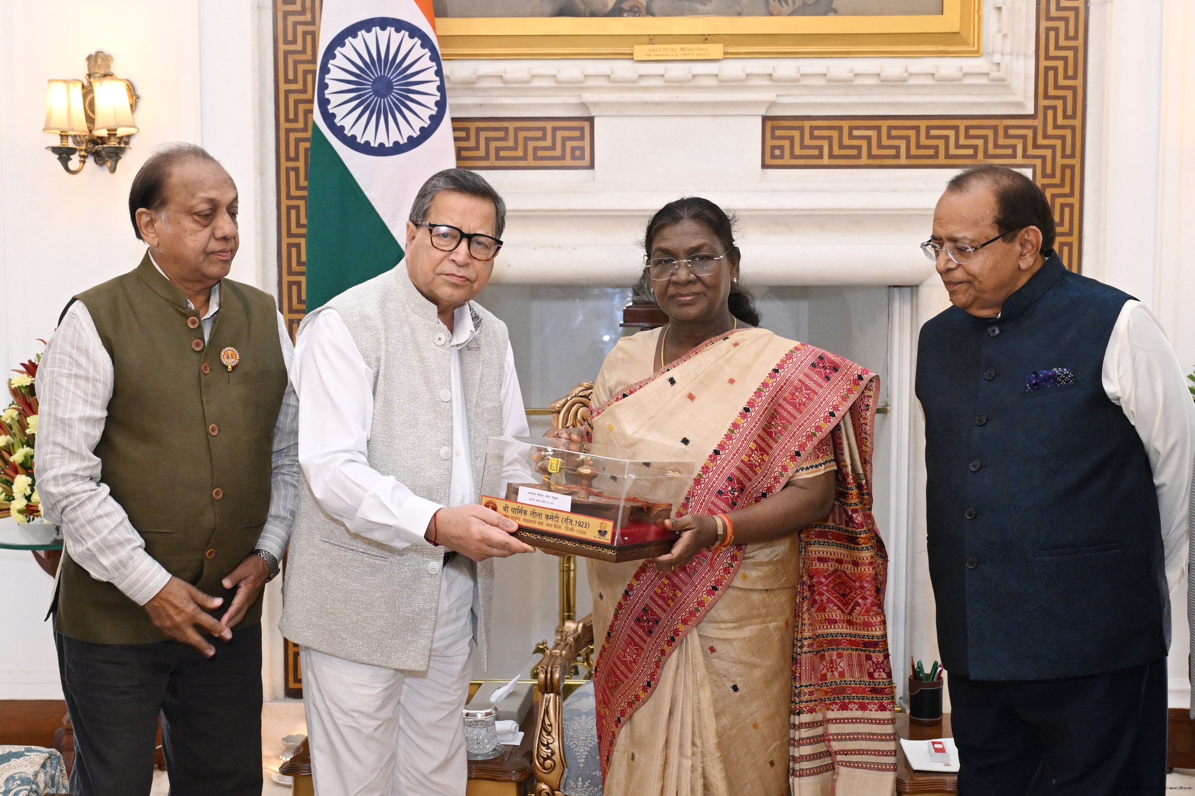 | Caption: | Shri Dhiraj Dhar Gupta, General Secretary, Shri Dharmic Leela Committee along with others meeting with the President of India, Smt. Droupadi Murmu at Rashtrapati Bhavan on September 26, 2025. |
