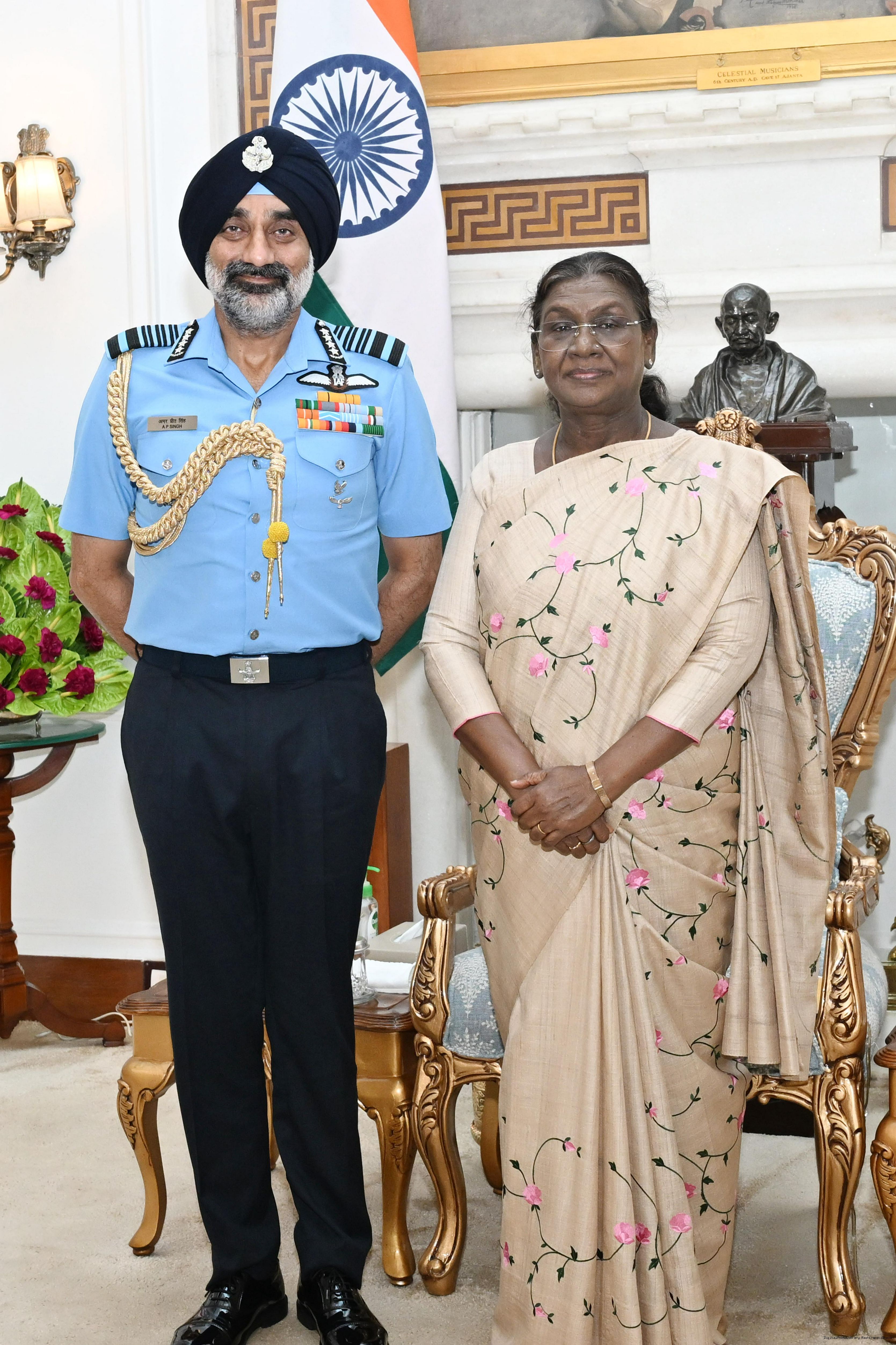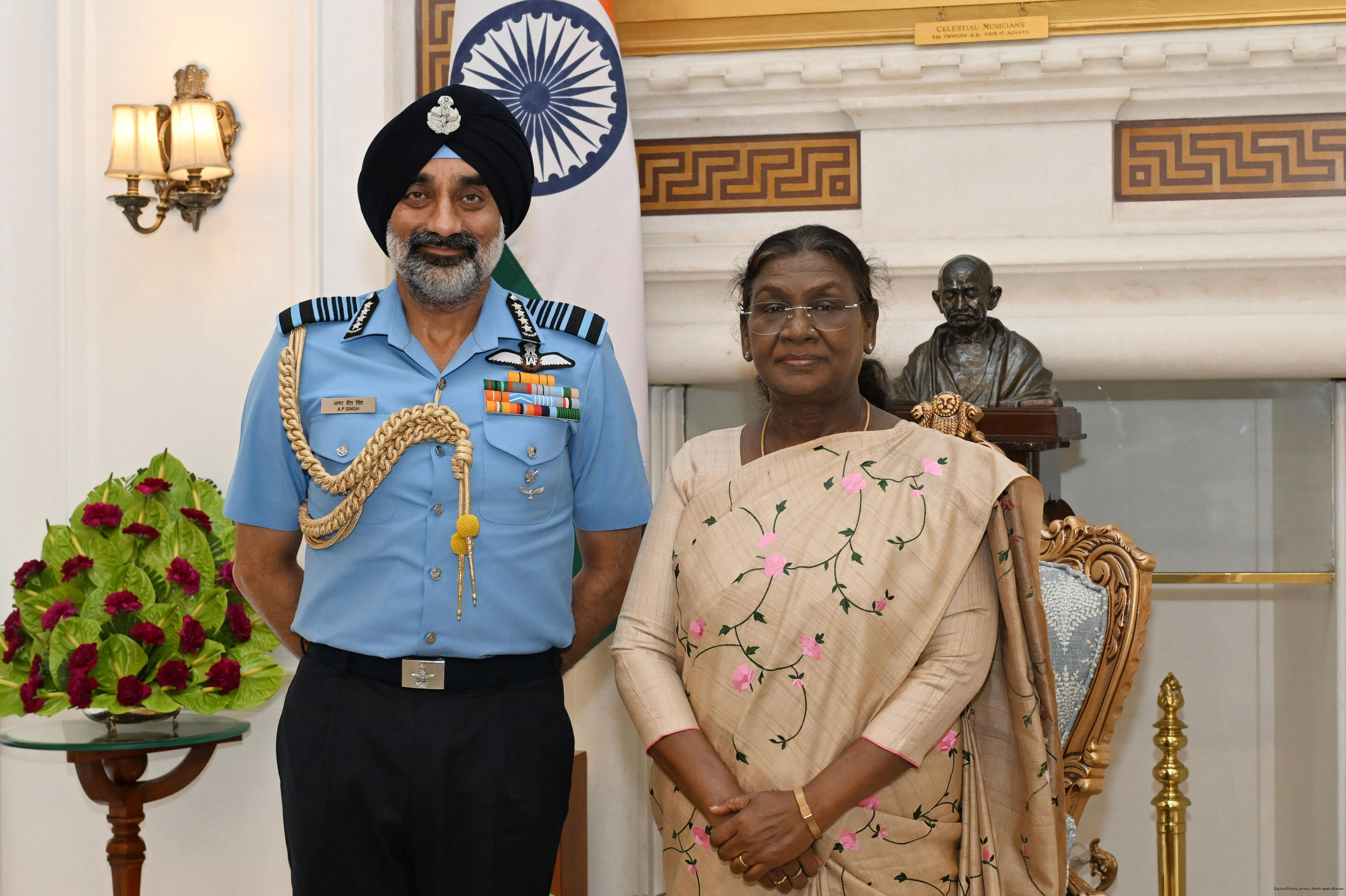 | Caption: | Air Chief Marshal AP Singh, Chief of the Air Staff, called on the President of India Smt. Droupadi Murmu at Rashtrapati Bhavan on September 29, 2025. |