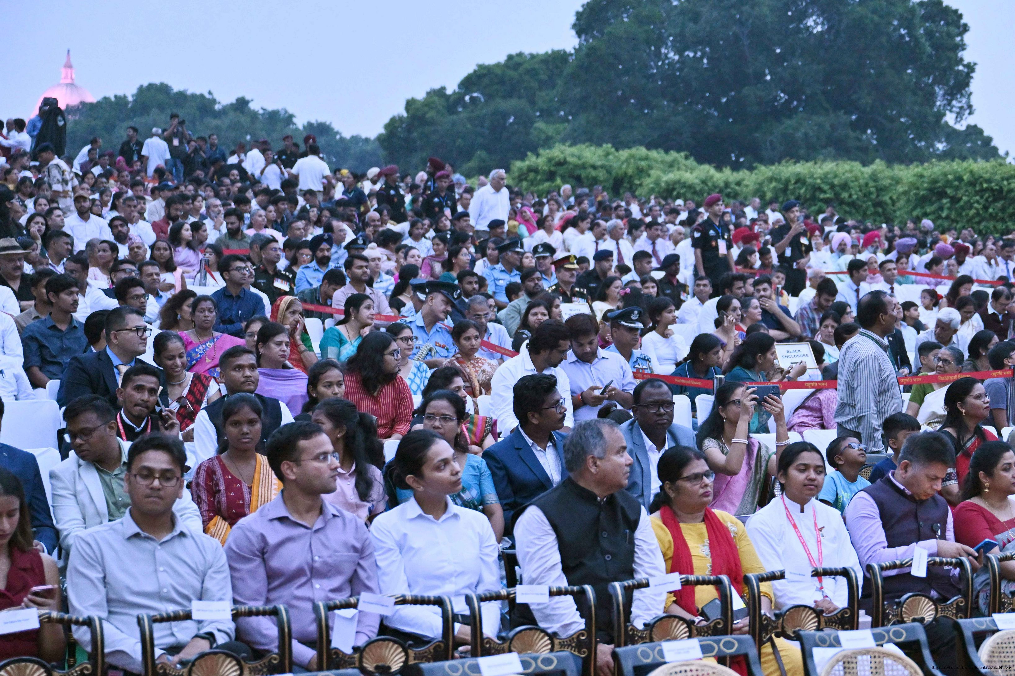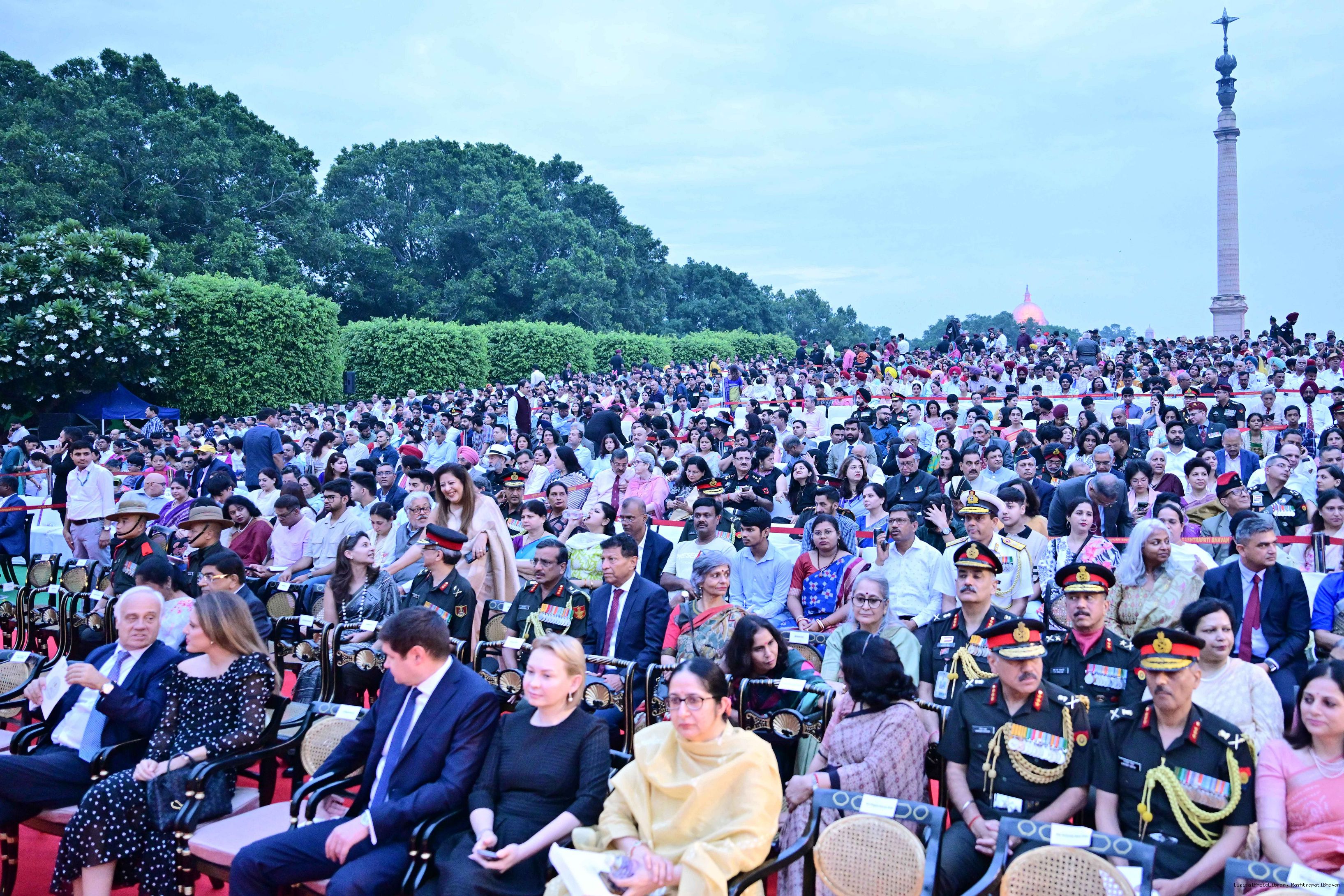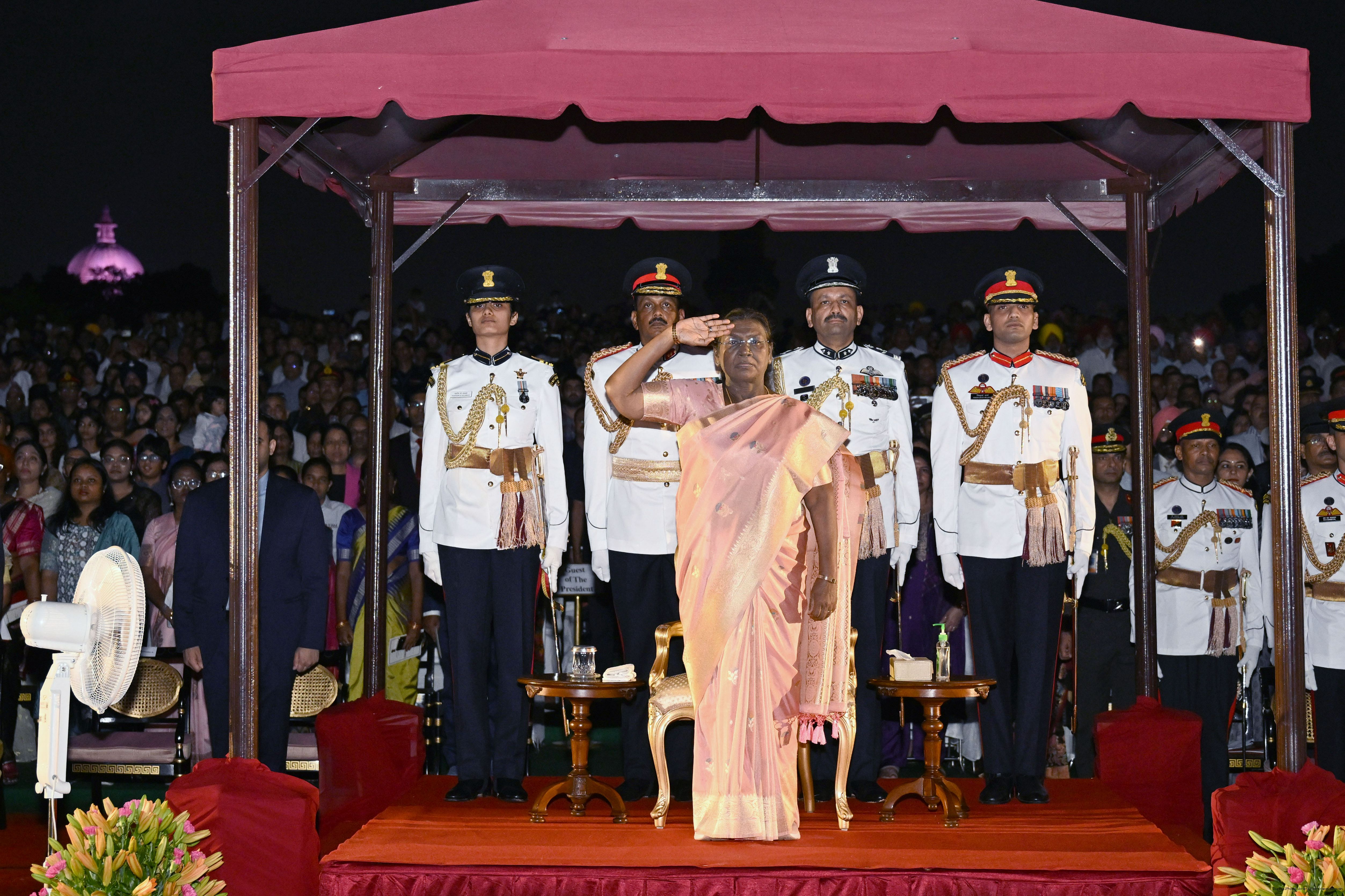 | Caption: | The President of India, Smt. Droupadi Murmu, presented the diamond jubilee Silver Trumpet and Trumpet Banner to the President’s Bodyguard (PBG) at a ceremony held at Rashtrapati Bhavan on September 30, 2025, in recognition of 75 years of glorious service since the designation as the PBG in 1950. |