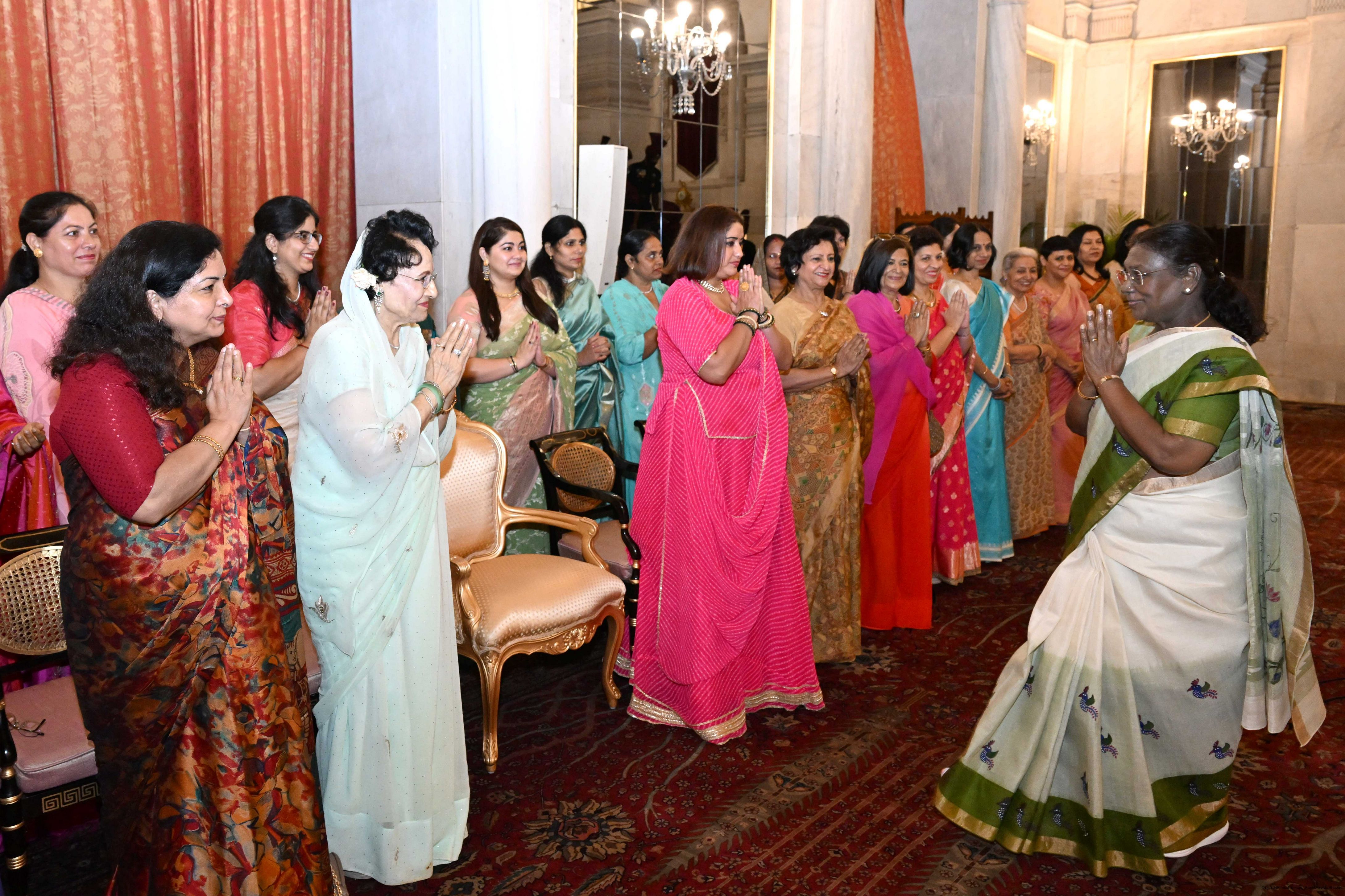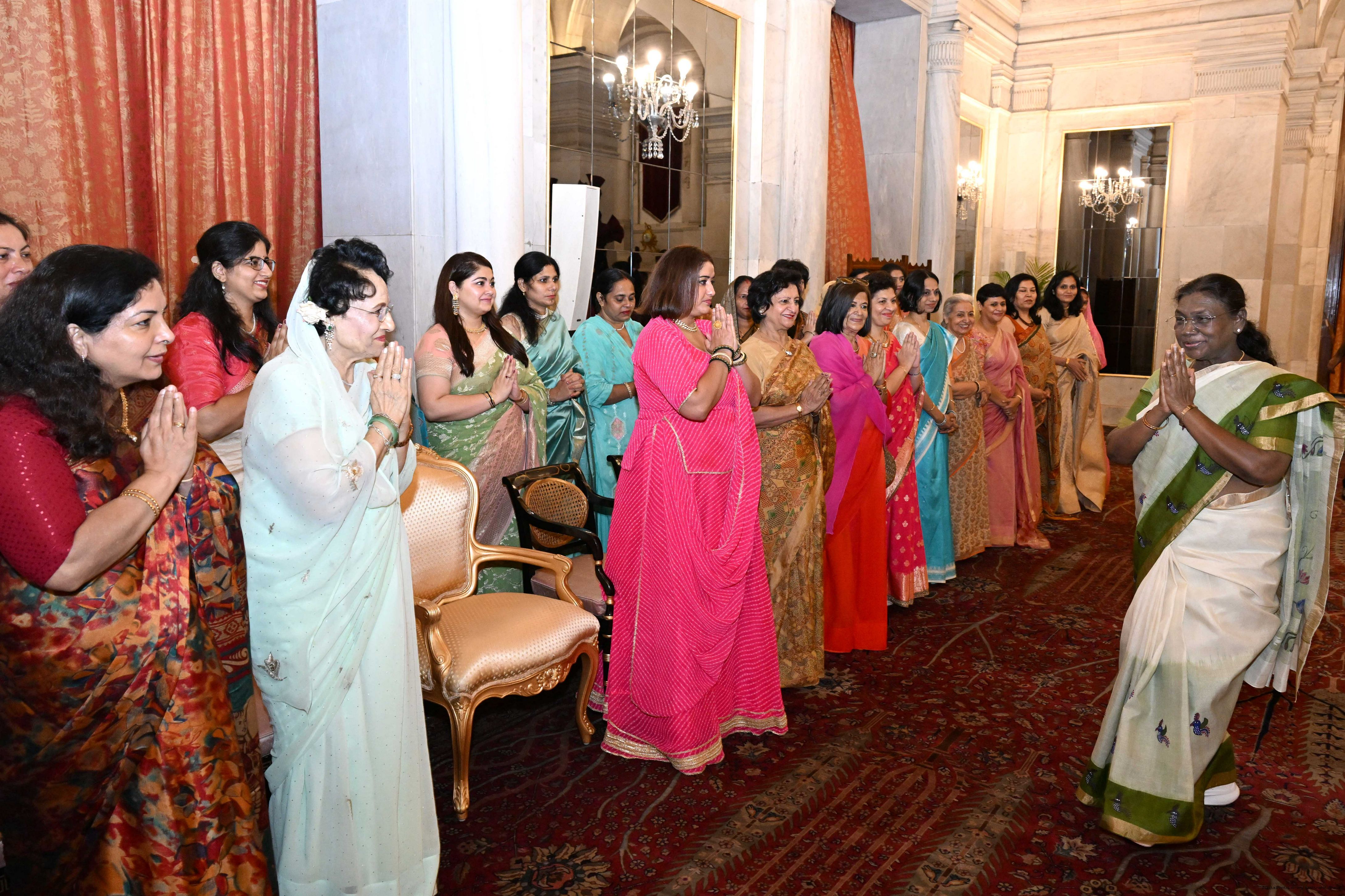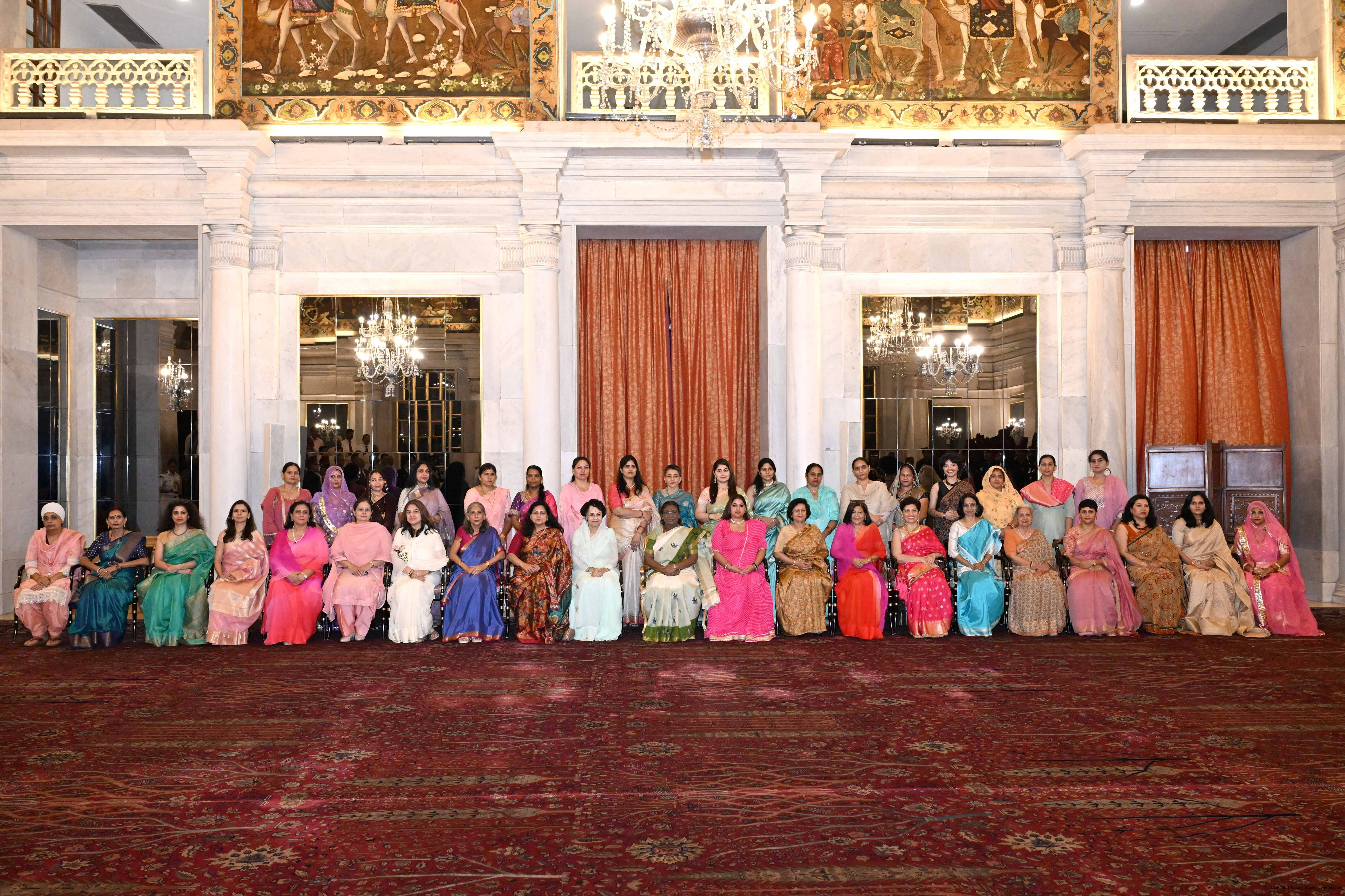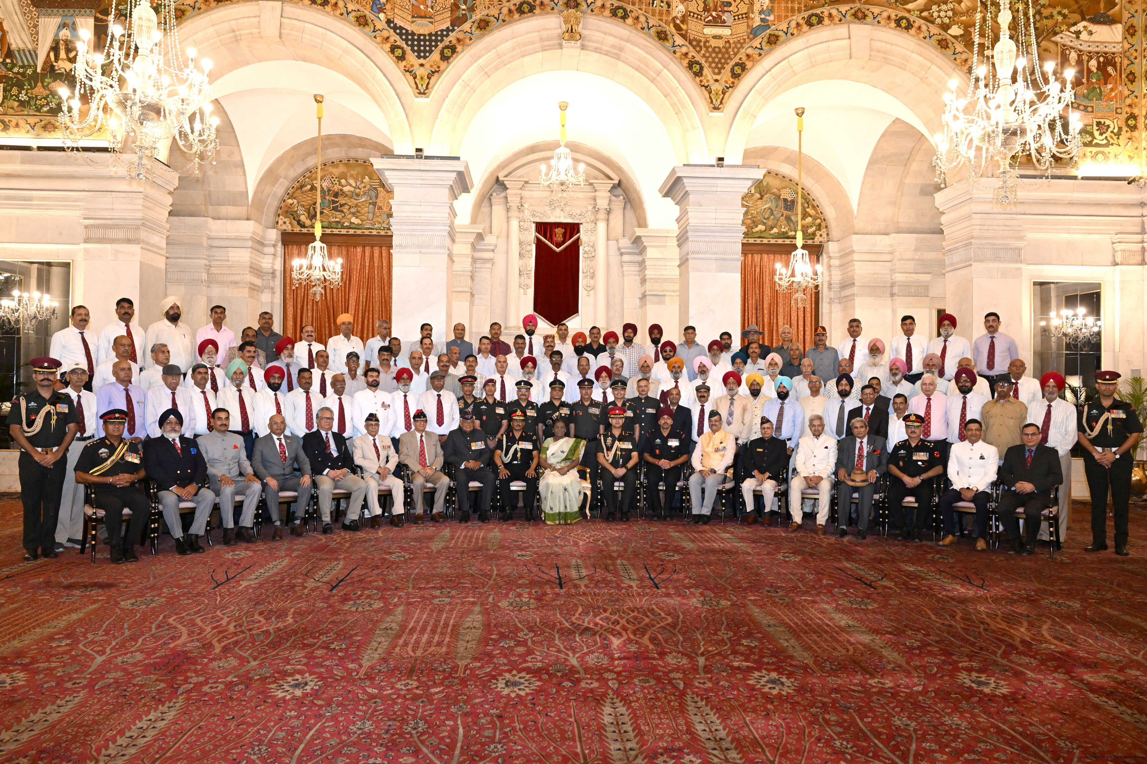 | Caption: | The President of India, Smt. Droupadi Murmu met and posing a group photograph with PBG personnel on the occasion of 75 years of being designated 'The President's Bodyguards' at Rashtrapati Bhavan on September 30, 2025. |