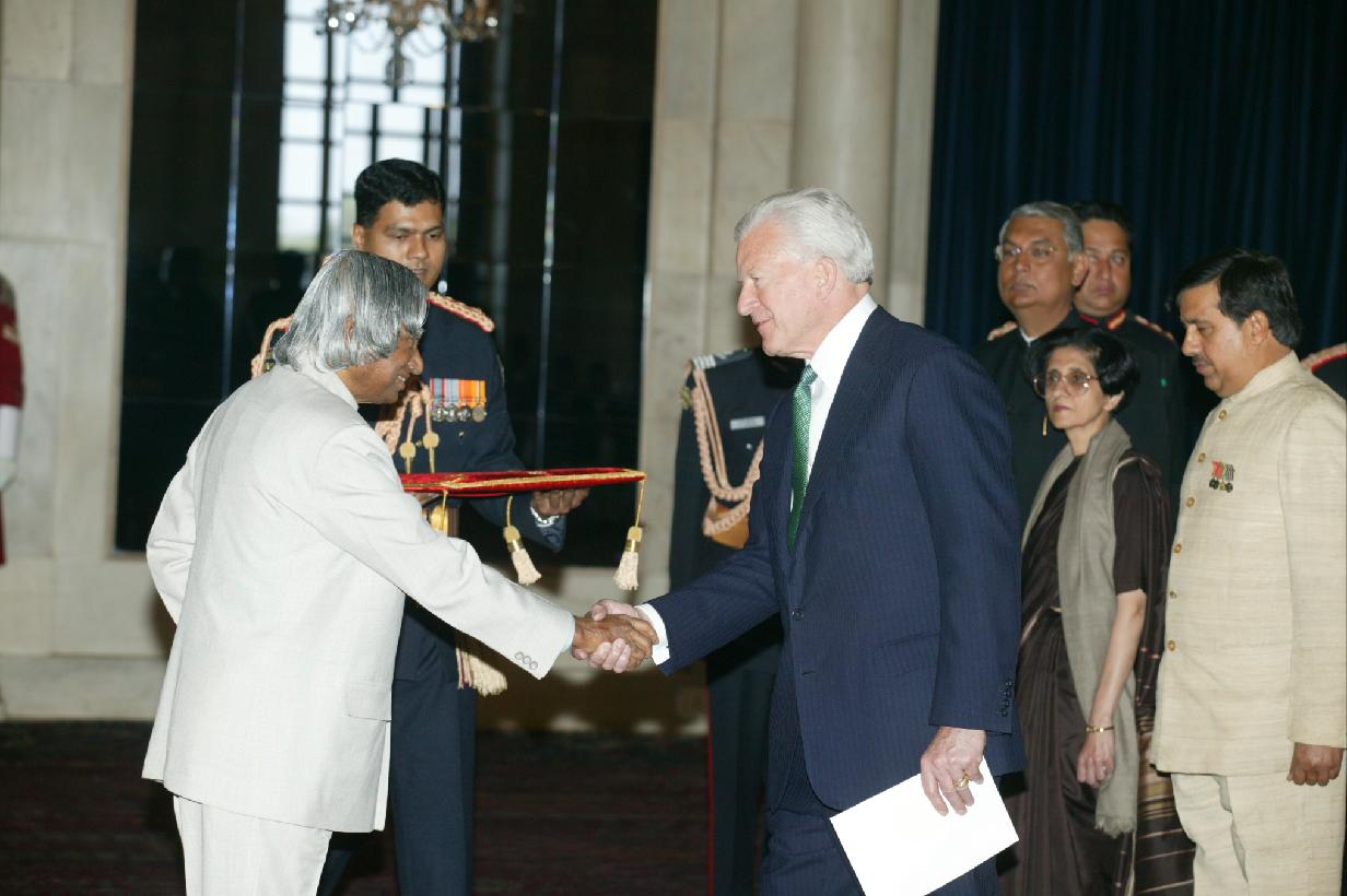 | Caption: | The Ambassador-Designate of United States of America to India, HE Dr David Campbell Mulford presenting his credentials to the President of India, Dr A P J Abdul Kalam at the Ashok Hall of Rashtrapati Bhavan in New Delhi on Feb 20, 2004 |