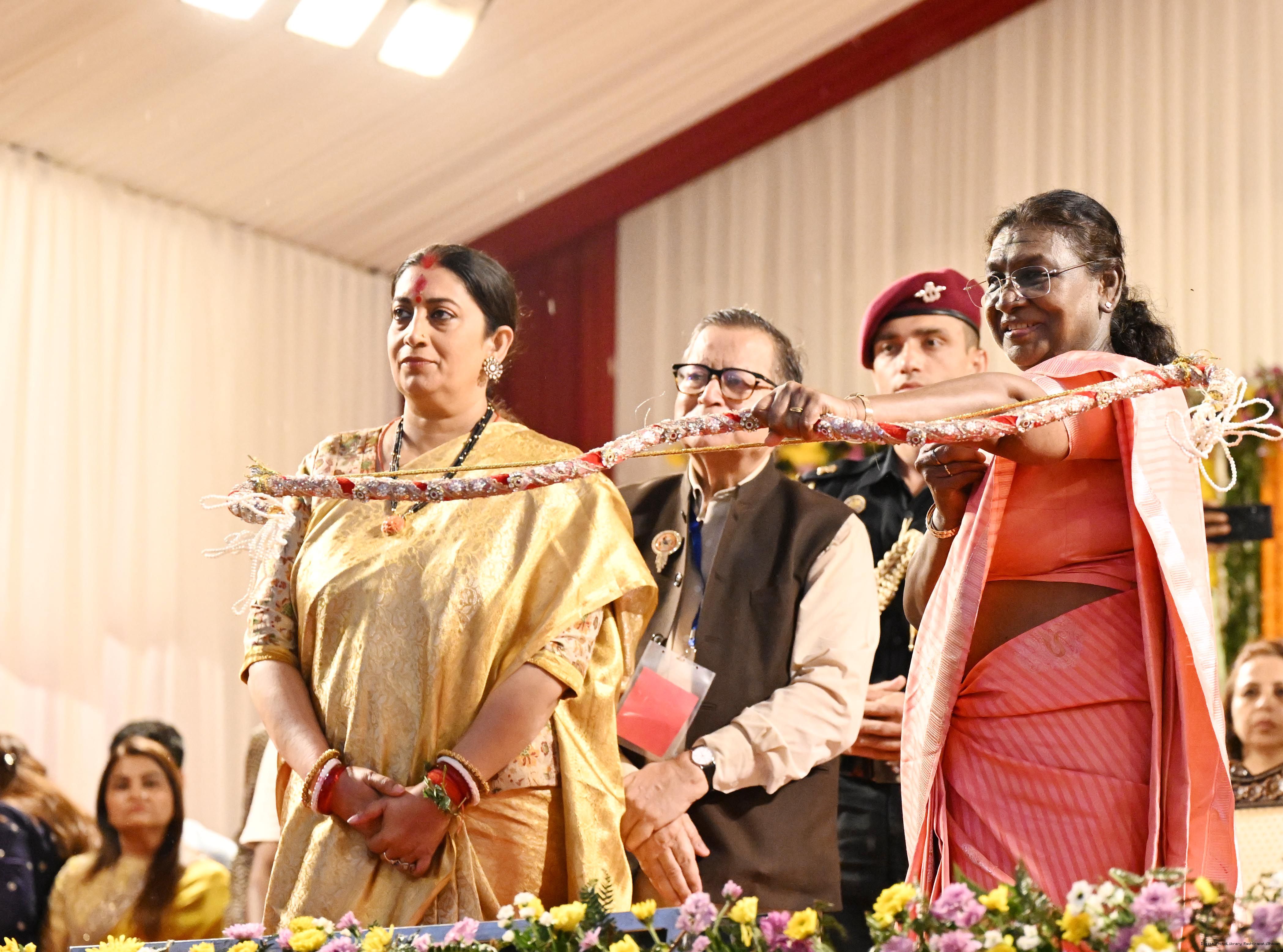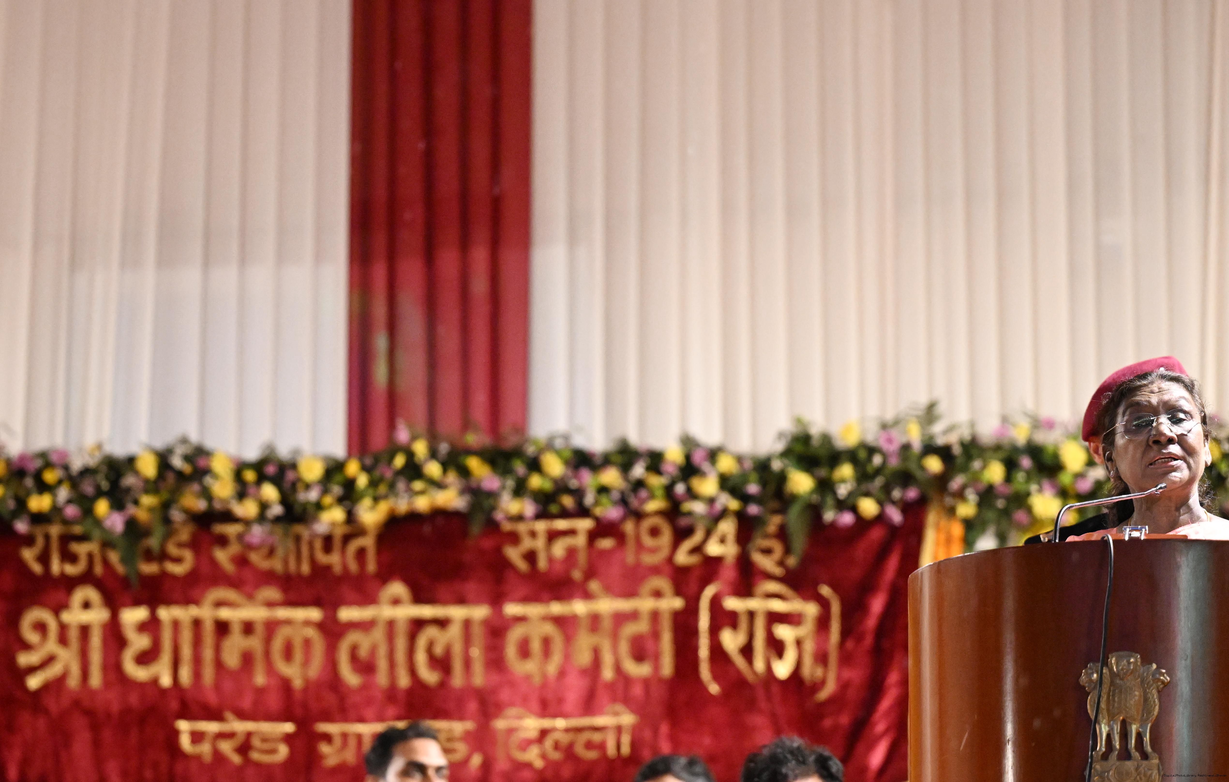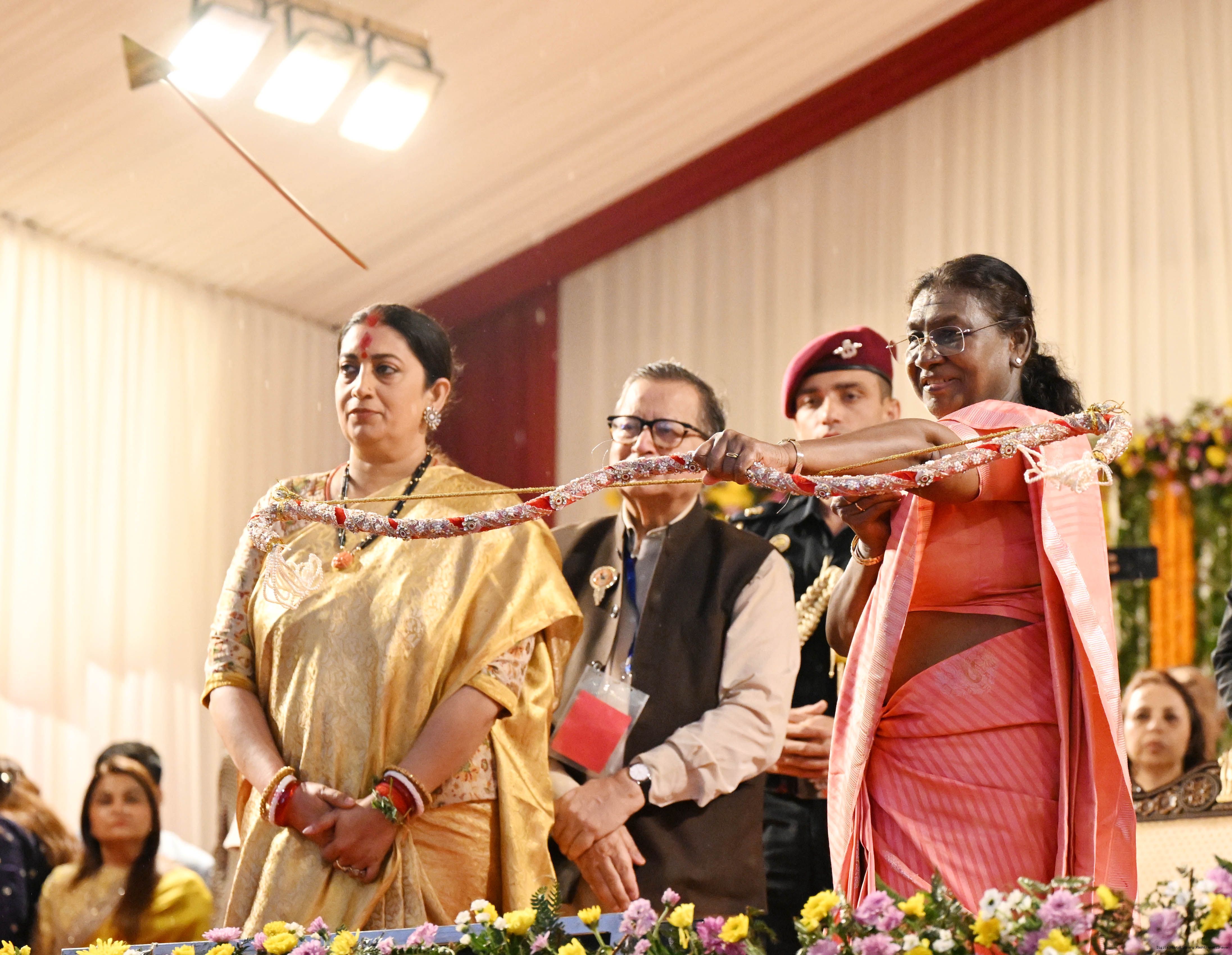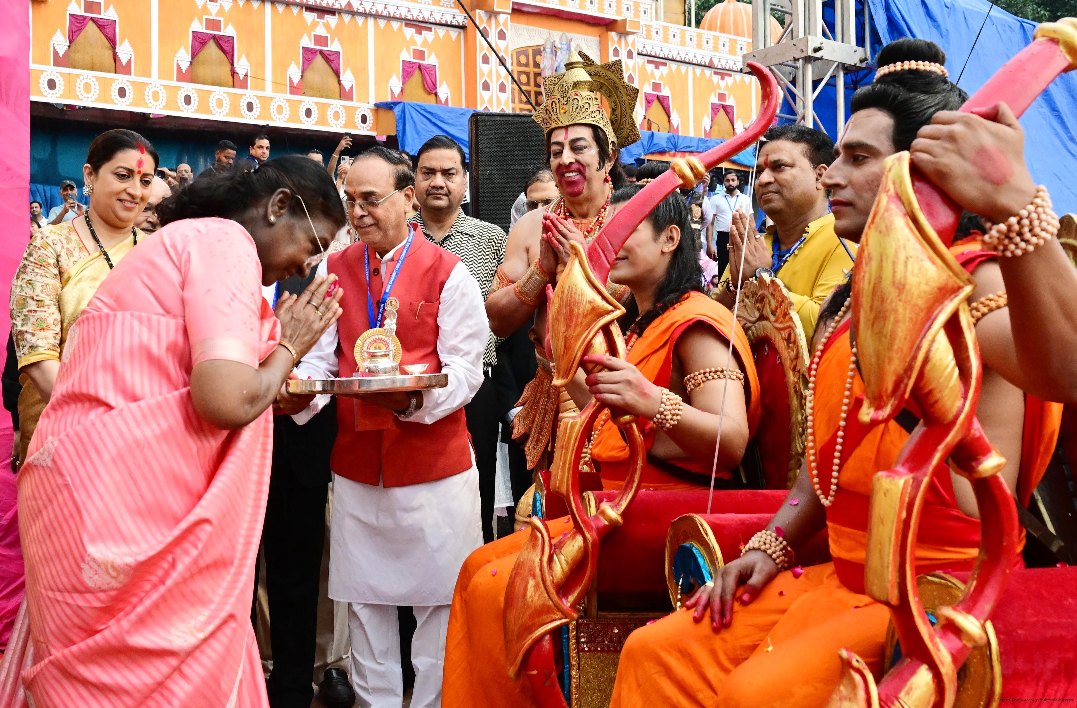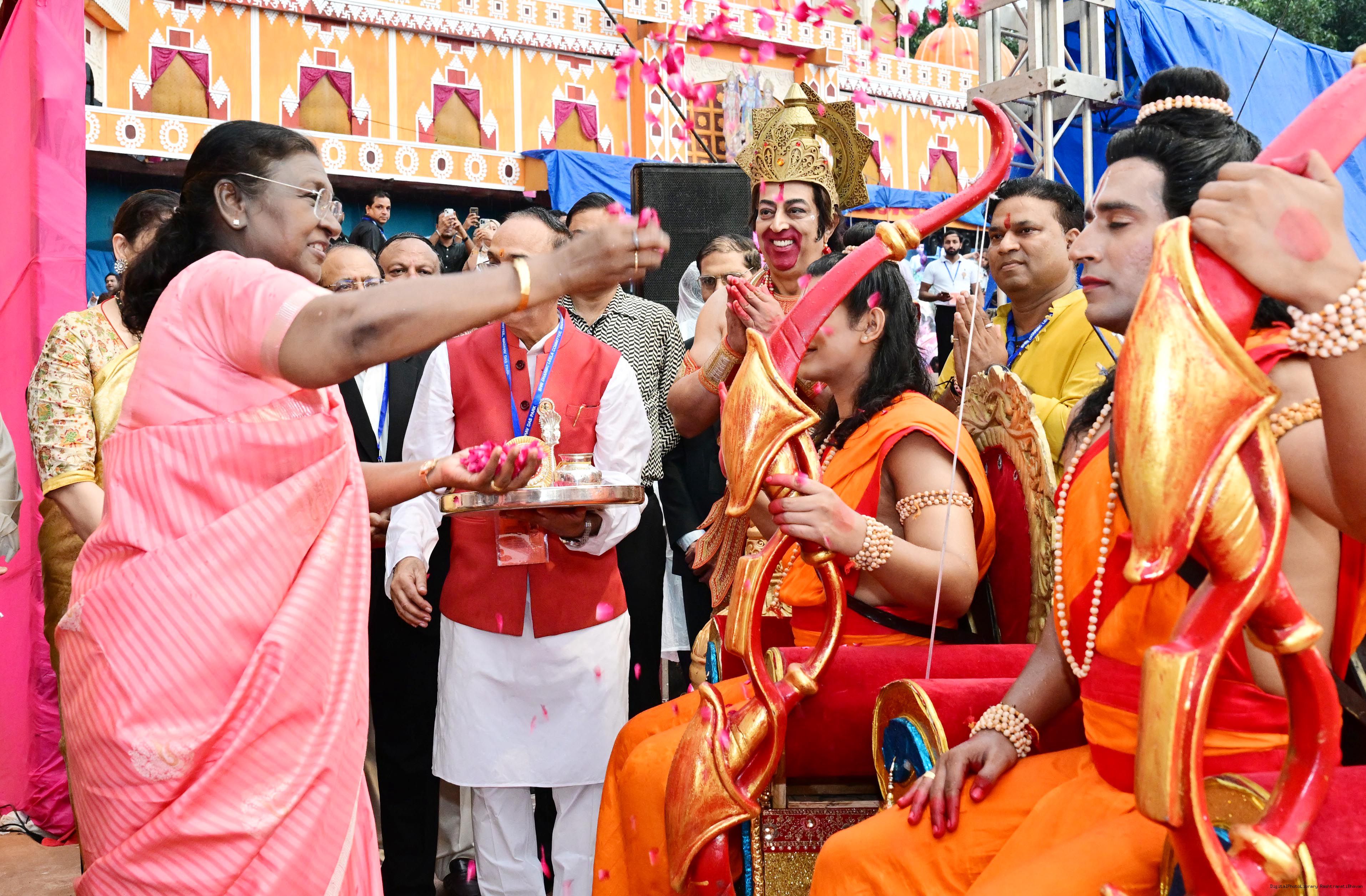 | Caption: | The President of India, Smt. Droupadi Murmu attended Dussehra Celebrations at Red Fort, Delhi on October 2, 2025. |
