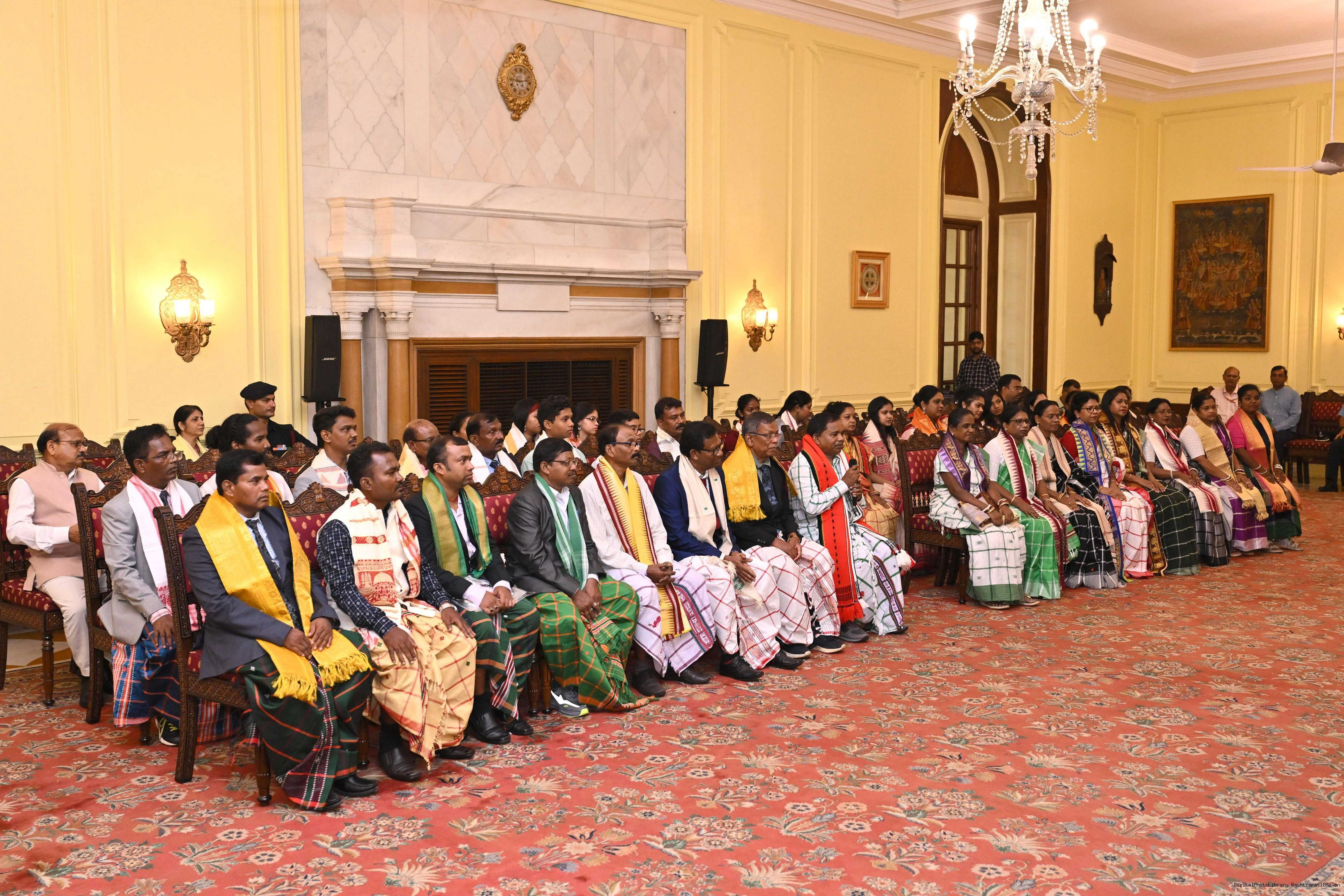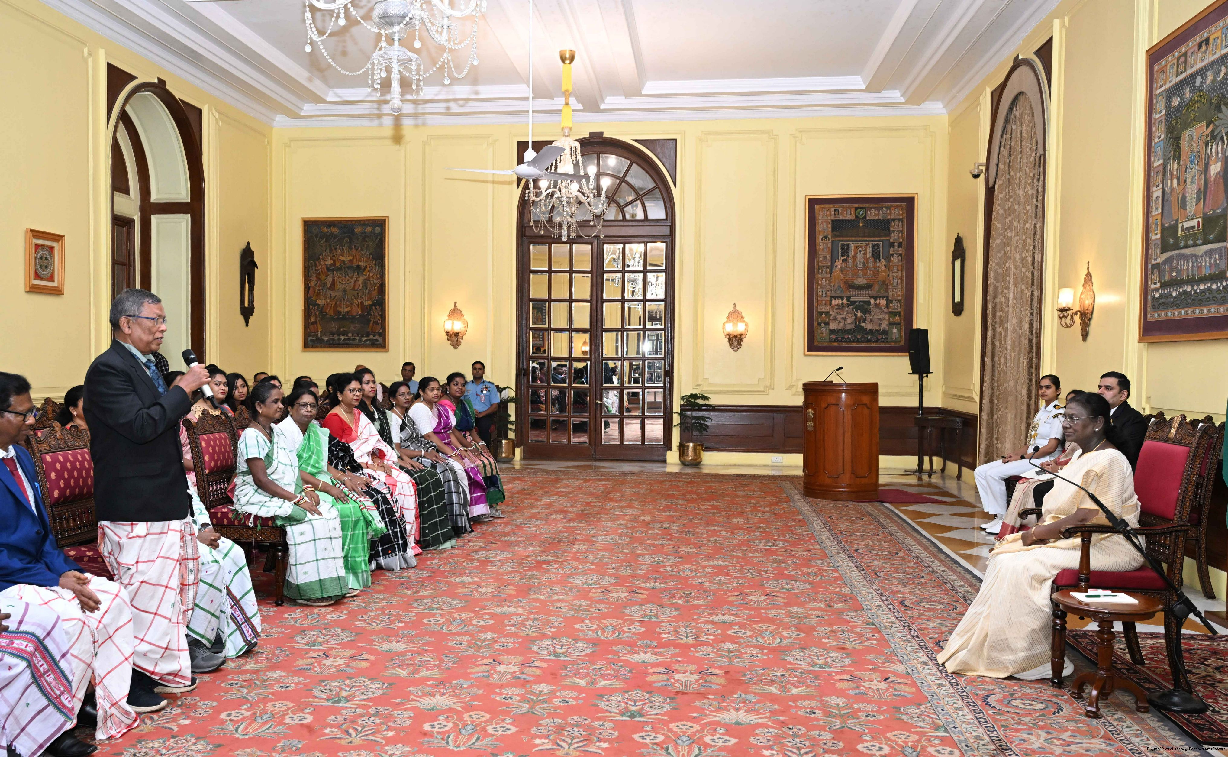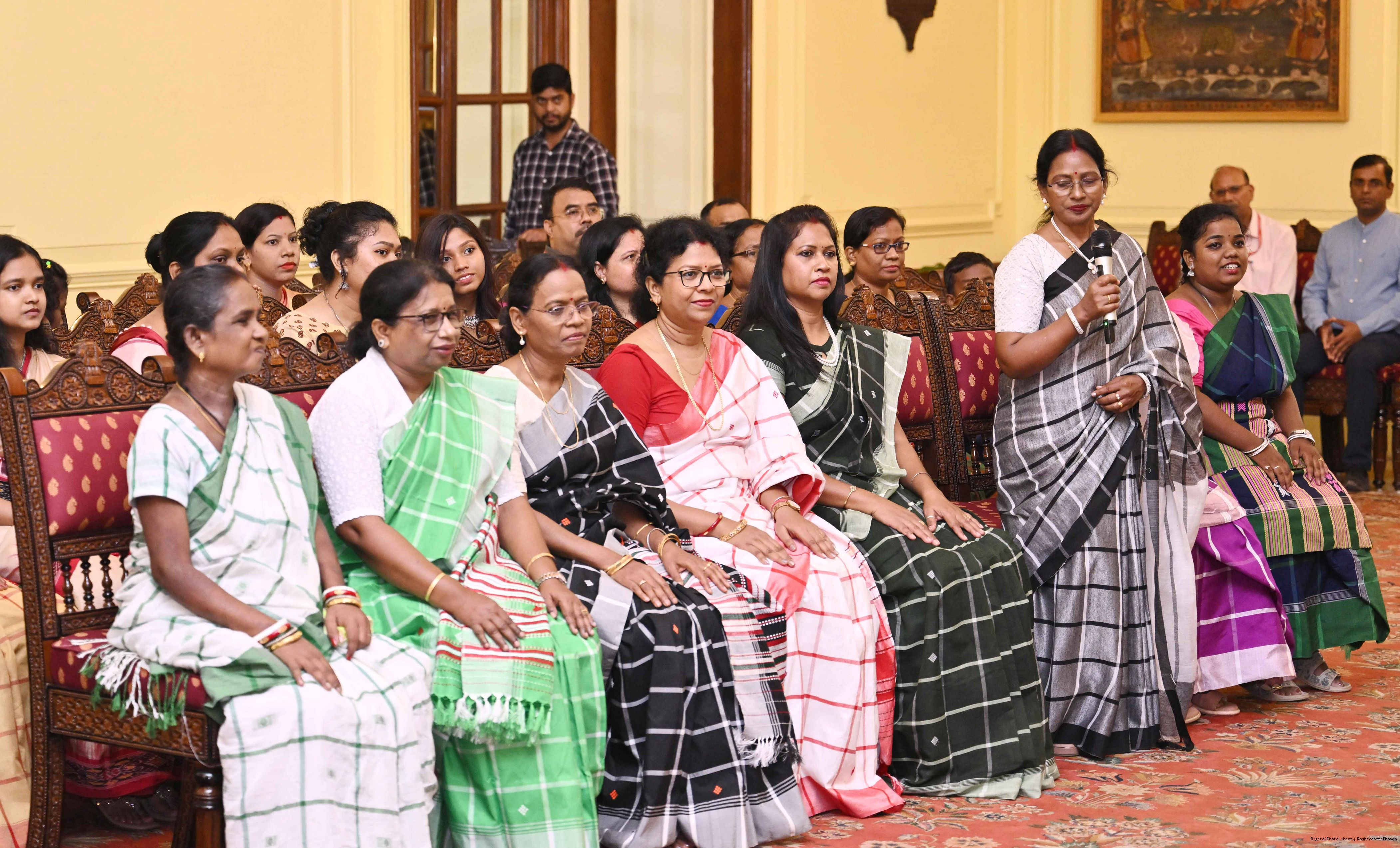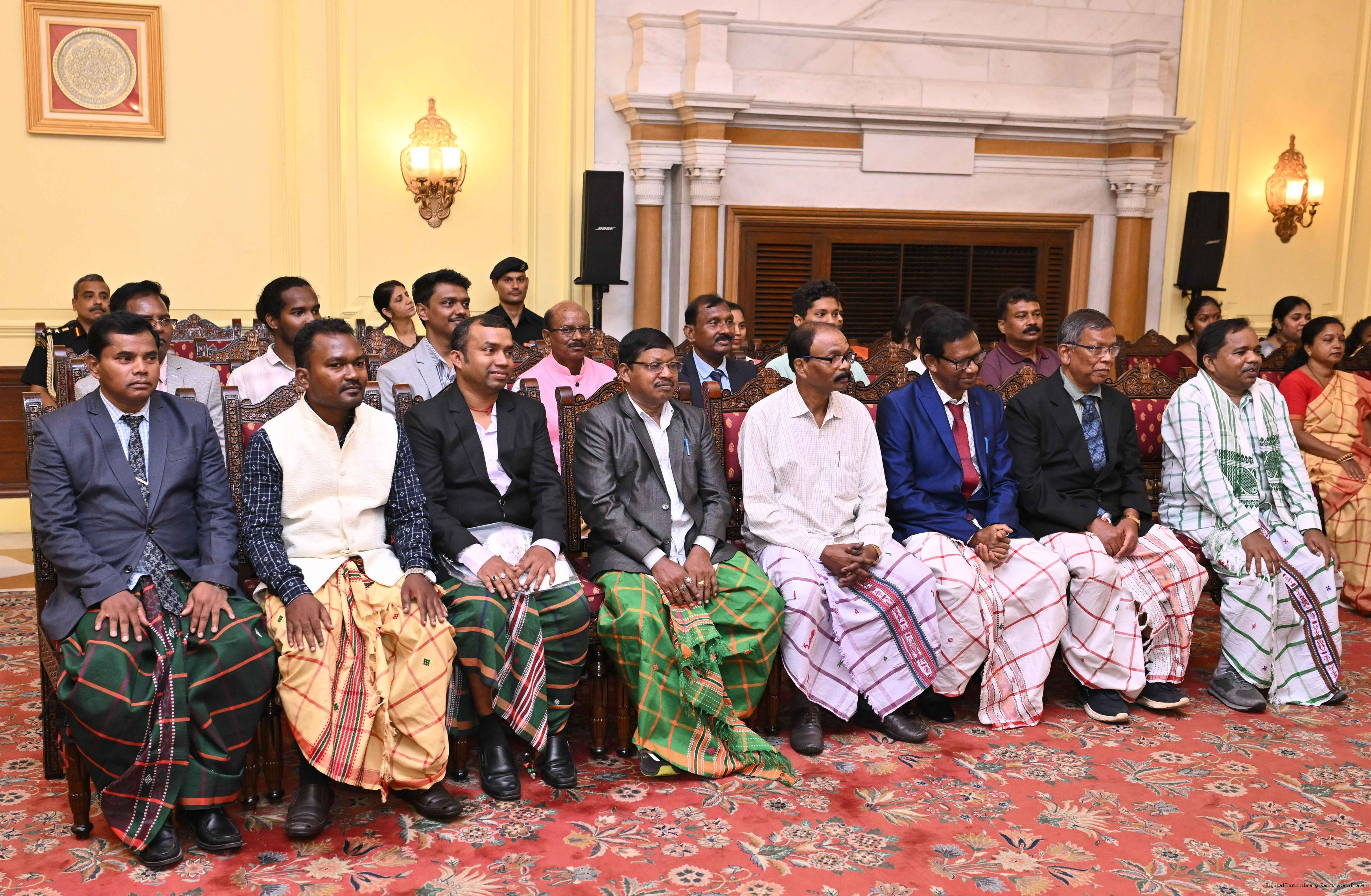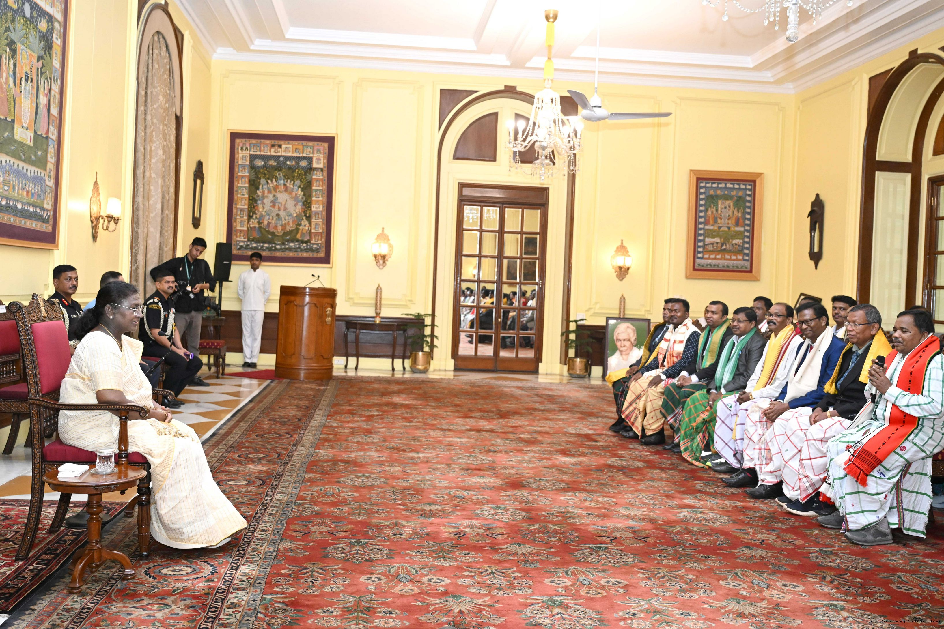 | Caption: | Smt Malat Murmu PublisherEditor FAGUN Bhubaneswar along with 44 others meeting with the President of India, Smt. Droupadi Murmu at Rashtrapati Bhavan on October 2, 2025. |