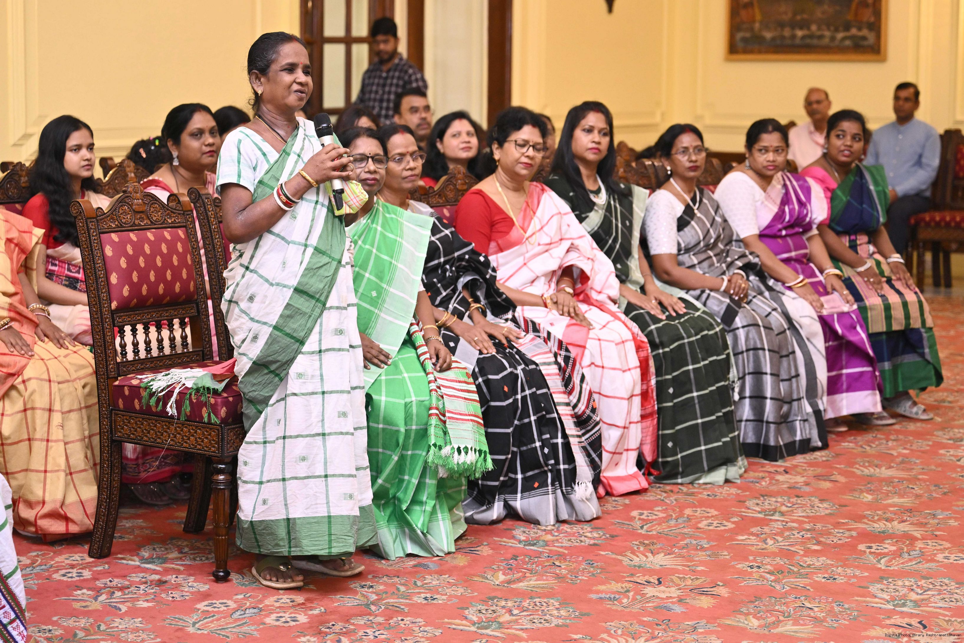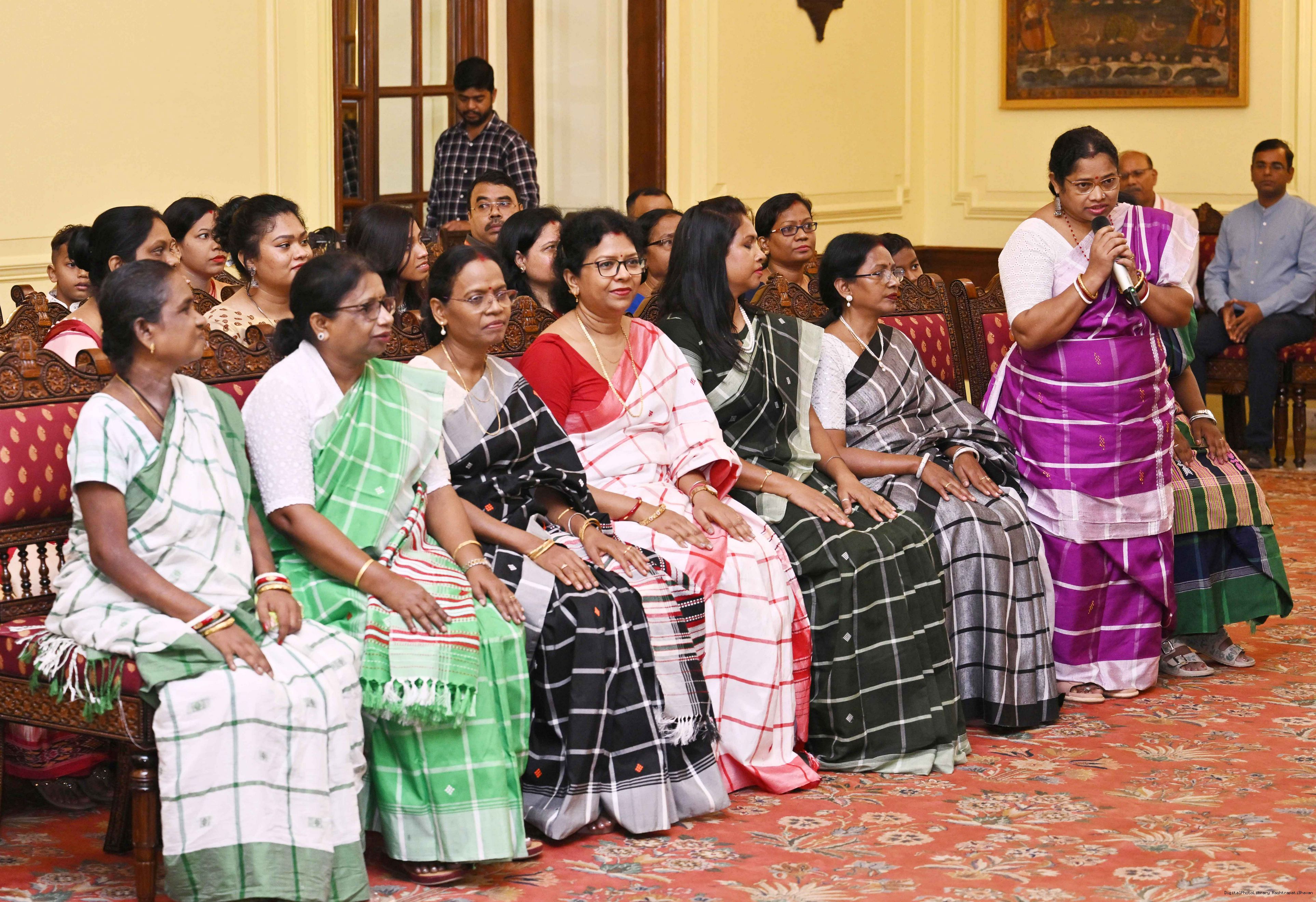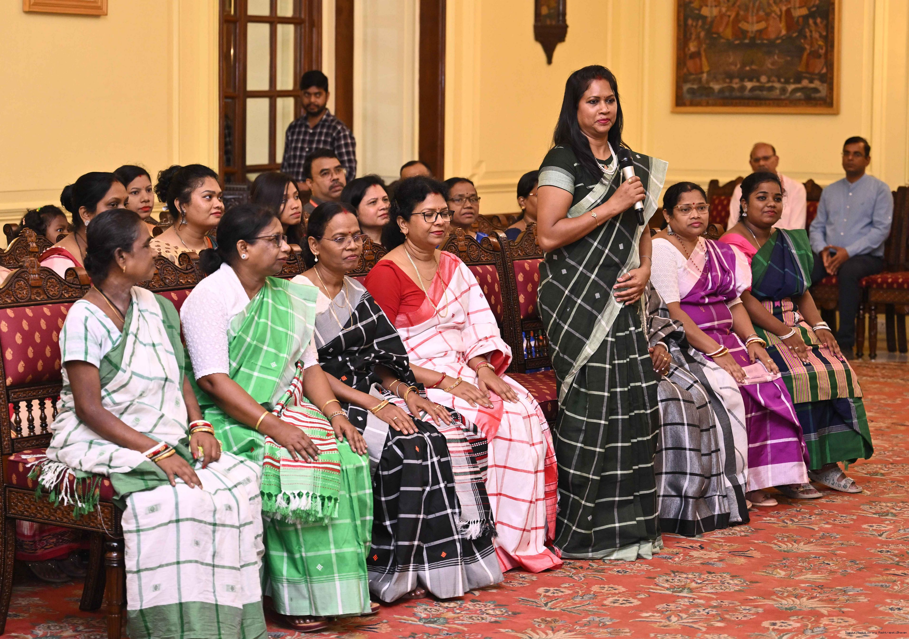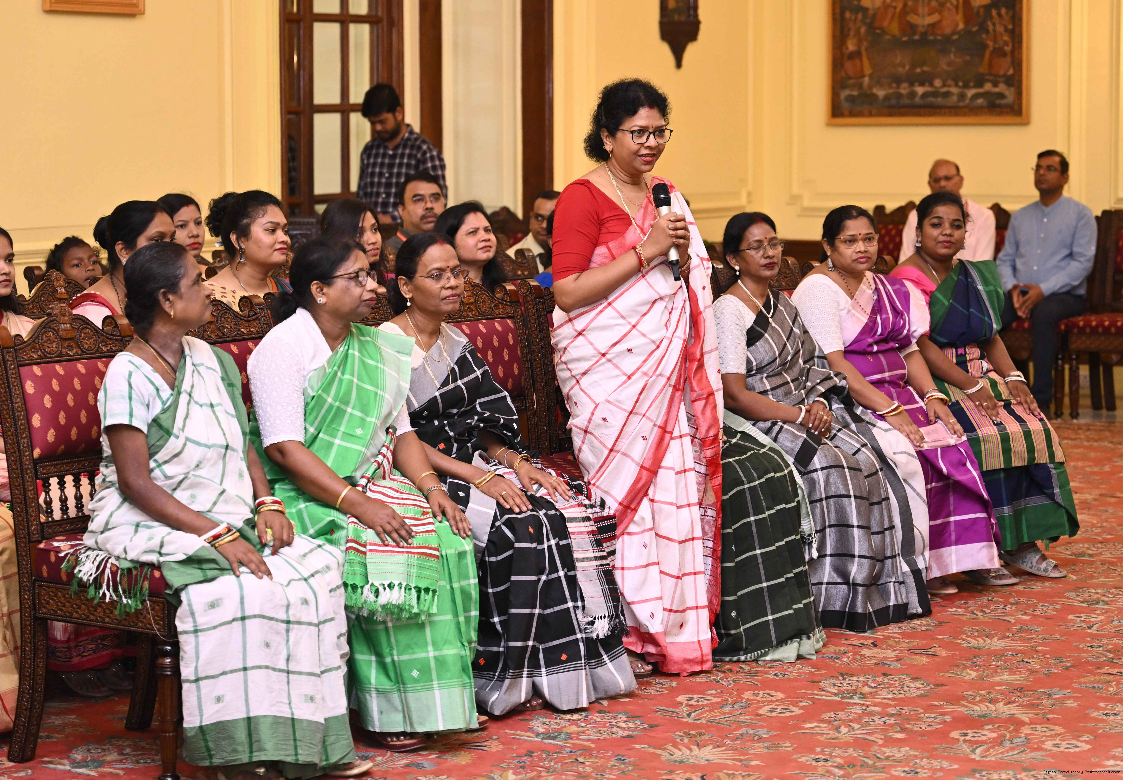 | Caption: | Smt Malat Murmu PublisherEditor FAGUN Bhubaneswar along with 44 others meeting with the President of India, Smt. Droupadi Murmu at Rashtrapati Bhavan on October 2, 2025. |