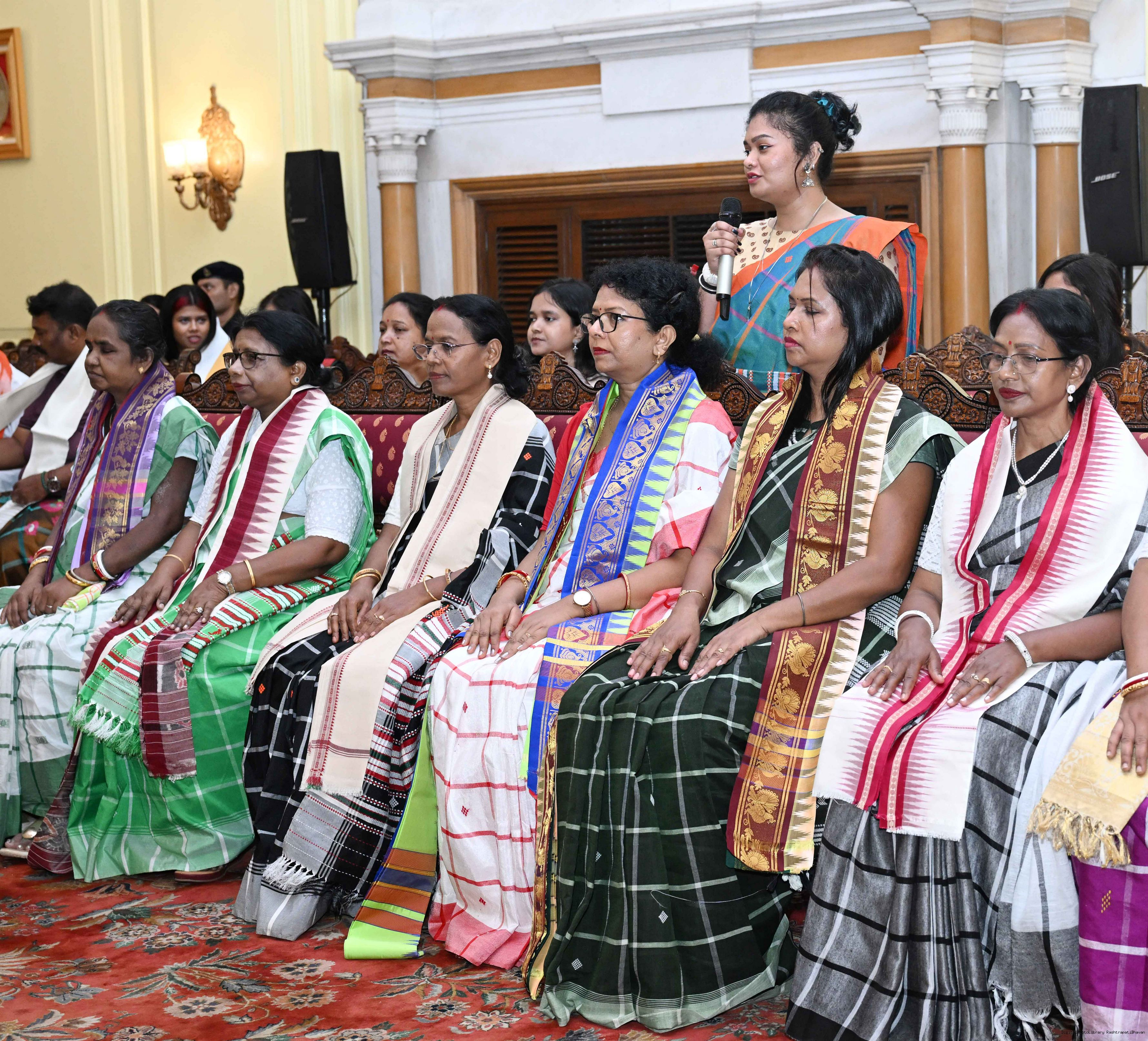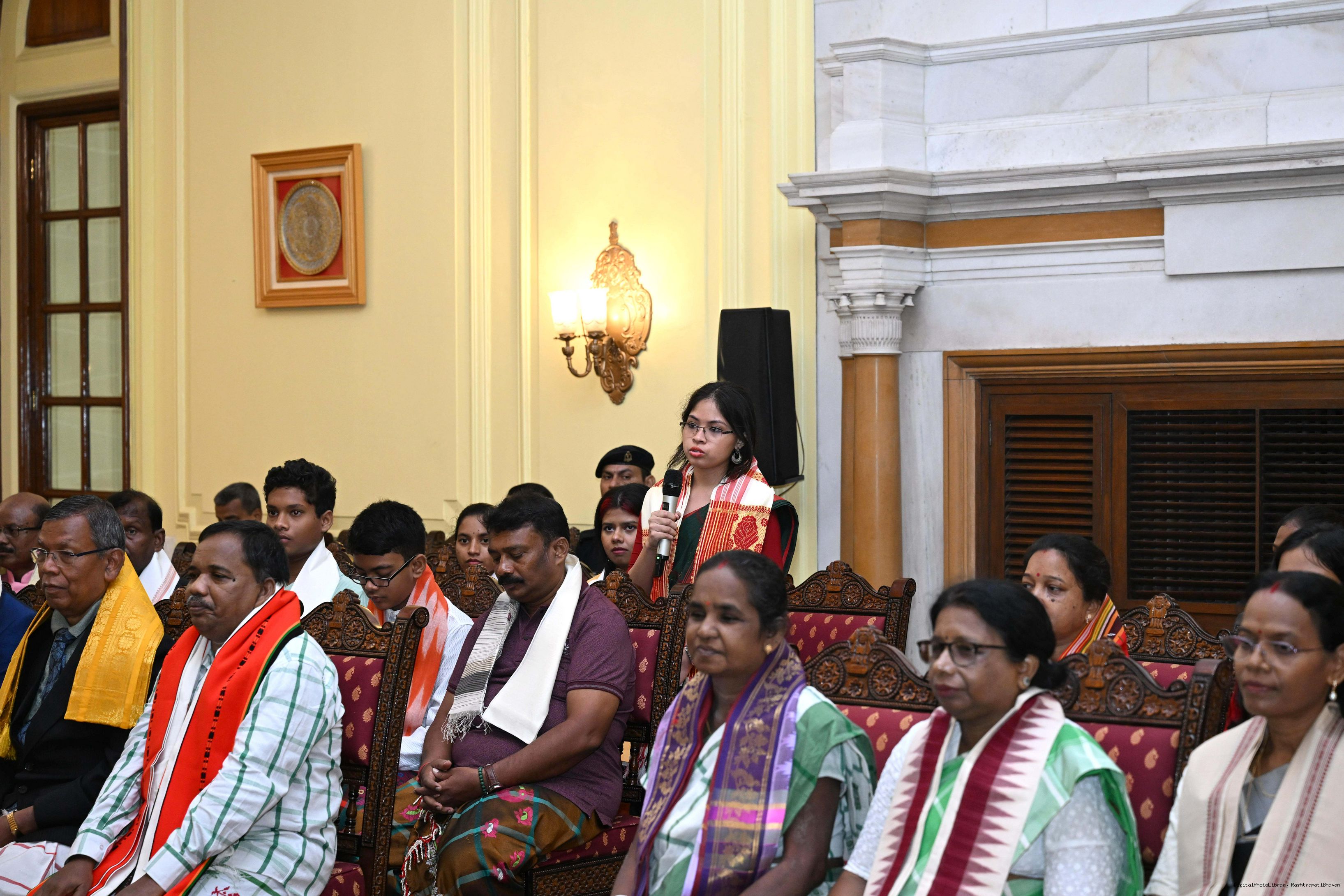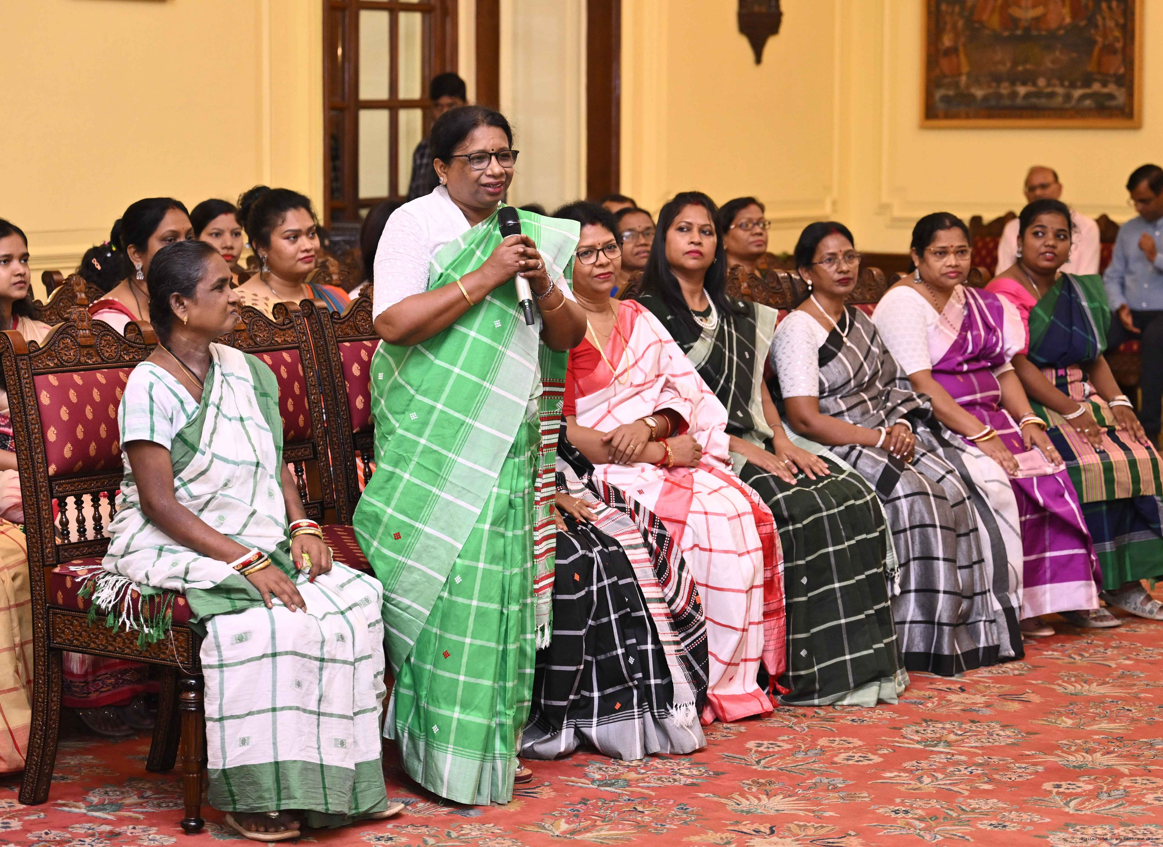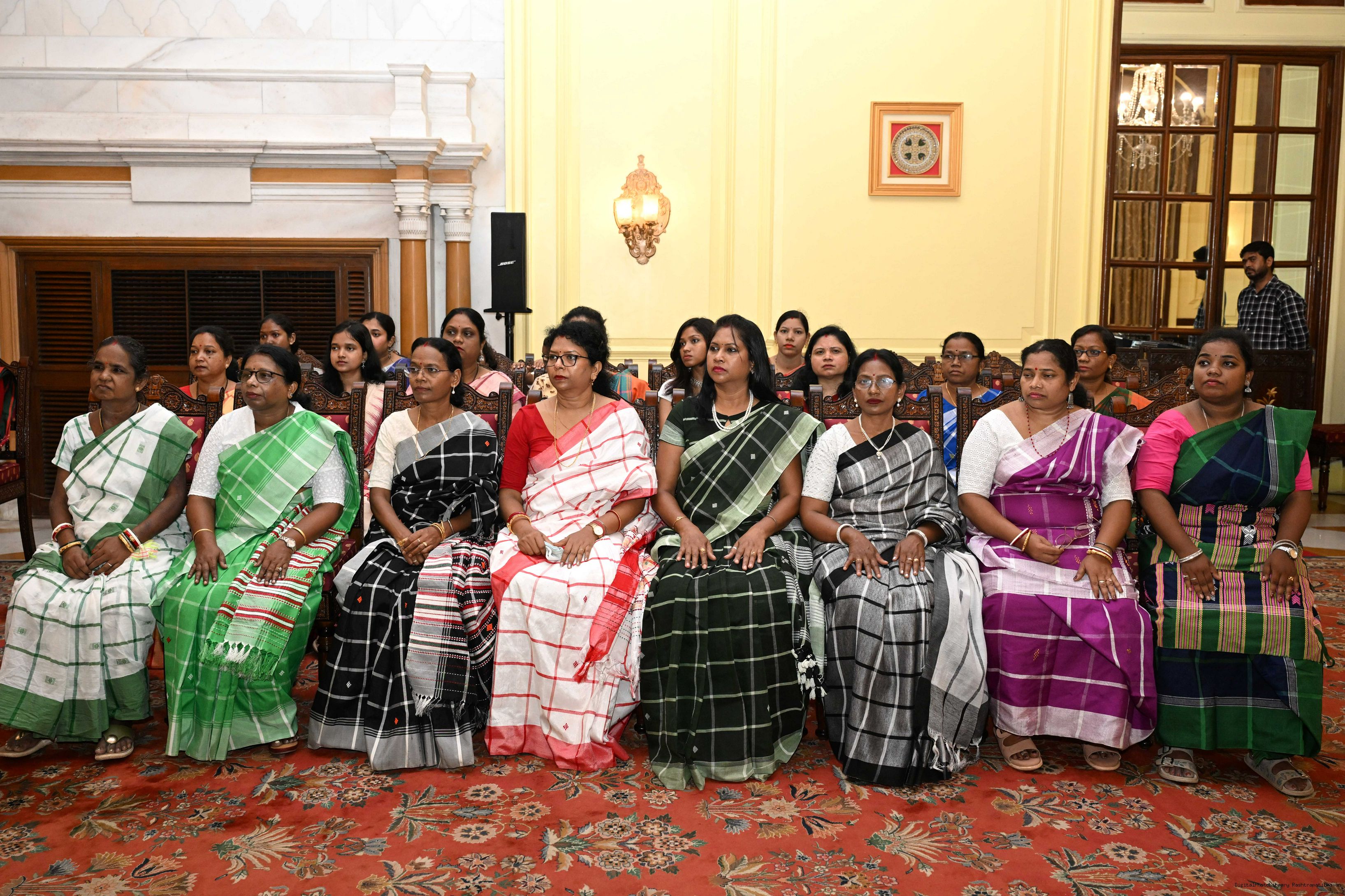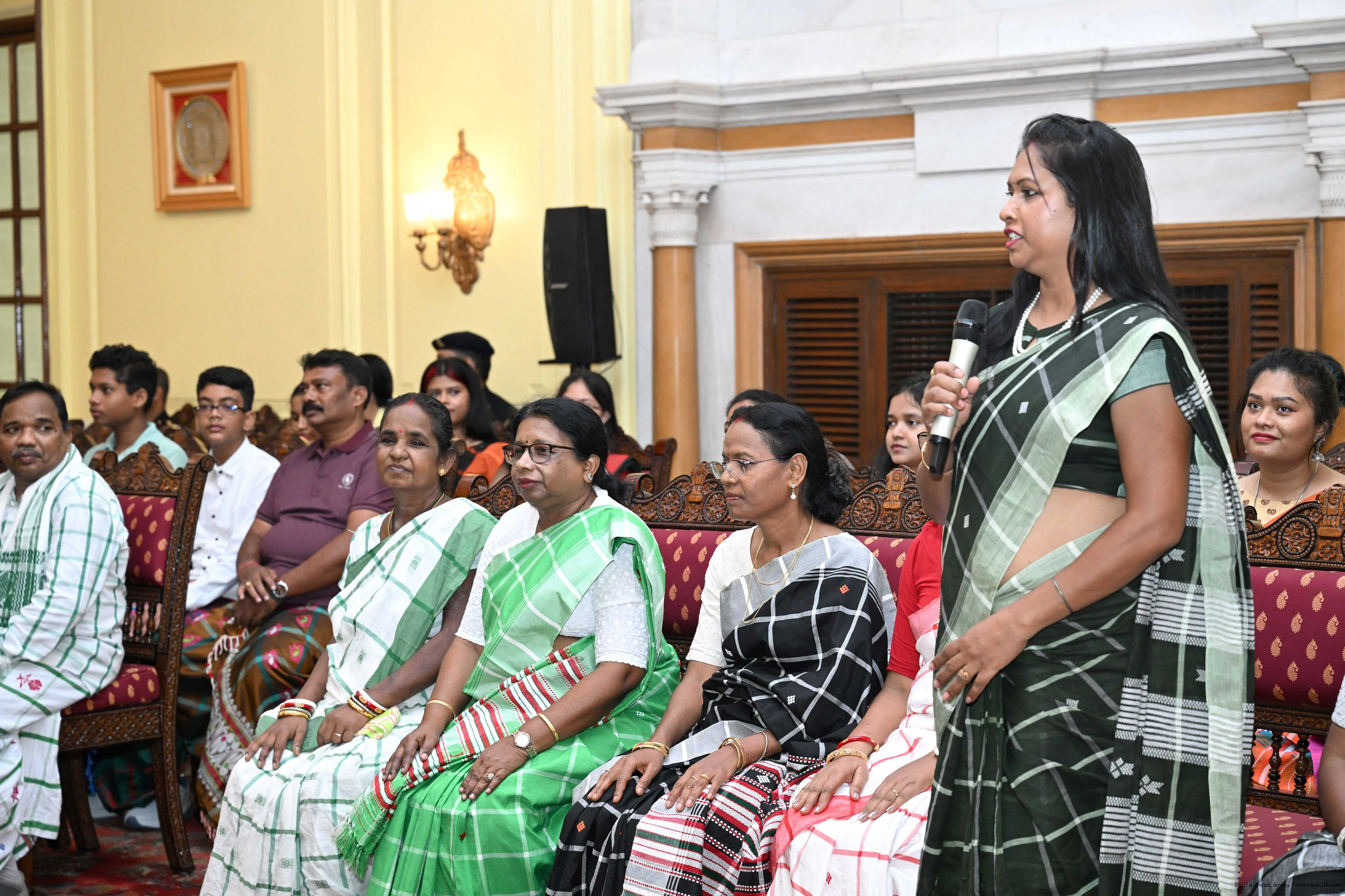 | Caption: | Smt Malat Murmu PublisherEditor FAGUN Bhubaneswar along with 44 others meeting with the President of India, Smt. Droupadi Murmu at Rashtrapati Bhavan on October 2, 2025. |