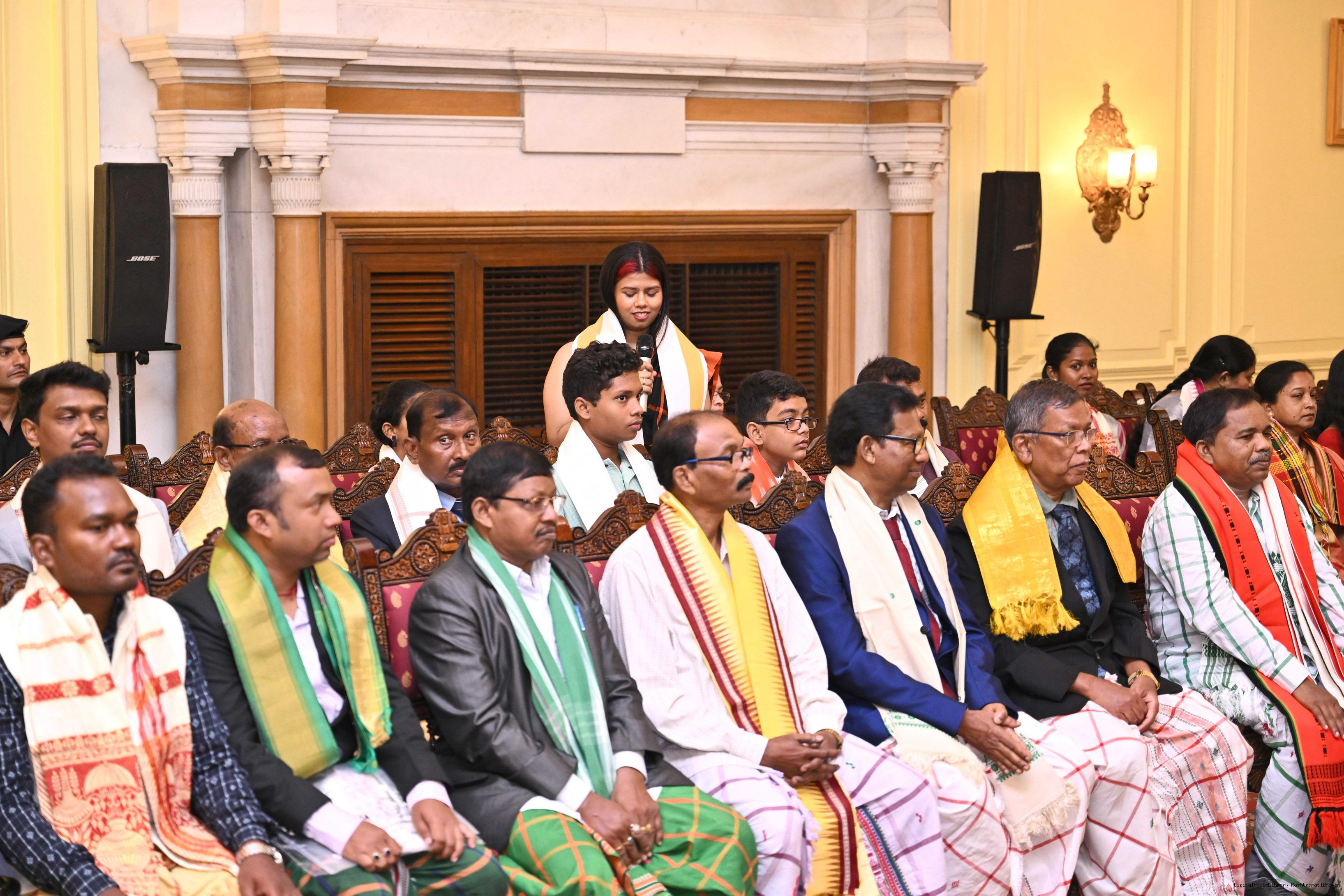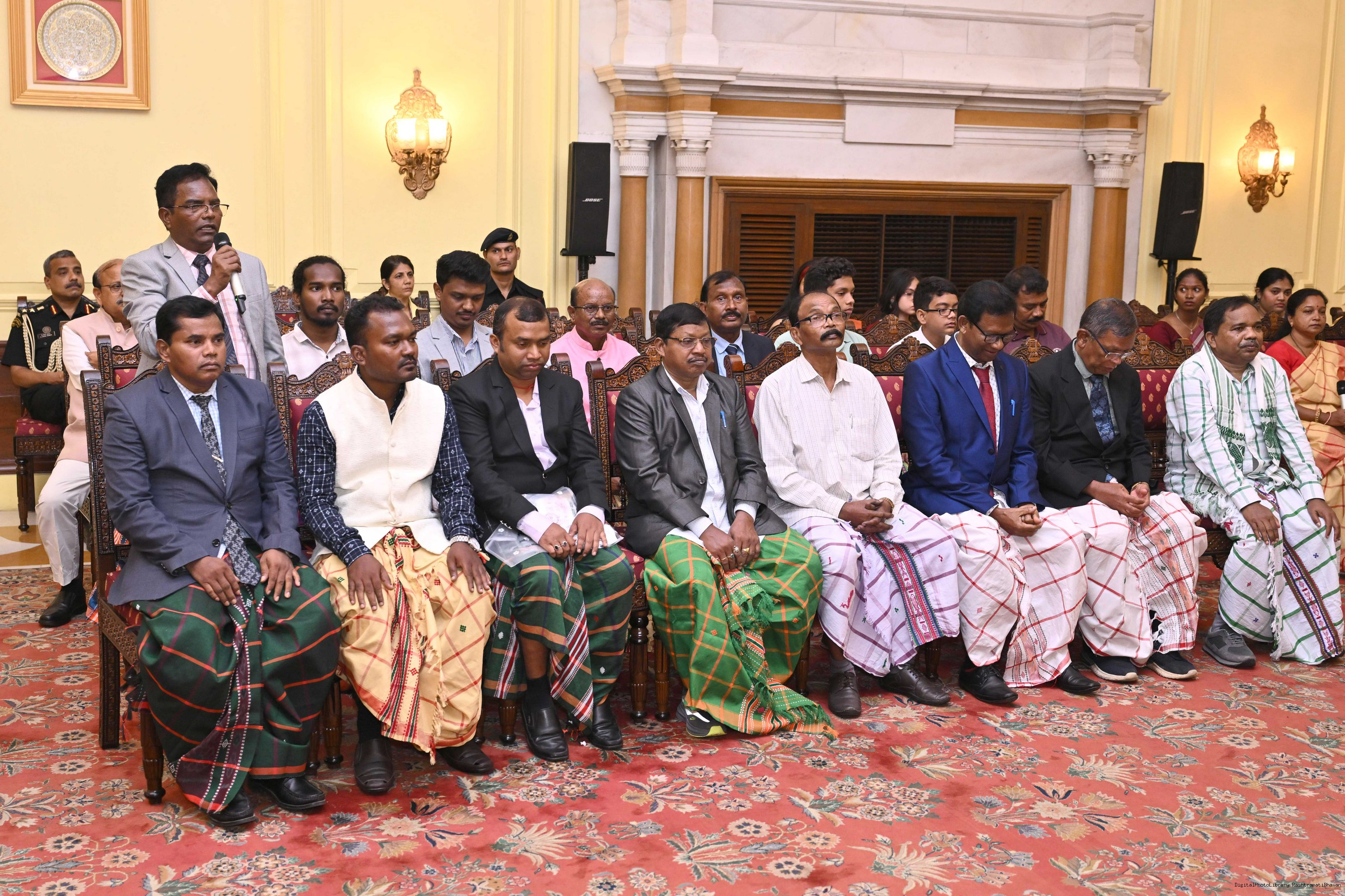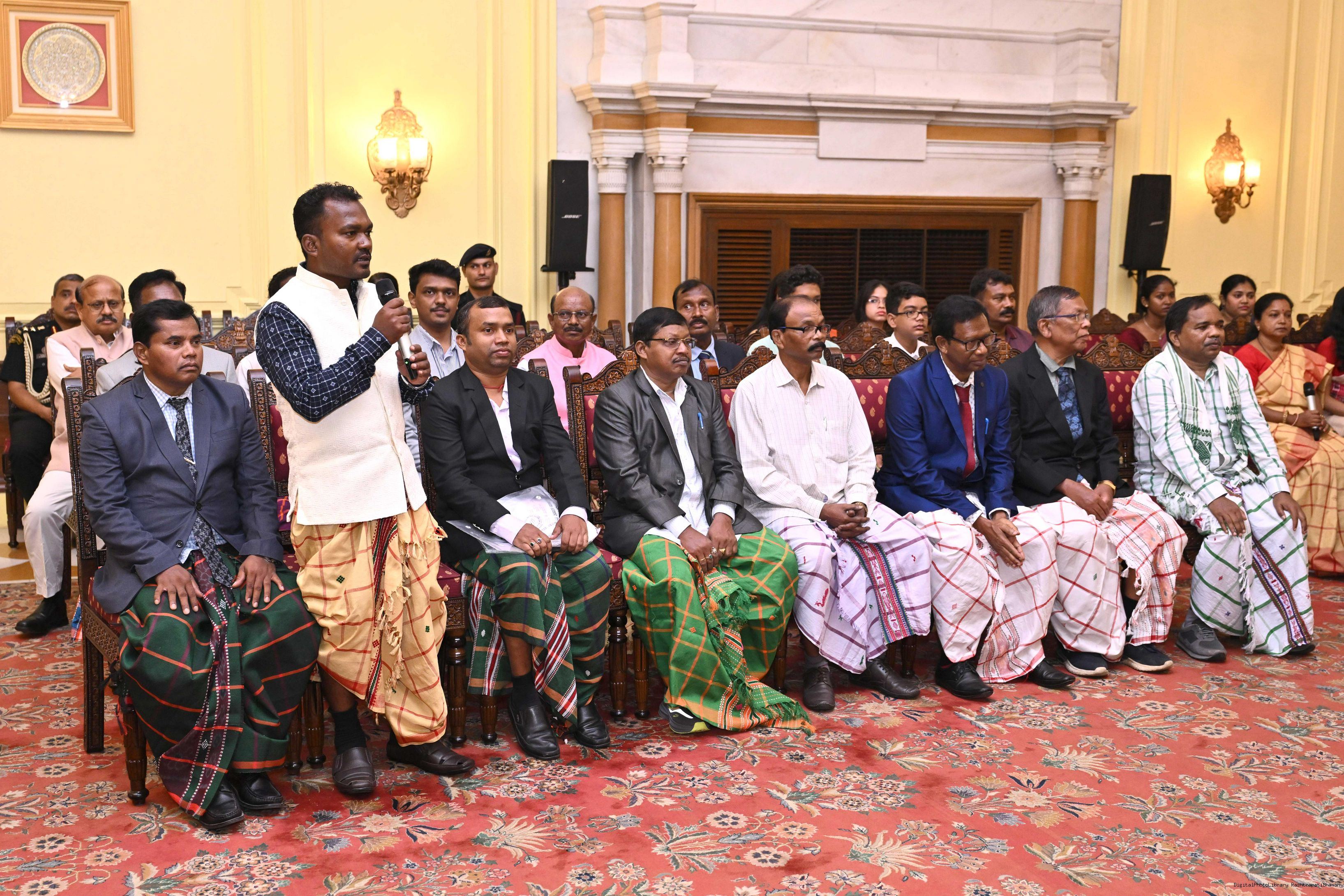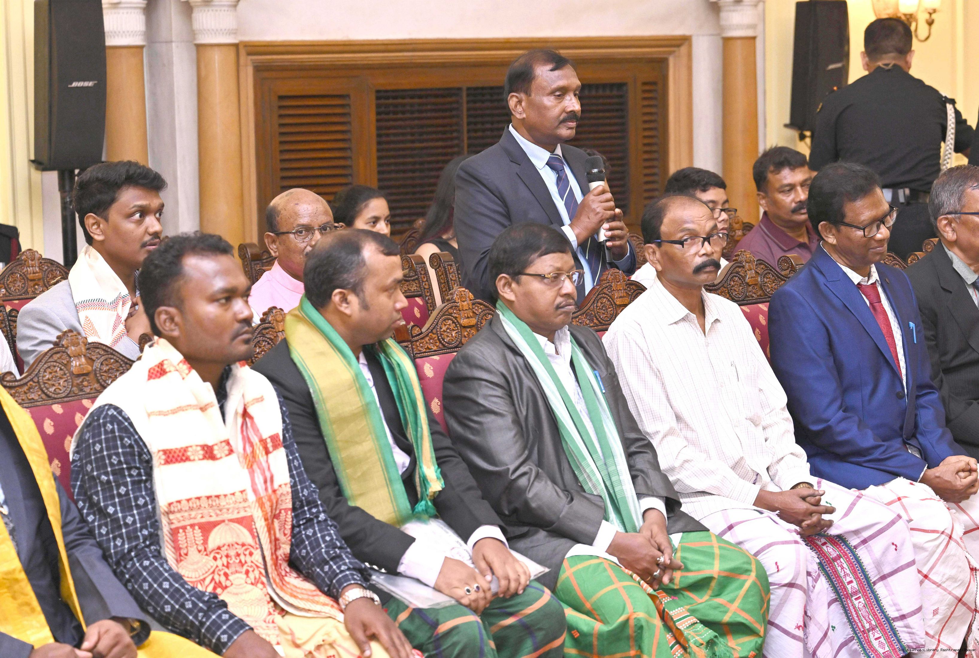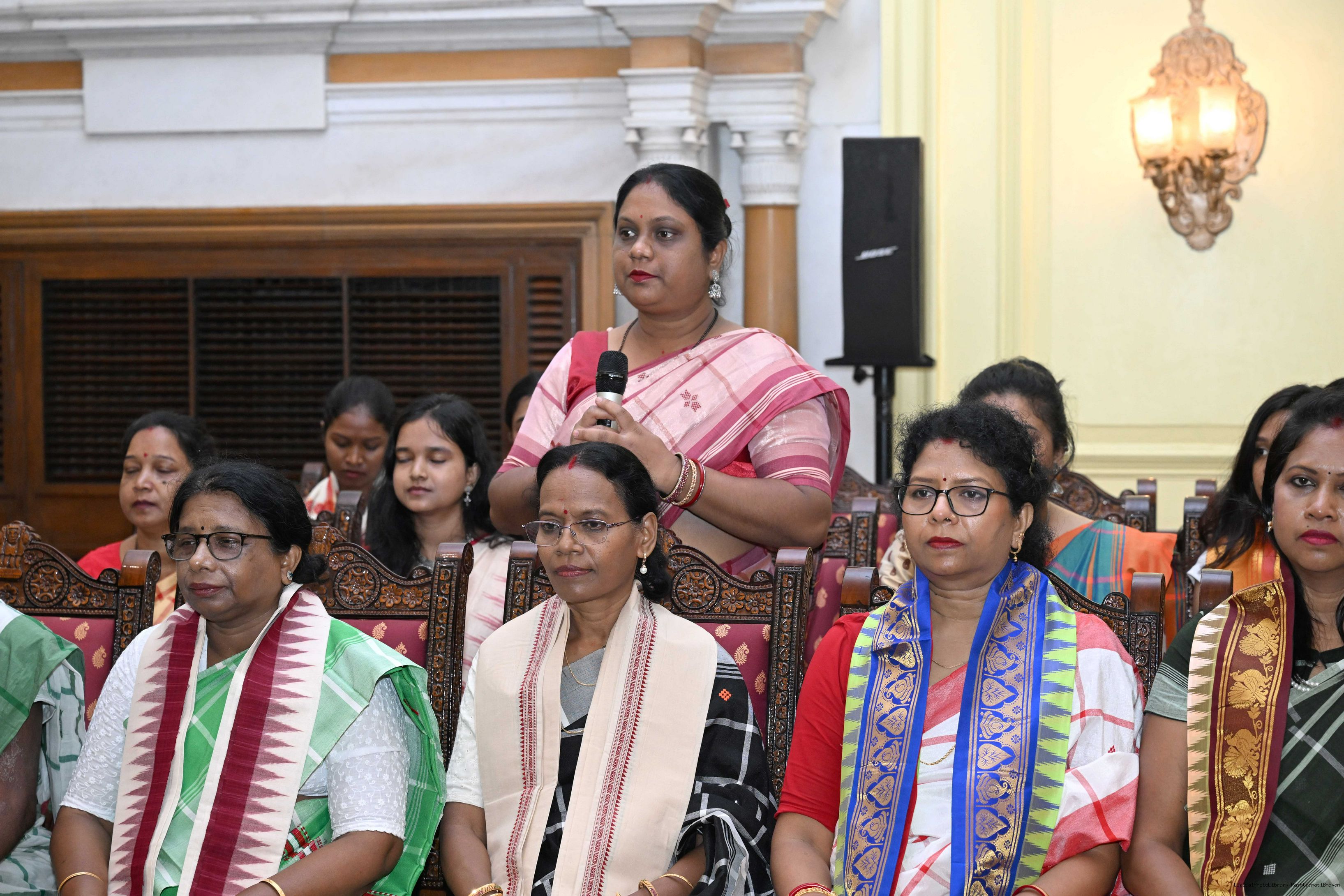 | Caption: | Smt Malat Murmu PublisherEditor FAGUN Bhubaneswar along with 44 others meeting with the President of India, Smt. Droupadi Murmu at Rashtrapati Bhavan on October 2, 2025. |