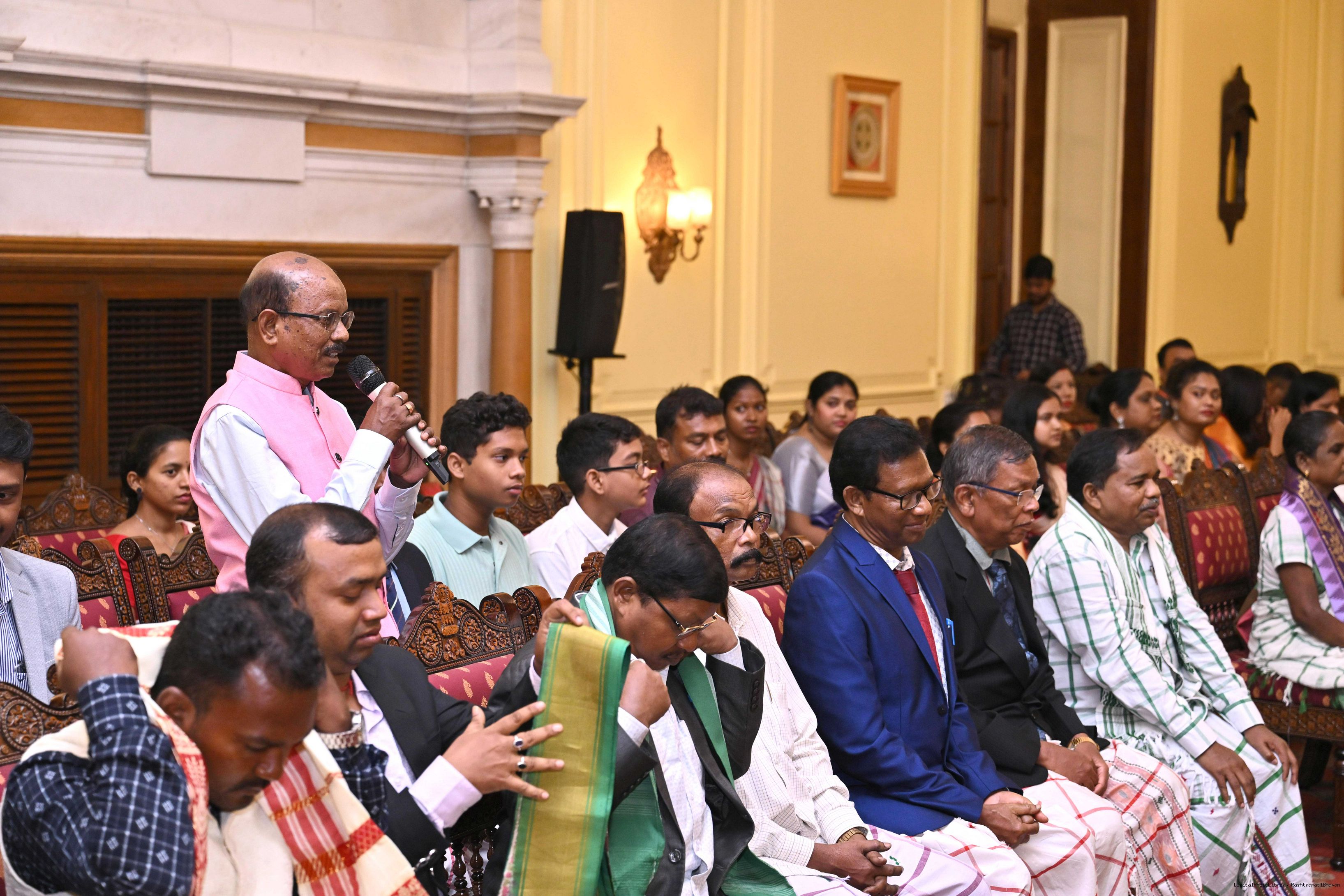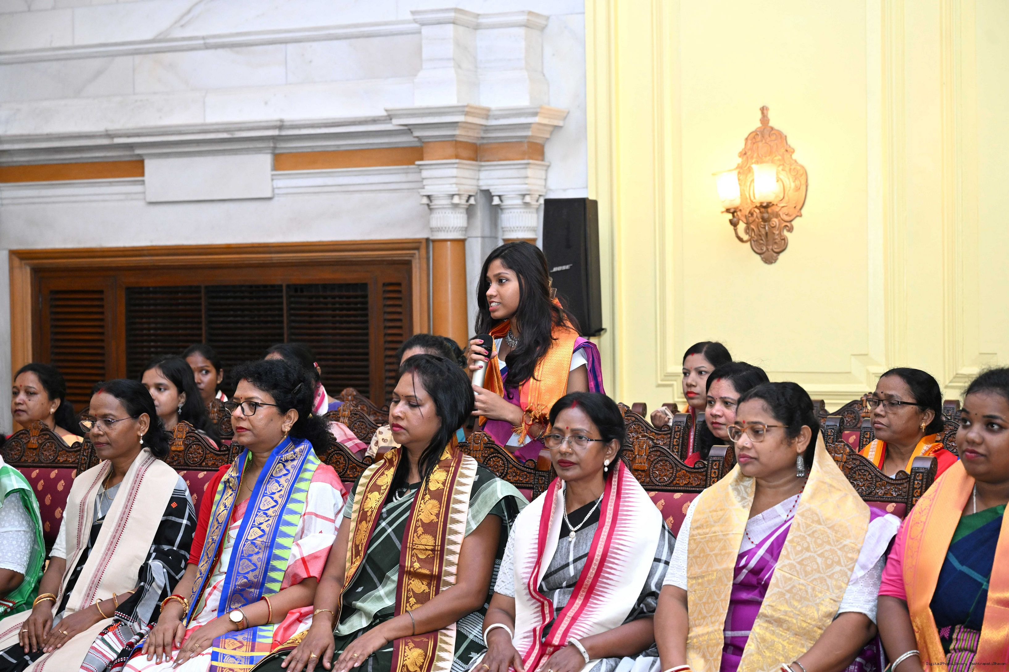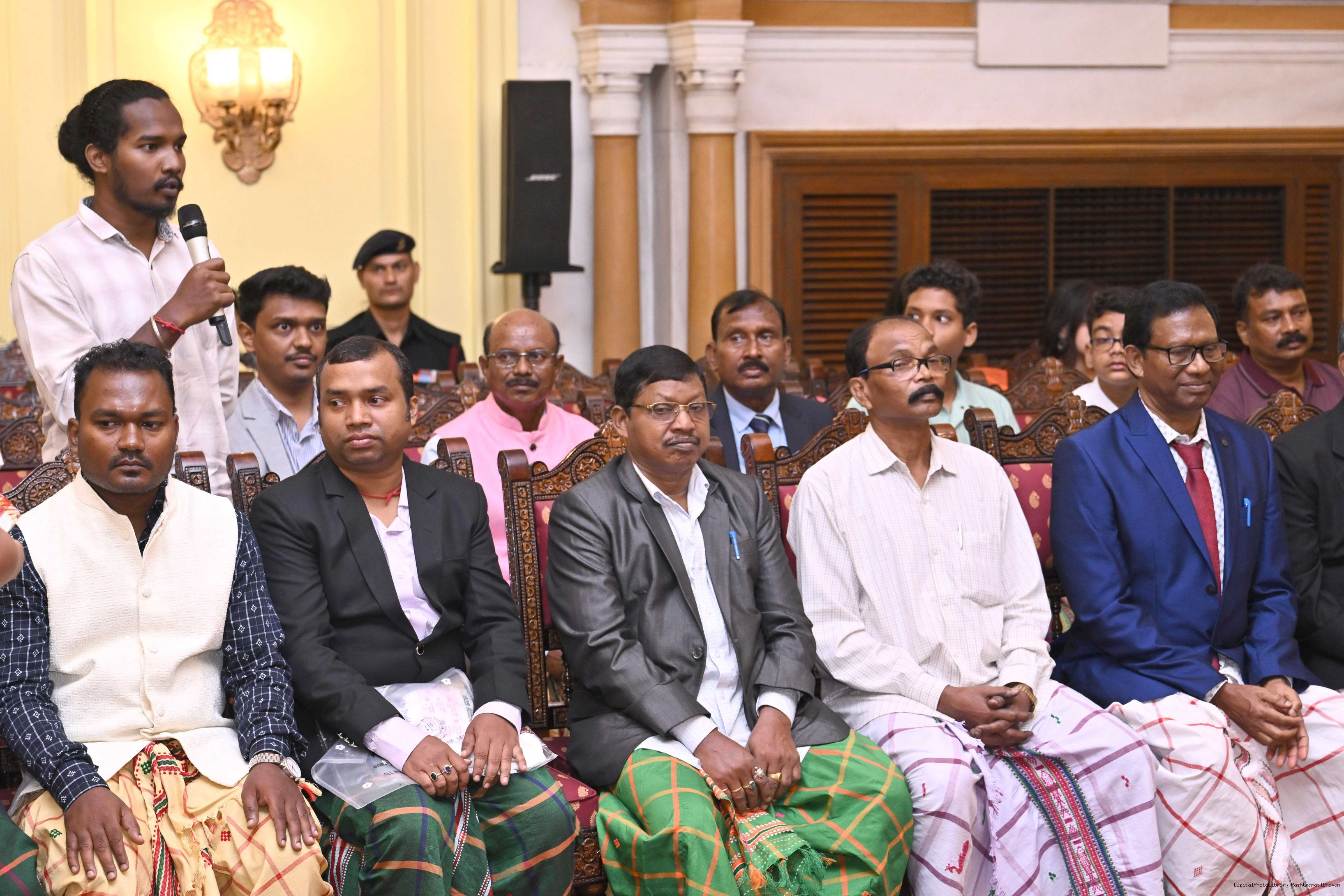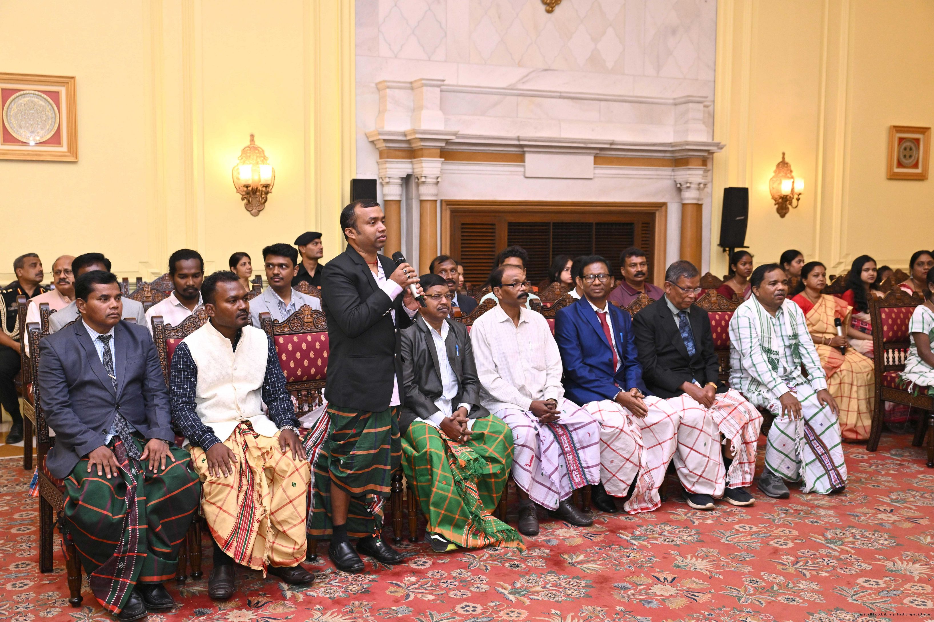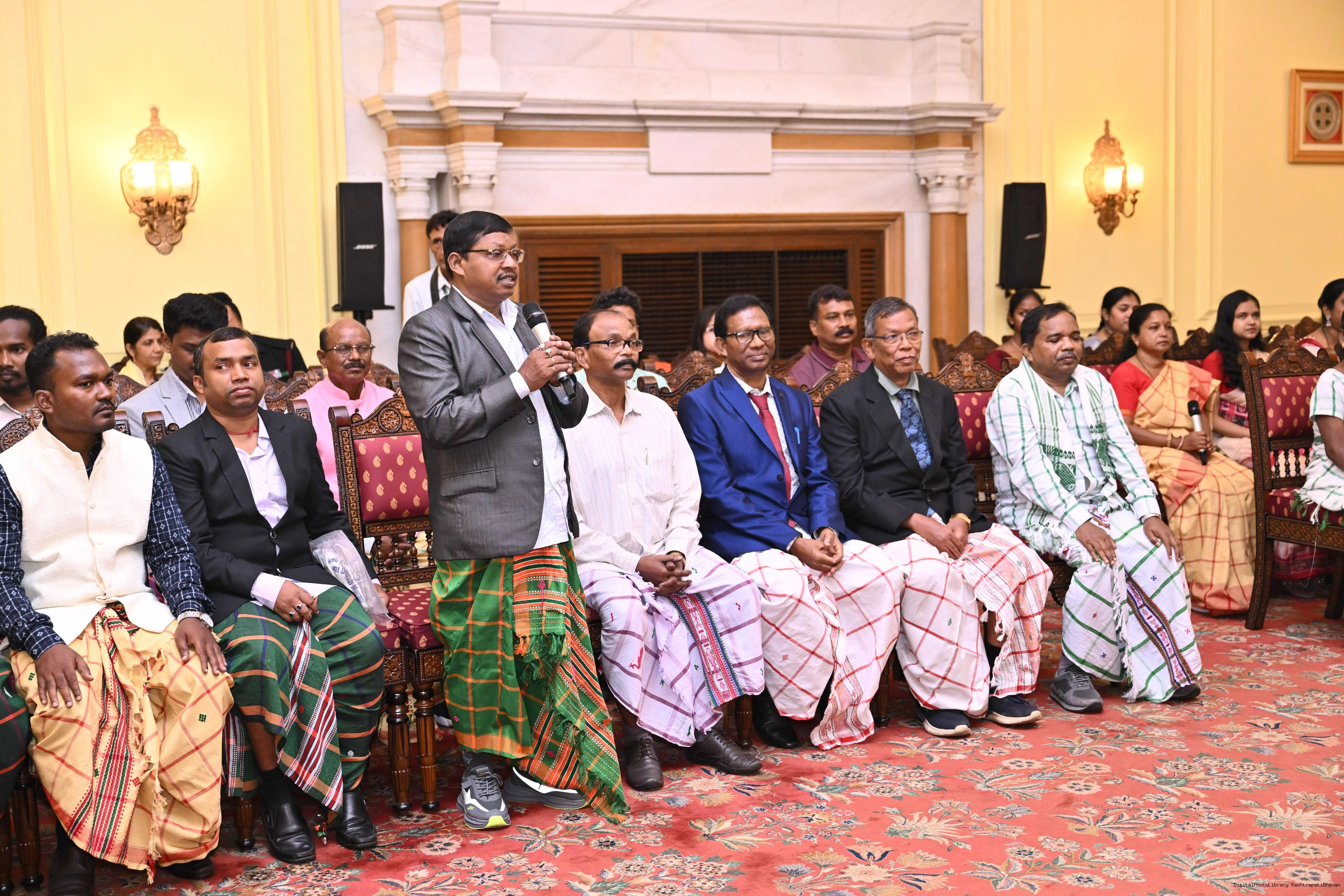 | Caption: | Smt Malat Murmu PublisherEditor FAGUN Bhubaneswar along with 44 others meeting with the President of India, Smt. Droupadi Murmu at Rashtrapati Bhavan on October 2, 2025. |