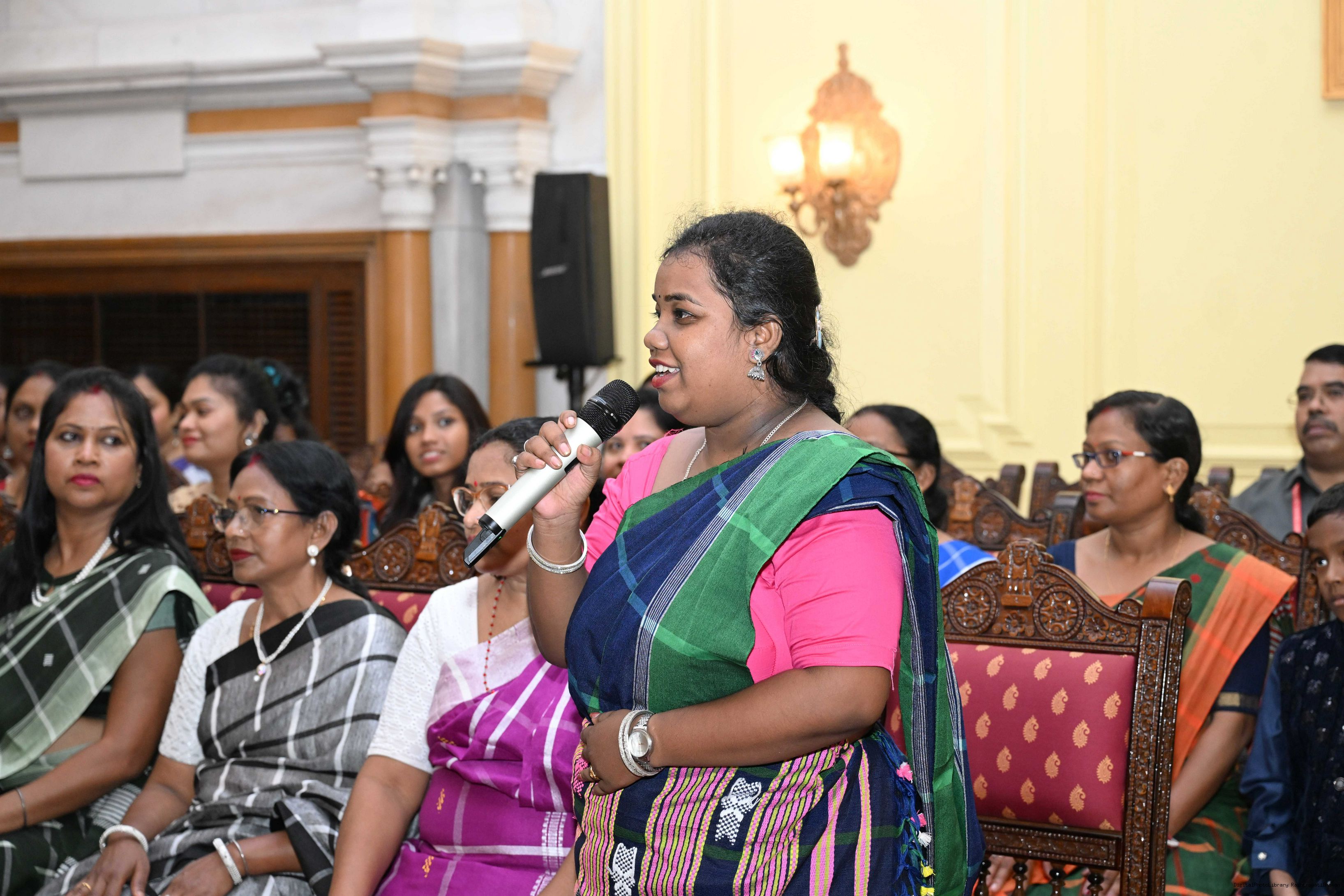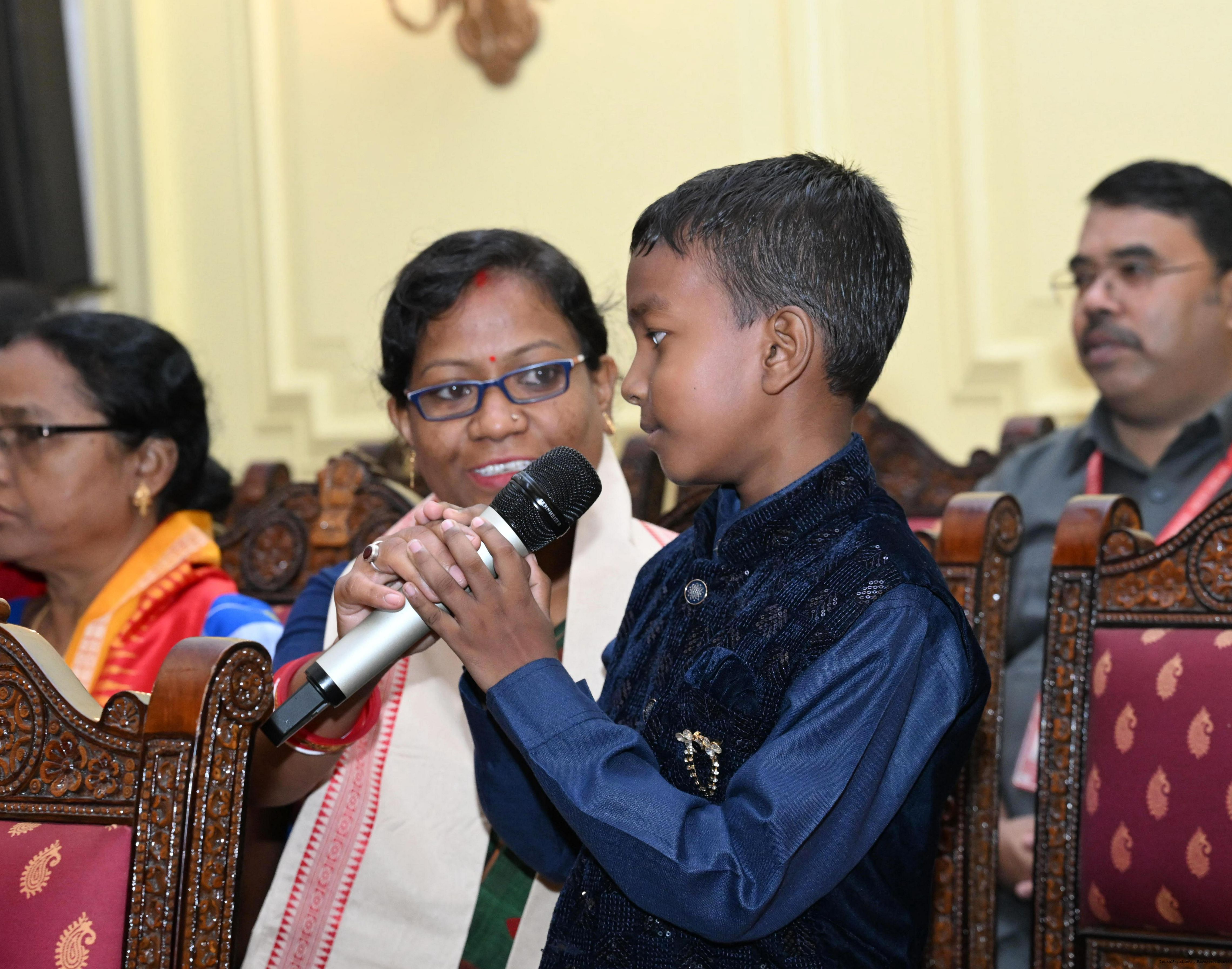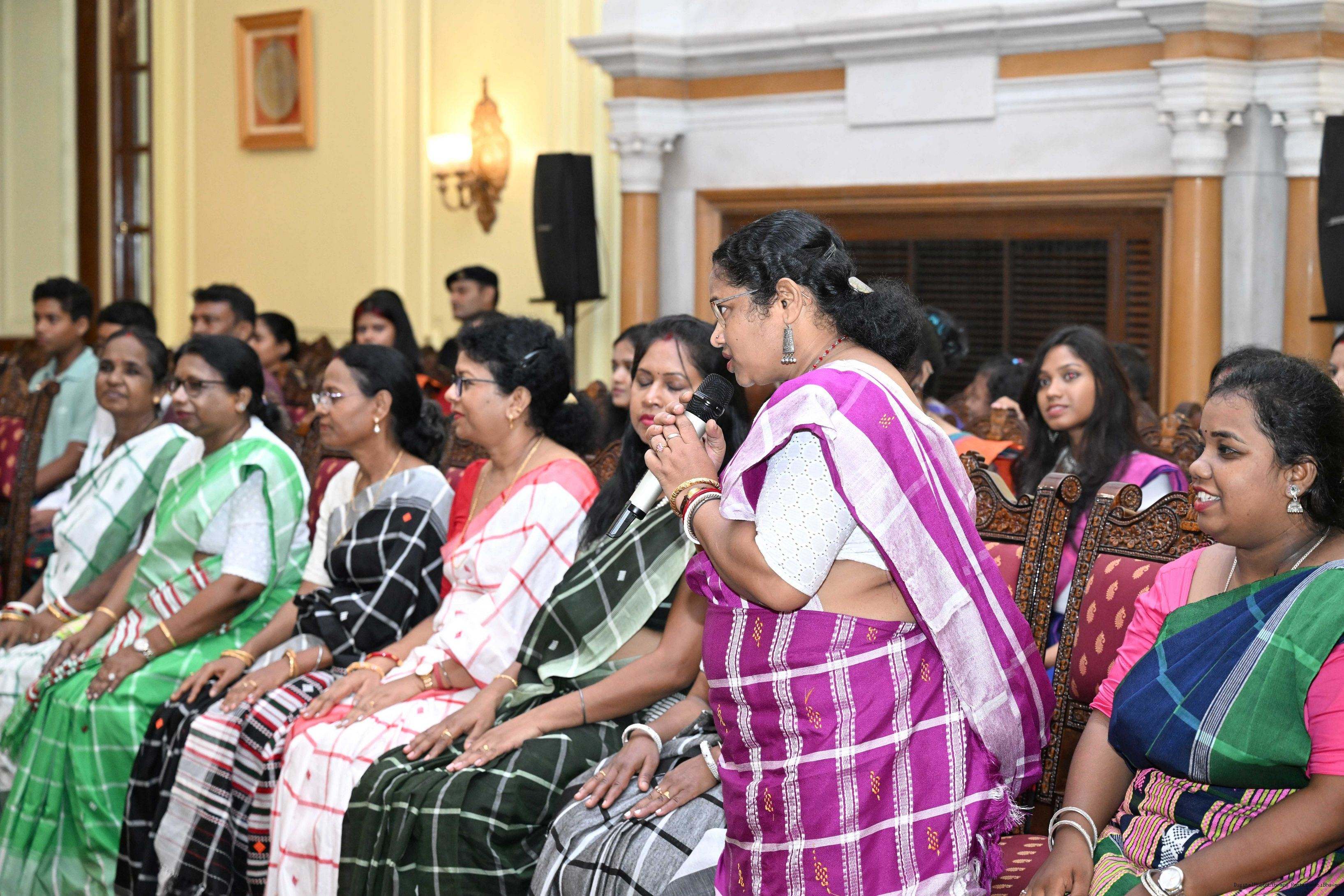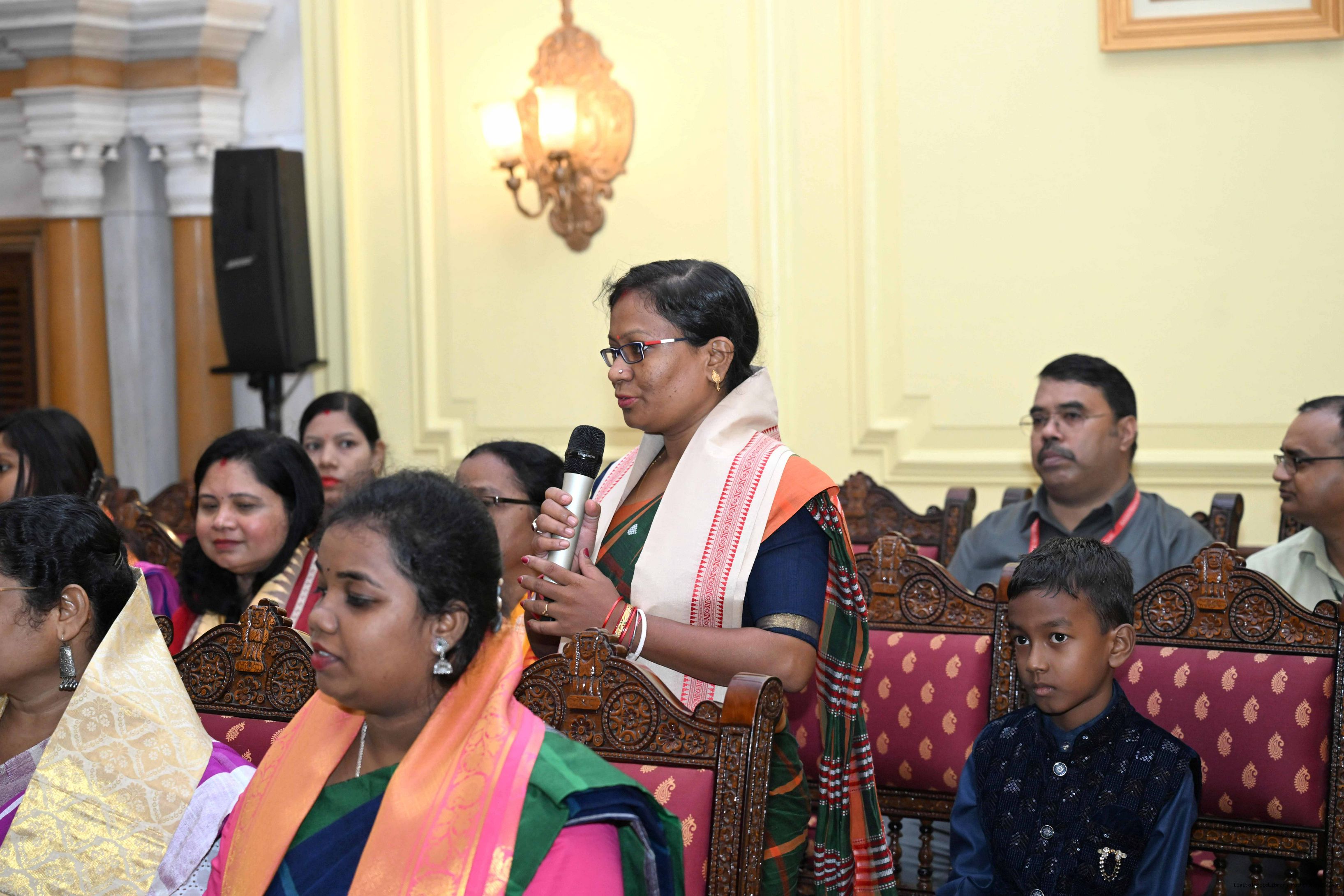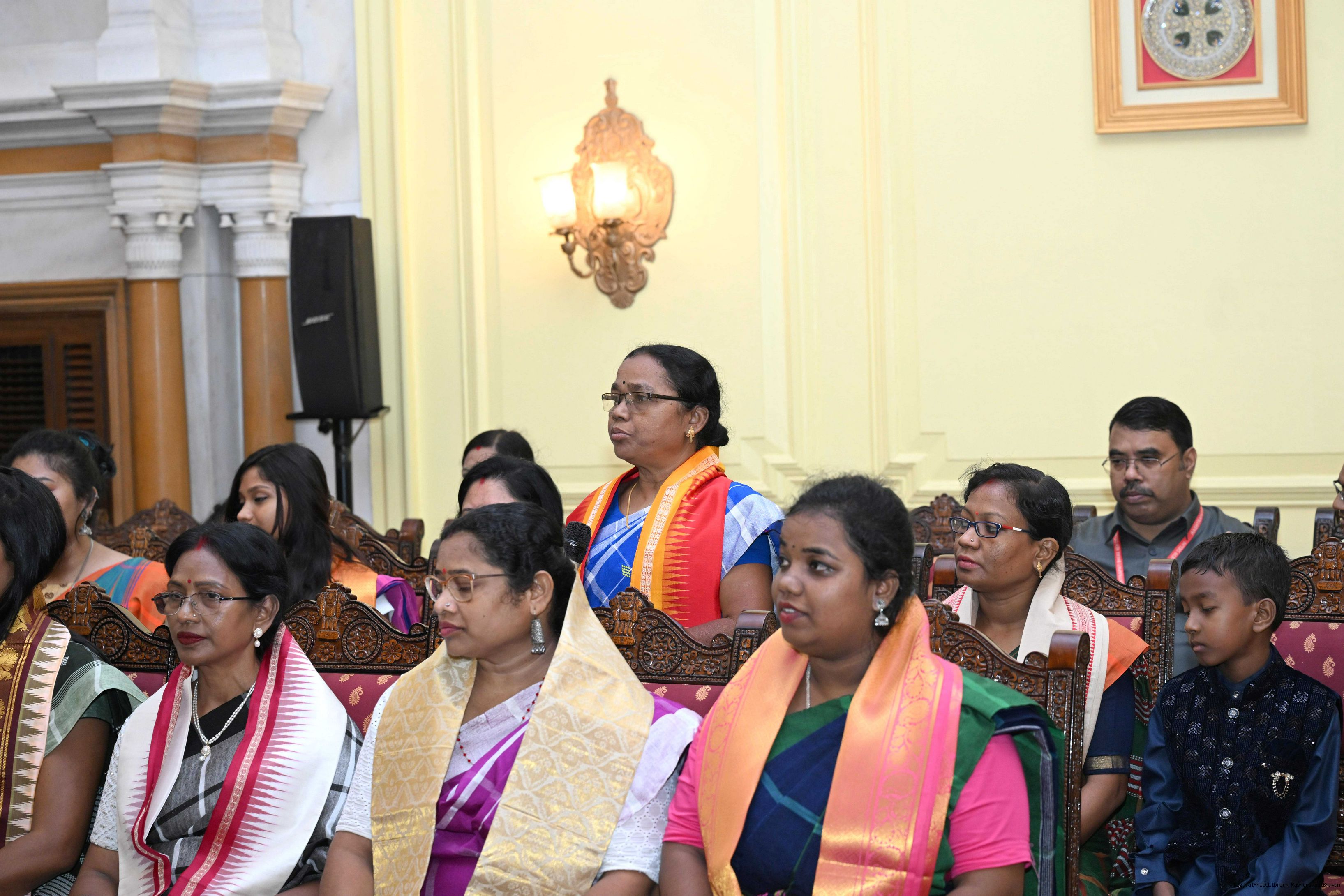 | Caption: | Smt Malat Murmu PublisherEditor FAGUN Bhubaneswar along with 44 others meeting with the President of India, Smt. Droupadi Murmu at Rashtrapati Bhavan on October 2, 2025. |