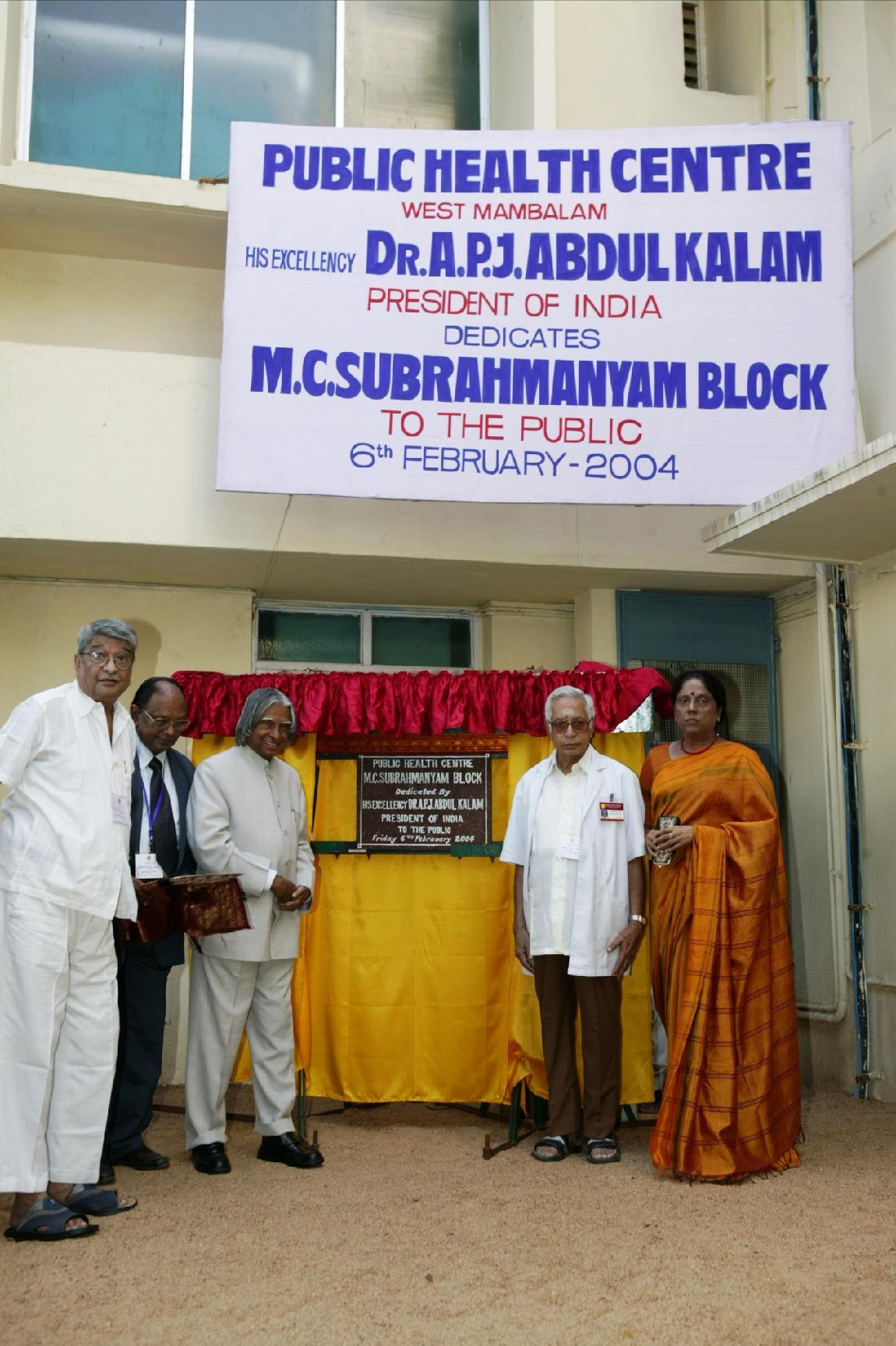 | Caption: | The President of India, Dr A P J Abdul Kalam visiting the Public Health Centre and dedicating the MC Subrahmaniam Block to the Public at West Mambalam in Chennai, Tamil Nadu on Feb 06, 2004 |