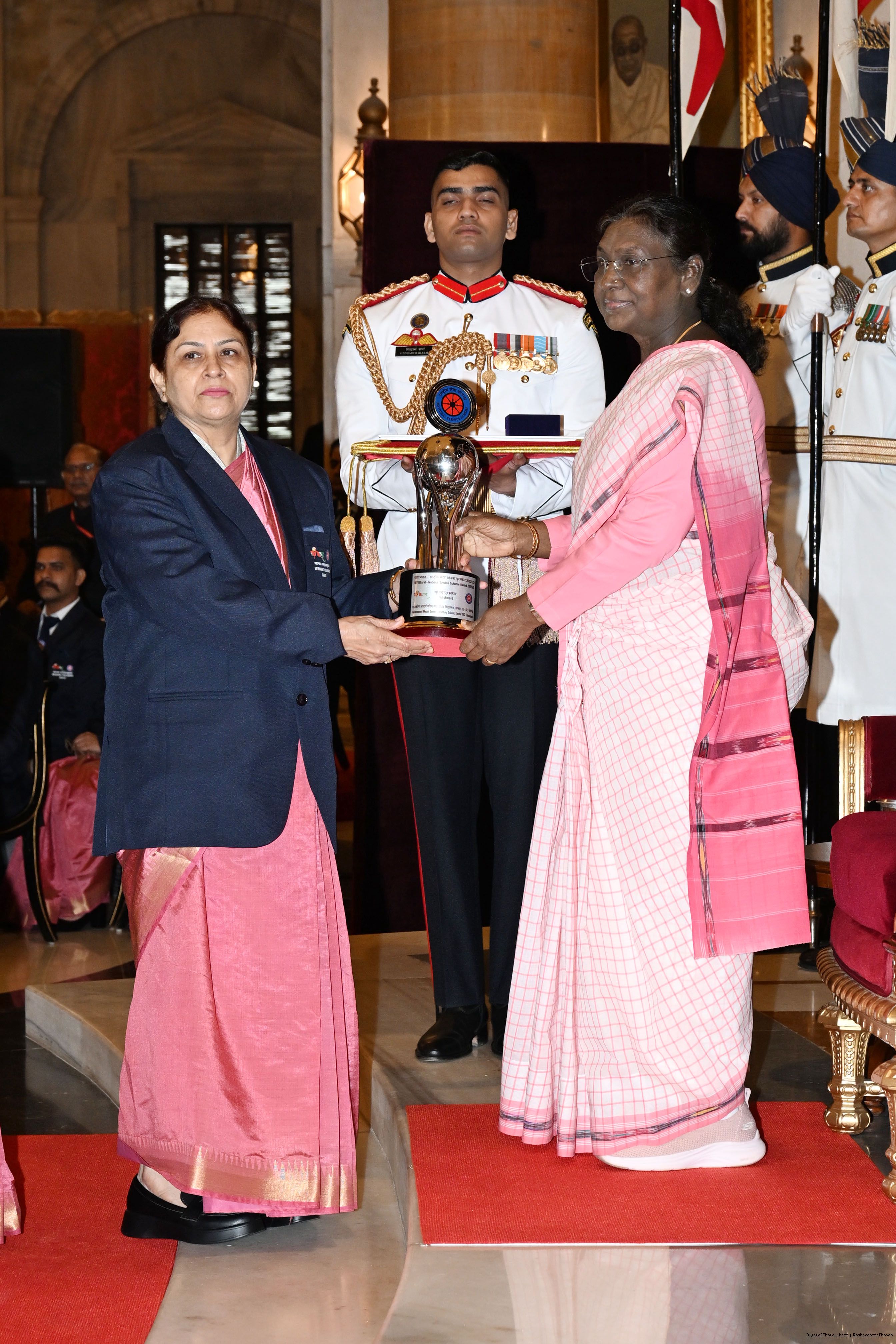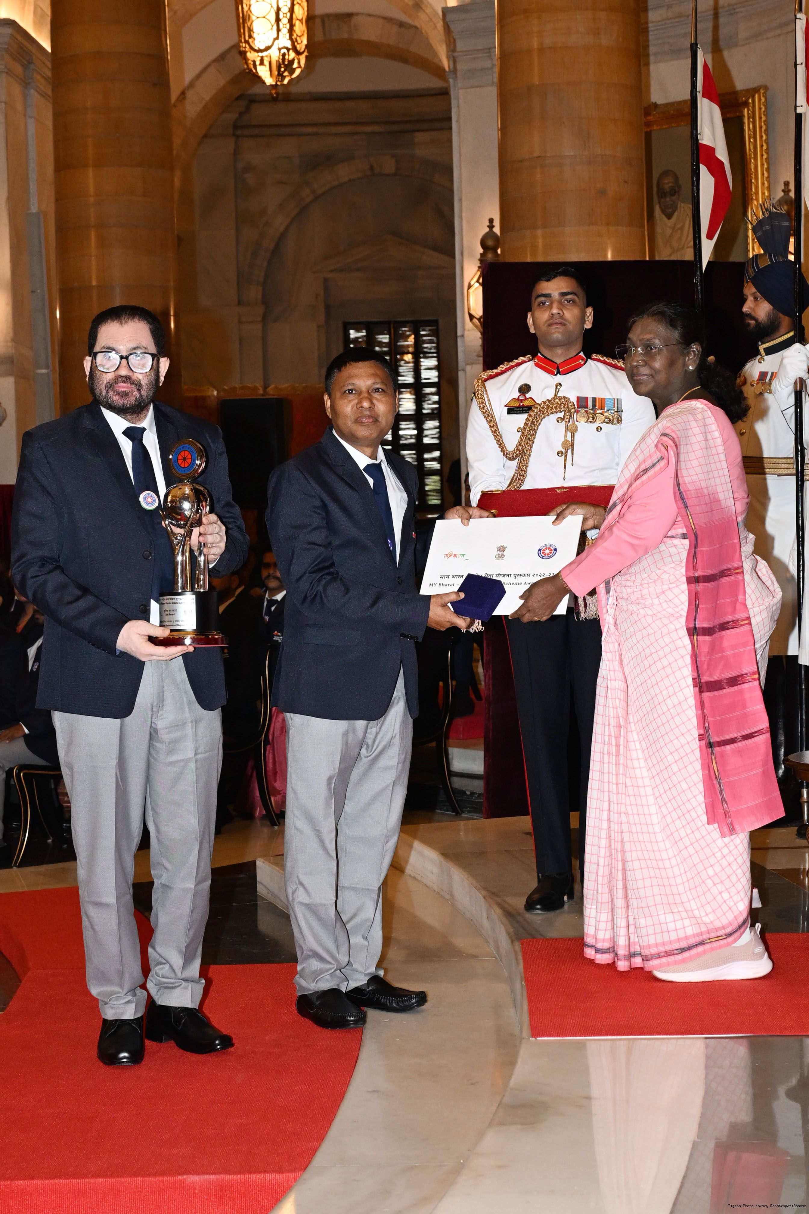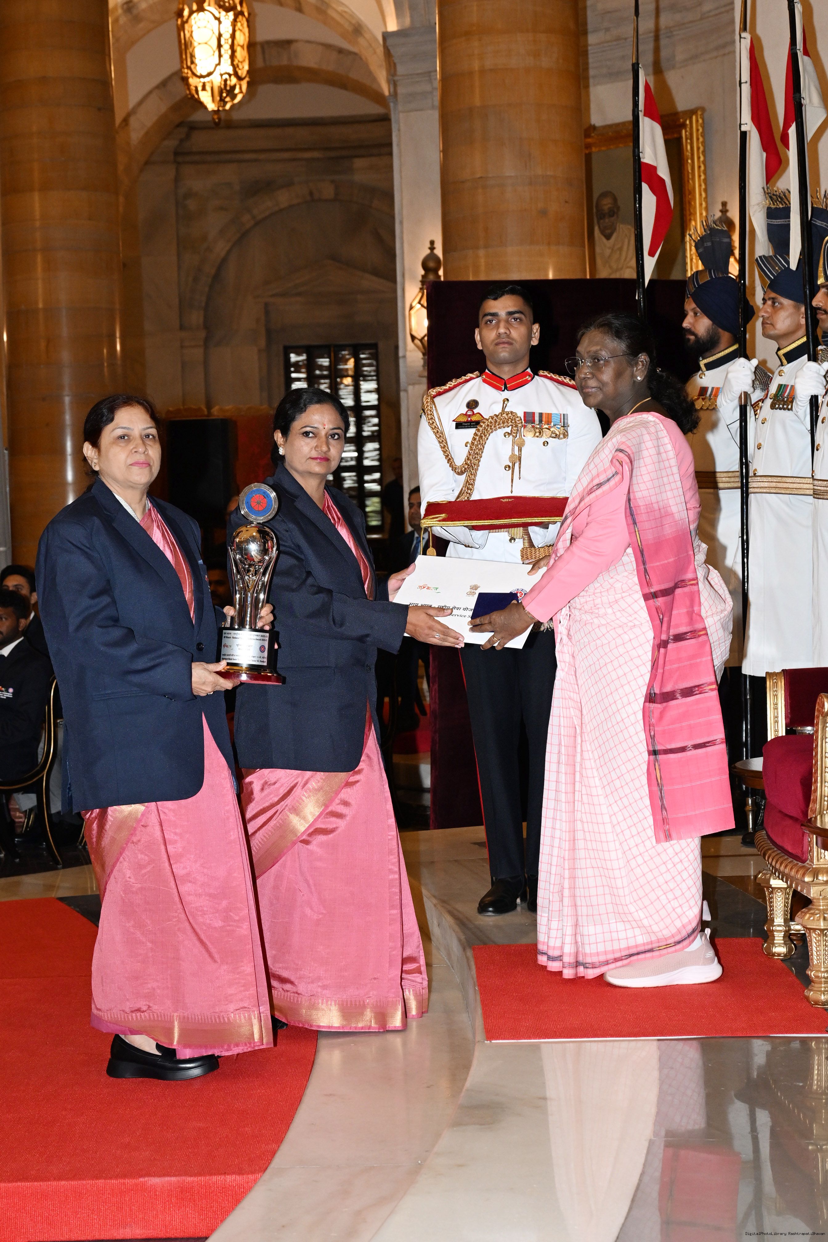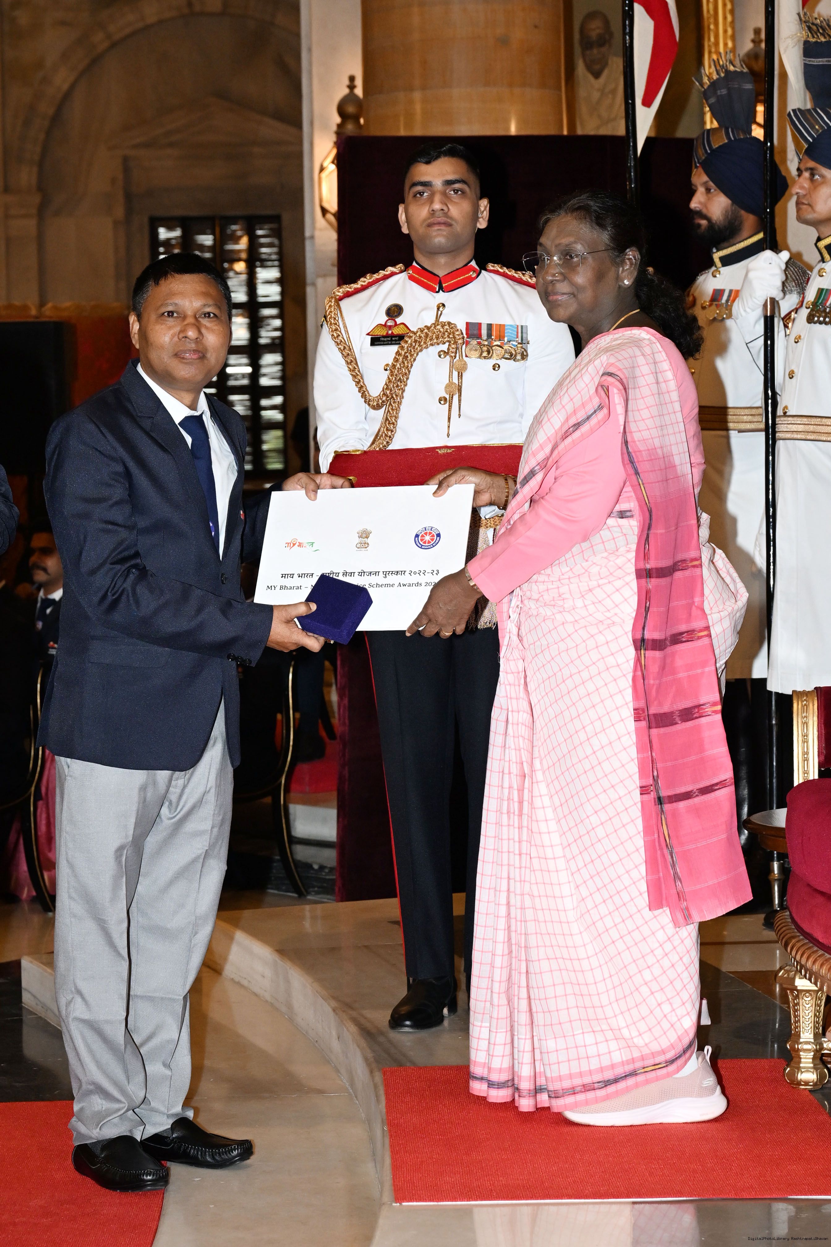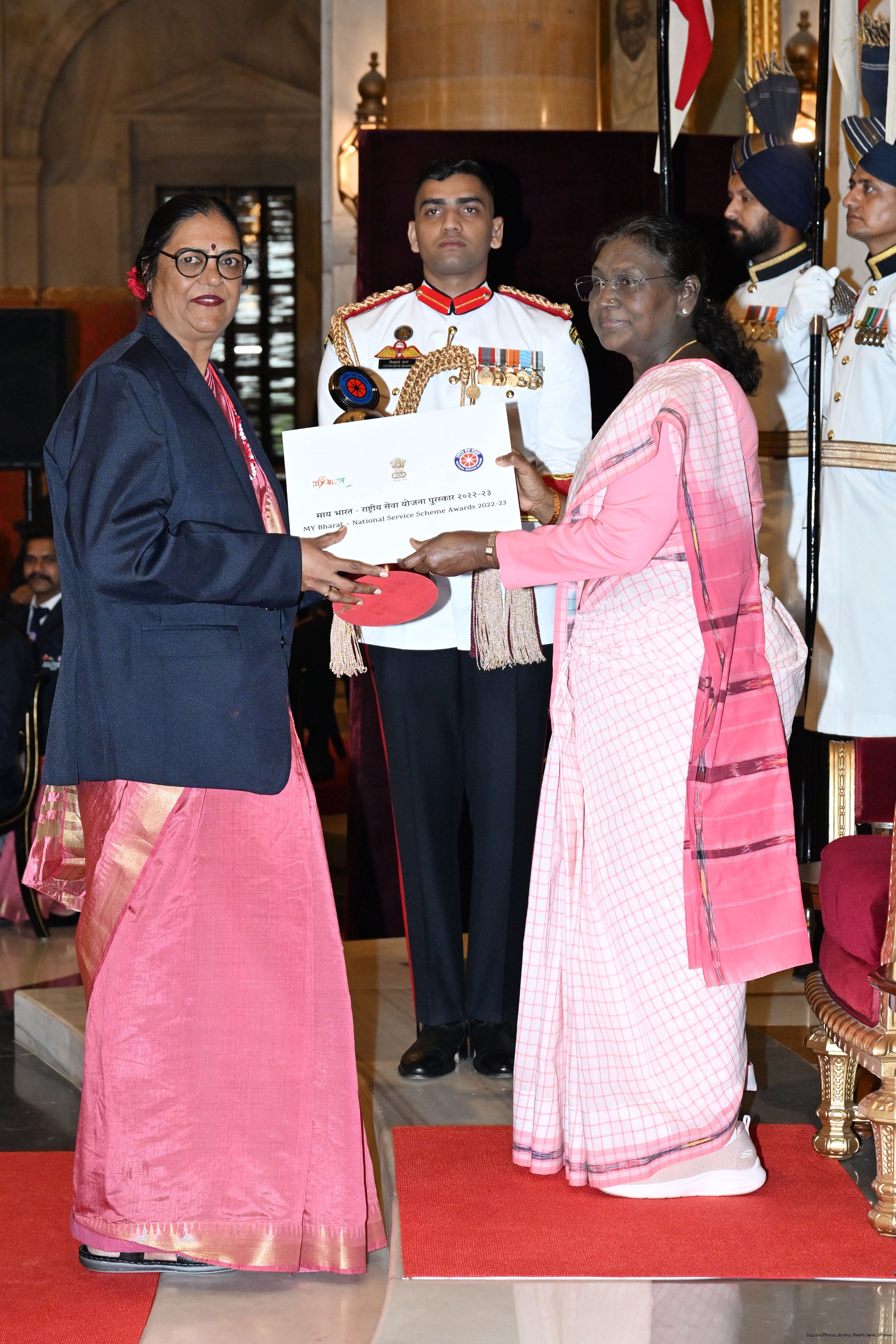 | Caption: | The President of India, Smt Droupadi Murmu, presented the MY Bharat - National Service Scheme Awards for the year 2022-23 at Rashtrapati Bhavan on October 6, 2025. |