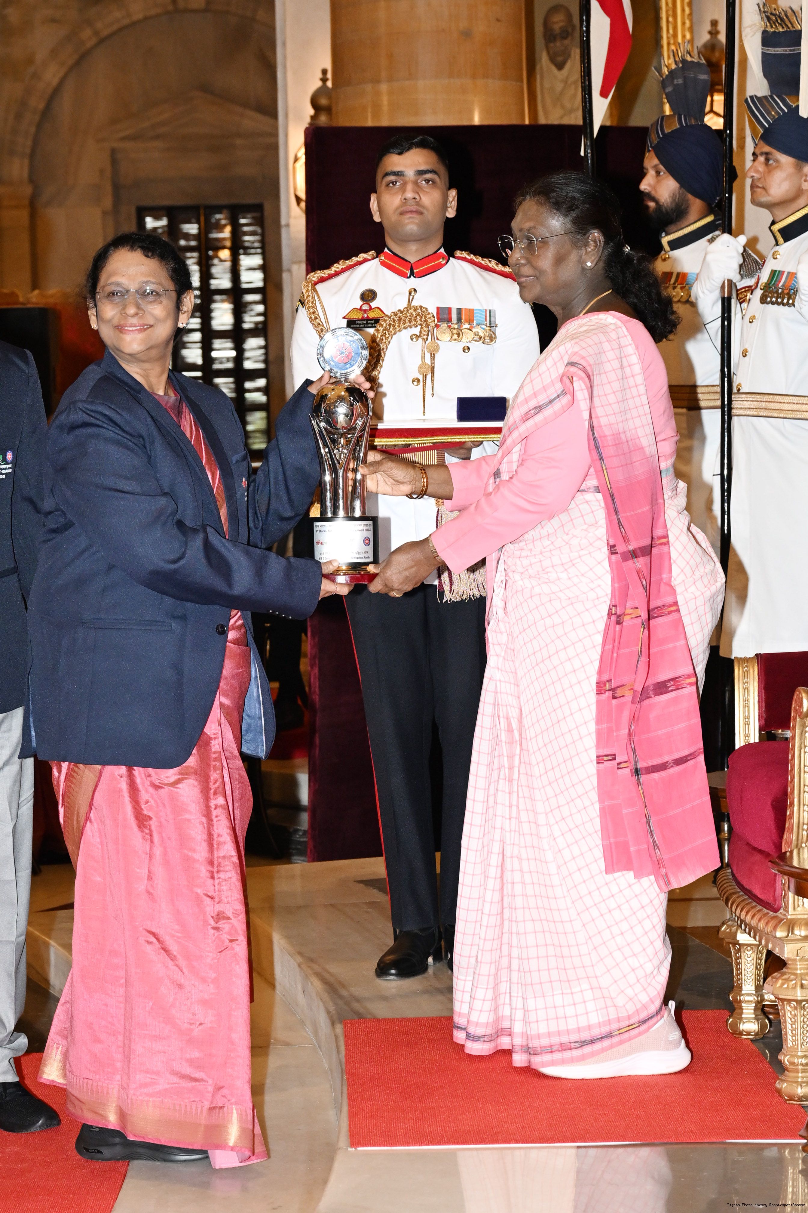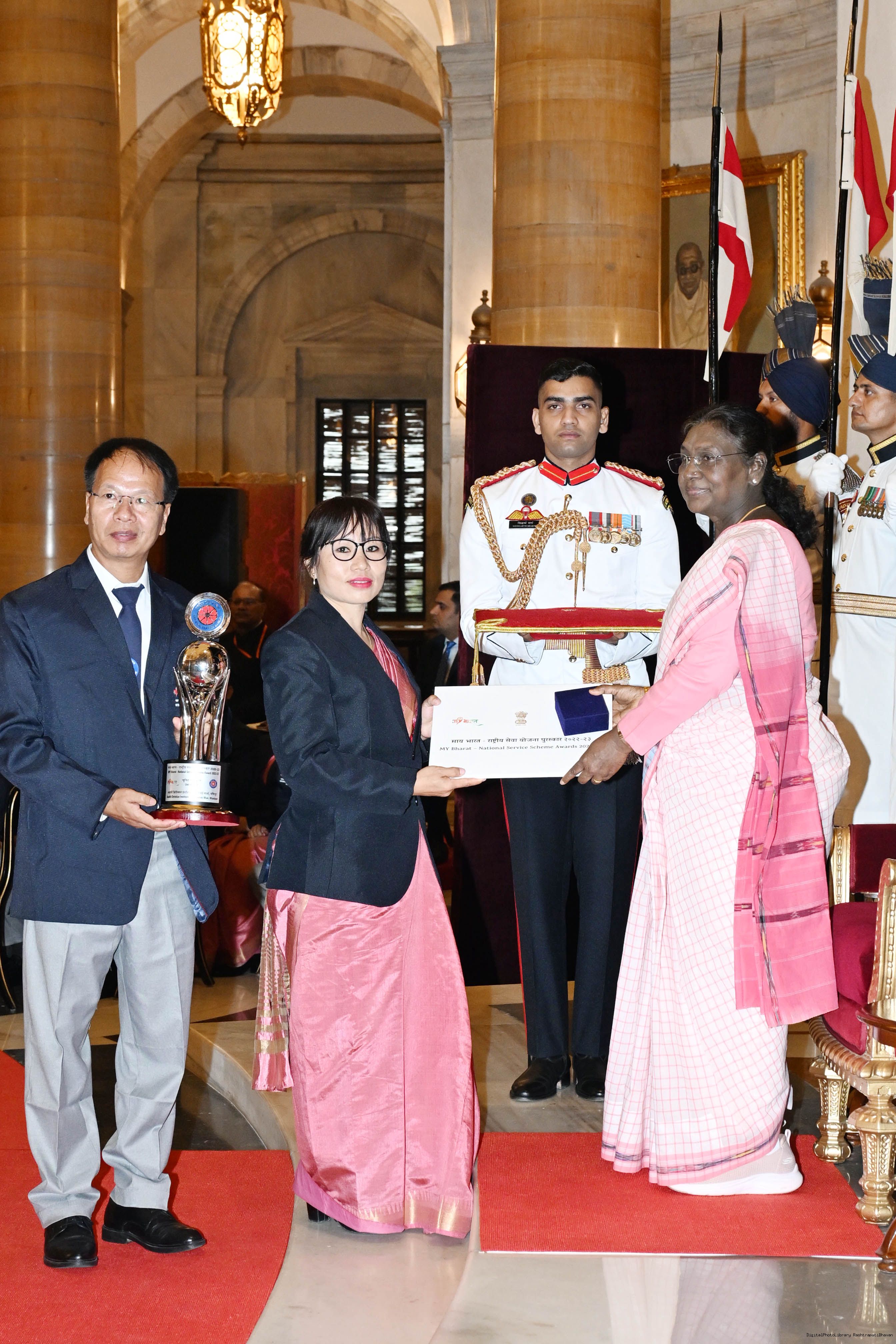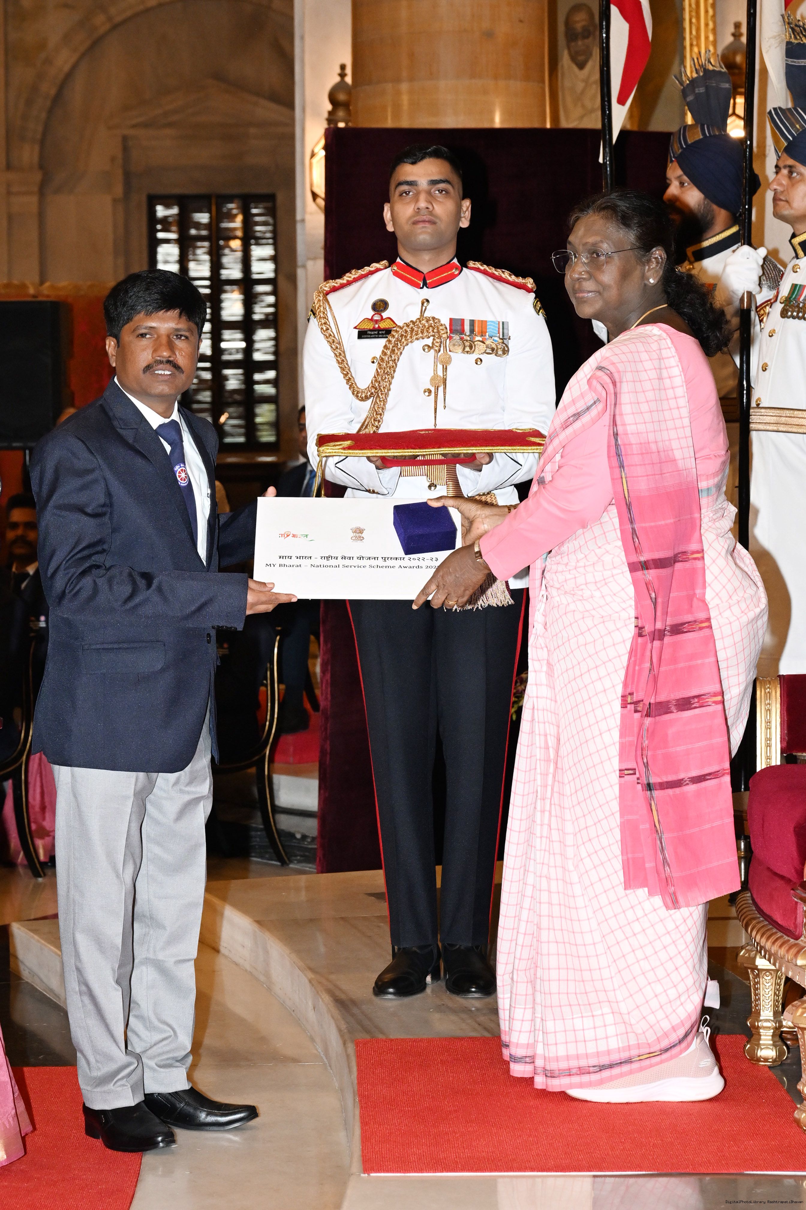 | Caption: | The President of India, Smt Droupadi Murmu, presented the MY Bharat - National Service Scheme Awards for the year 2022-23 at Rashtrapati Bhavan on October 6, 2025. |