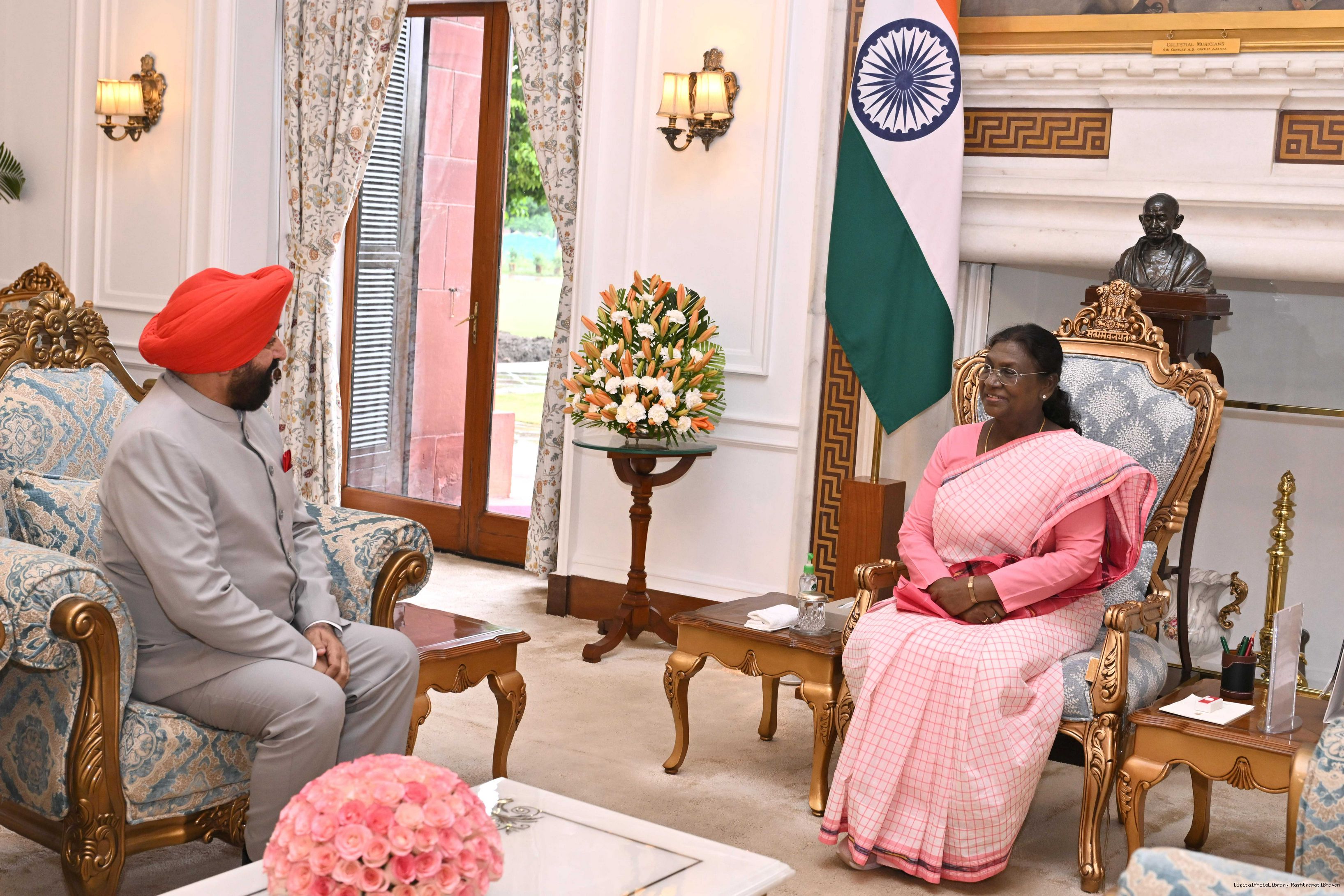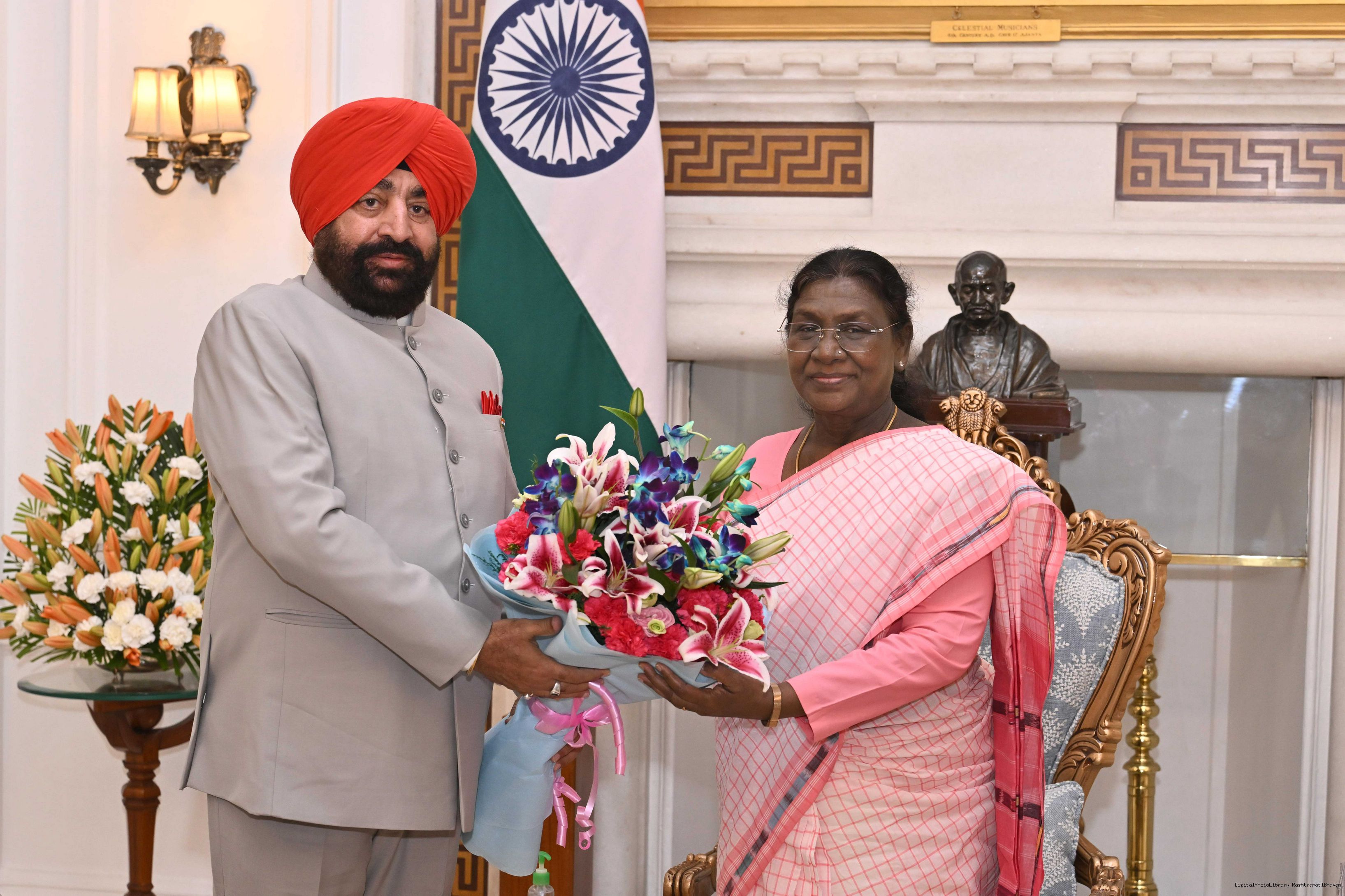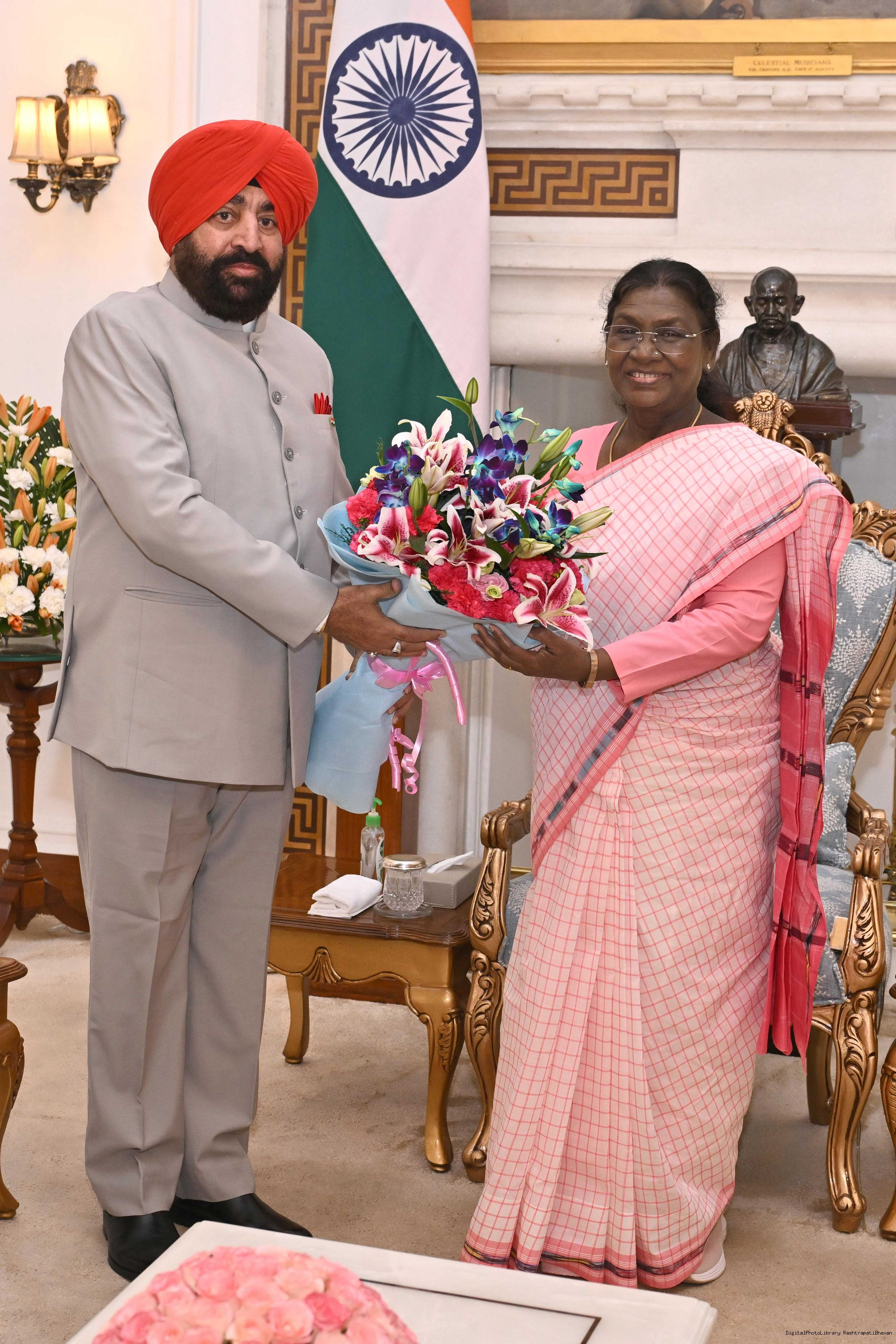 | Caption: | The Lieutenant General Gurmit Singh (Retd), Governor of Uttarakhand, called on the President of India, Smt. Droupadi Murmu at Rashtrapati Bhavan on October 6, 2025. |