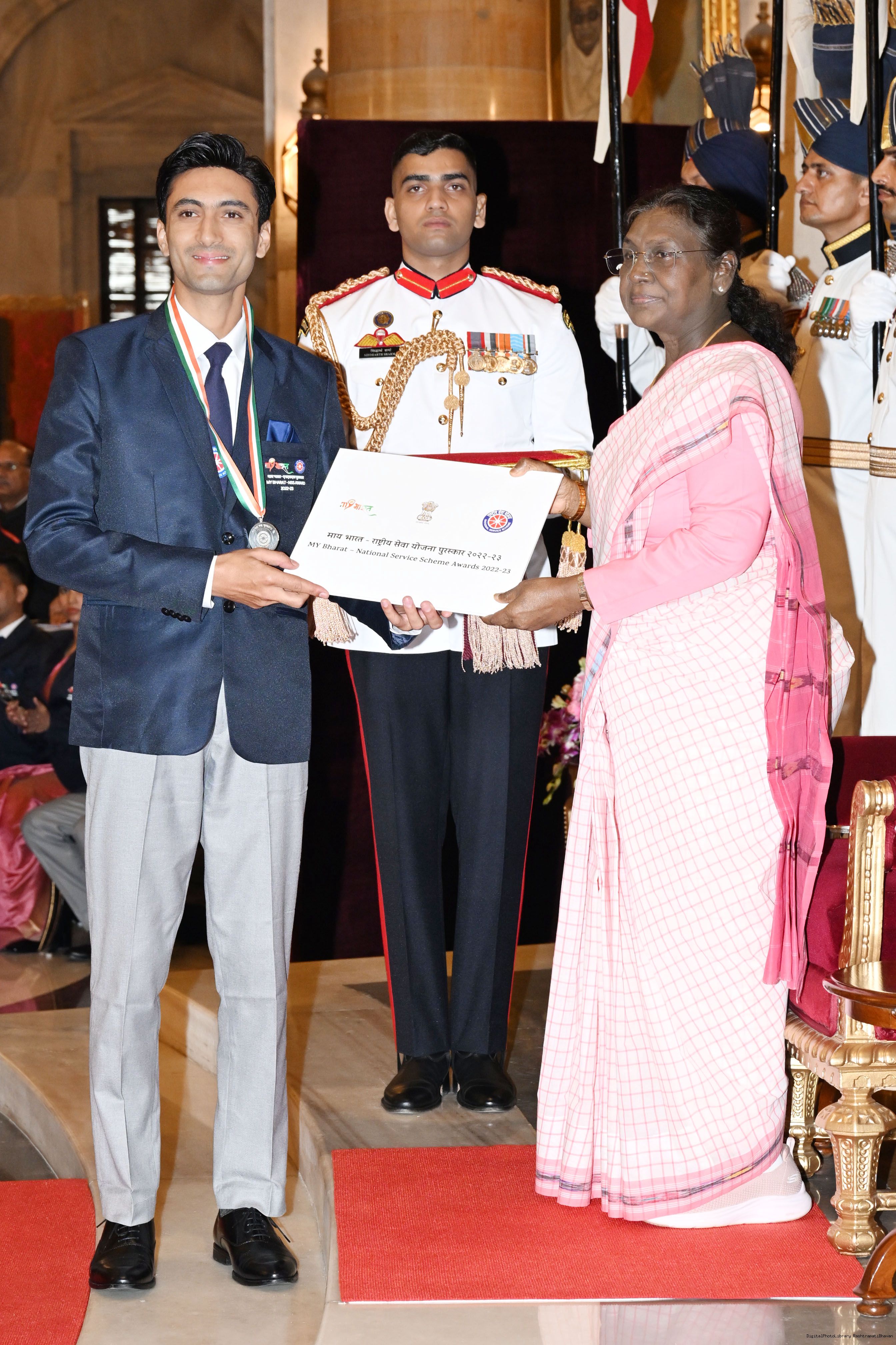 | Caption: | The President of India, Smt Droupadi Murmu, presented the MY Bharat - National Service Scheme Awards for the year 2022-23 at Rashtrapati Bhavan on October 6, 2025. |
