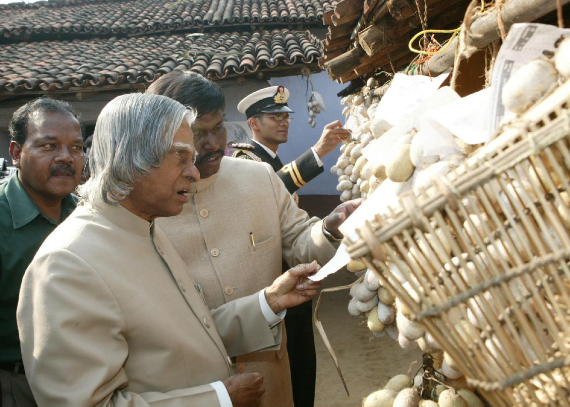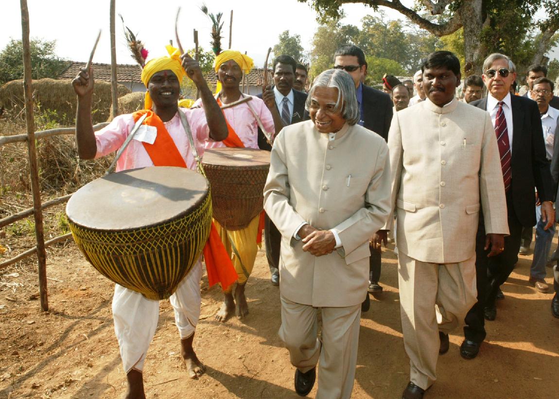 | Caption: | The President of India, Dr A P J Abdul Kalam interacting with the Tribals of Saraikela Kharswan District at Jamshedpur in Jharkhand on Feb 13, 2004 |