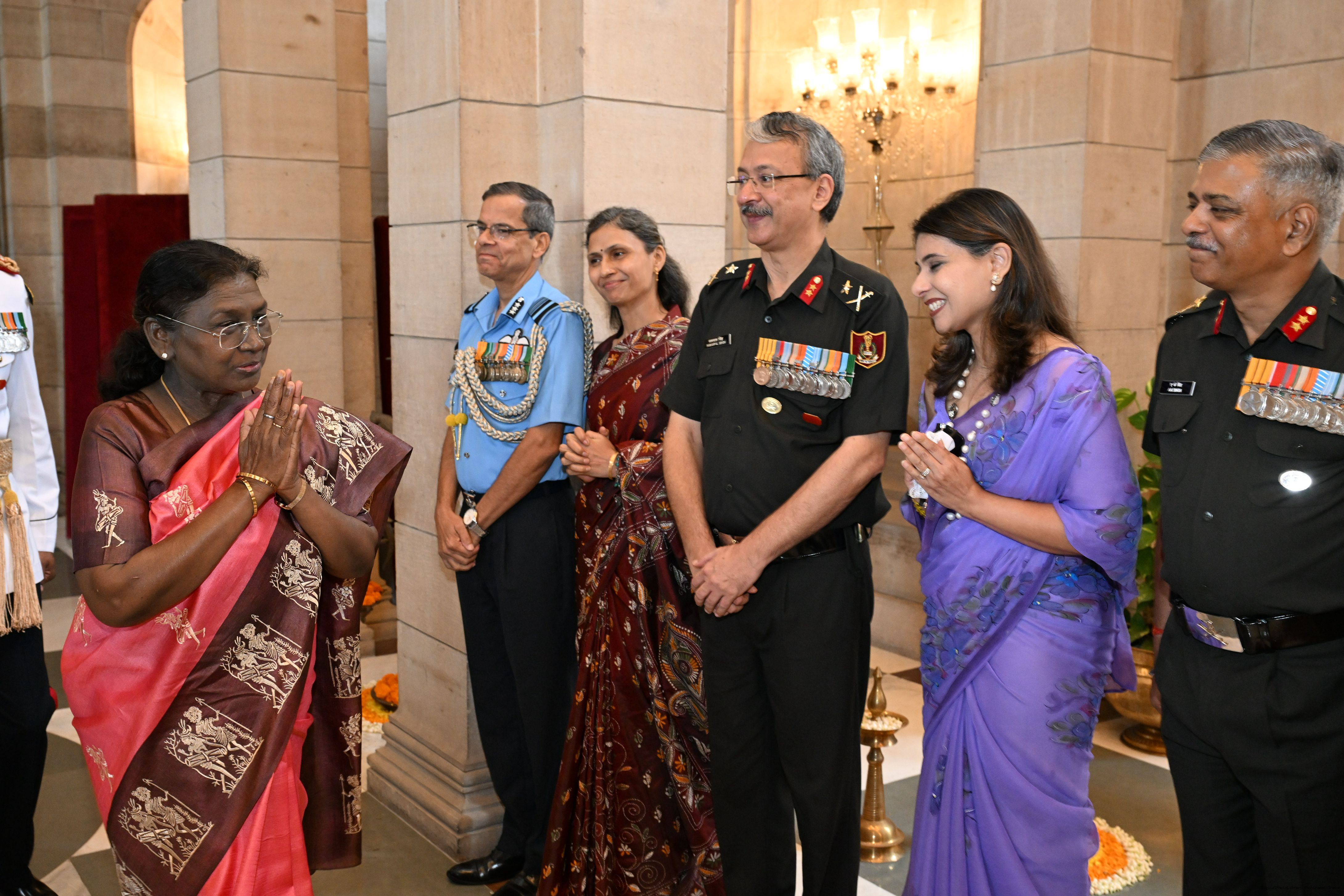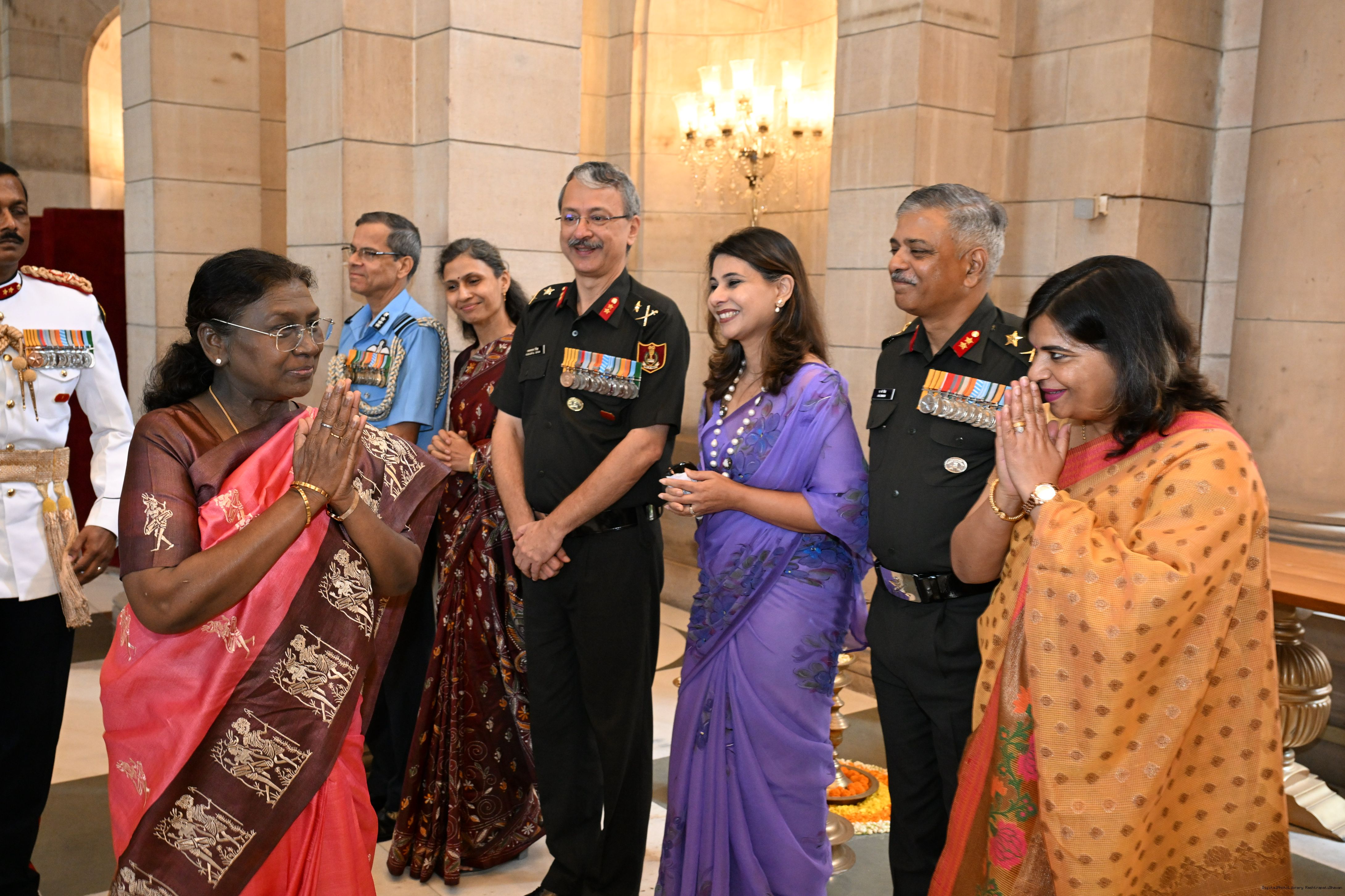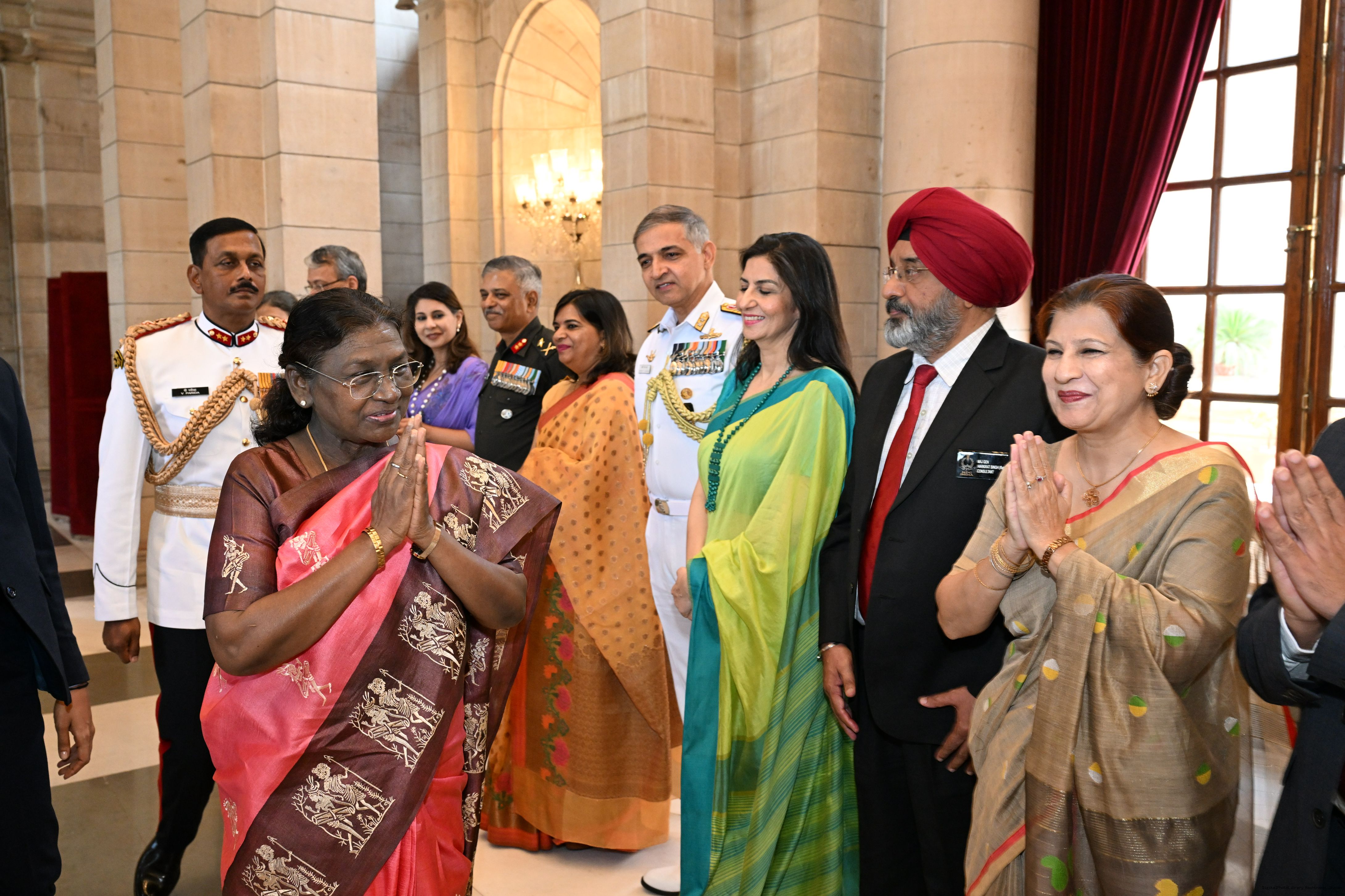 | Caption: | The faculty and course members of the 65th National Defence College Course called on the President of India, Smt Droupadi Murmu, at Rashtrapati Bhavan on October 7, 2025. |