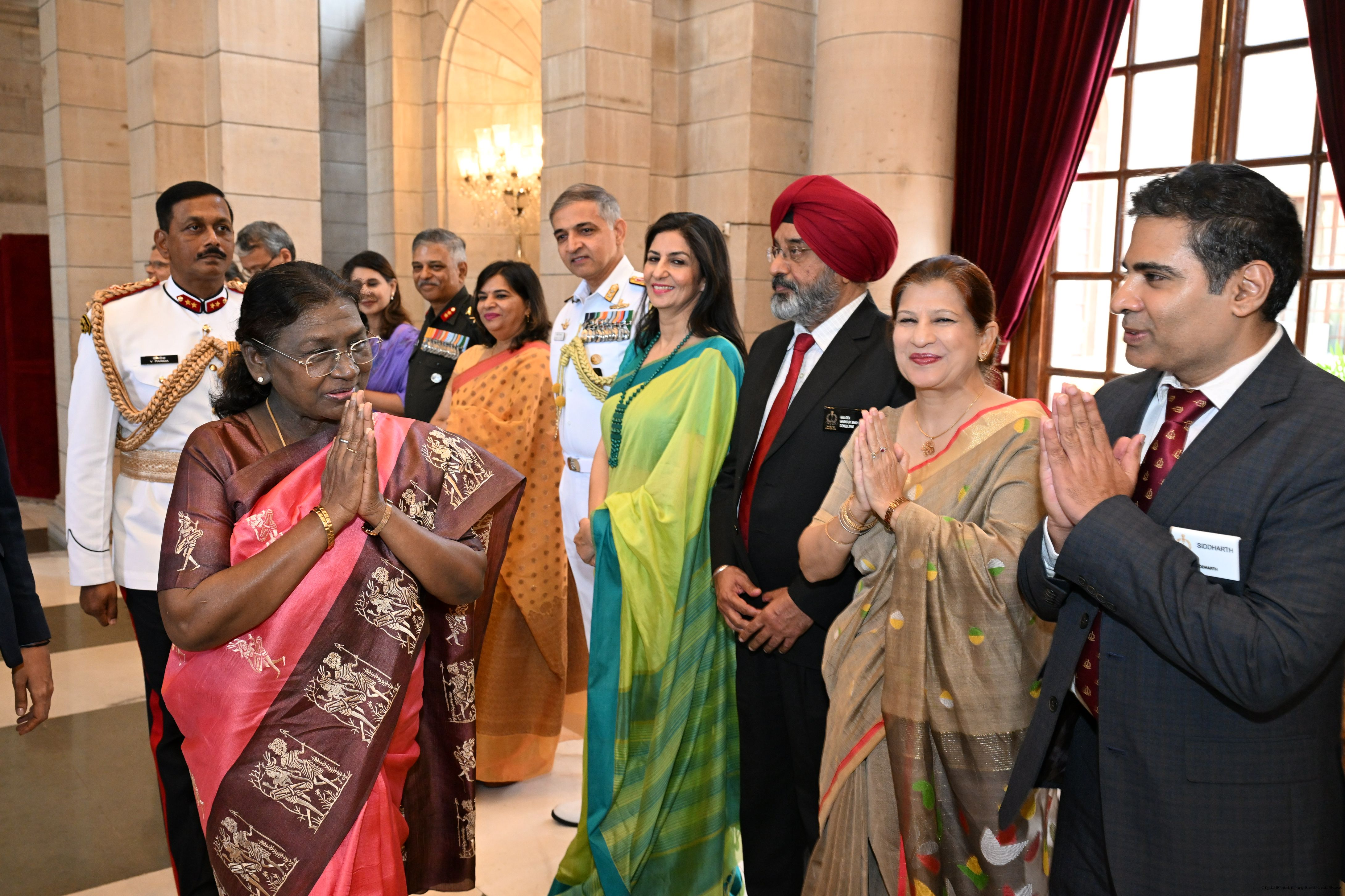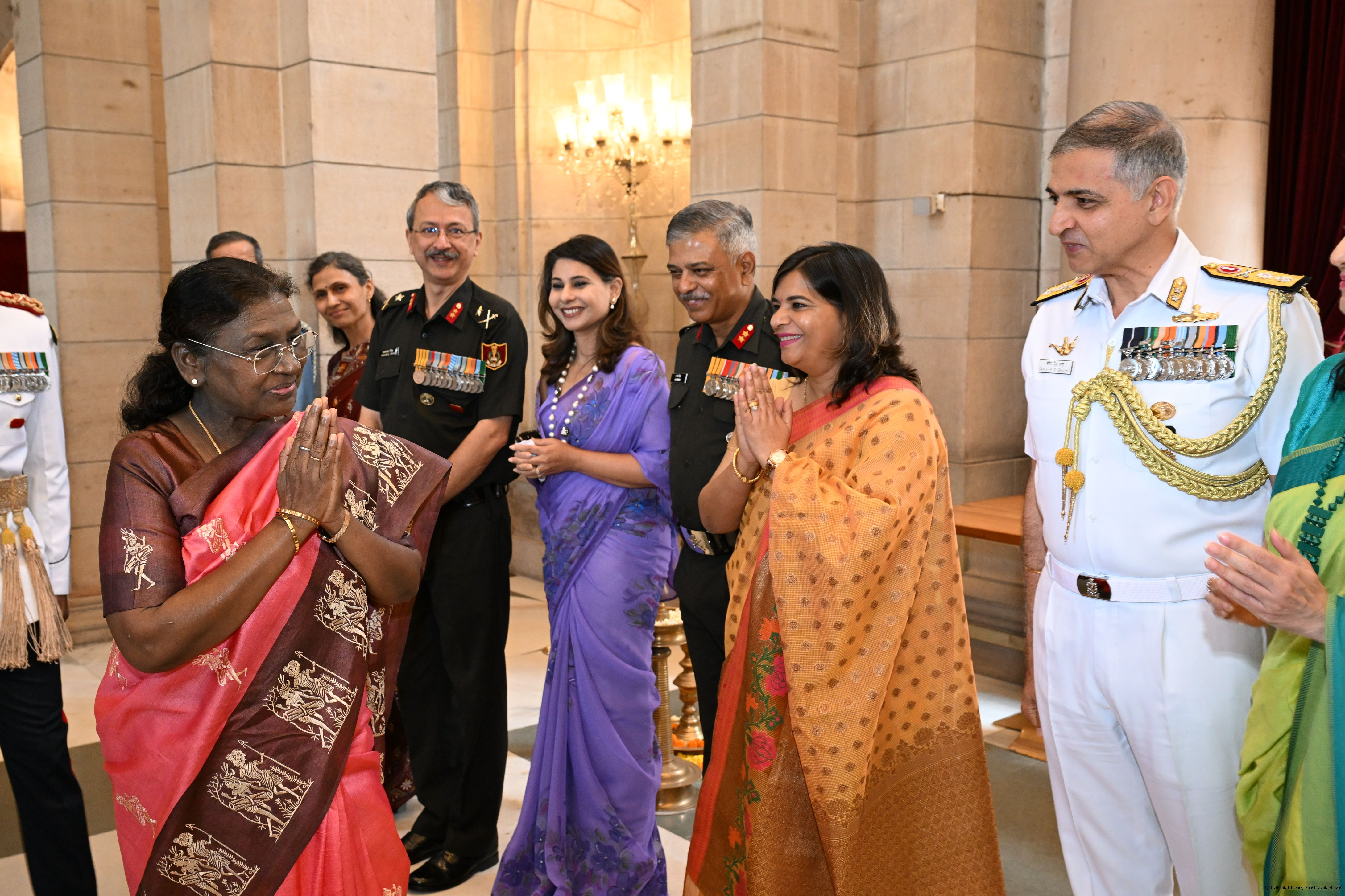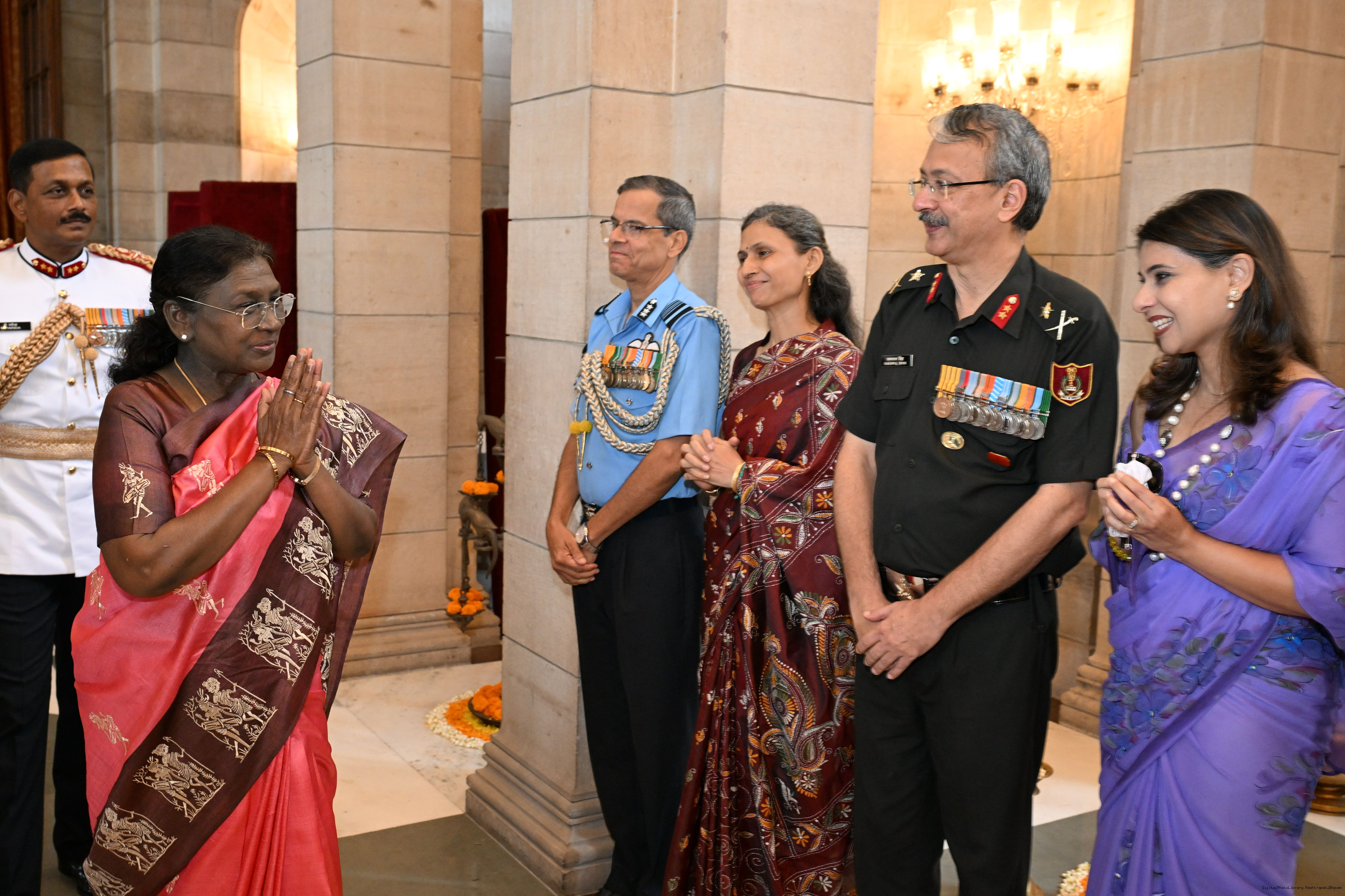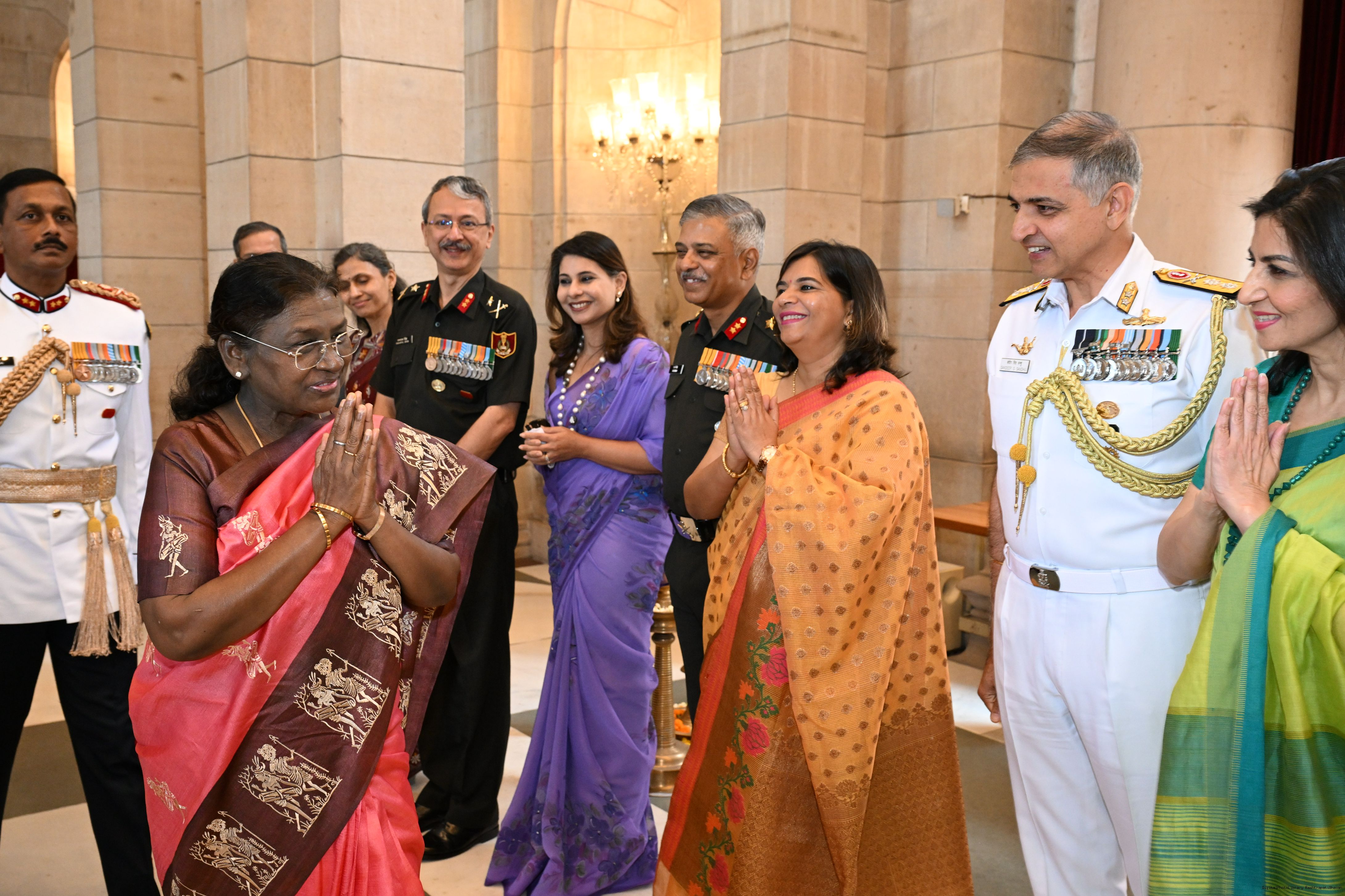 | Caption: | The faculty and course members of the 65th National Defence College Course called on the President of India, Smt Droupadi Murmu, at Rashtrapati Bhavan on October 7, 2025. |