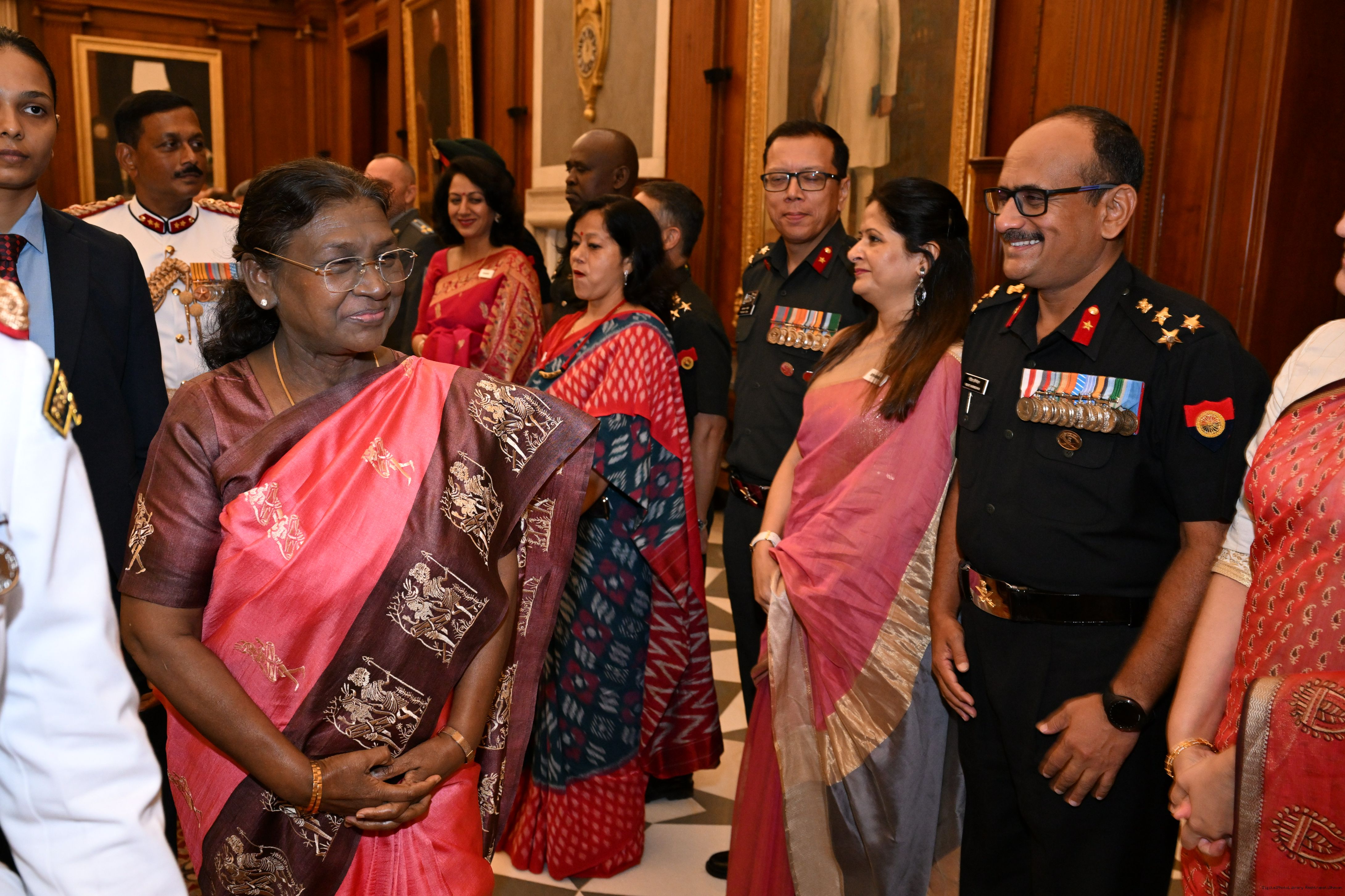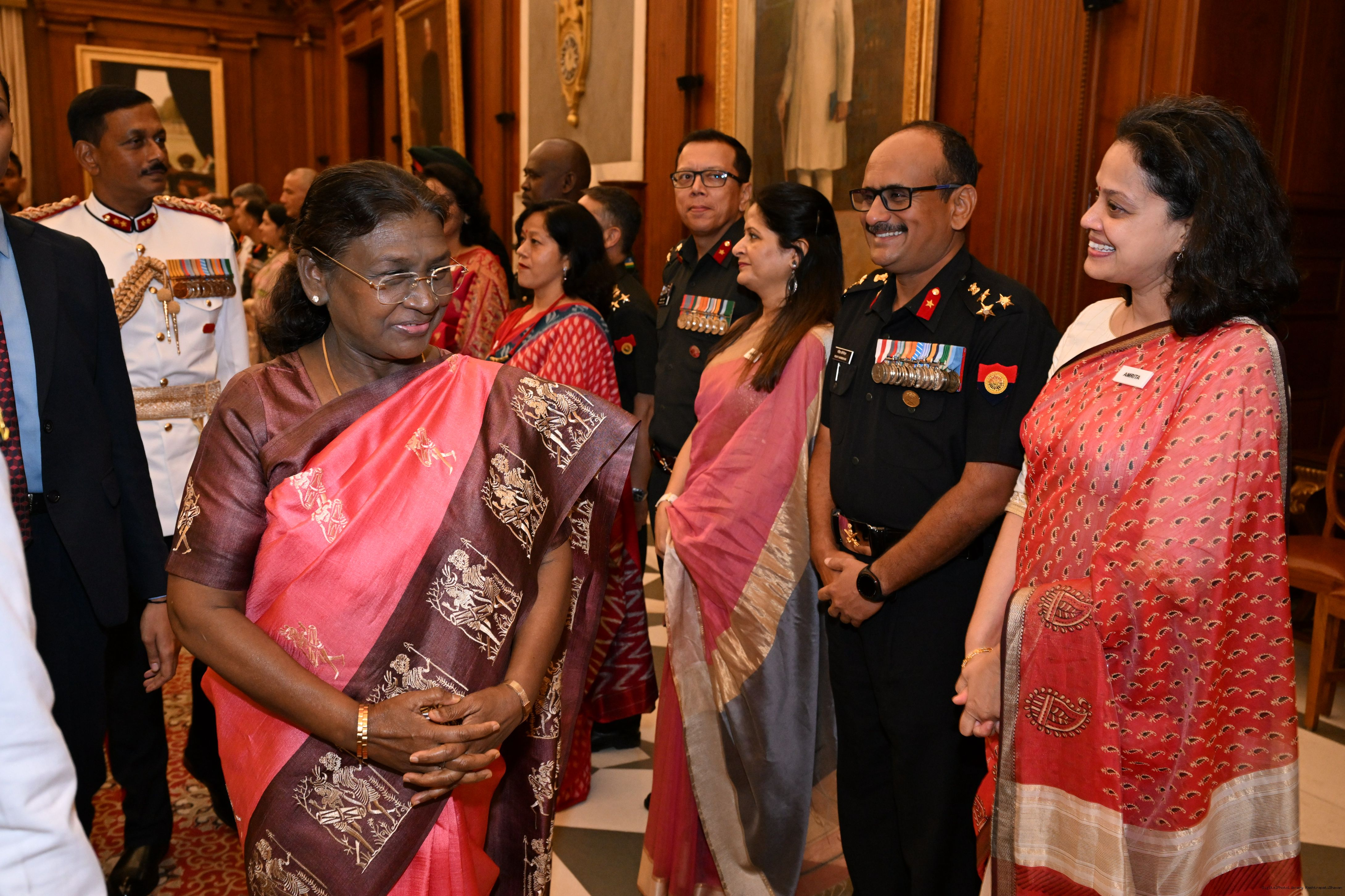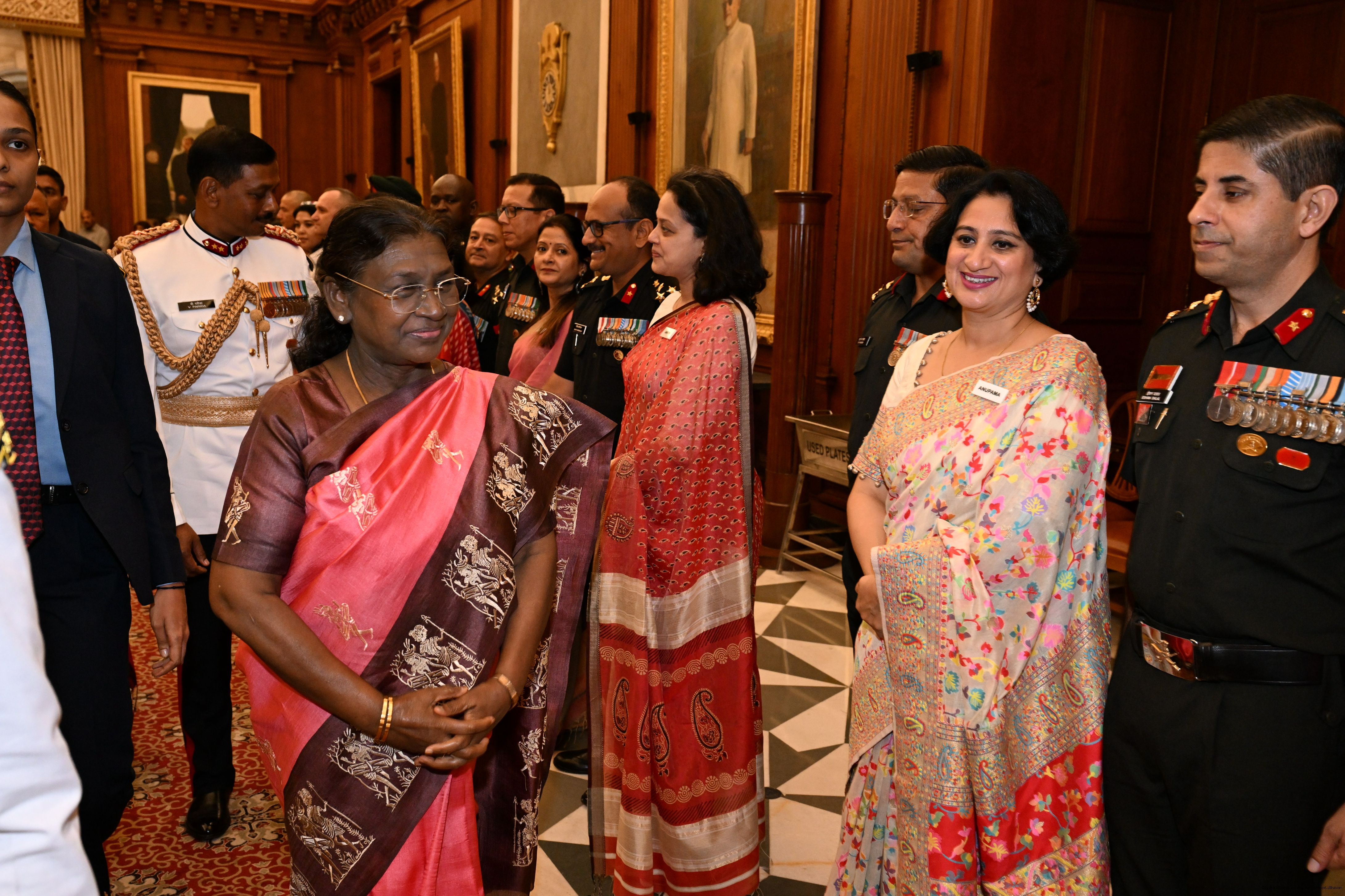 | Caption: | The faculty and course members of the 65th National Defence College Course called on the President of India, Smt Droupadi Murmu, at Rashtrapati Bhavan on October 7, 2025. |