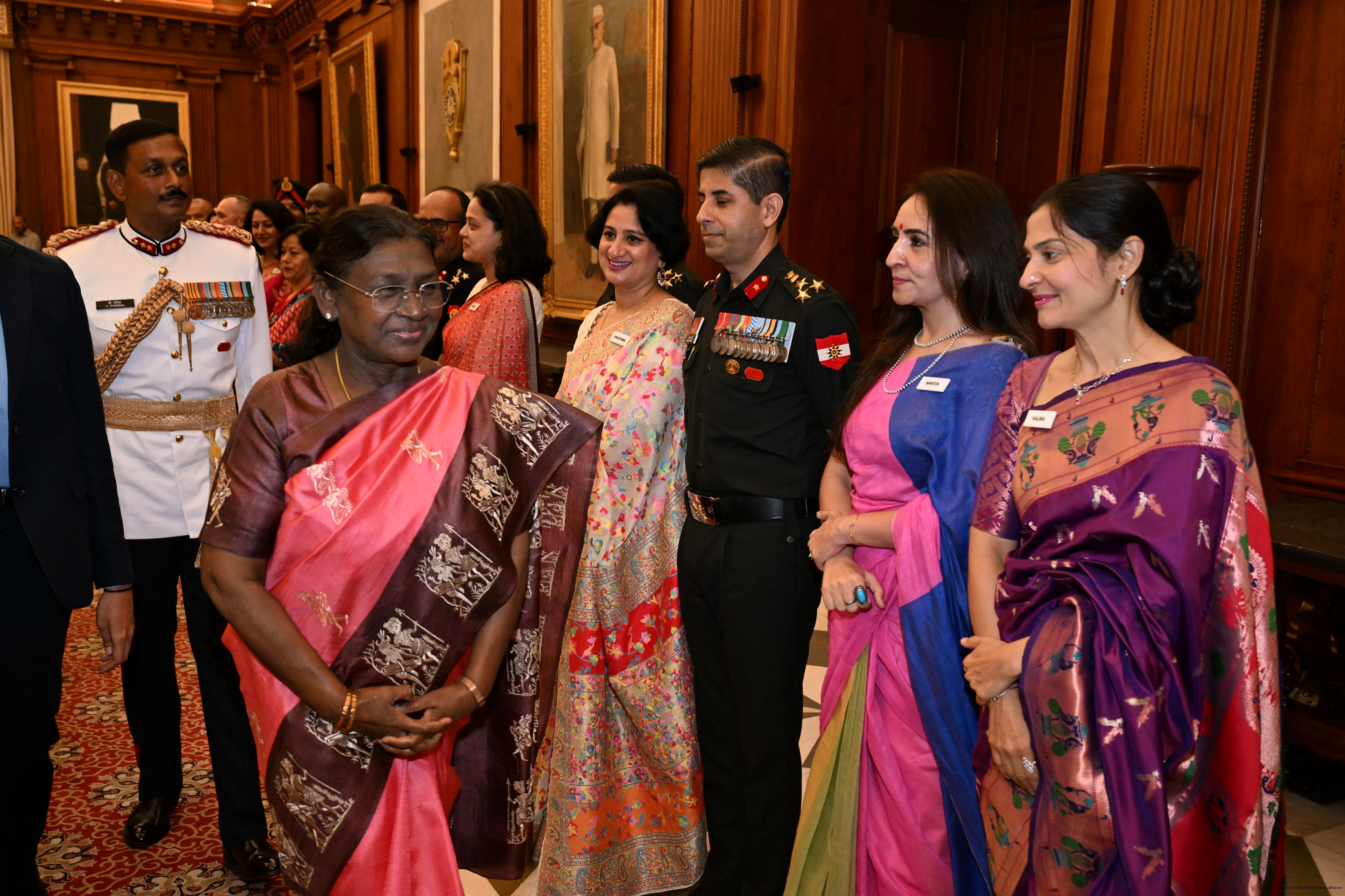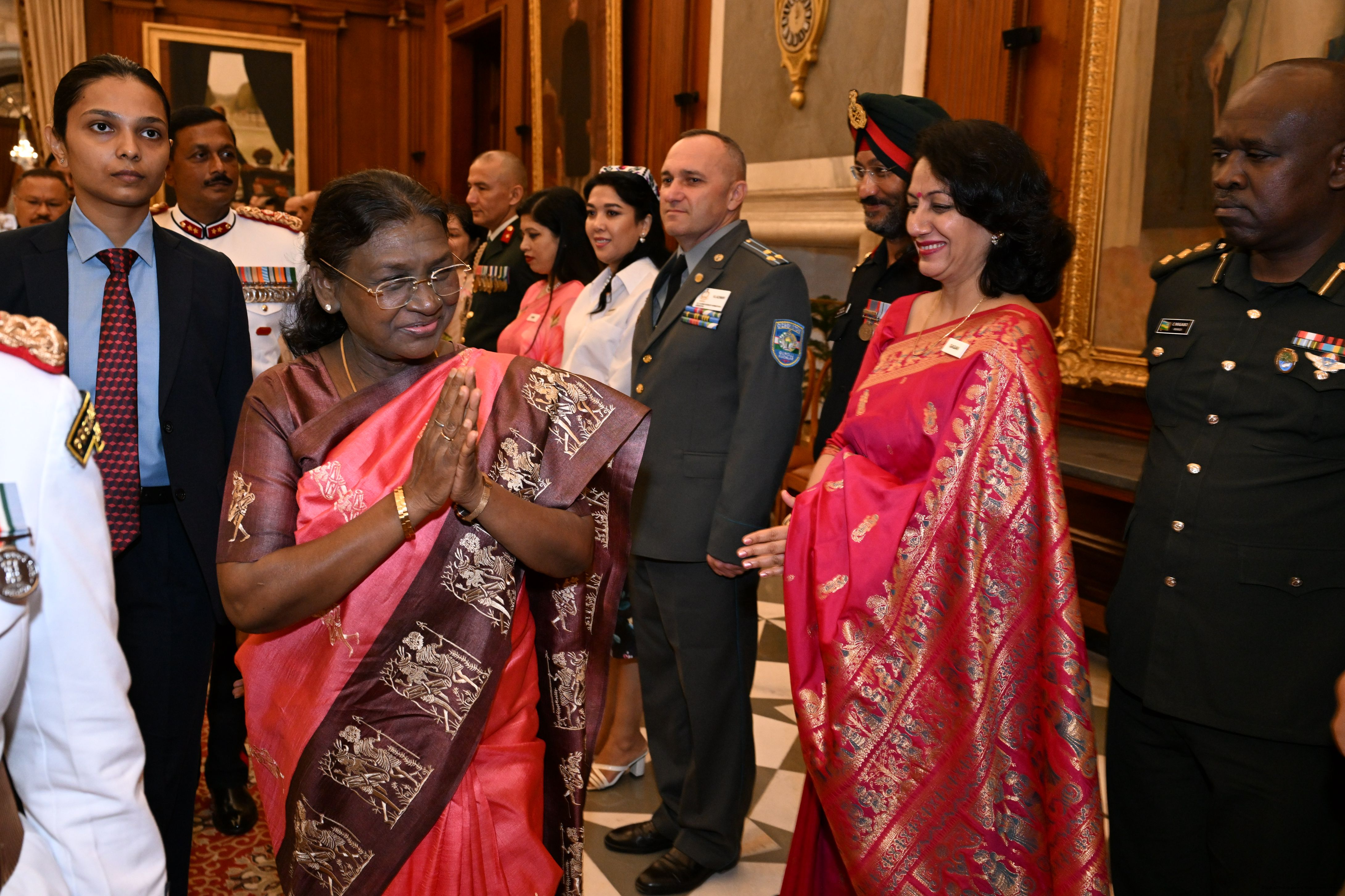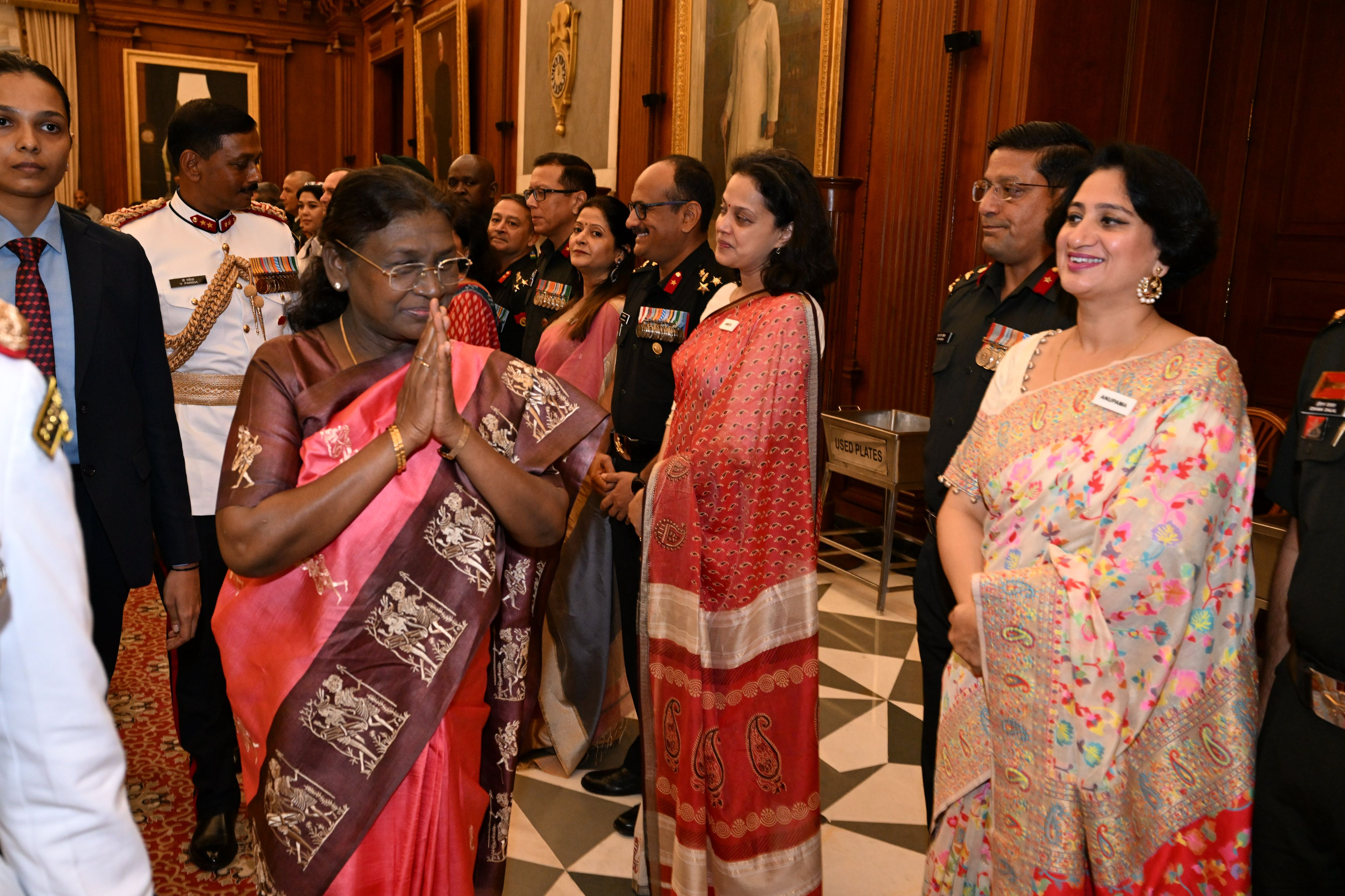 | Caption: | The faculty and course members of the 65th National Defence College Course called on the President of India, Smt Droupadi Murmu, at Rashtrapati Bhavan on October 7, 2025. |