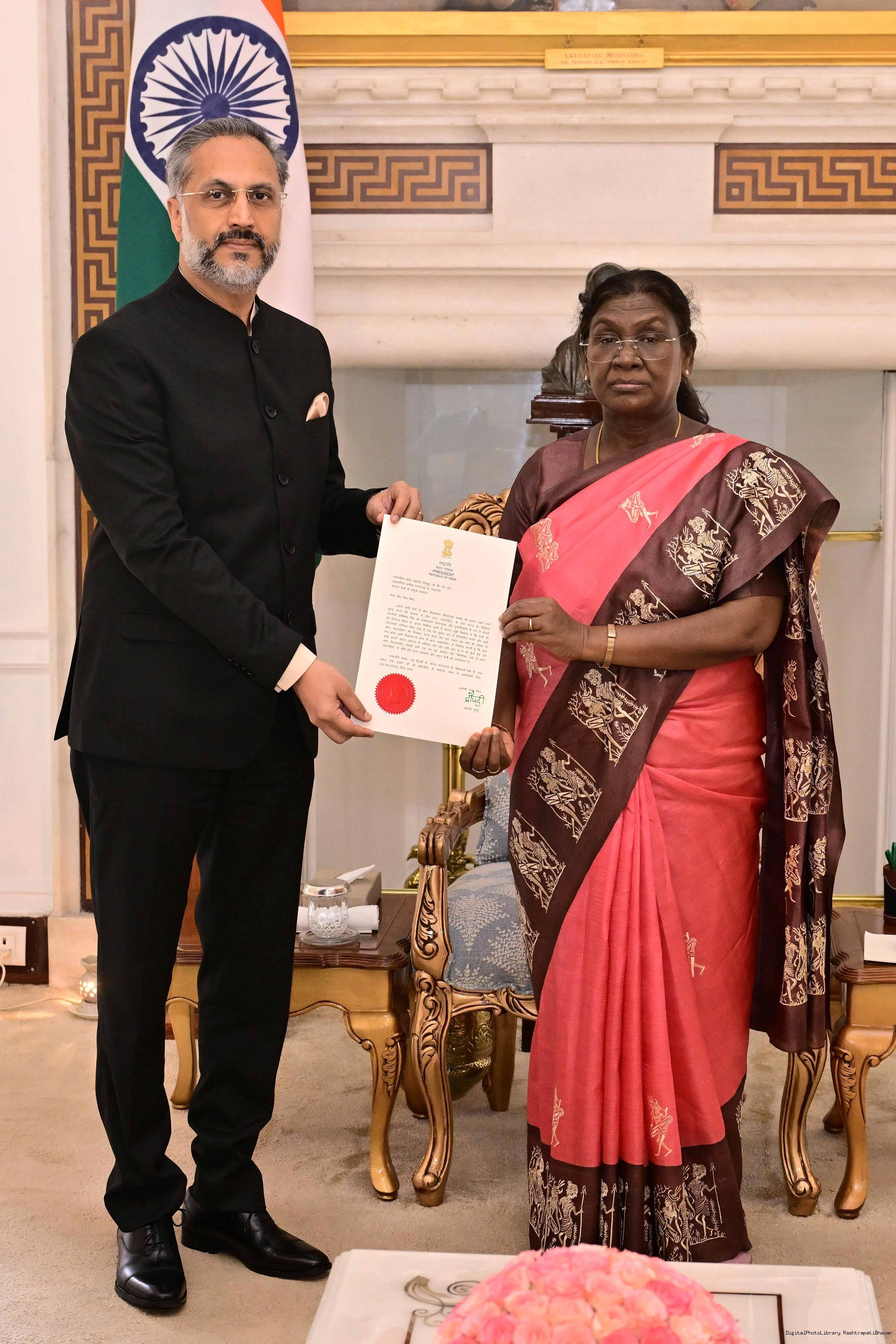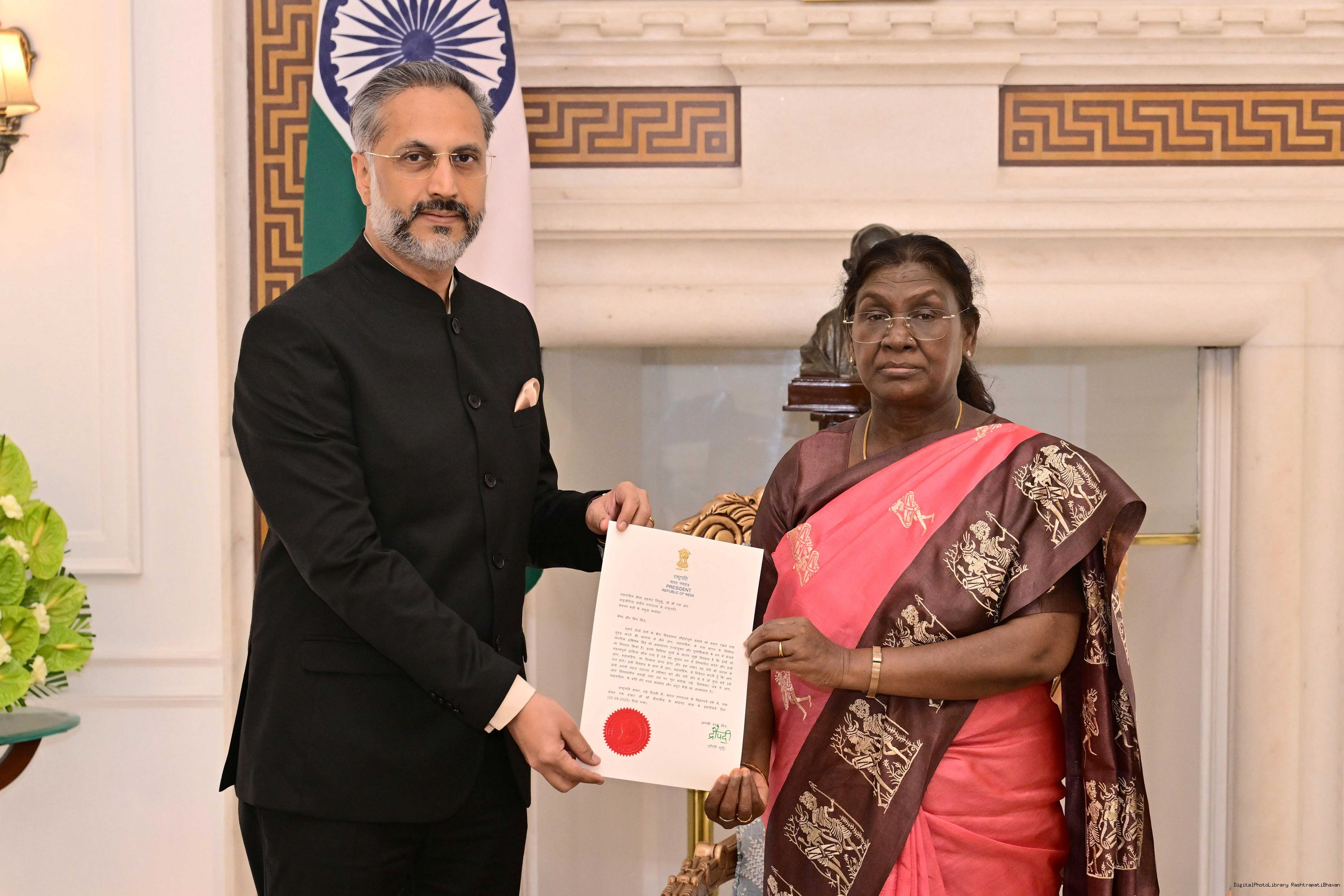 | Caption: | The High Commissionr-designate of India to Nigeria, Shri Abhishek Singh meeting with the President of India, Smt. Droupadi Murmu at Rashtrapati Bhavan on October 7, 2025. |