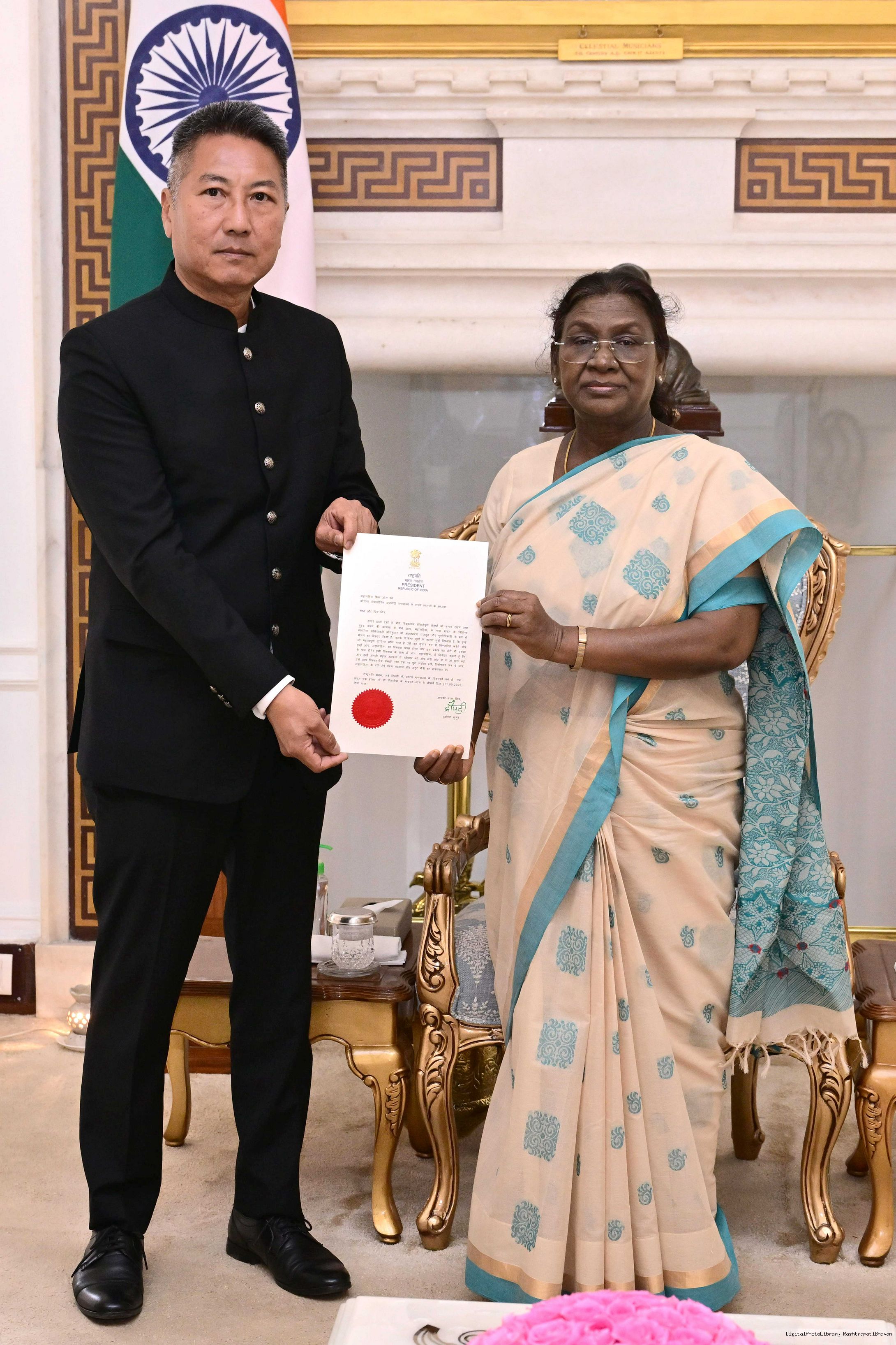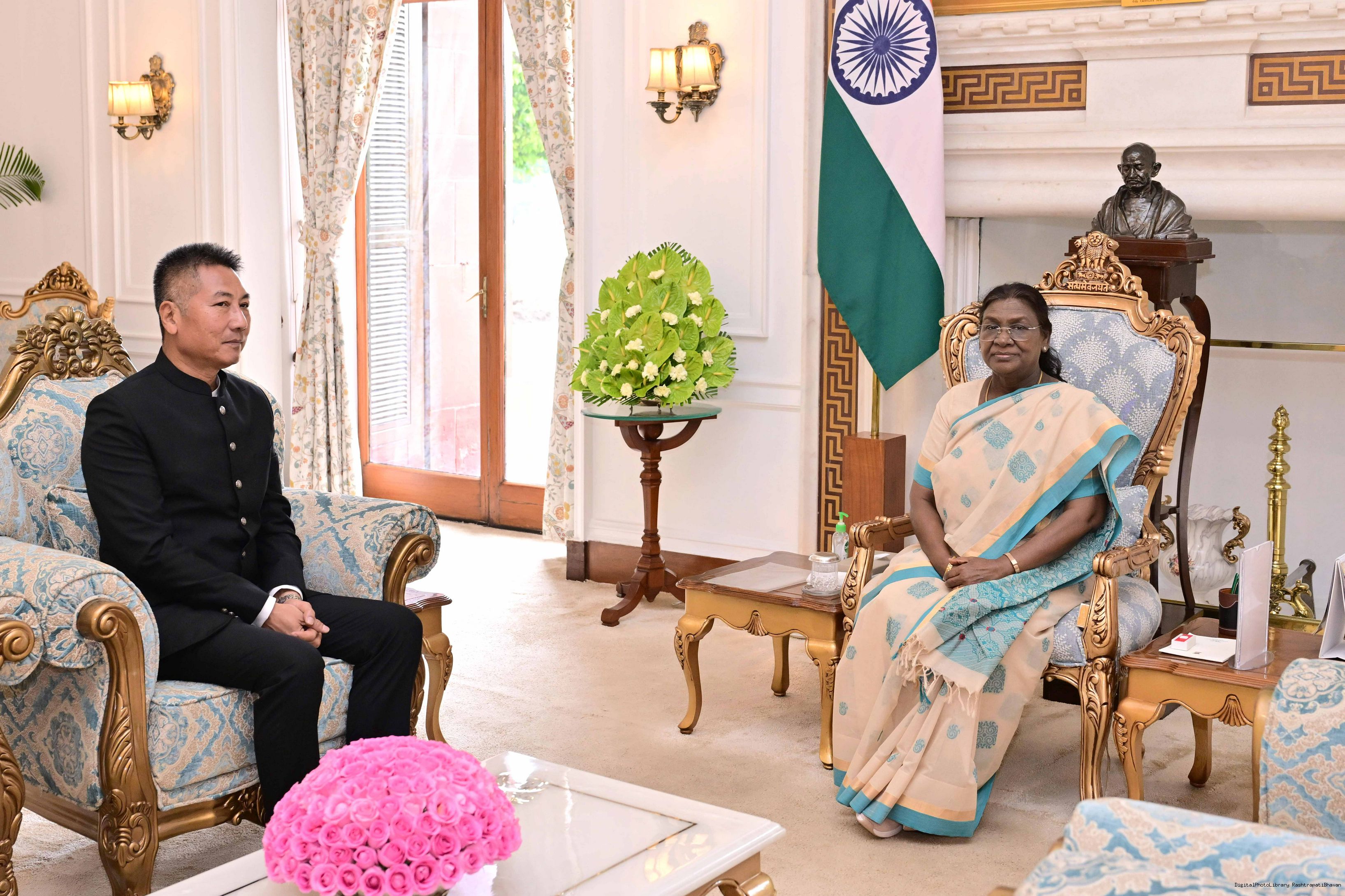 | Caption: | The Ambassador-designate of India to the Democratic People's Republic of Korea, Shri Aliawati Longkumar meeting with the President of India, Smt. Droupadi Murmu at Rashtrapati Bhavan on October 8, 2025. |