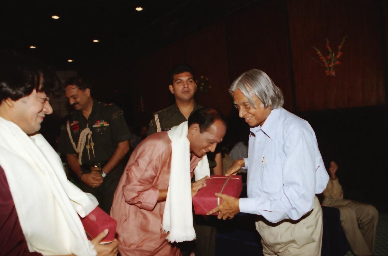 | Caption: | The President of India, Dr A P J Abdul Kalam at the Mandolin Recital by Shri U Srinivas and Shri U Rajesh at the Art Theatre of Rashtrapati Bhavan in New Delhi on June 14, 2003 |