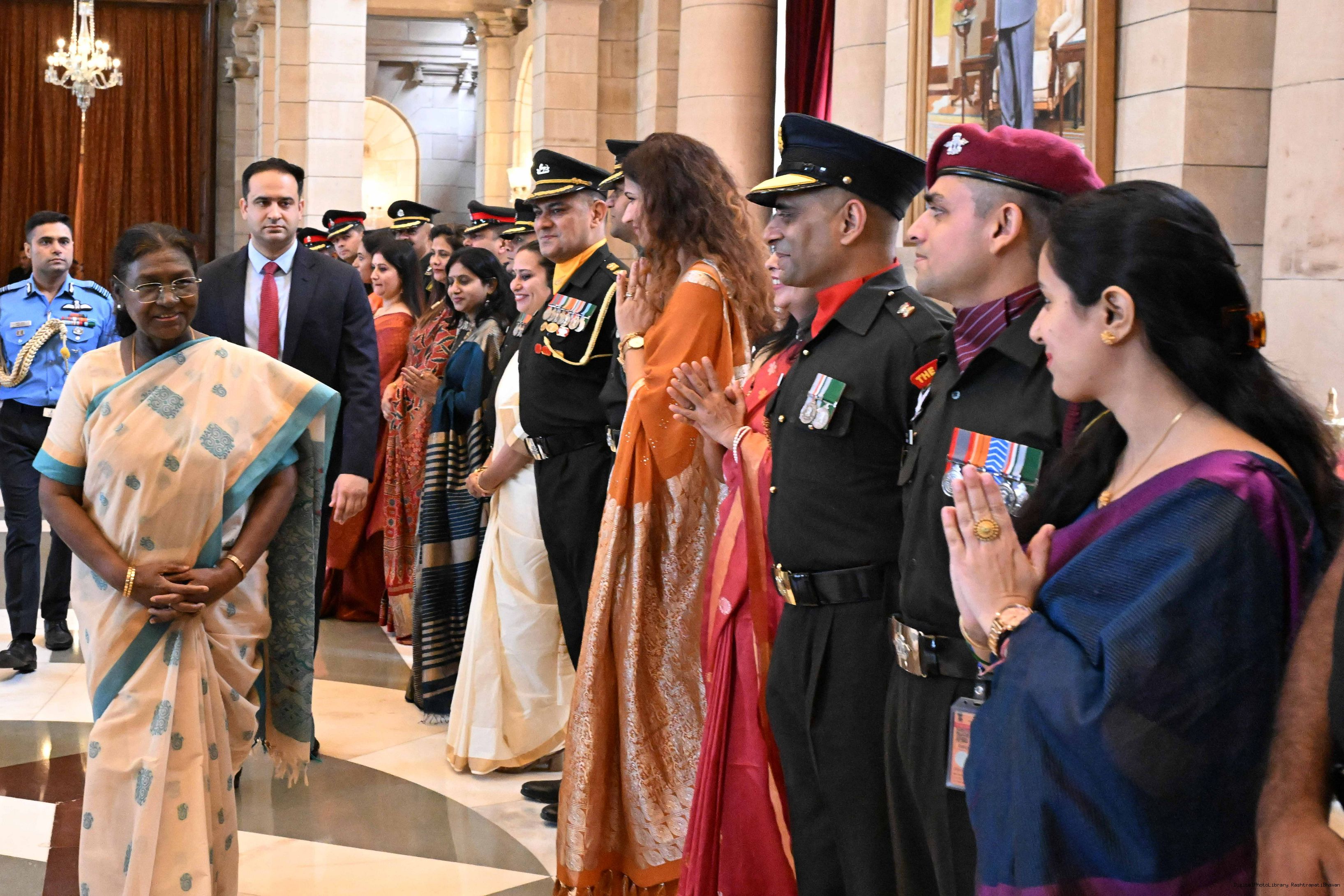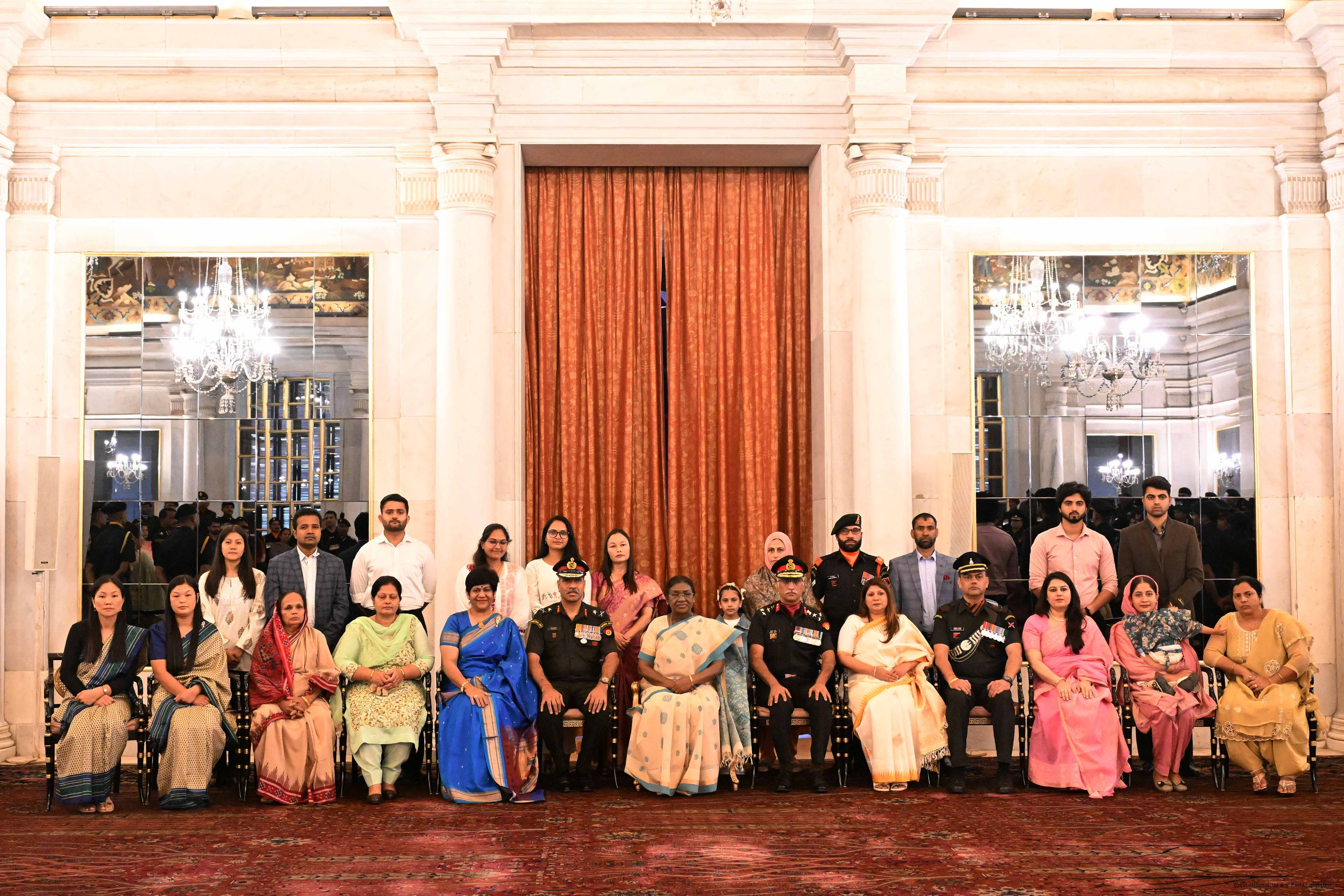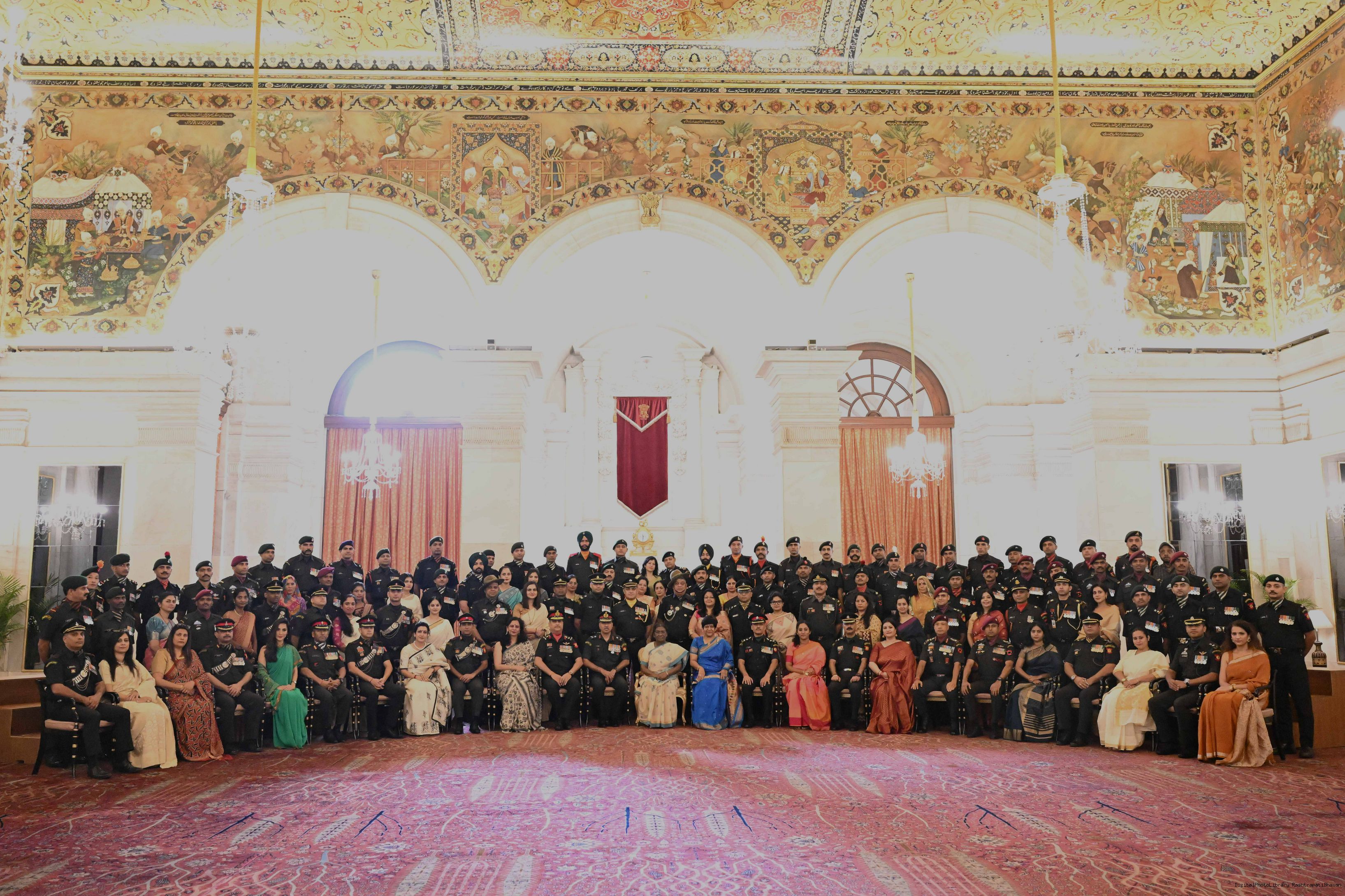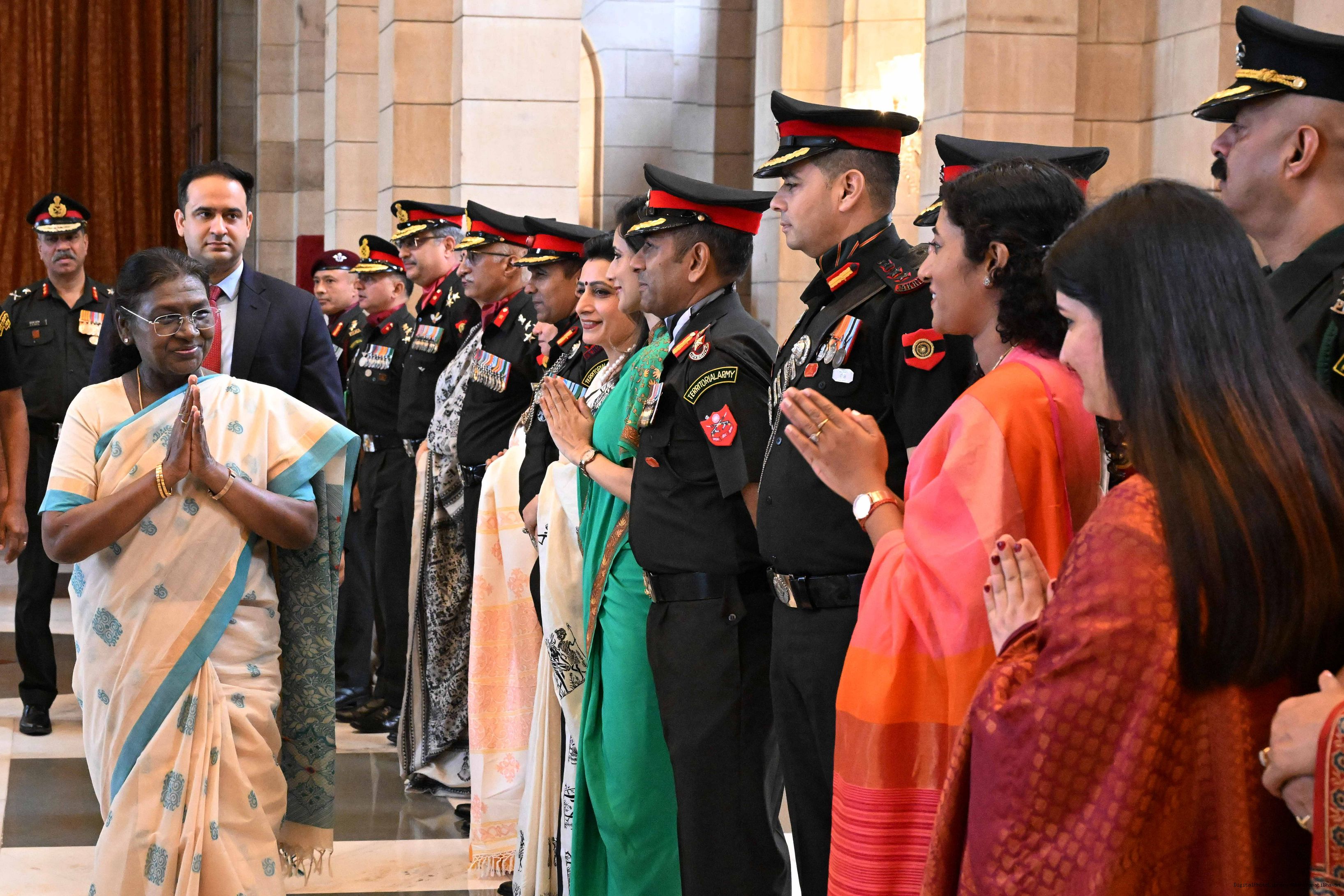 | Caption: | The President of India, Smt. Droupadi Murmu interacted and met Territorial Army (TA) Officers, JCOs and Ors and their families with selected civilian staff of the Territorial Army Directorate at Rashtrapati Bhavan on October 8, 2025. |