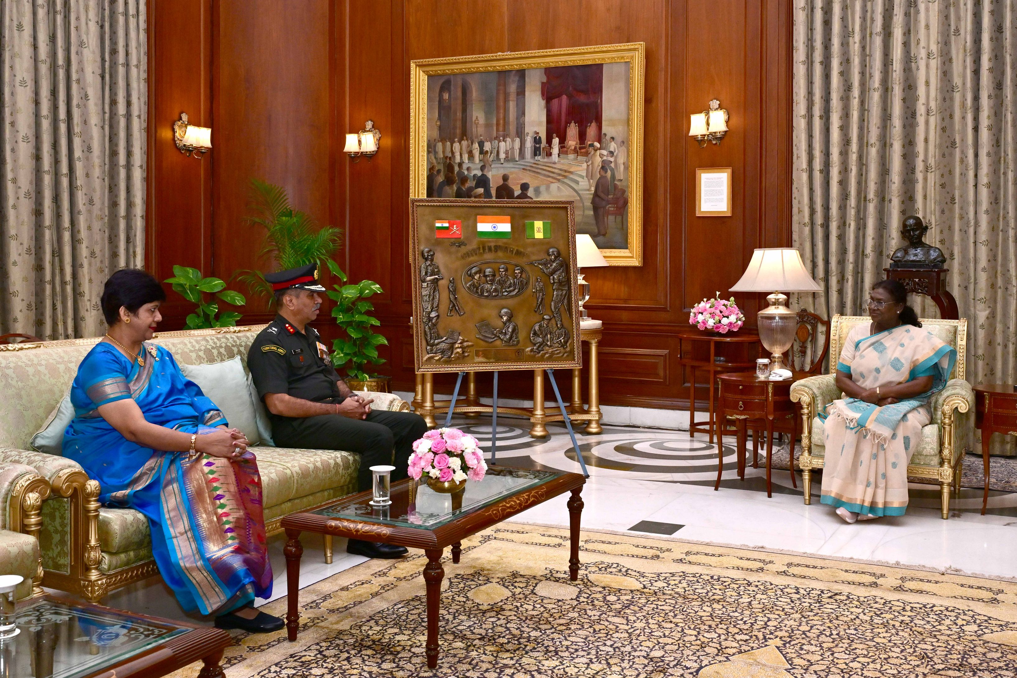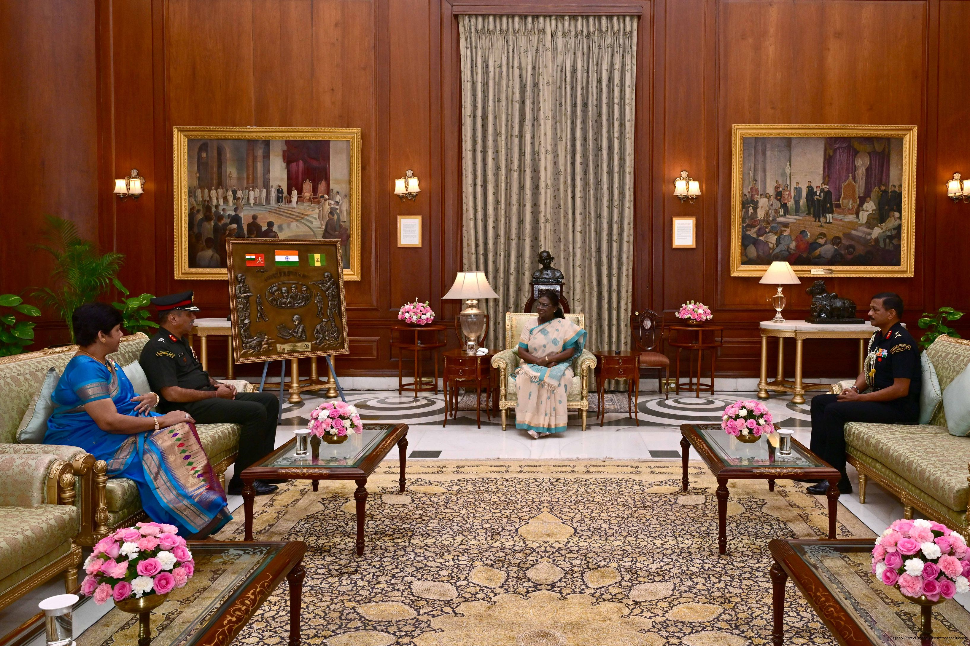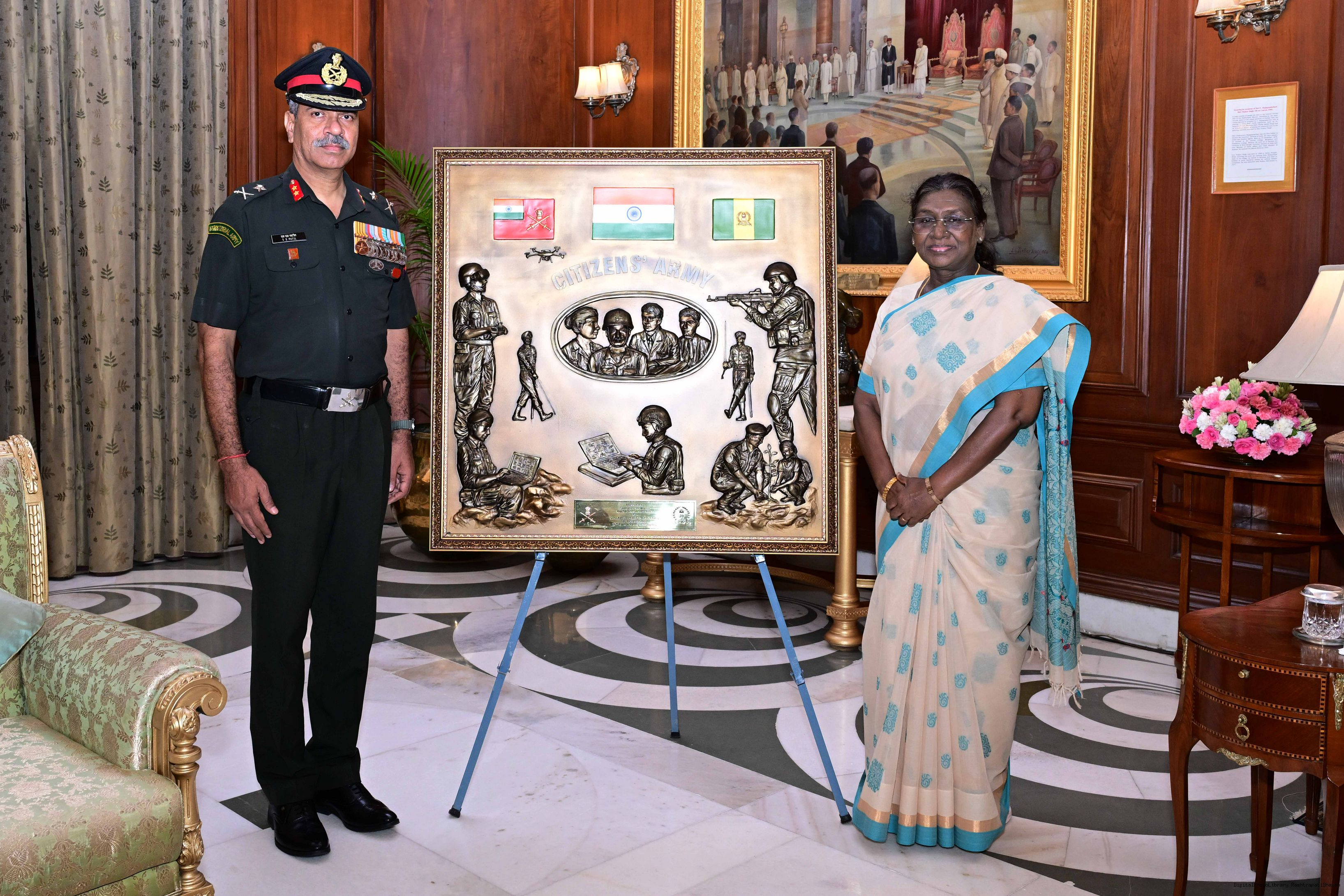 | Caption: | The President of India, Smt. Droupadi Murmu interacted and met Territorial Army (TA) Officers, JCOs and Ors and their families with selected civilian staff of the Territorial Army Directorate at Rashtrapati Bhavan on October 8, 2025. |