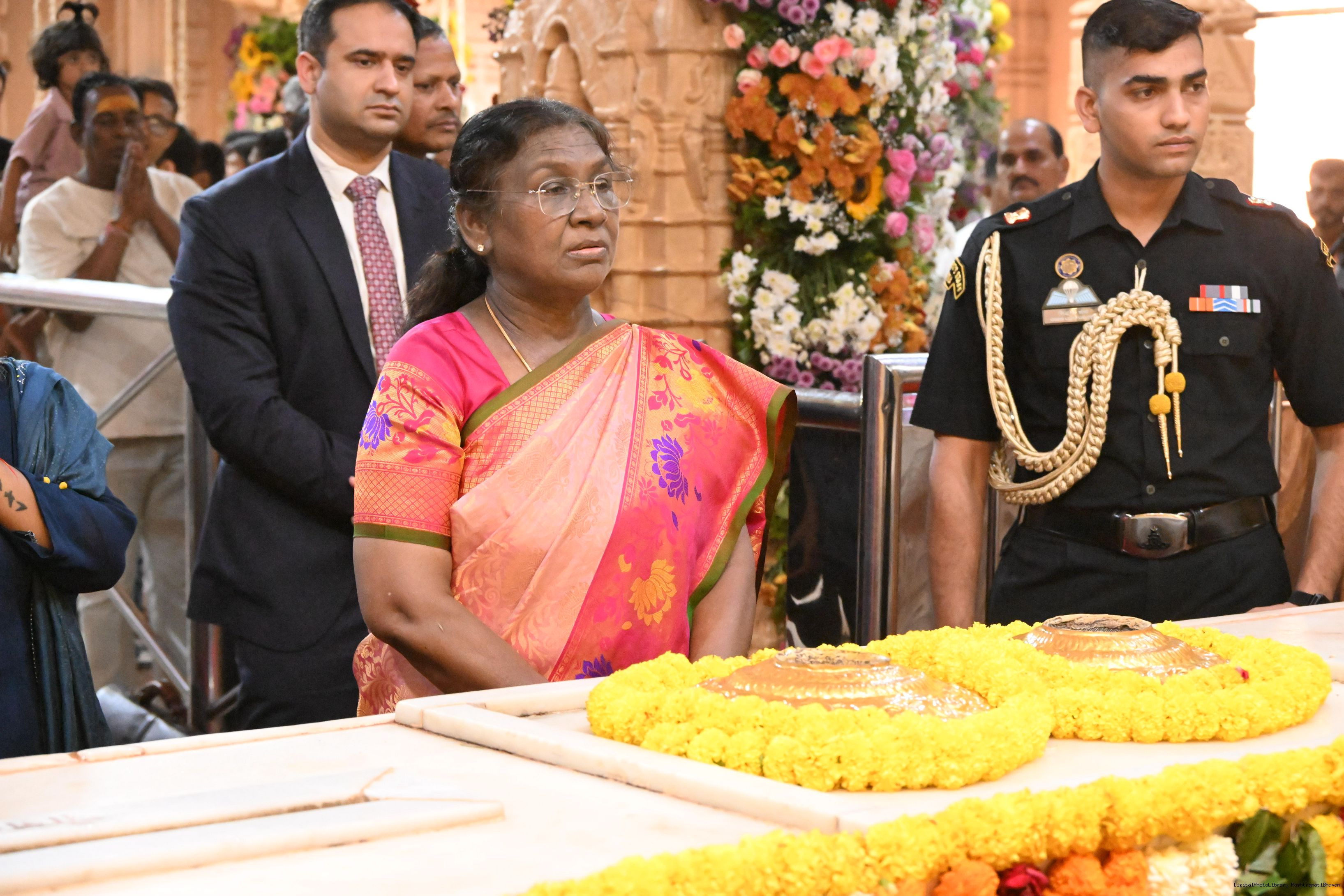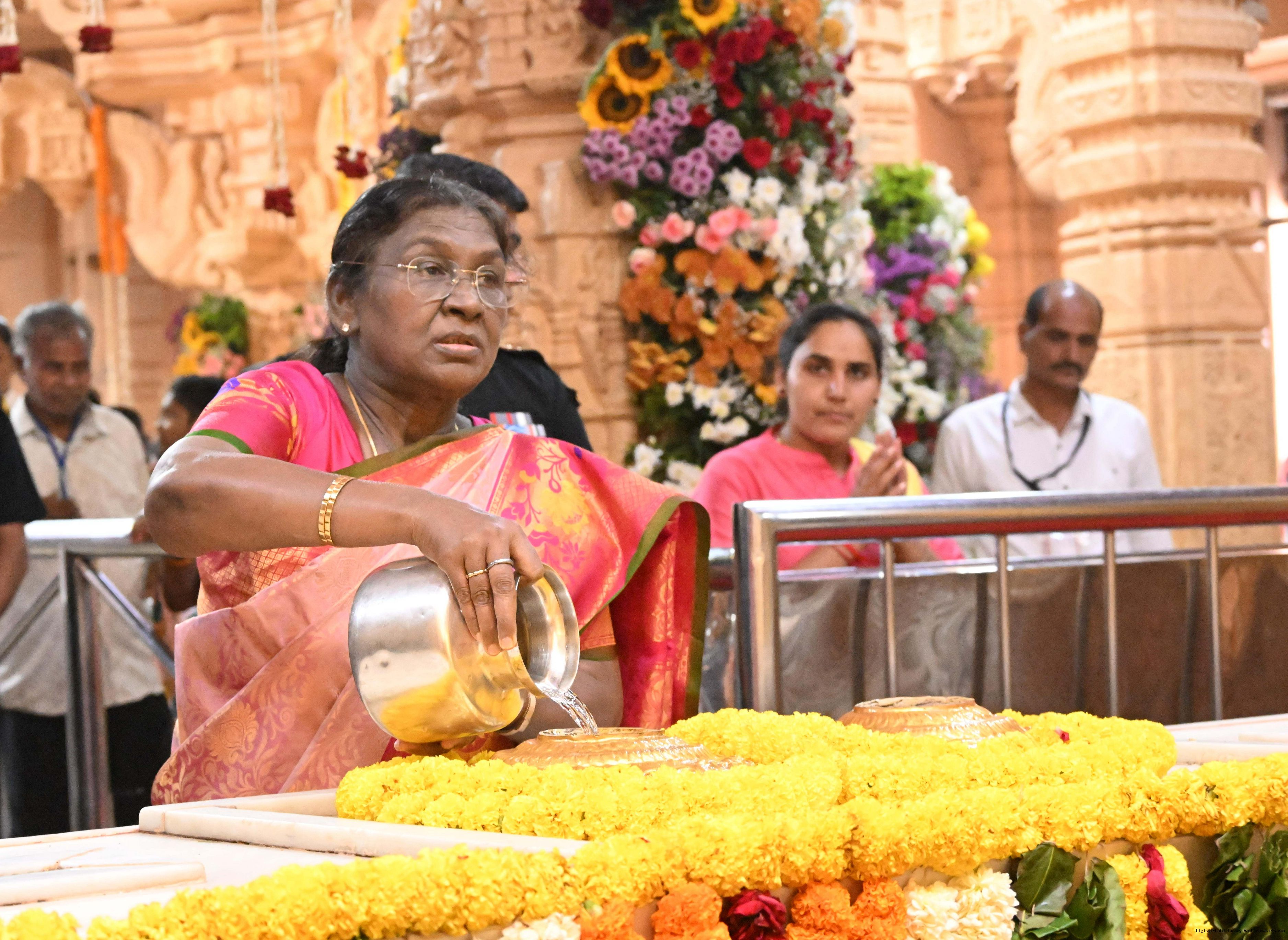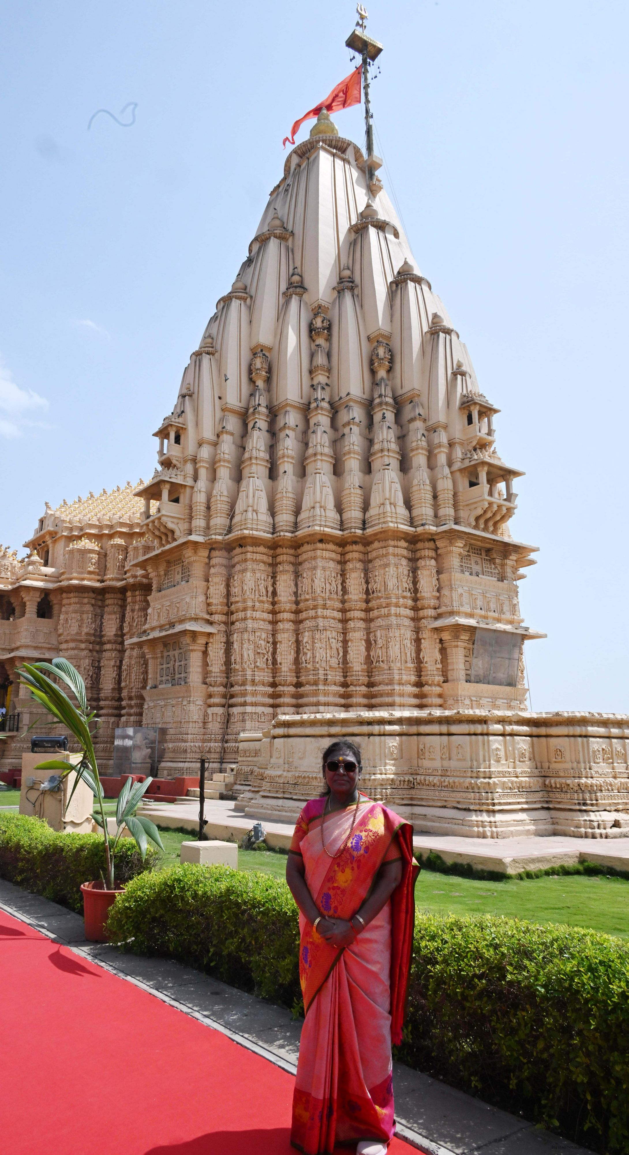 | Caption: | The President of India, Smt. Droupadi Murmu performed Darshan and Puja at the Somnath temple in Gujarat on October 10, 2025. |