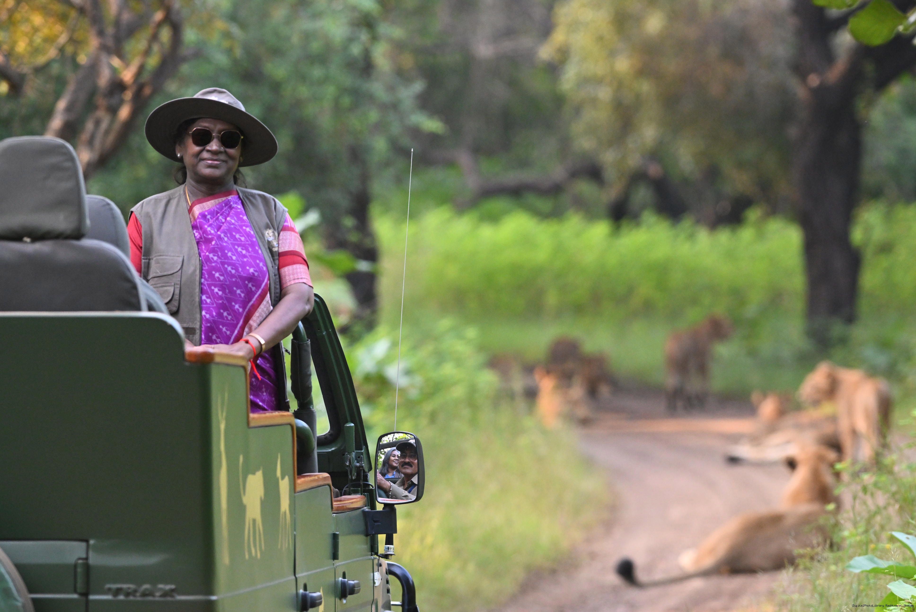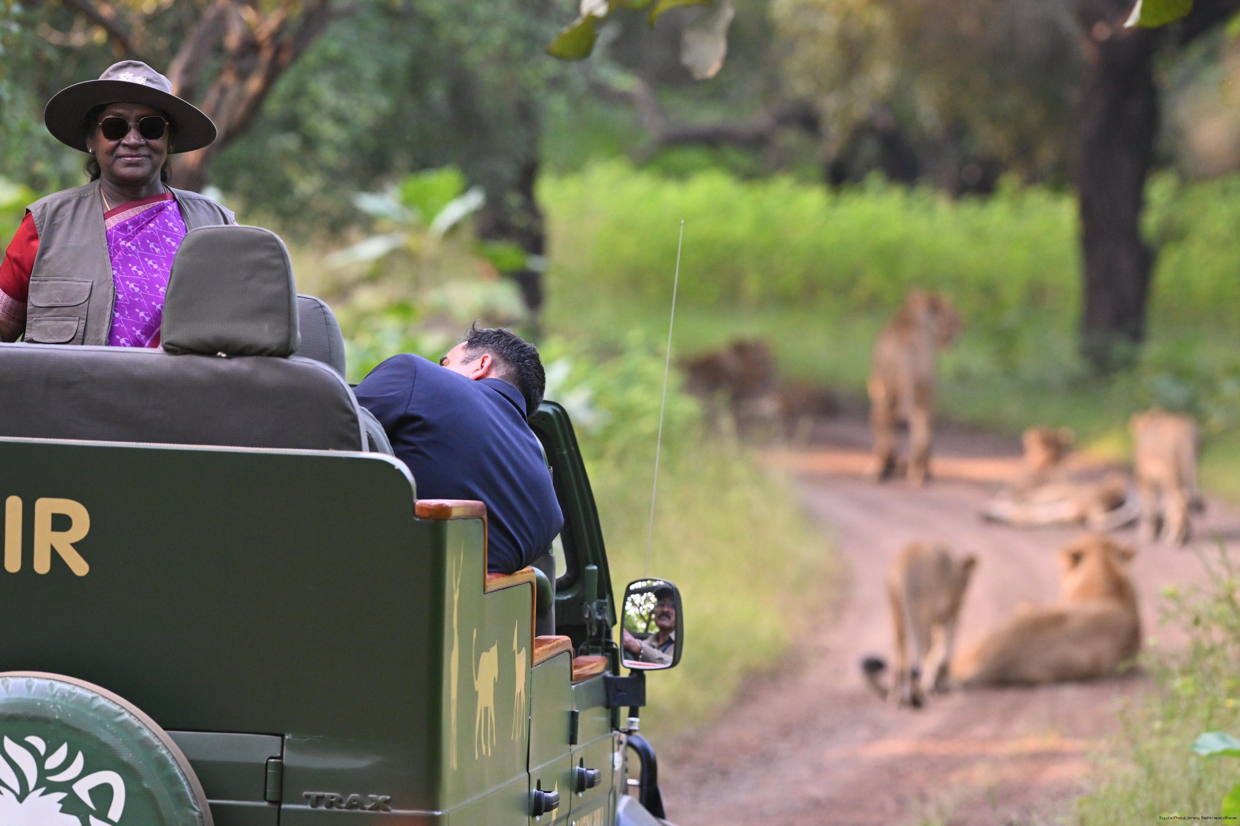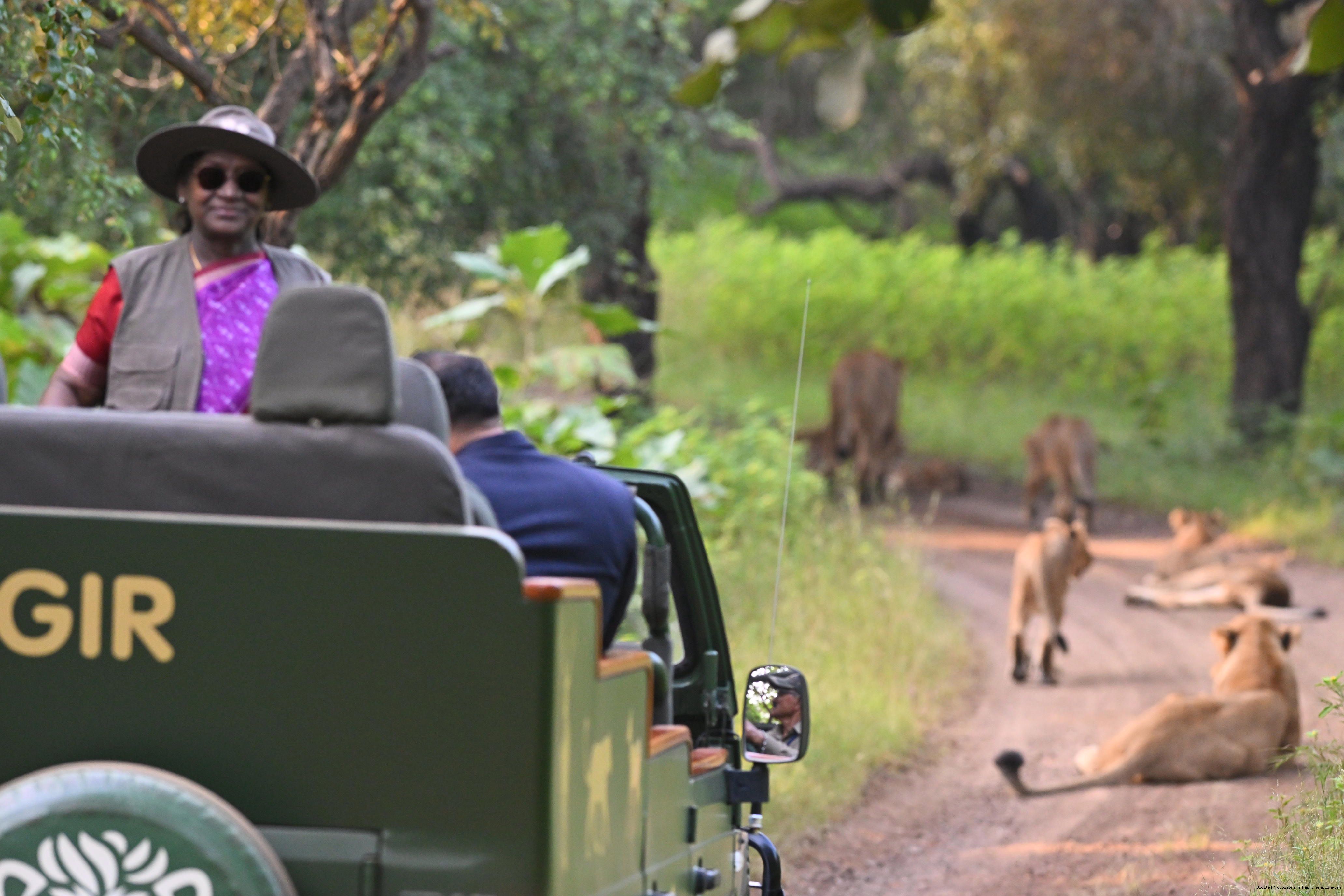 | Caption: | The President of India, Smt. Droupadi Murmu addresses the members of the local tribal community at Sasan Gir, Gujarat on October 10, 2025. |