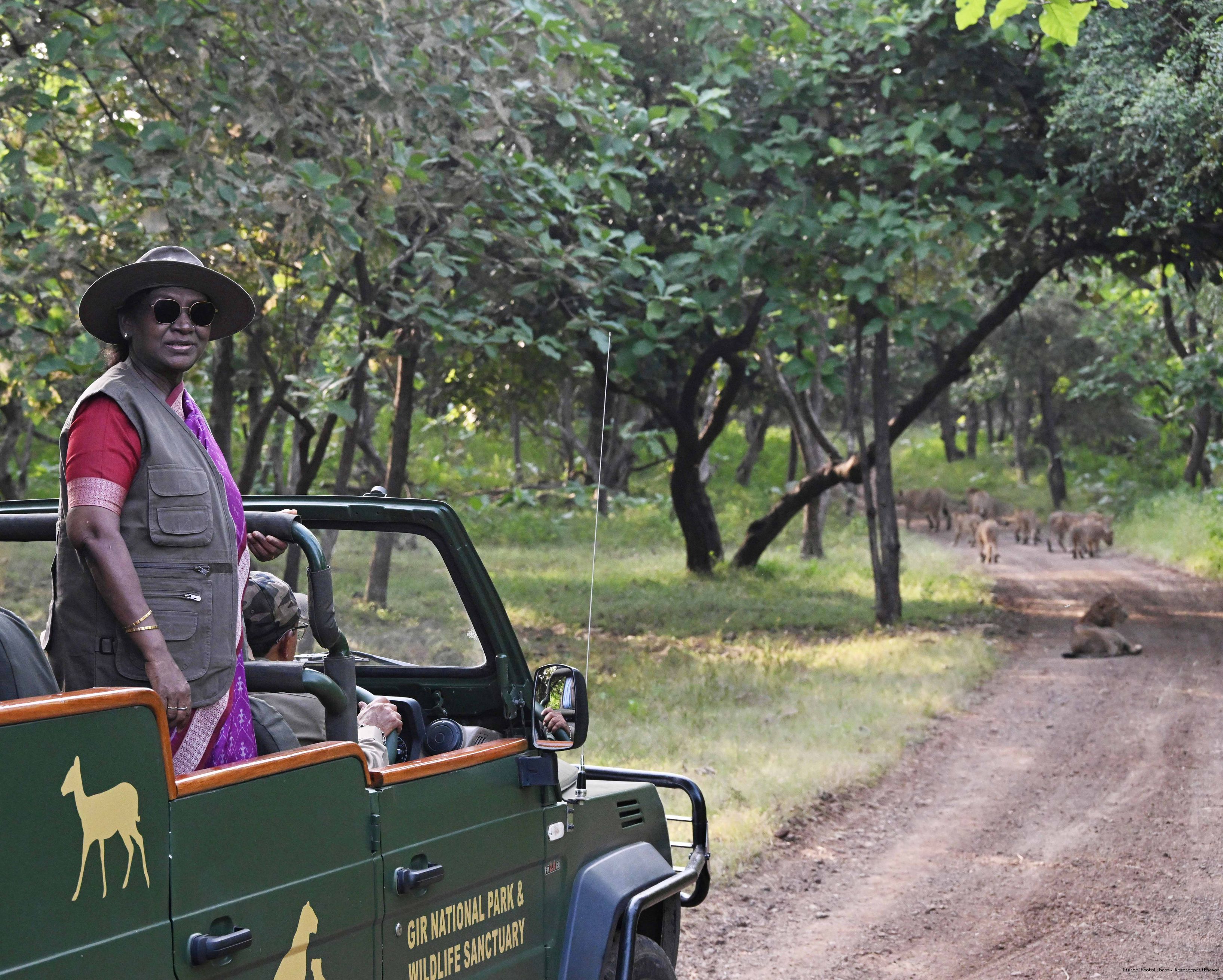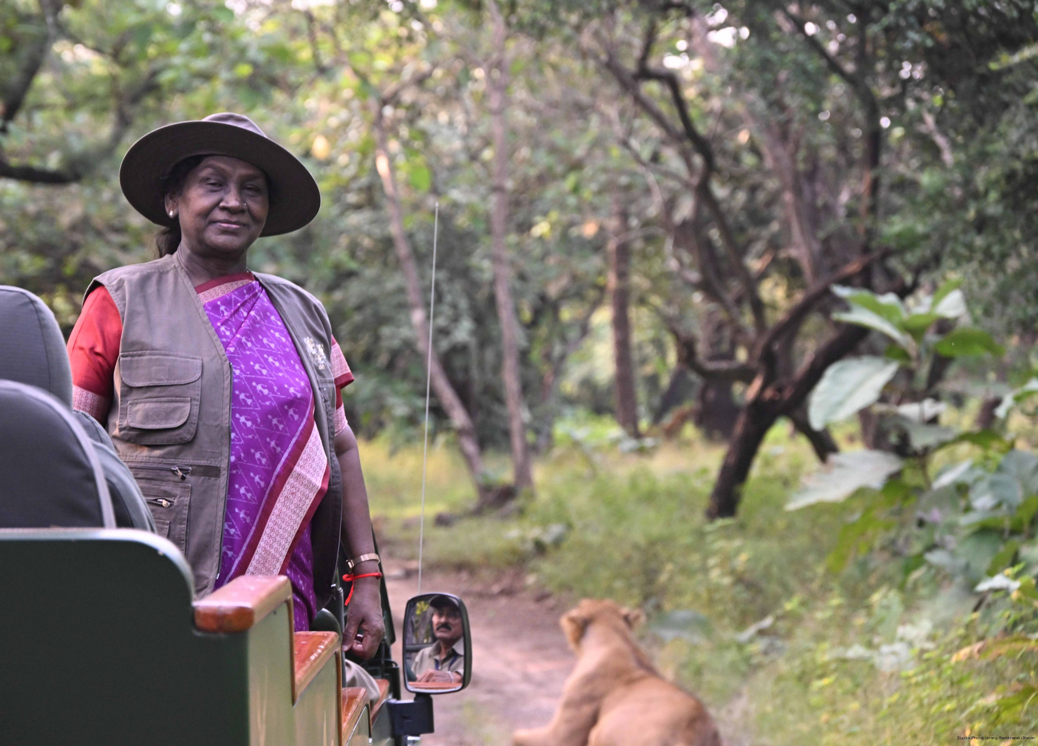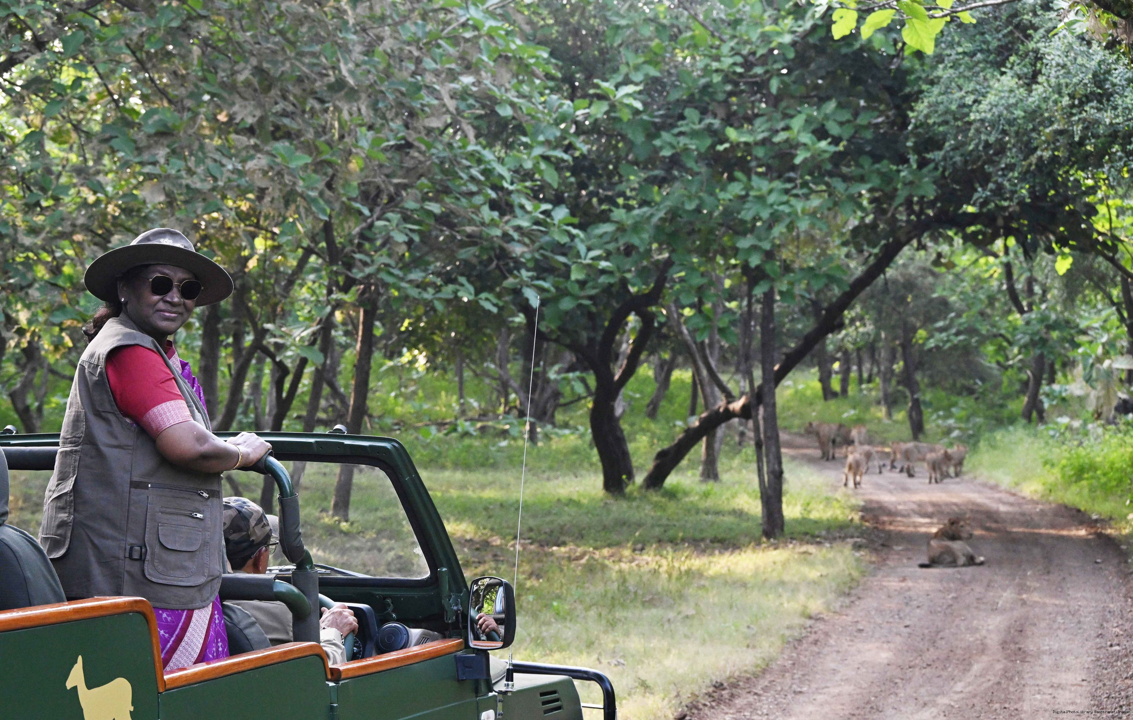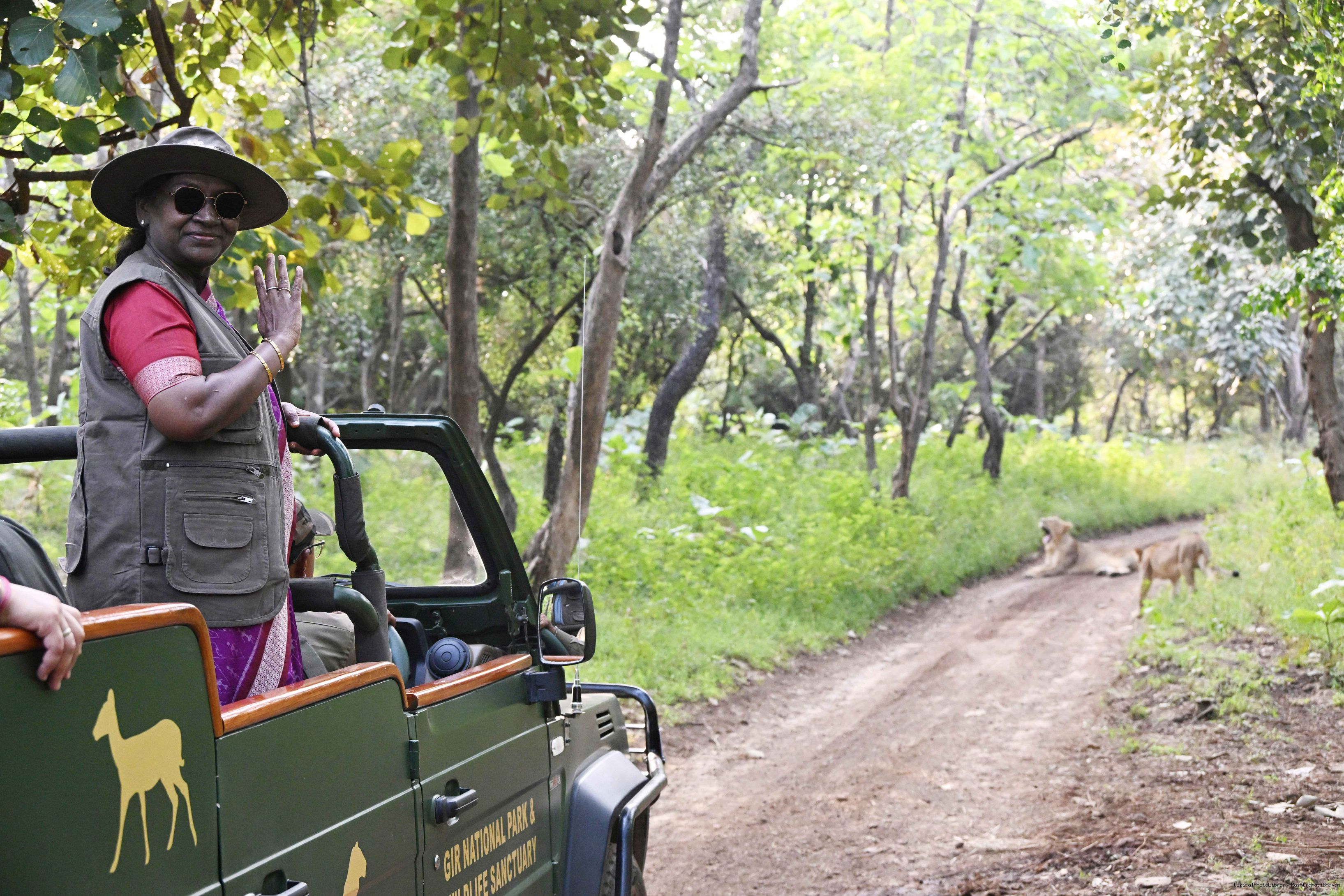 | Caption: | The President of India, Smt. Droupadi Murmu addresses the members of the local tribal community at Sasan Gir, Gujarat on October 10, 2025. |