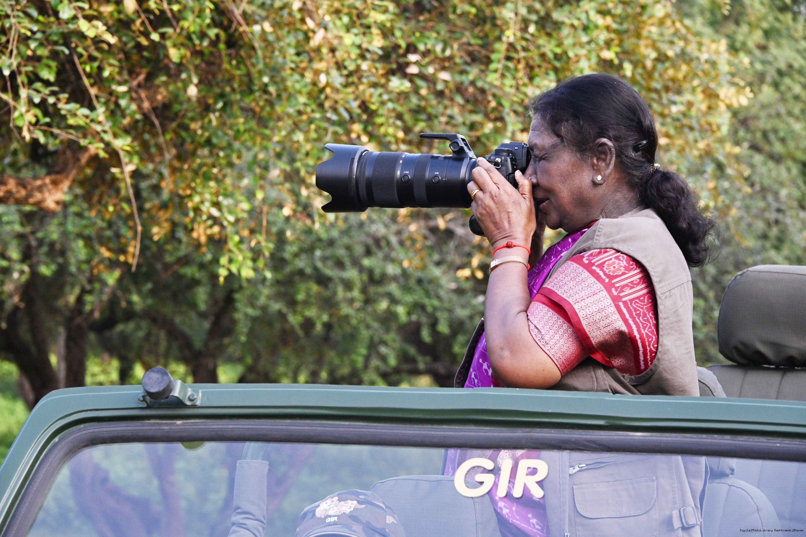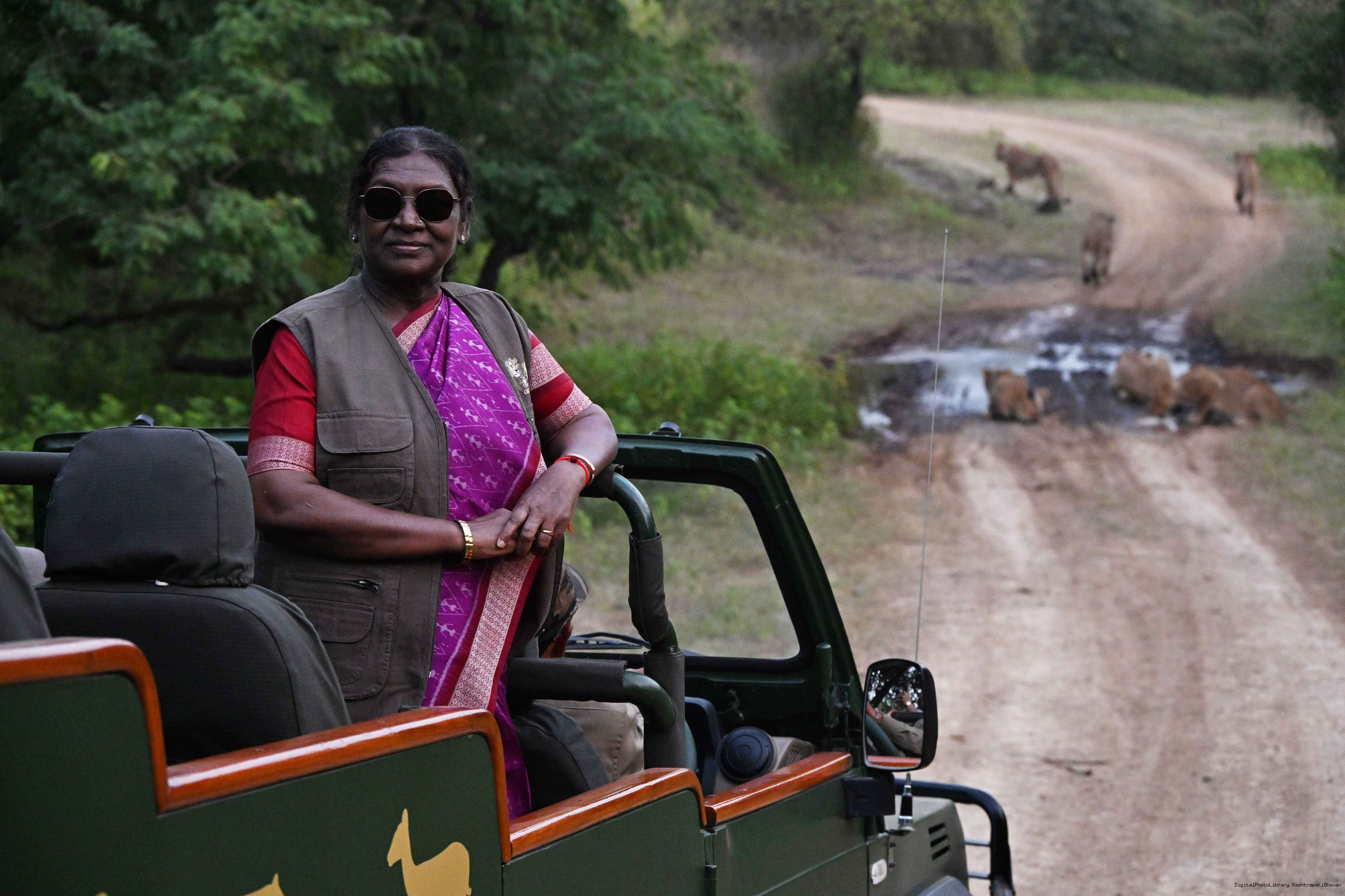| Caption: | The President of India, Smt. Droupadi Murmu addresses the members of the local tribal community at Sasan Gir, Gujarat on October 10, 2025. |