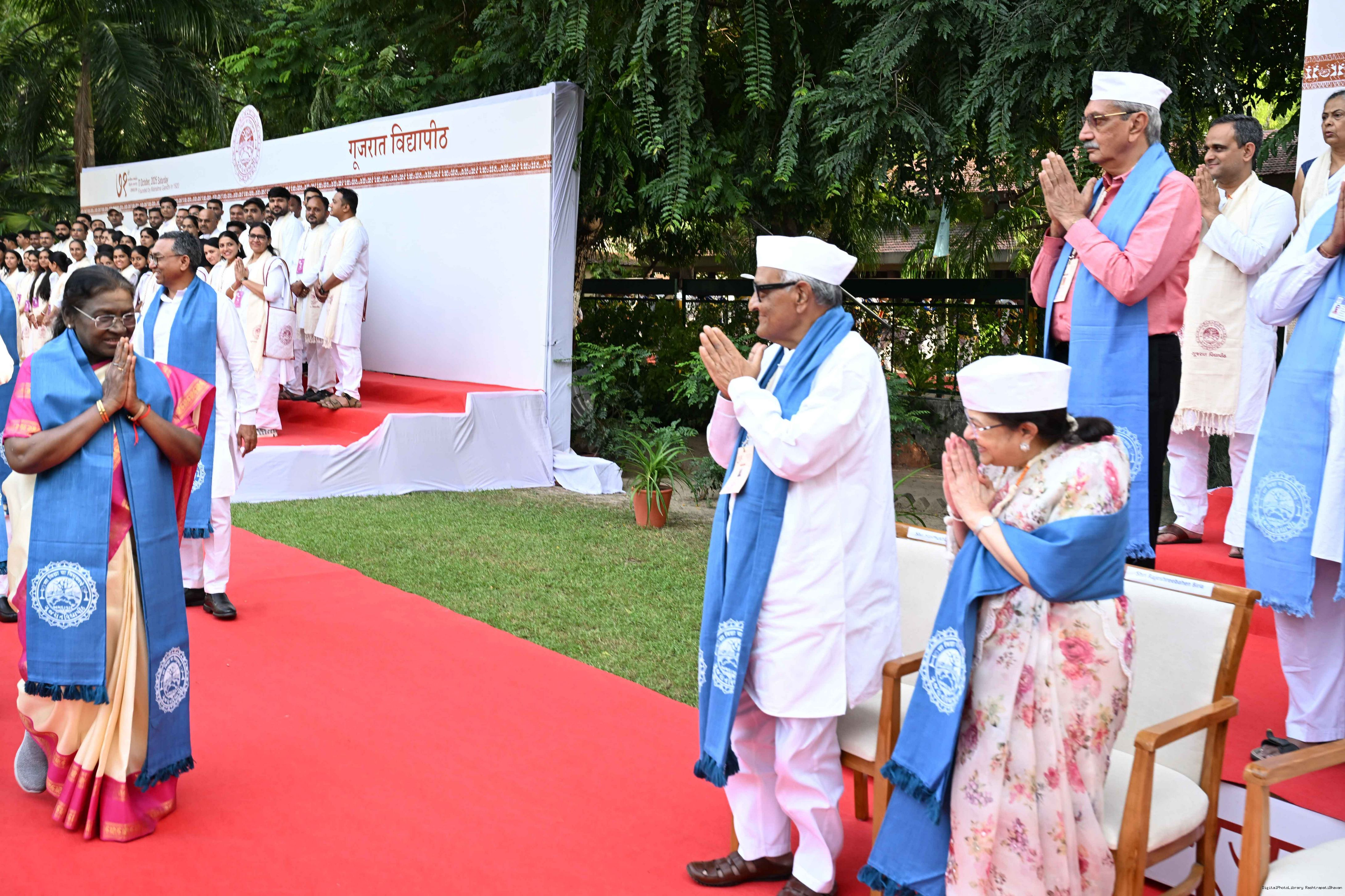 | Caption: | The President of India, Smt Droupadi Murmu, graced the 71st convocation ceremony of Gujarat Vidyapith at Ahmedabad on October 11, 2025. |