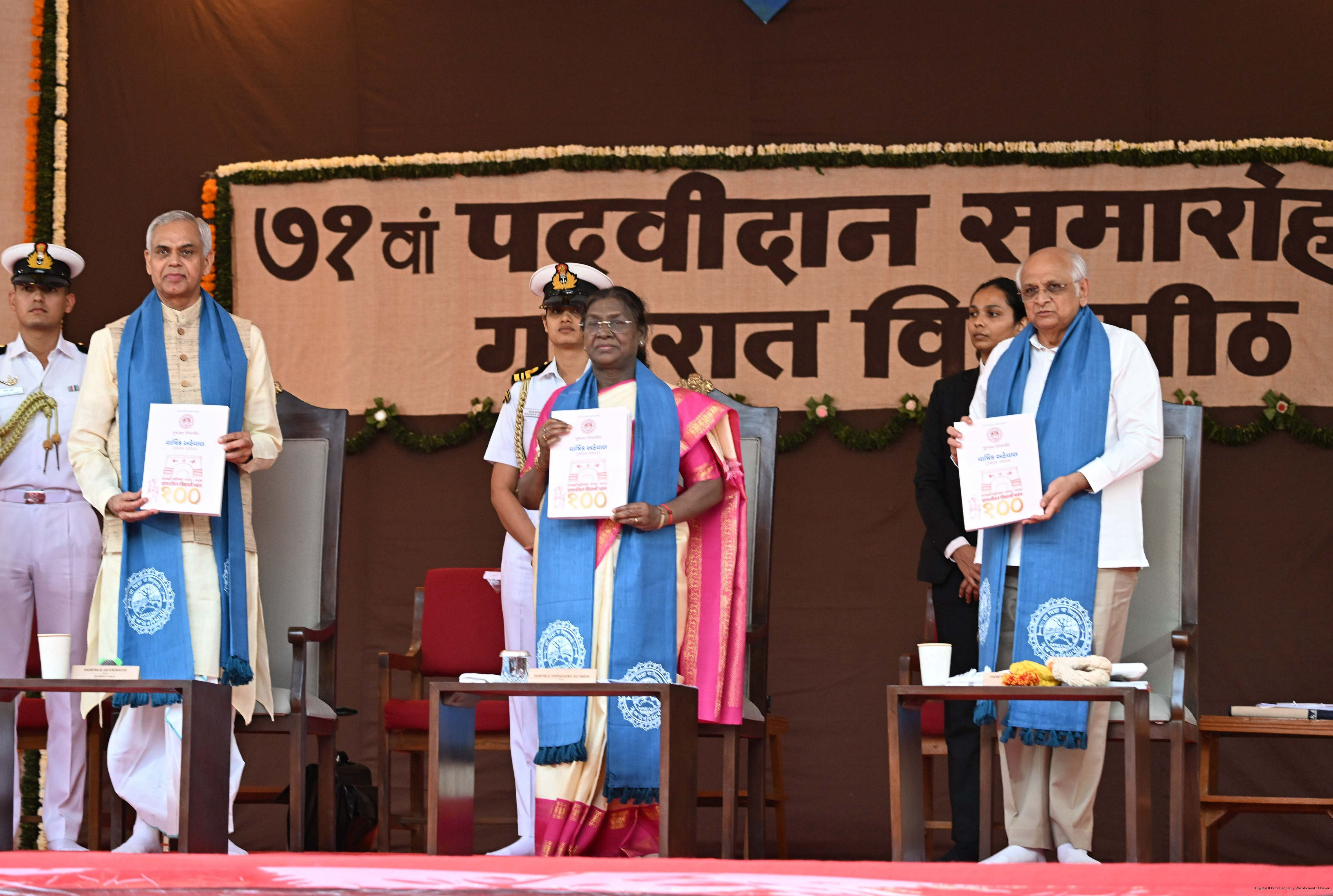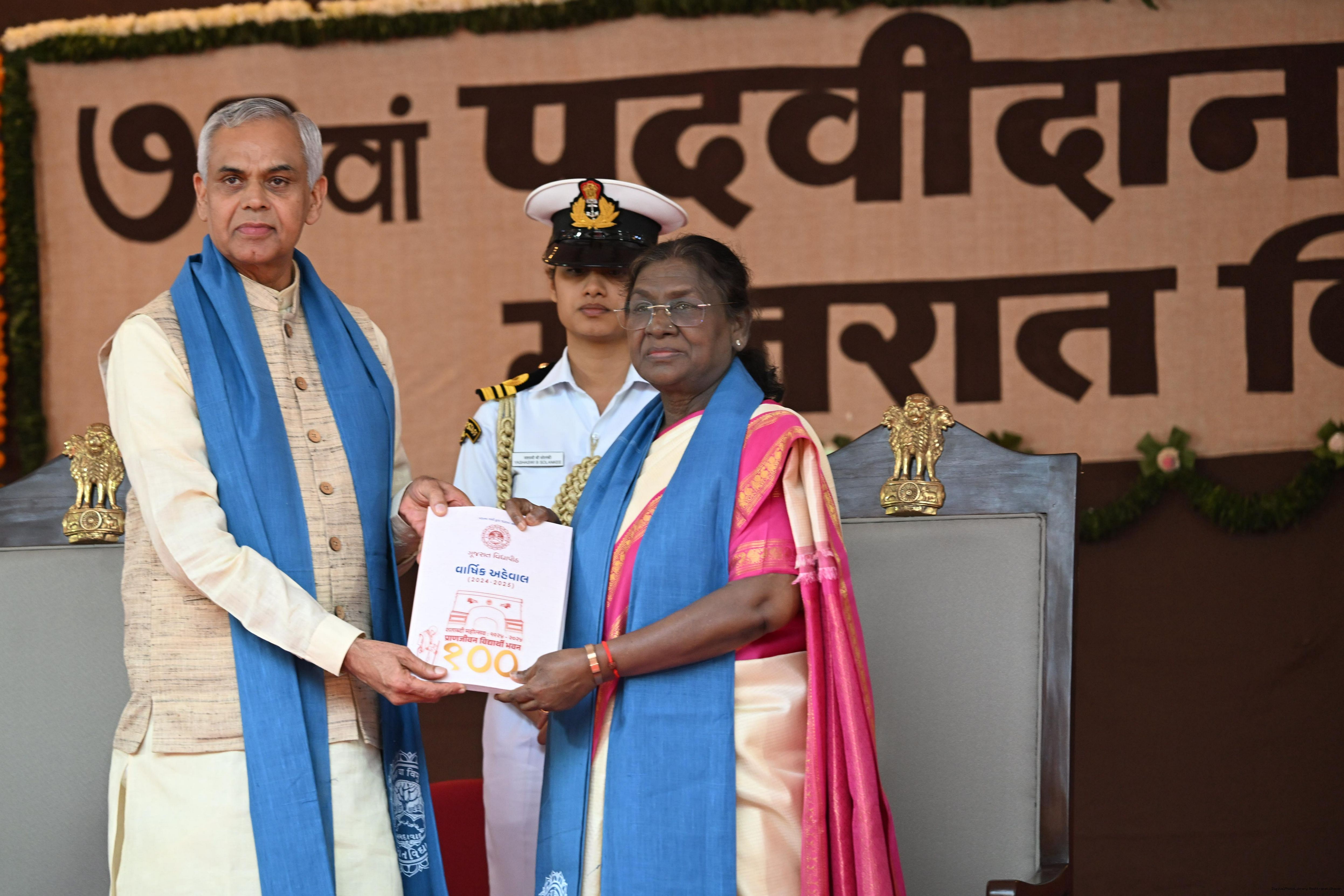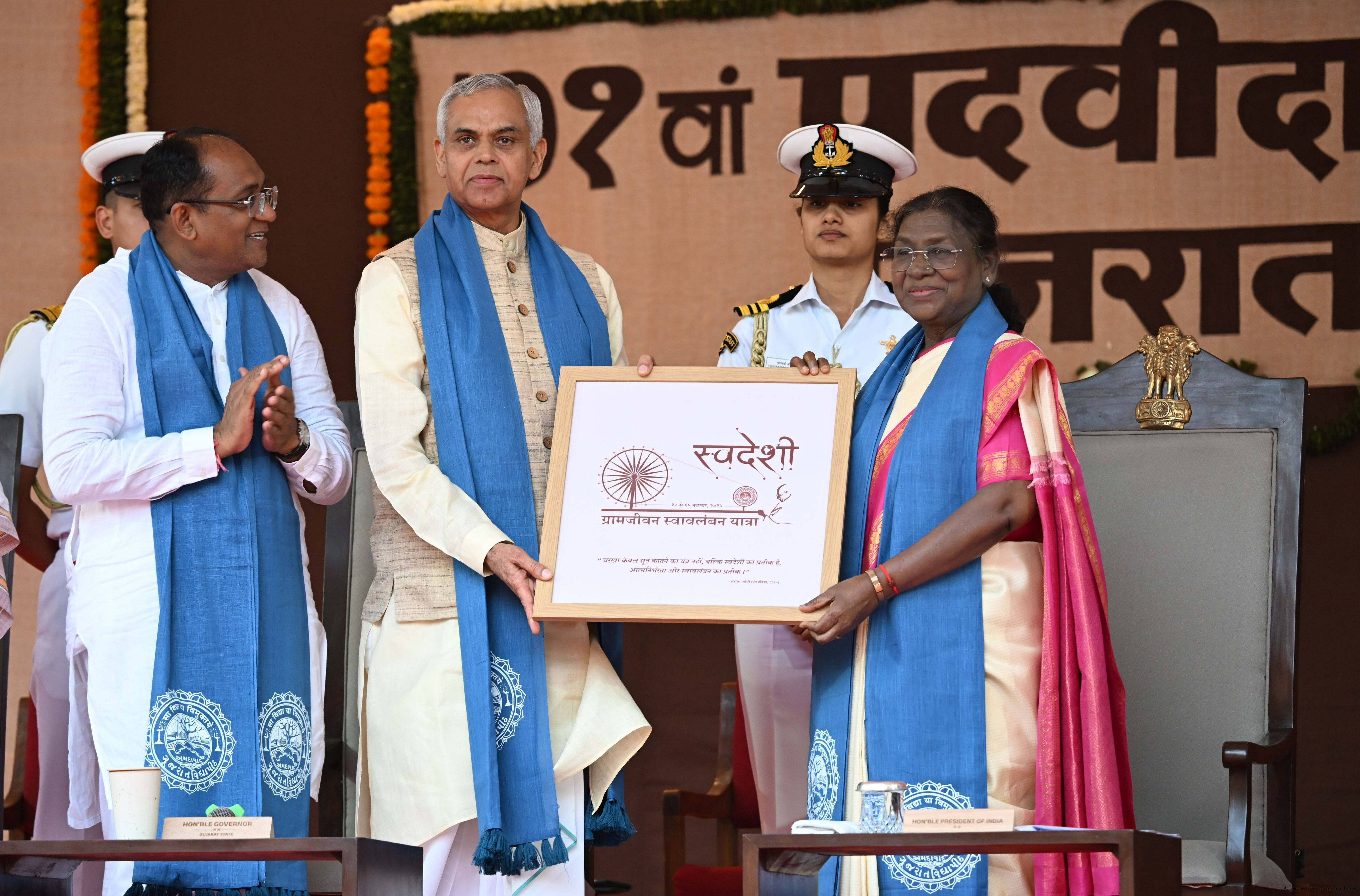 | Caption: | The President of India, Smt Droupadi Murmu, graced the 71st convocation ceremony of Gujarat Vidyapith at Ahmedabad on October 11, 2025. |