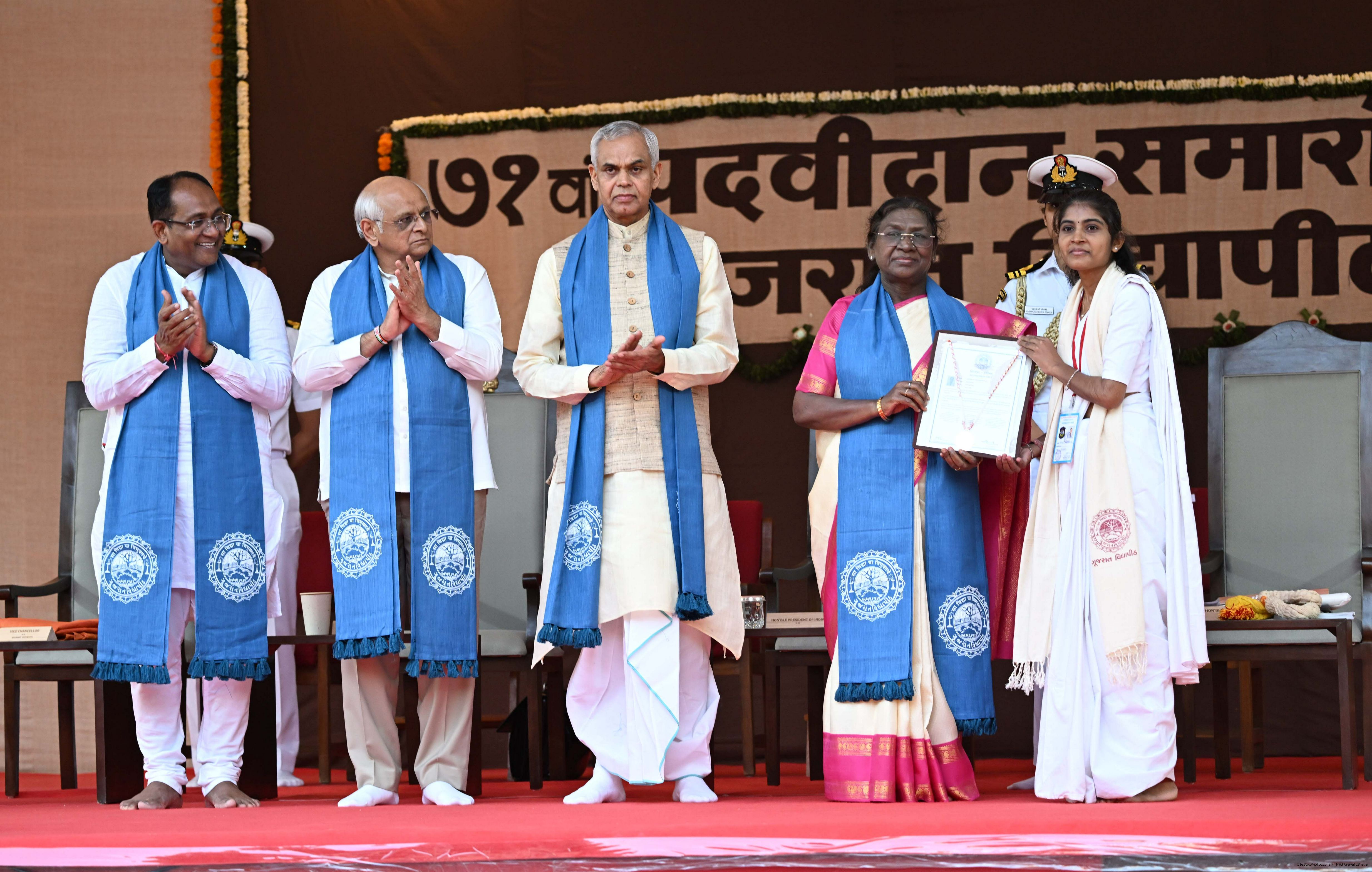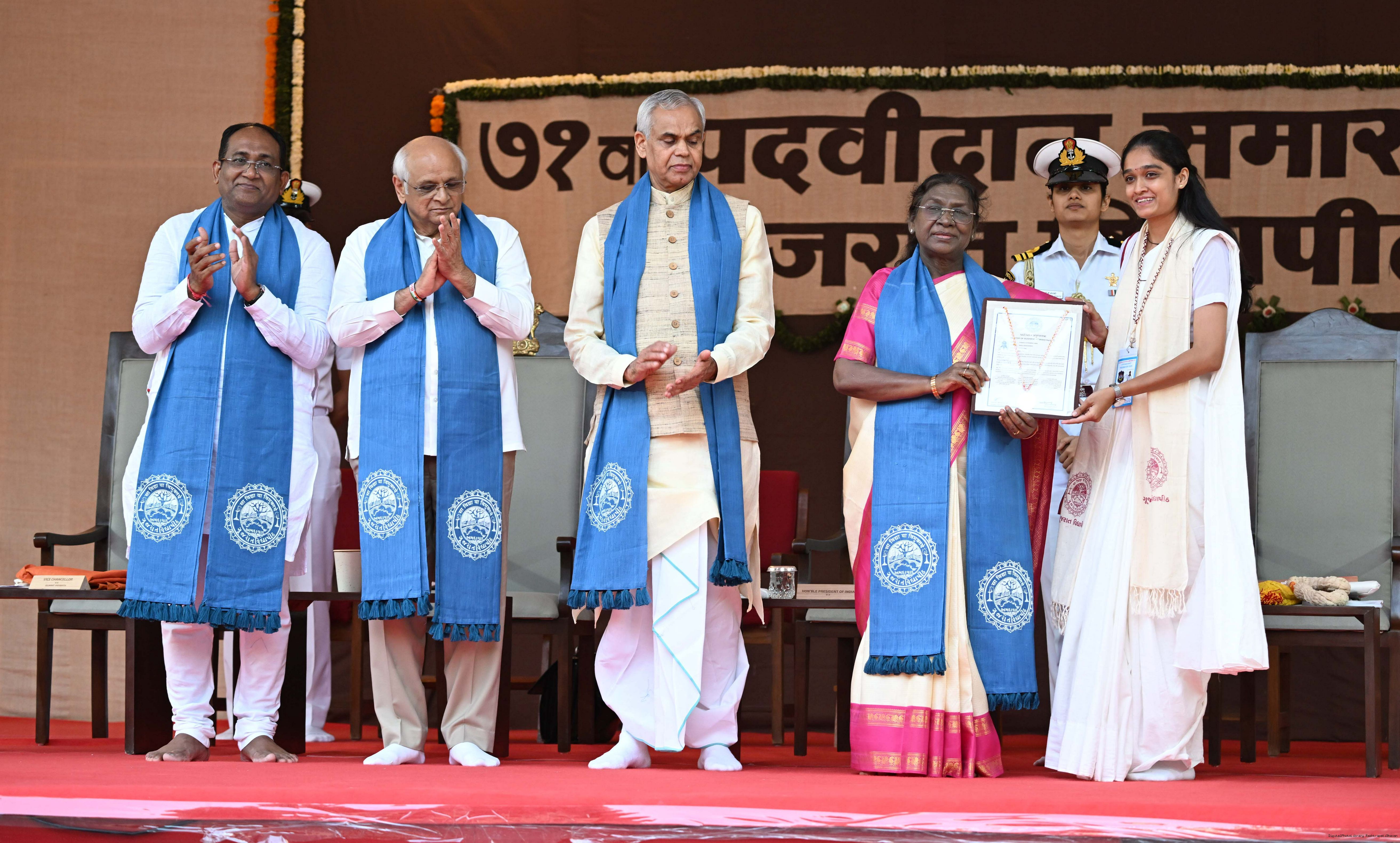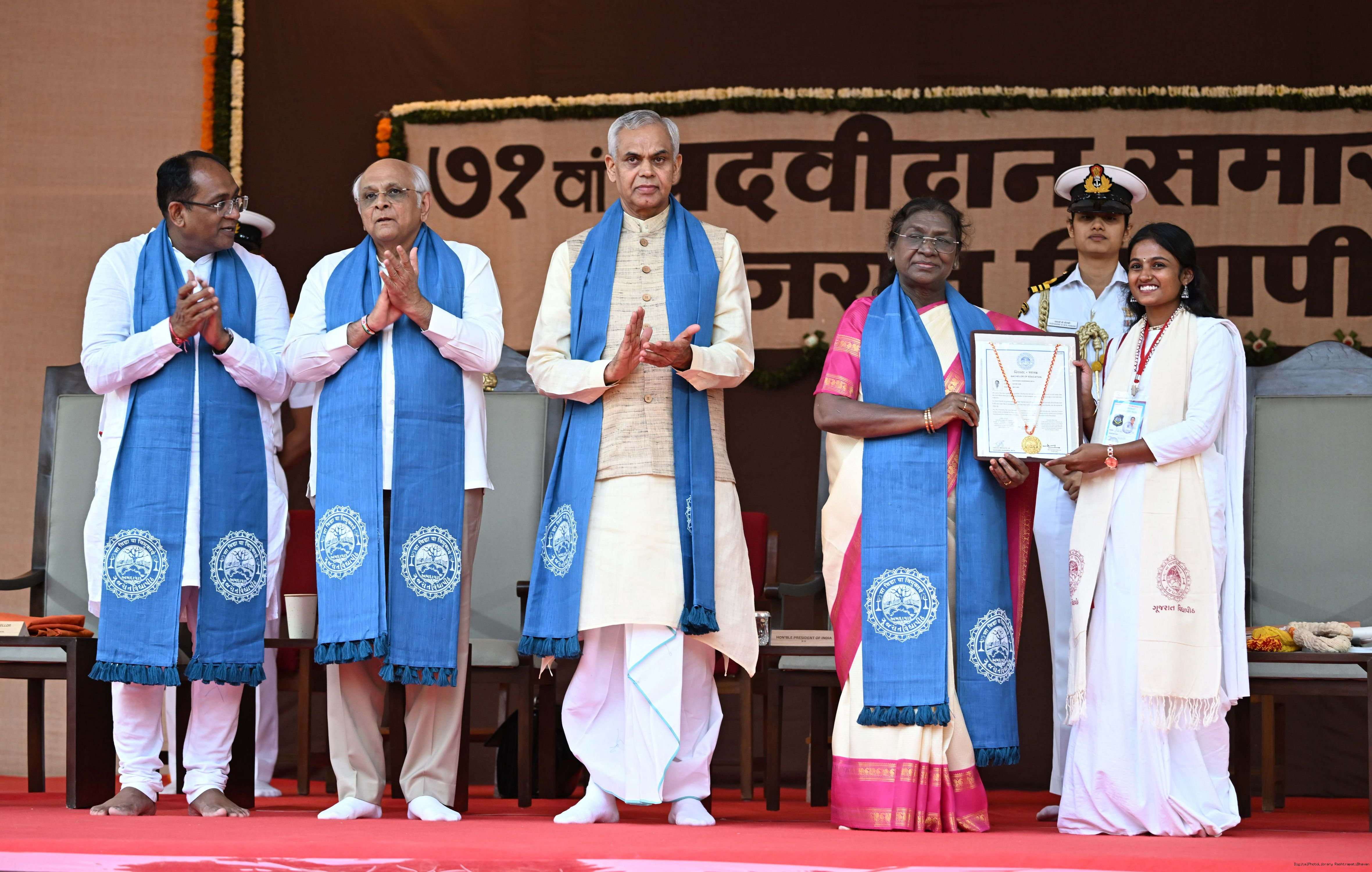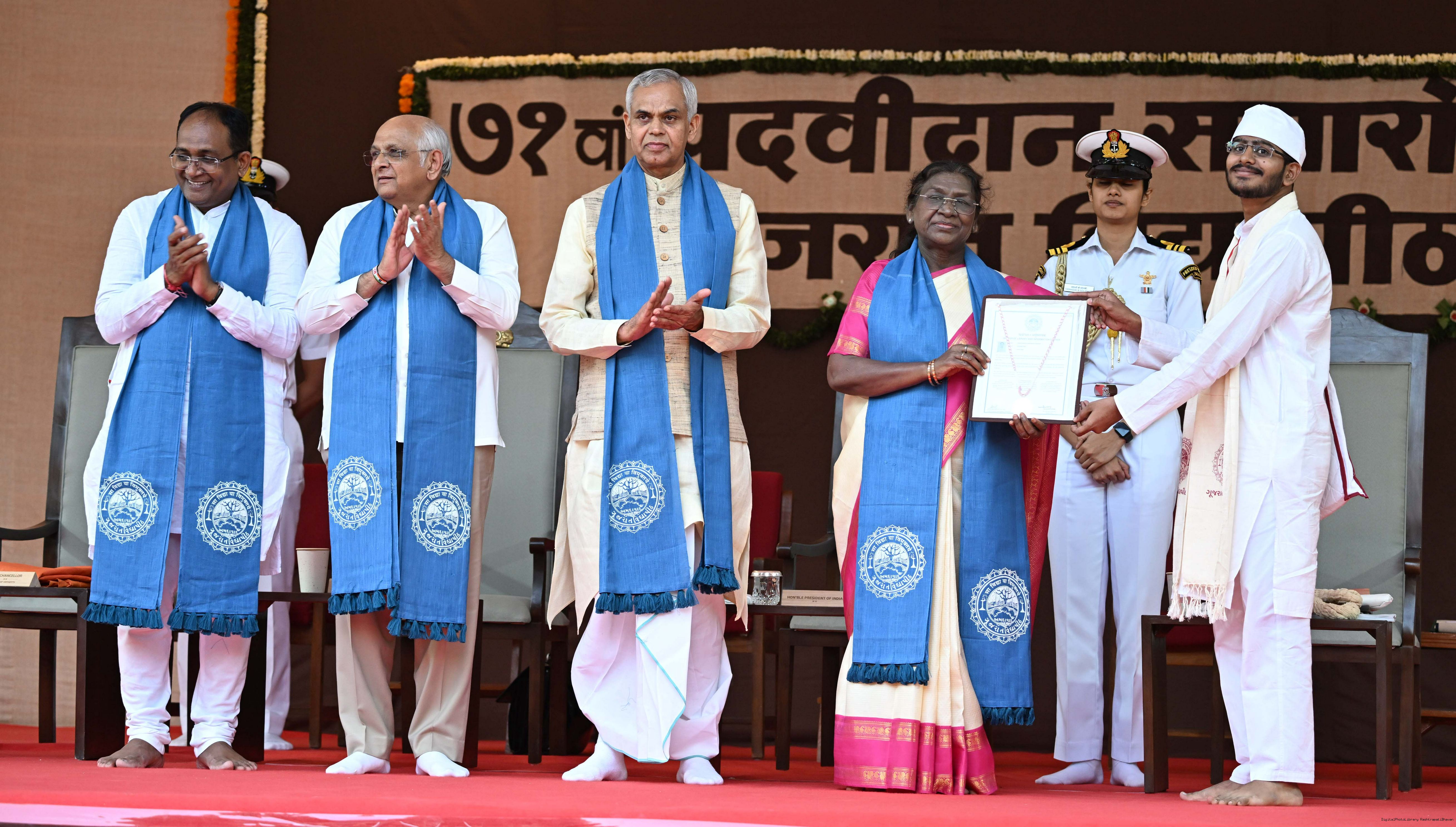 | Caption: | The President of India, Smt Droupadi Murmu, graced the 71st convocation ceremony of Gujarat Vidyapith at Ahmedabad on October 11, 2025. |