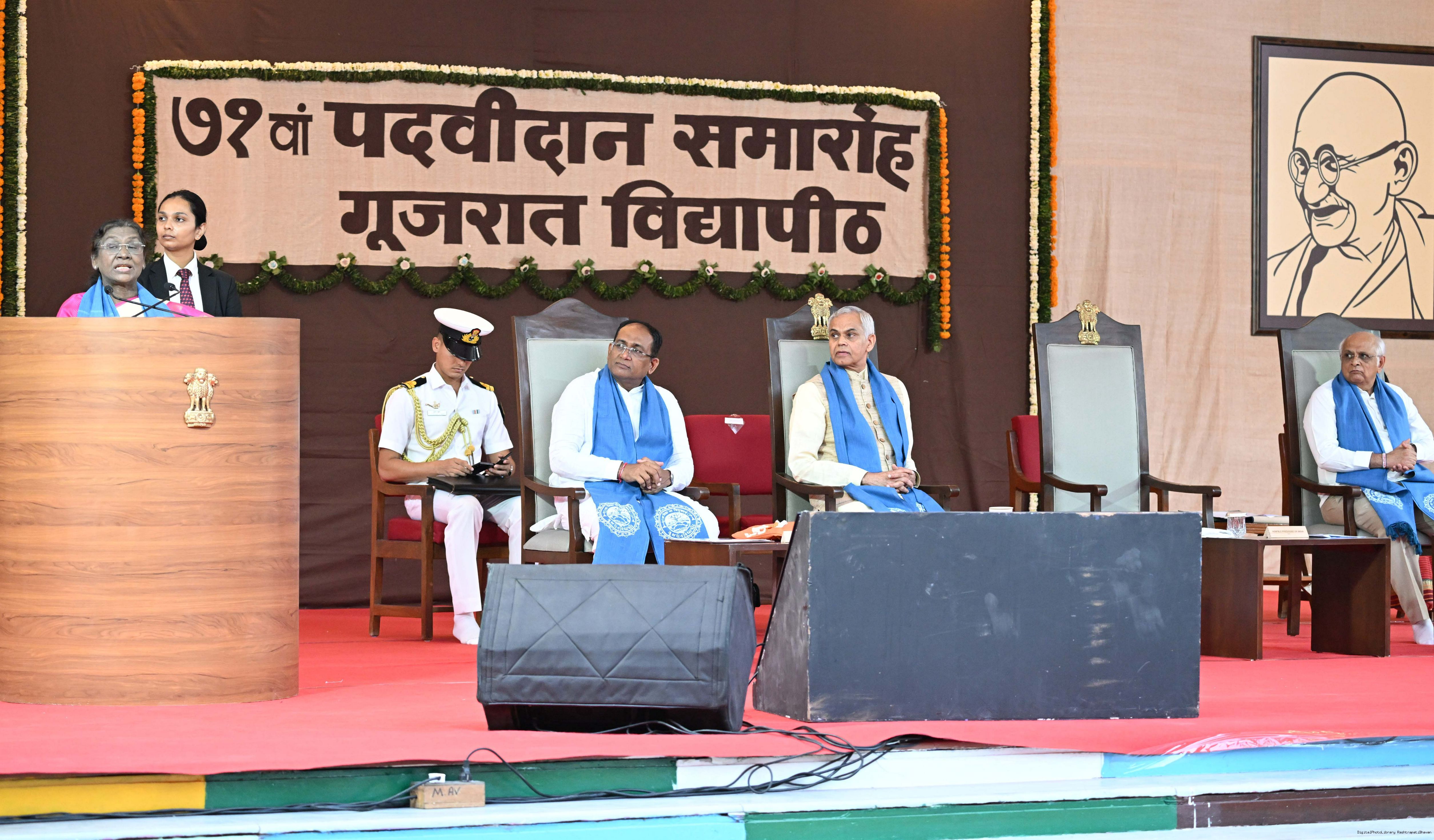 | Caption: | The President of India, Smt Droupadi Murmu, graced the 71st convocation ceremony of Gujarat Vidyapith at Ahmedabad on October 11, 2025. |