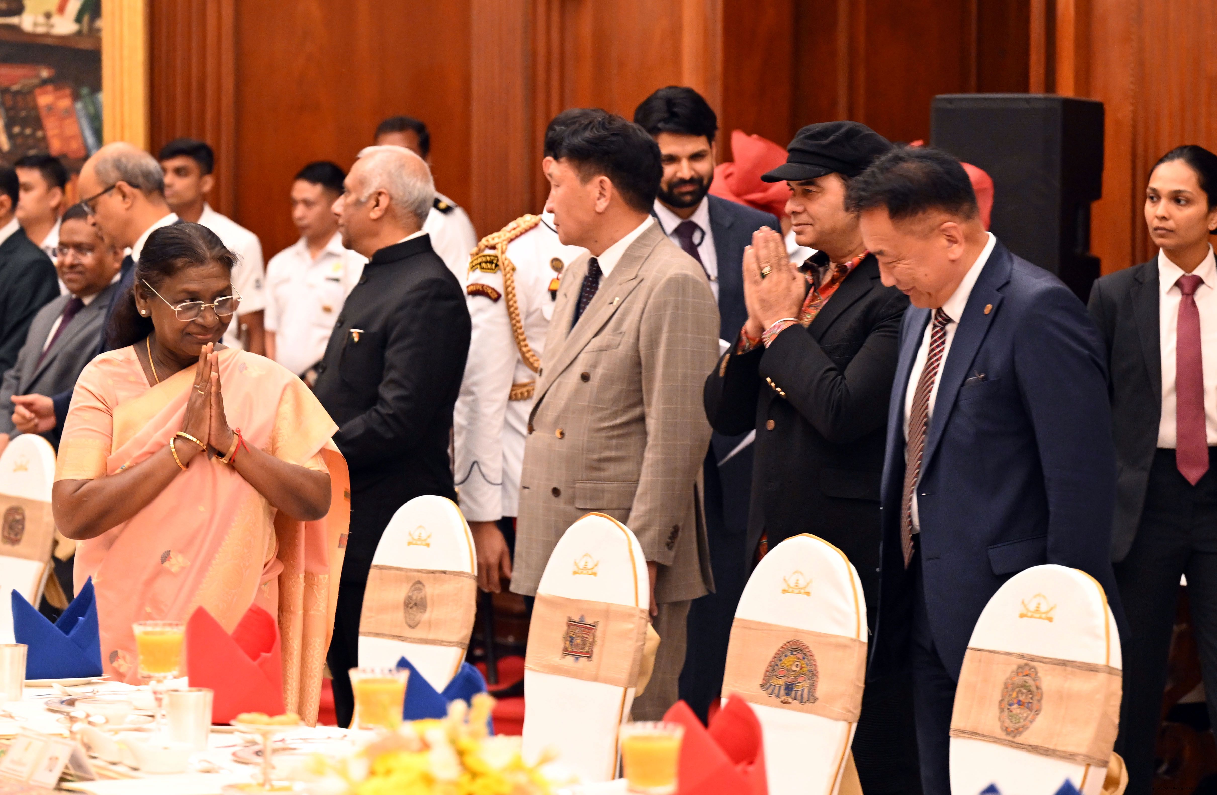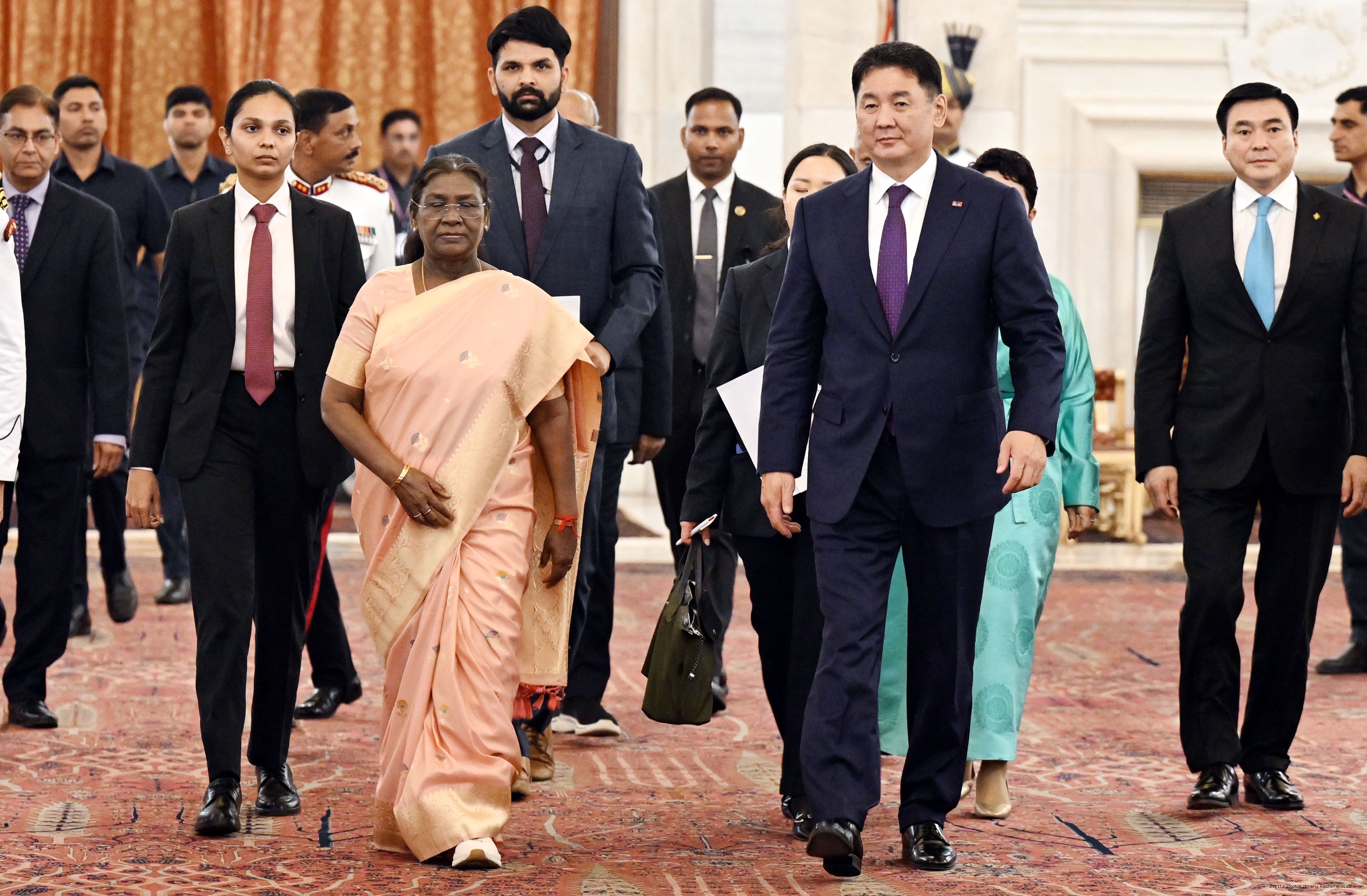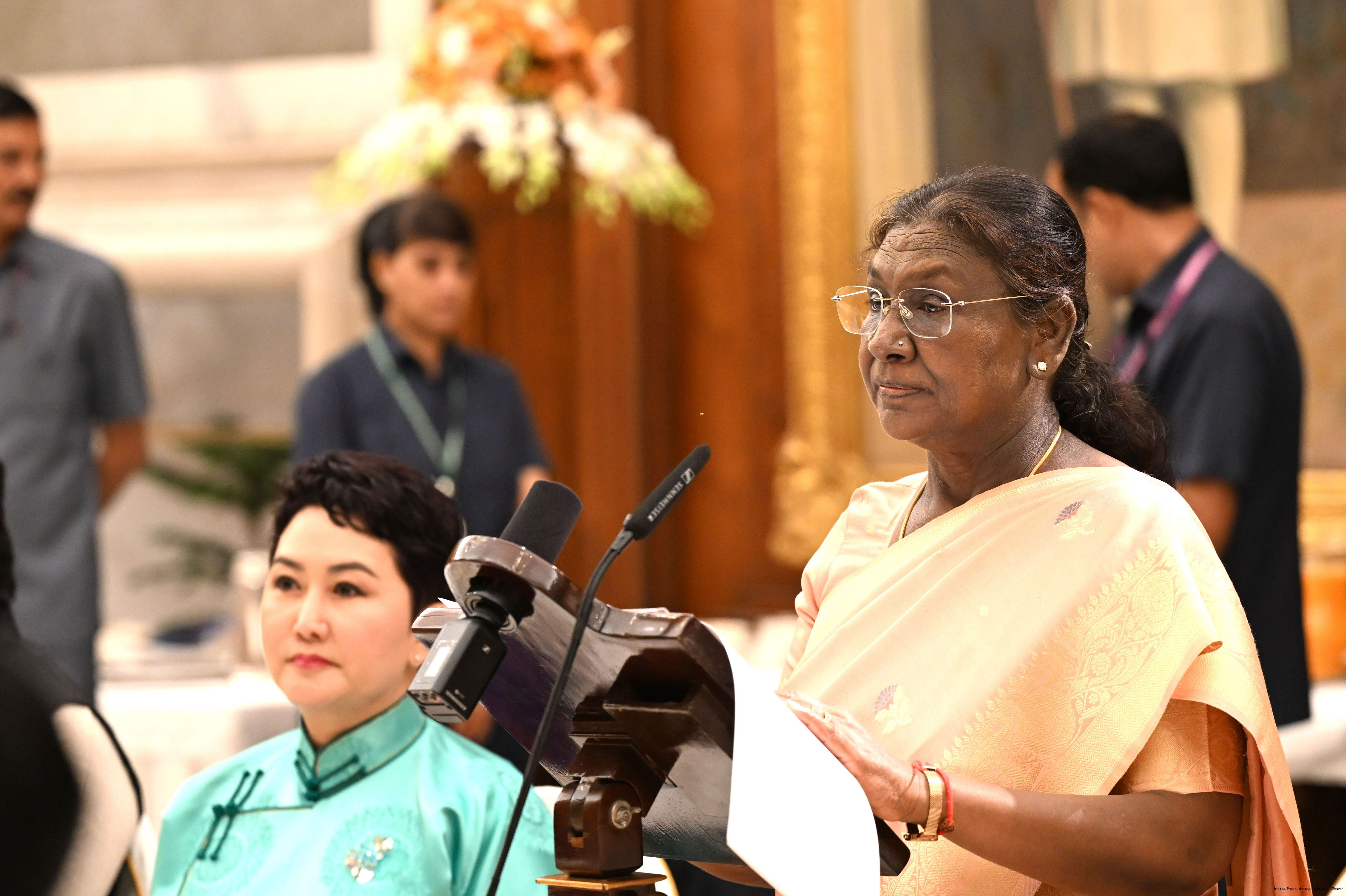 | Caption: | The President of India, Smt Droupadi Murmu hosted a banquet in the honour to H.E. Mr Khurelsukh Ukhnaa, President of Mongolia at Rashtrapati Bhavan on October 14, 2025. |