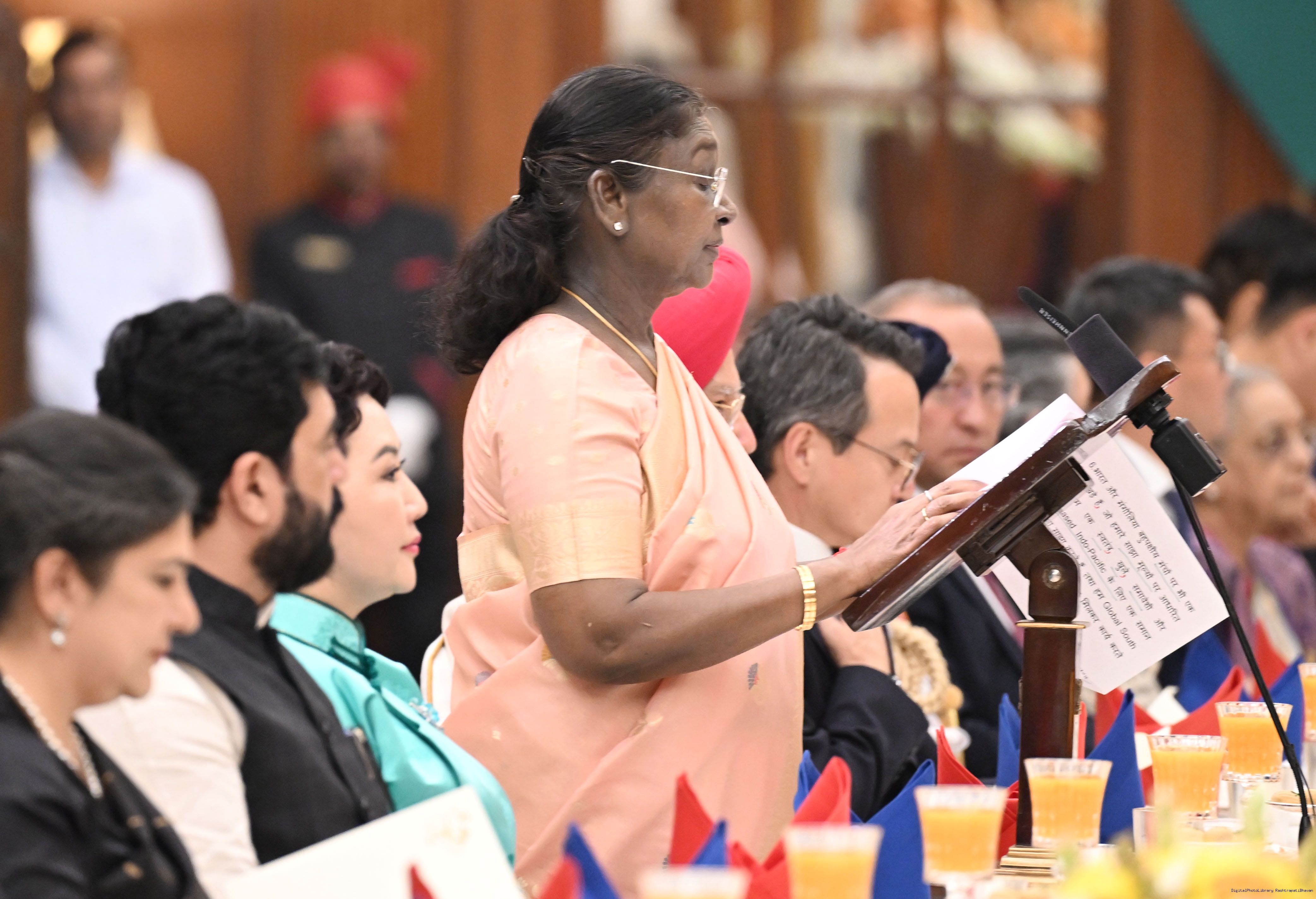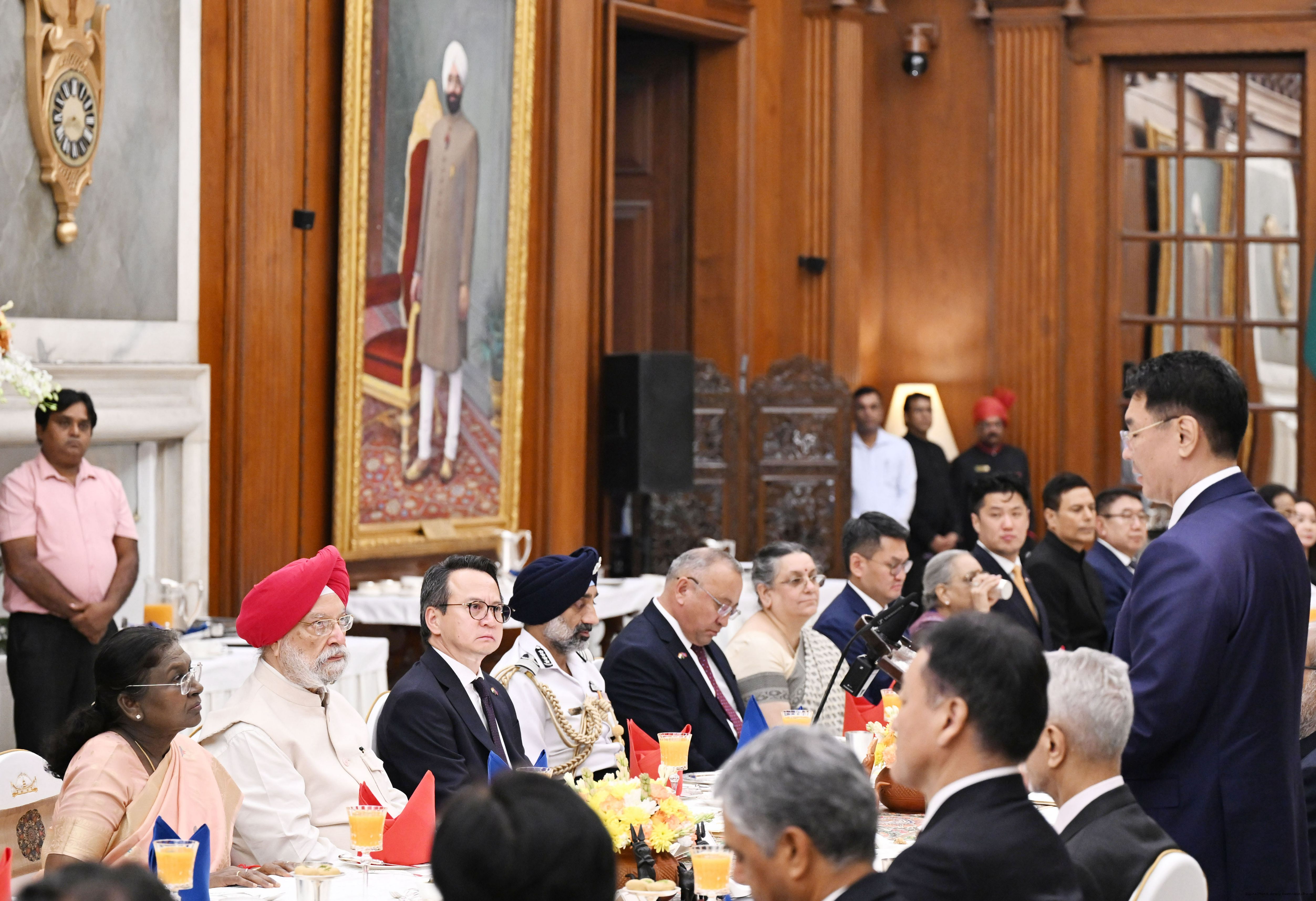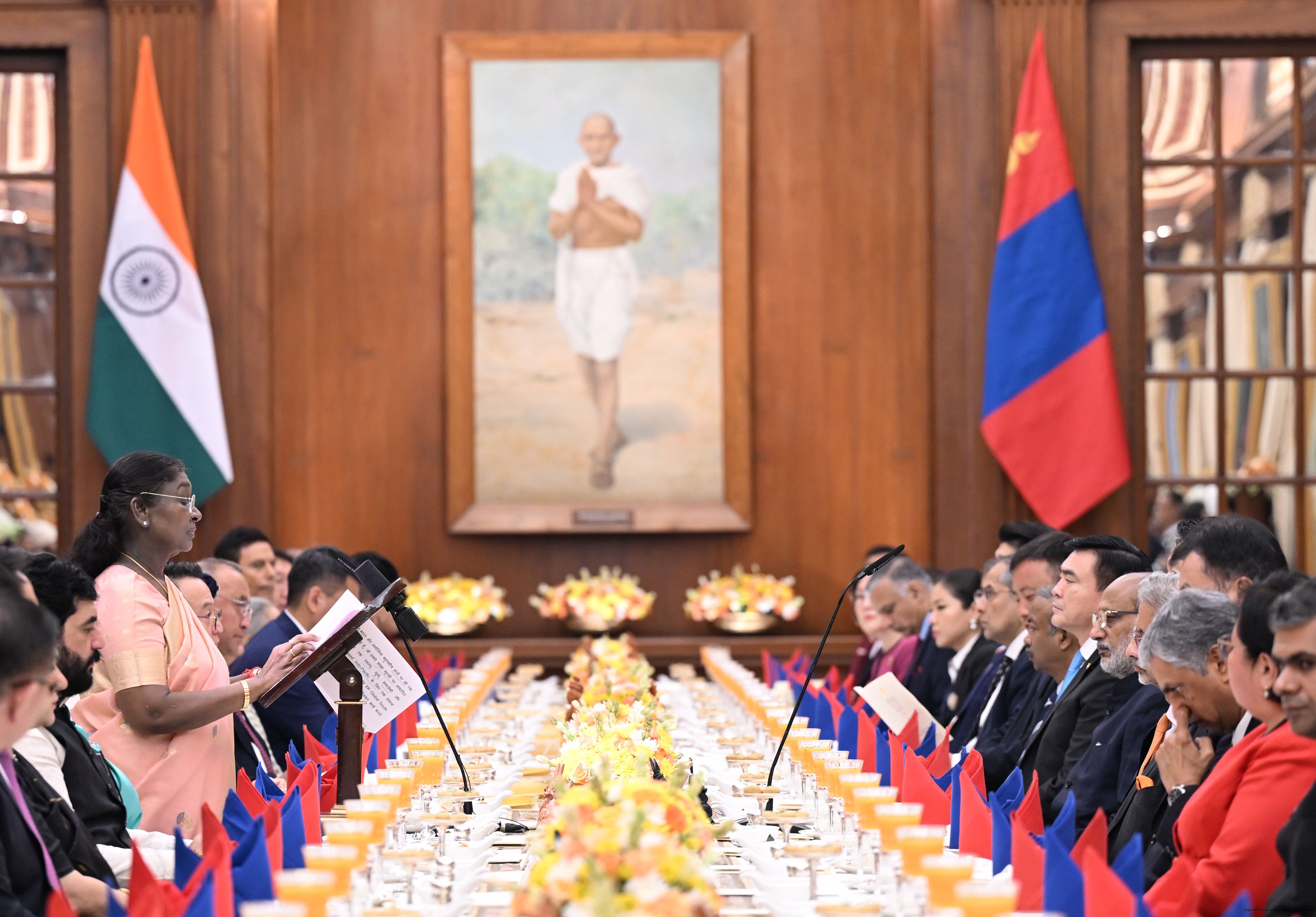 | Caption: | The President of India, Smt Droupadi Murmu hosted a banquet in the honour to H.E. Mr Khurelsukh Ukhnaa, President of Mongolia at Rashtrapati Bhavan on October 14, 2025. |