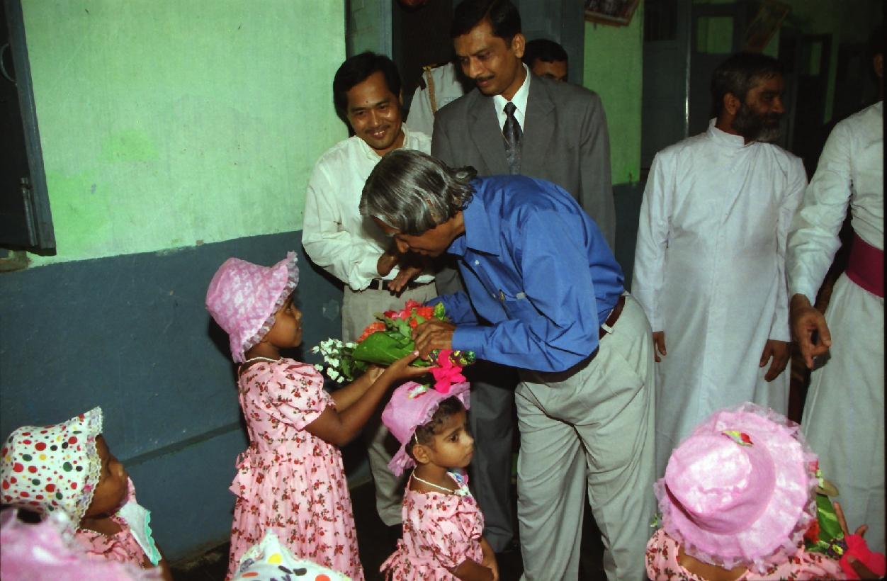| Caption: | The President of India, Dr A P J Abdul Kalam visiting the Shishu Pratishtan at Agartala in Tripura on Oct 04, 2002 |