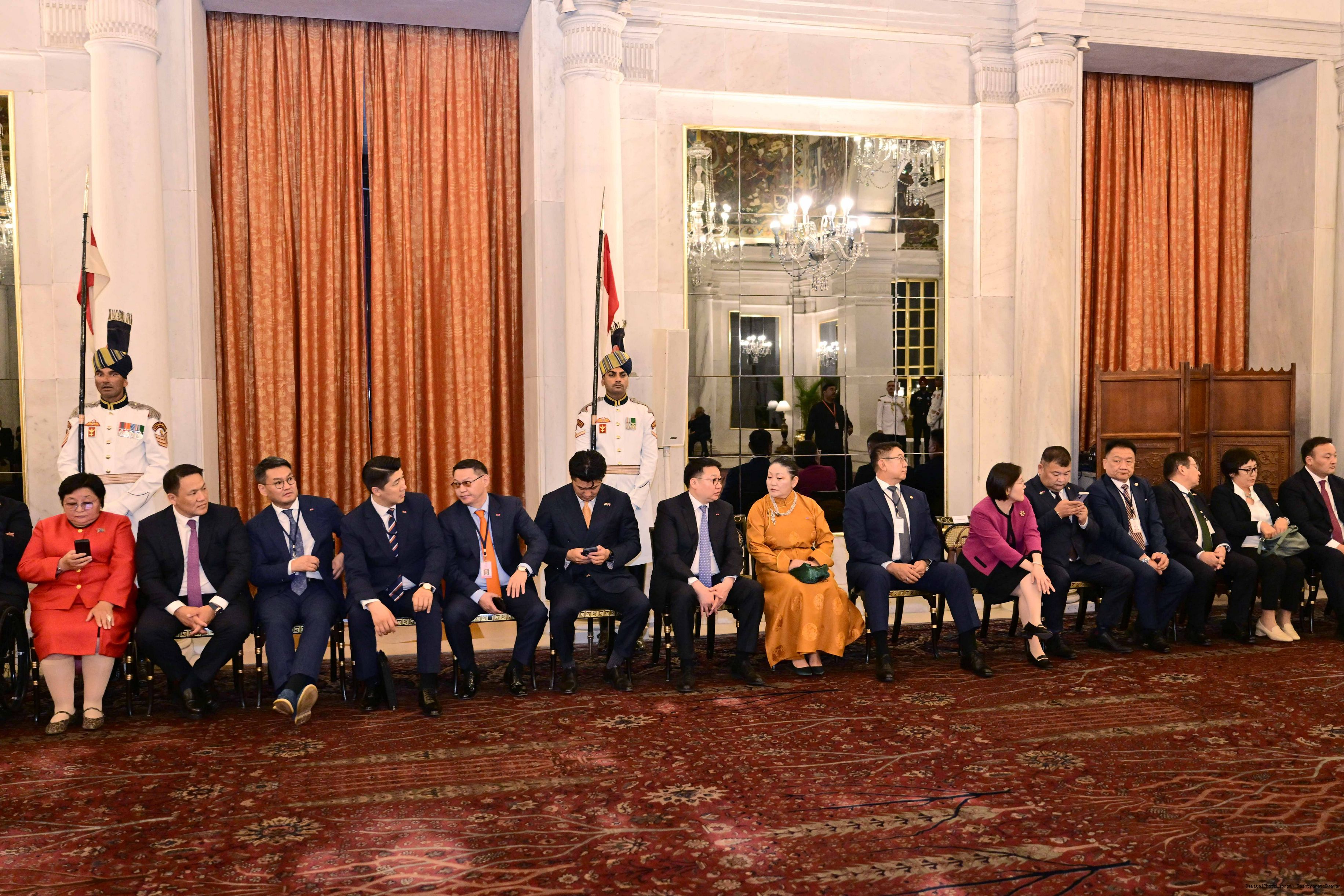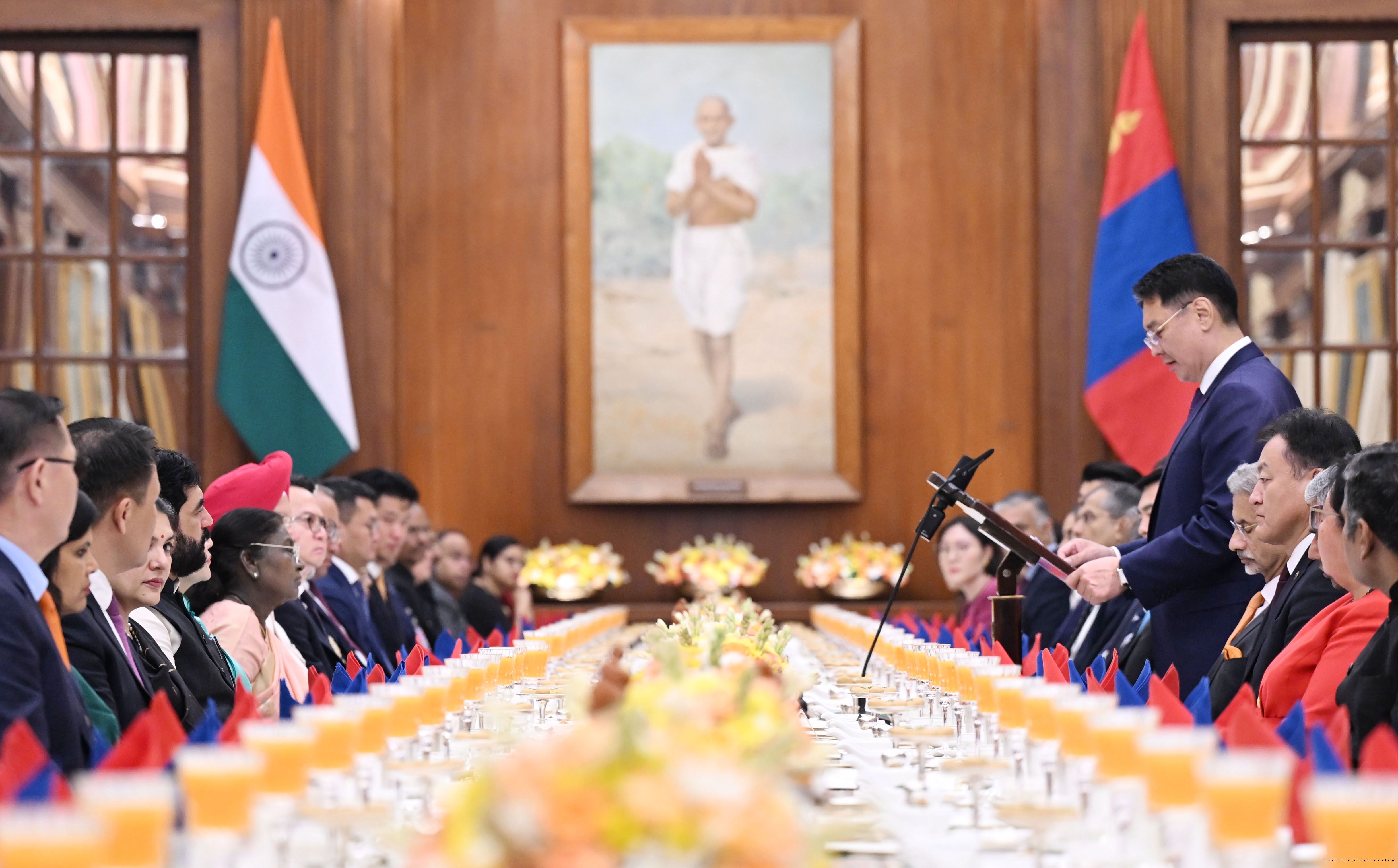 | Caption: | The President of India, Smt Droupadi Murmu hosted a banquet in the honour to H.E. Mr Khurelsukh Ukhnaa, President of Mongolia at Rashtrapati Bhavan on October 14, 2025. |
