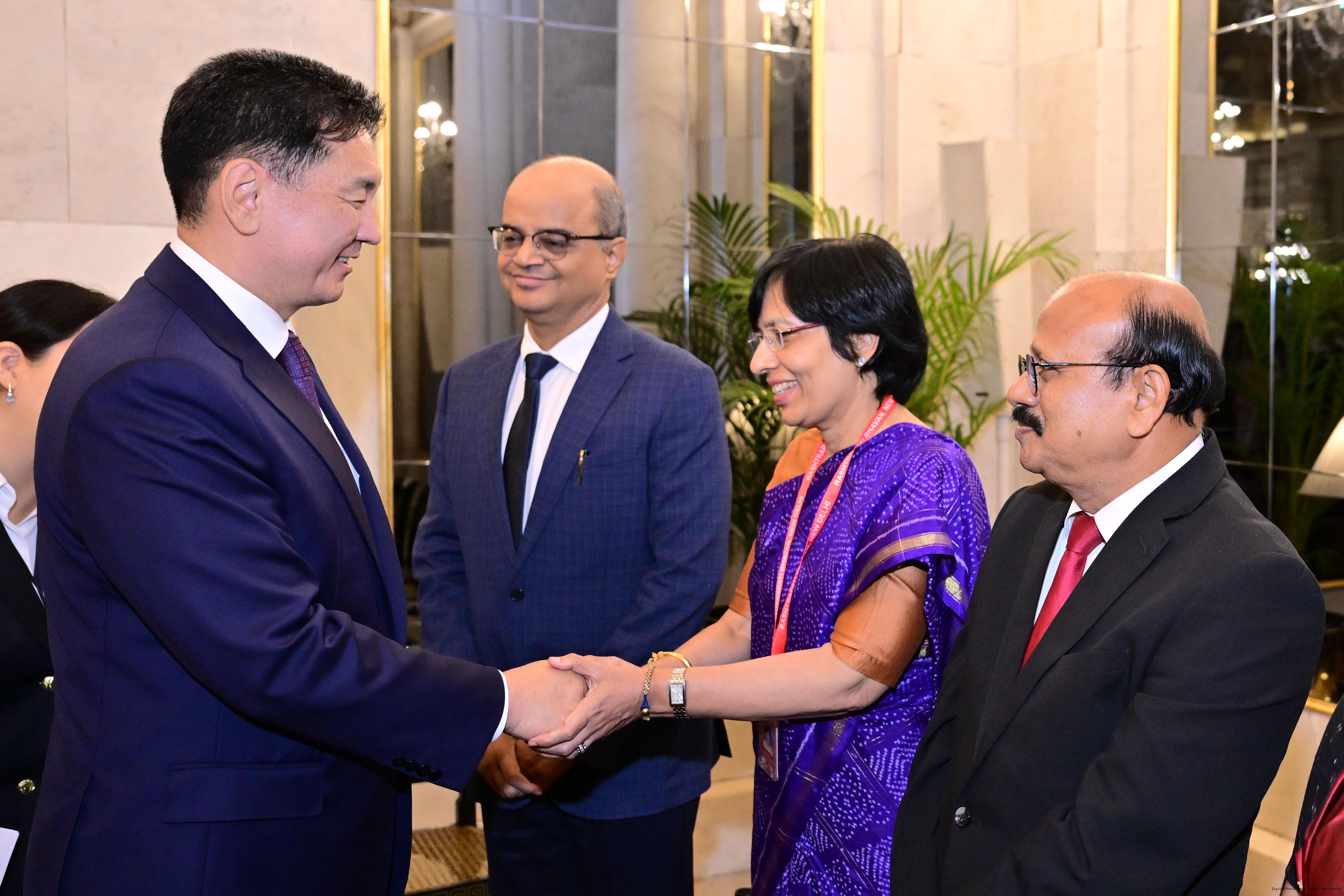 | Caption: | The President of India, Smt Droupadi Murmu hosted a banquet in the honour to H.E. Mr Khurelsukh Ukhnaa, President of Mongolia at Rashtrapati Bhavan on October 14, 2025. |