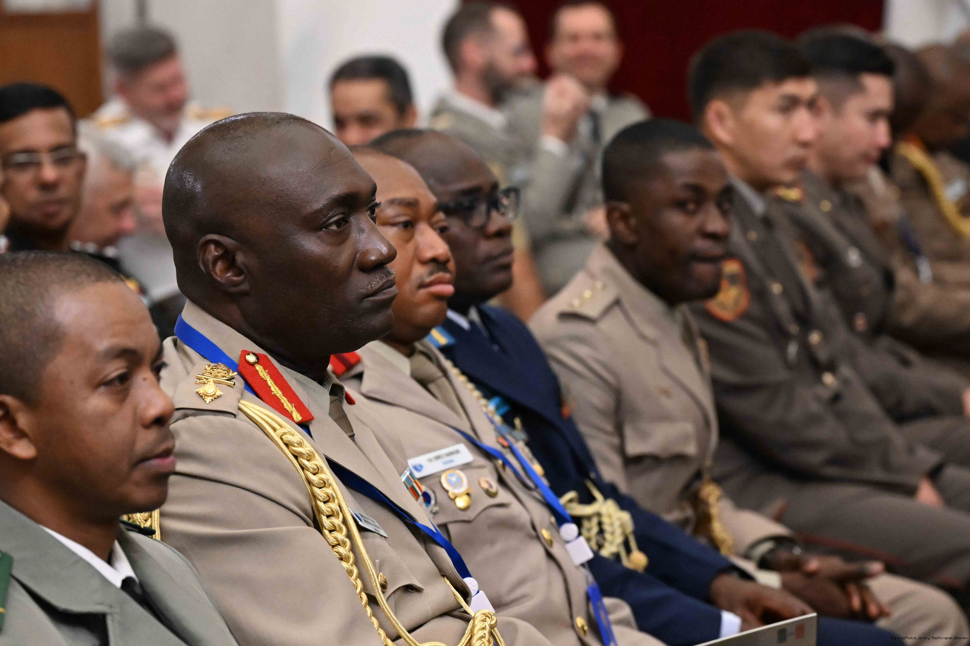 | Category: | The President interacted and posing a group photograph the Army Chiefs’/Vice-Chiefs Conclave for United Nations Troop Contributing Countries on October 16, 2025. |