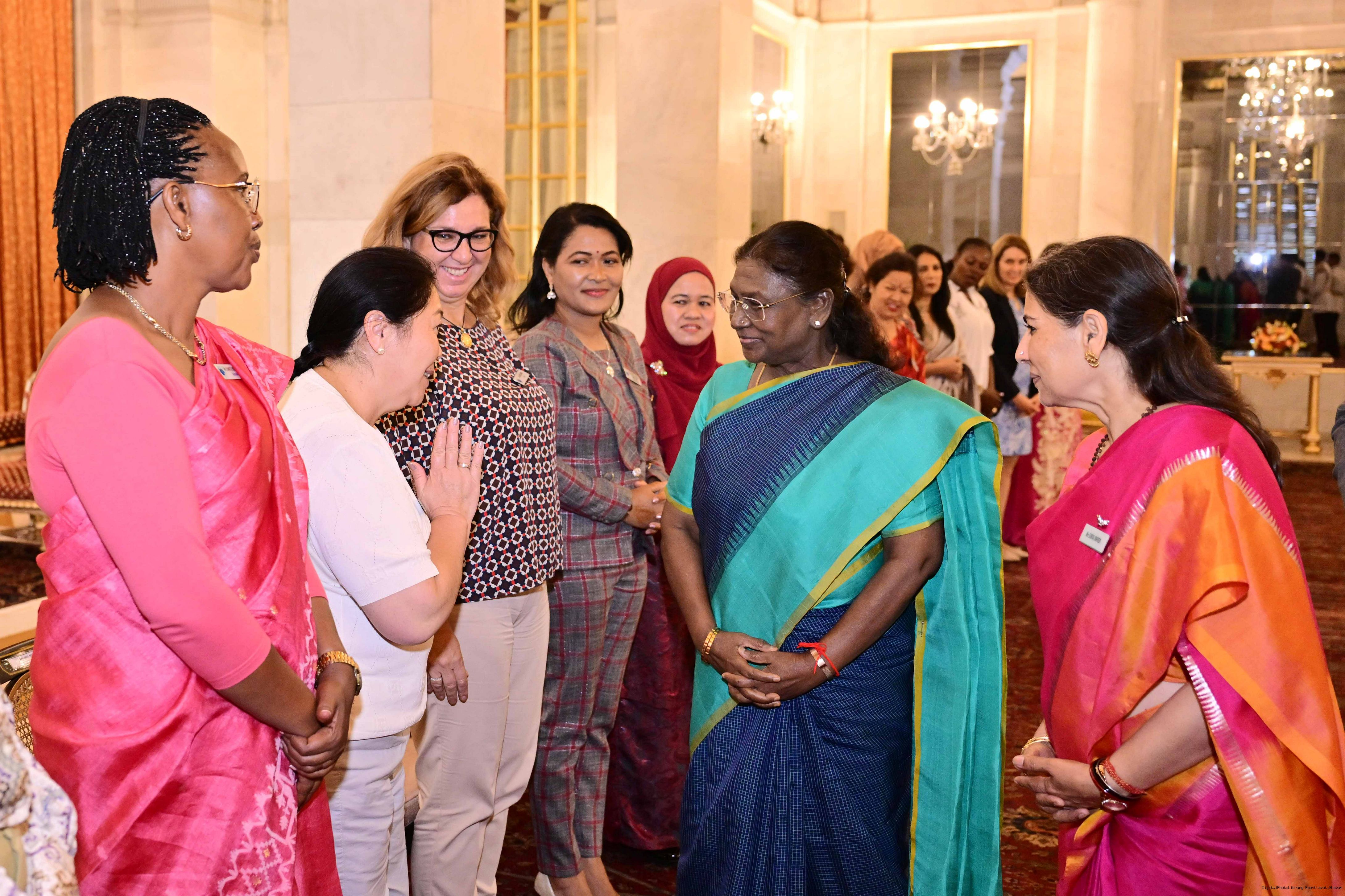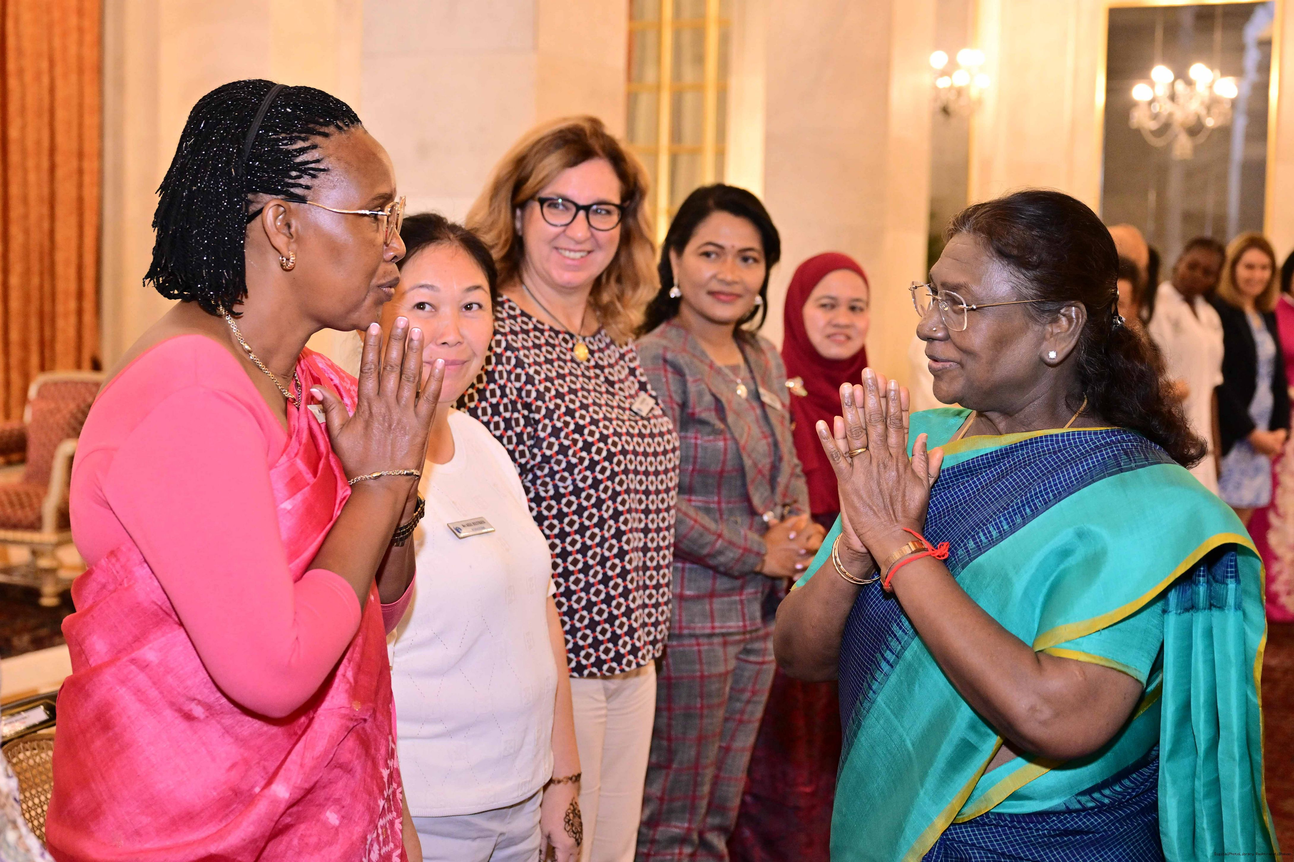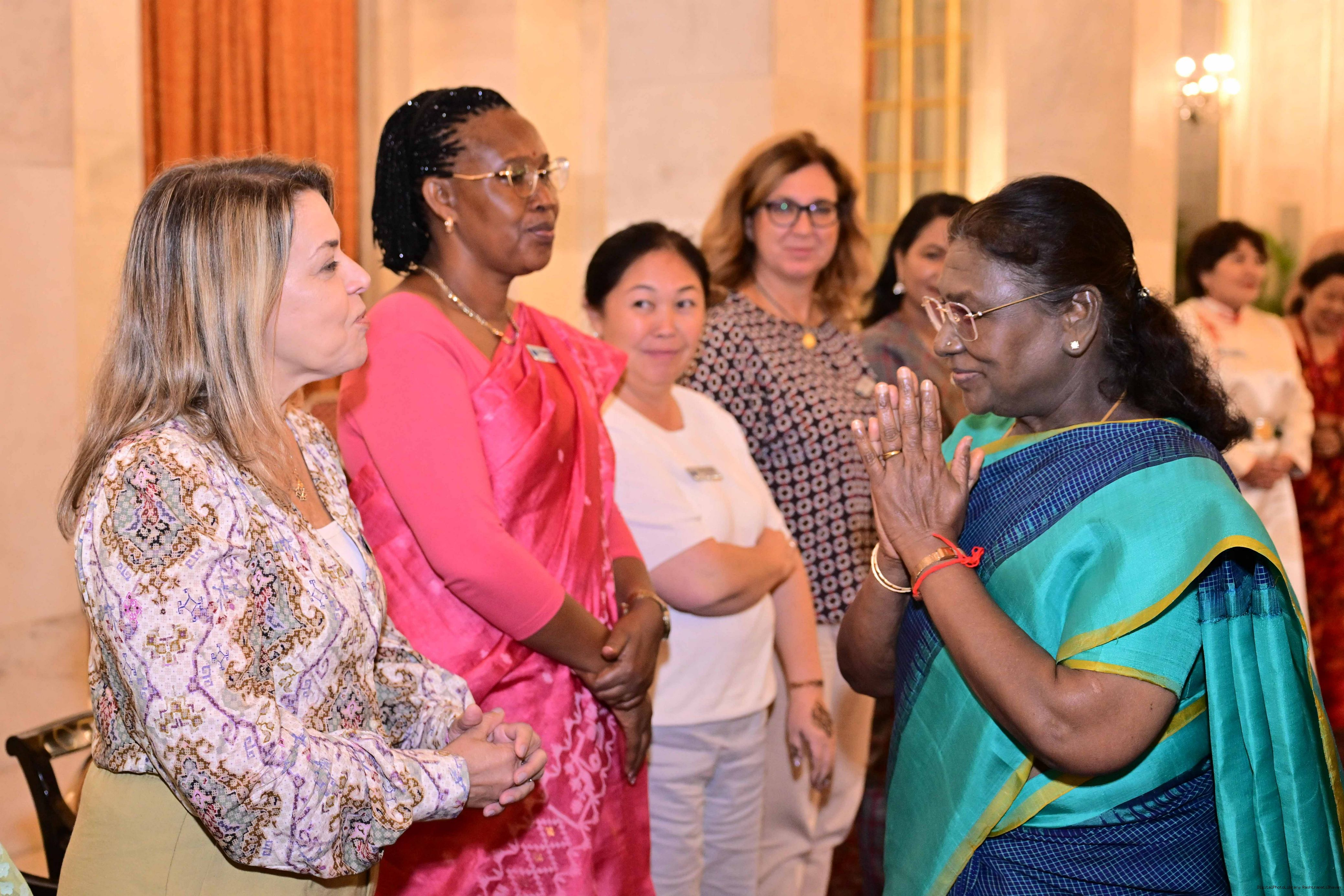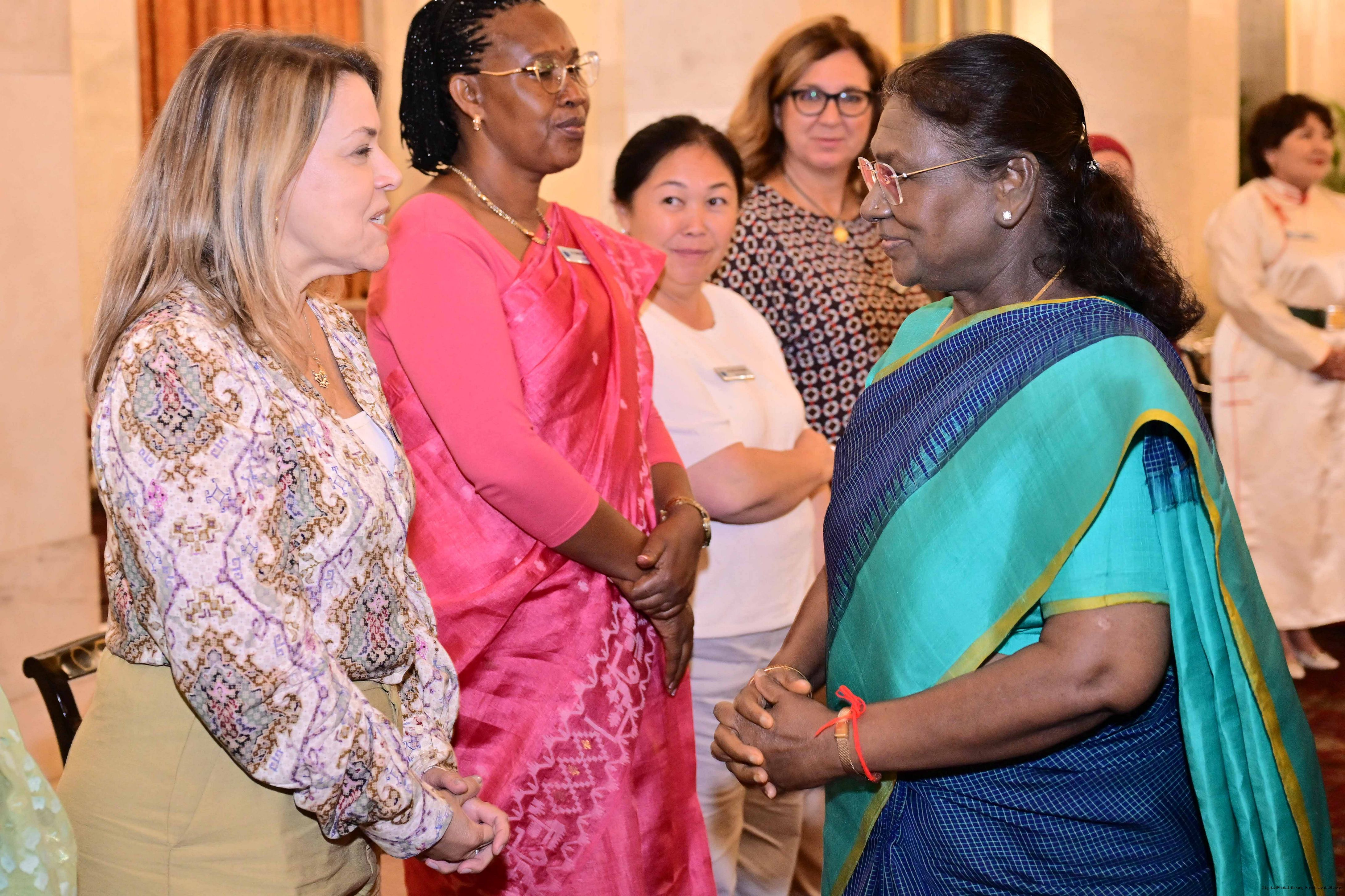| Caption: | The Chiefs/Vice-Chiefs of Army, participating in the Army Chiefs’ Conclave for United Nations Troop Contributing Countries, along with spouses, called on the President of India, Smt. Droupadi Murmu at Rashtrapati Bhavan on October 16, 2025. |