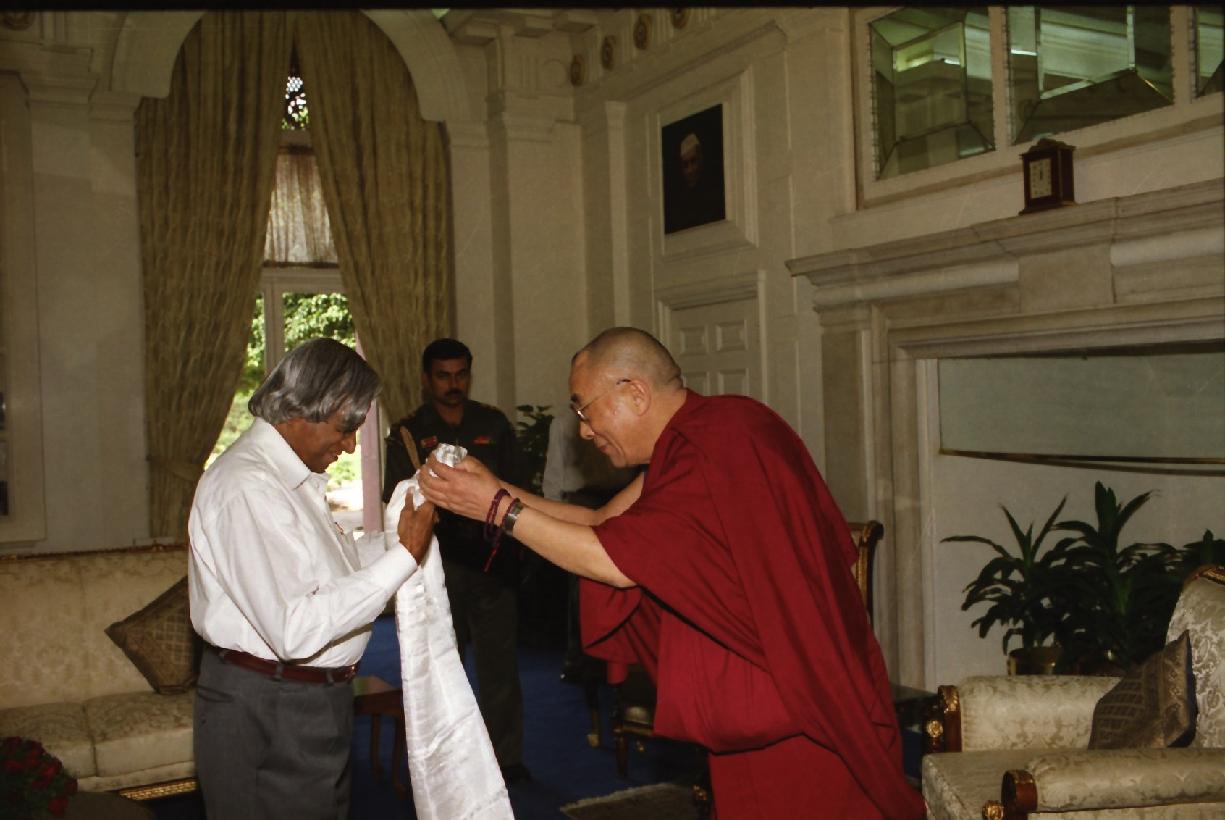 | Caption: | The His Holiness the Dalai Lama calling on the President of India, Dr A P J Abdul Kalam at Rashtrapati Bhavan in New Delhi on Oct 08, 2002 |