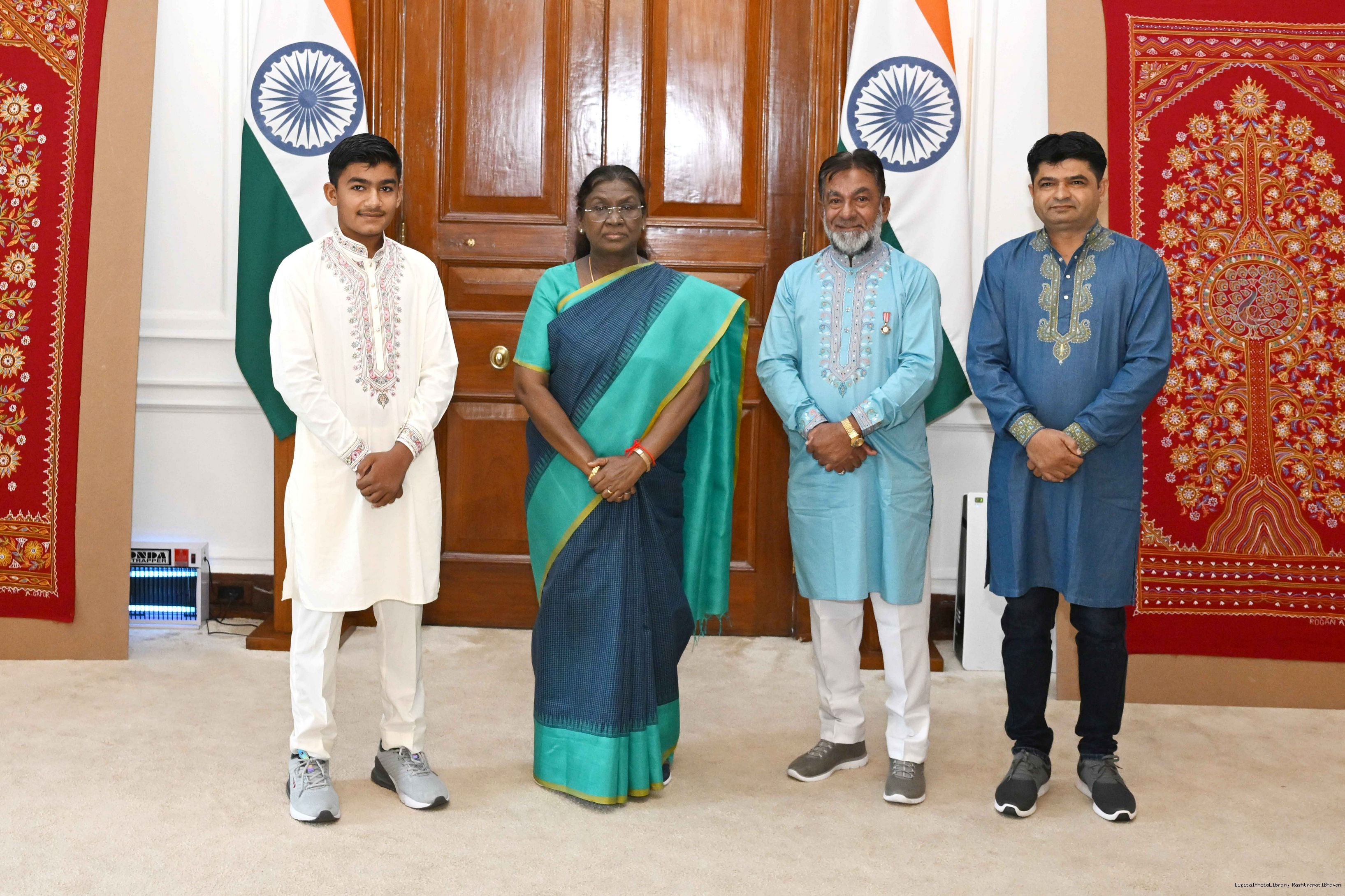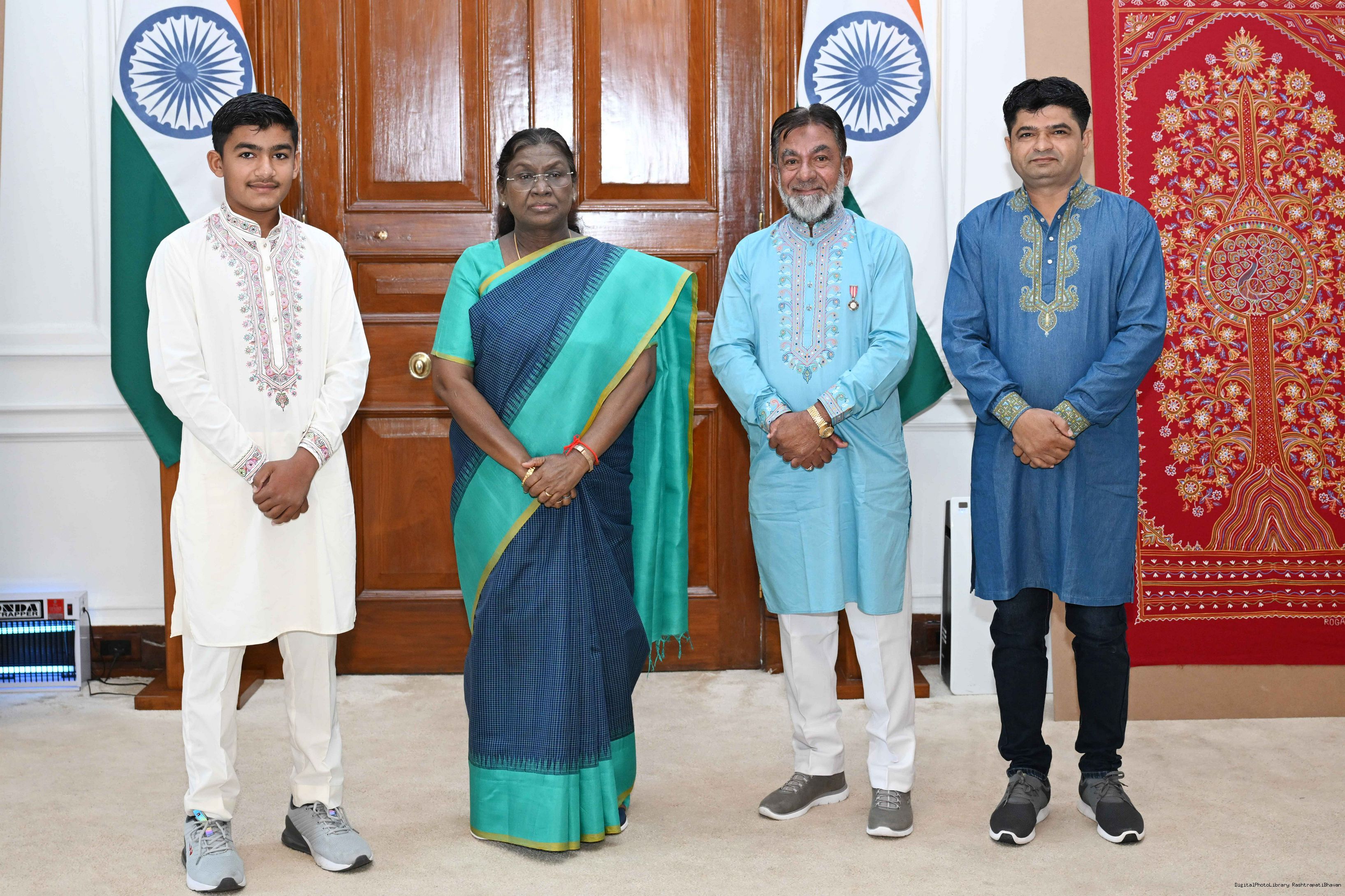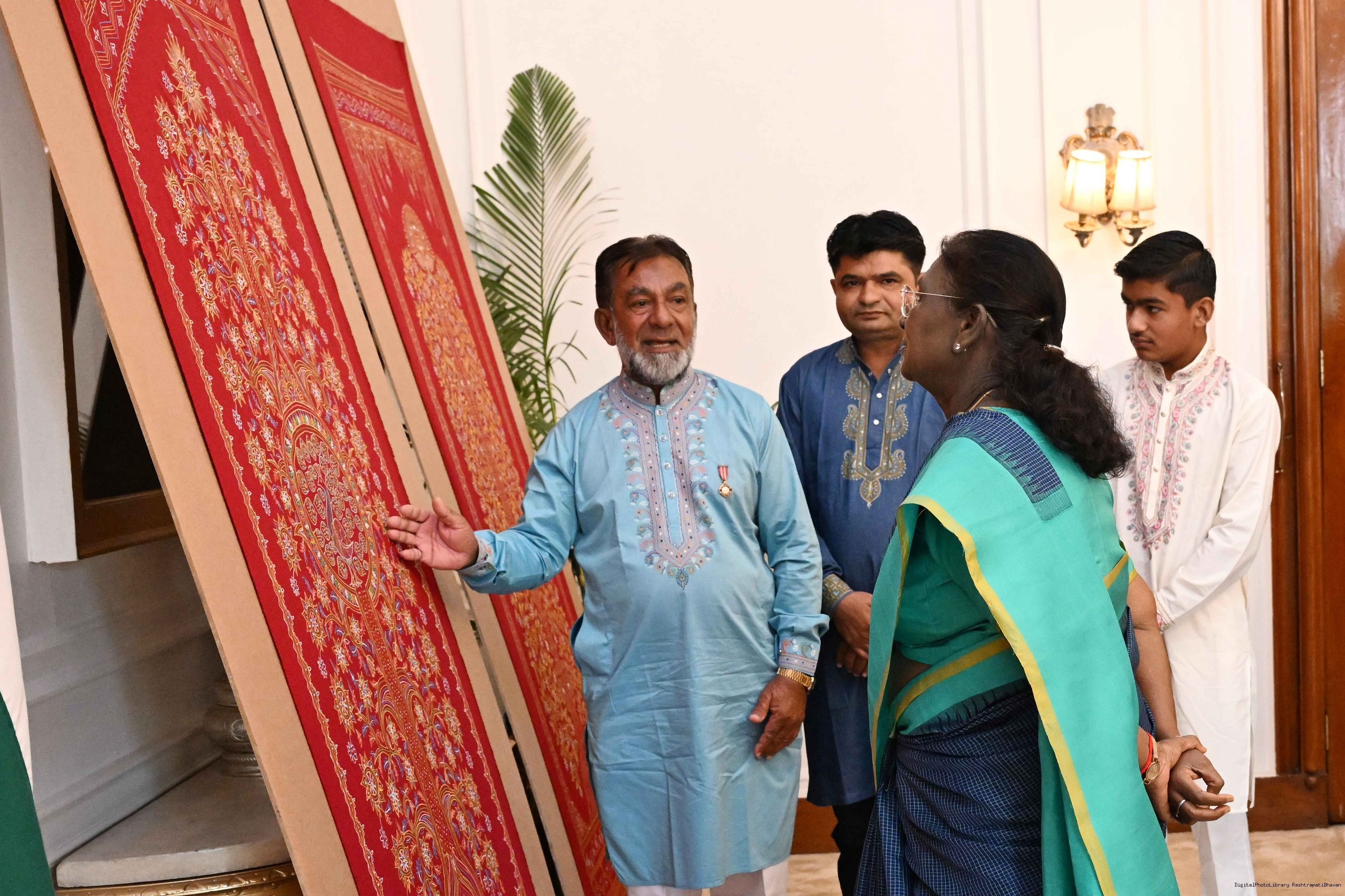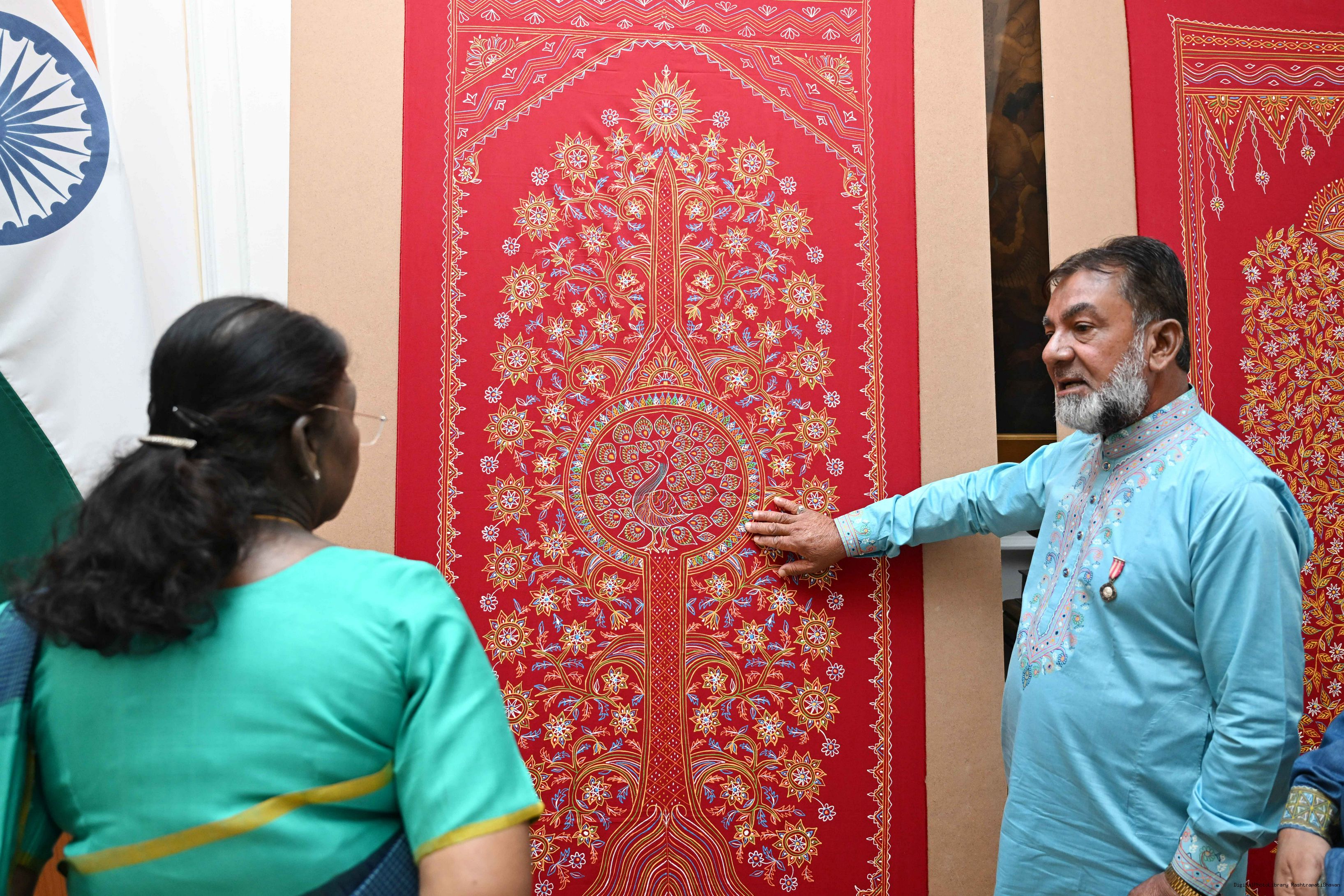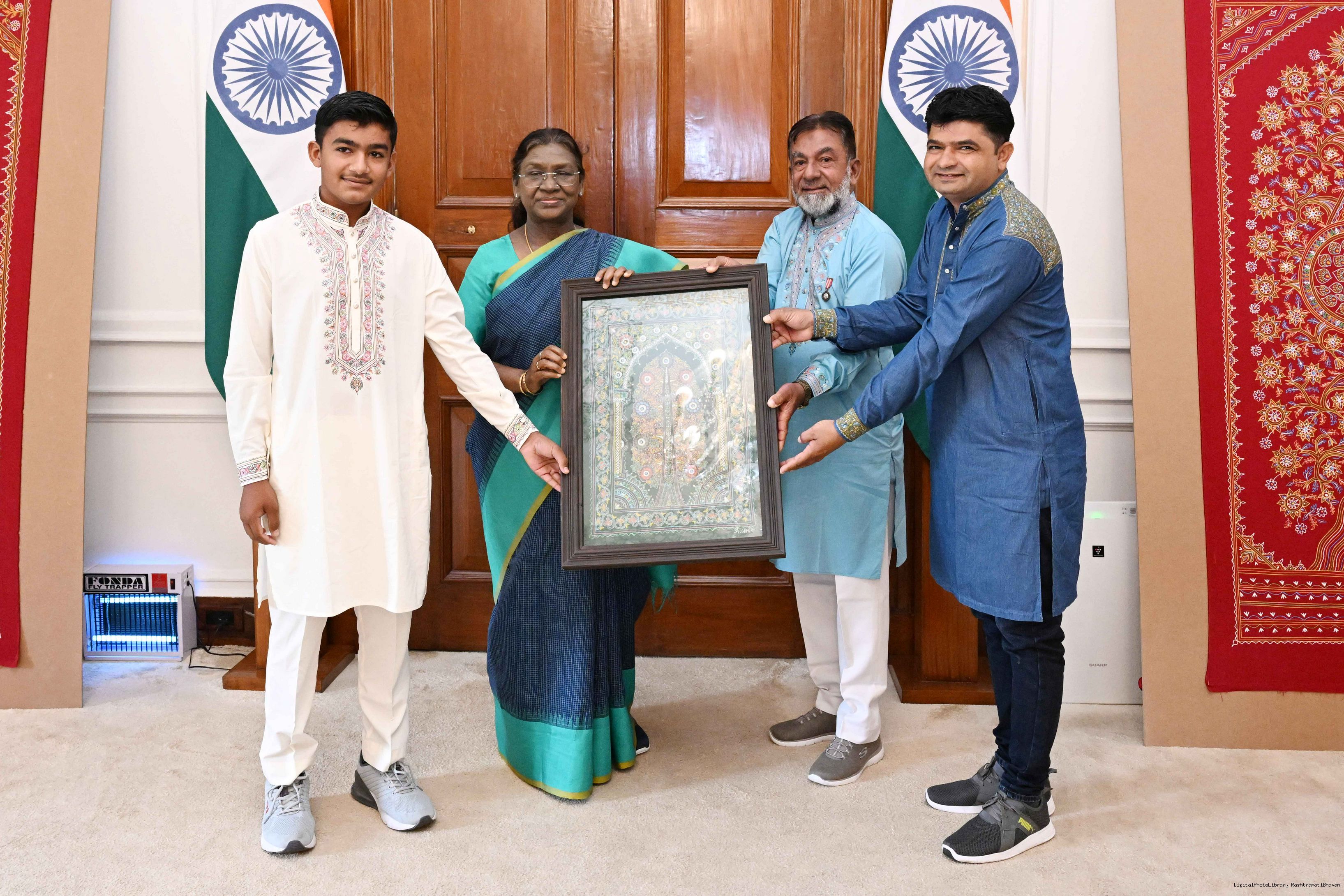 | Caption: | The President of India, Smt Droupadi Murmu interacted and posing a group photograph with participants of the Artists in Residence programme for Rogan Art at Rashtrapati Bhavan on October 16, 2025. |