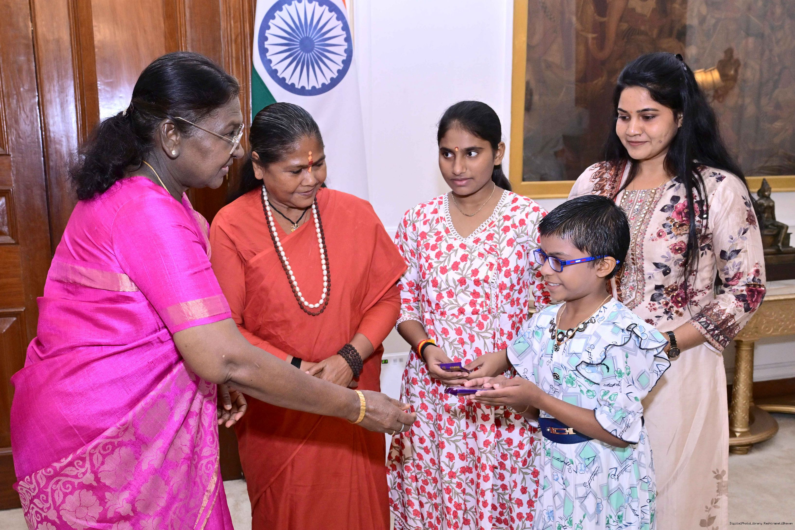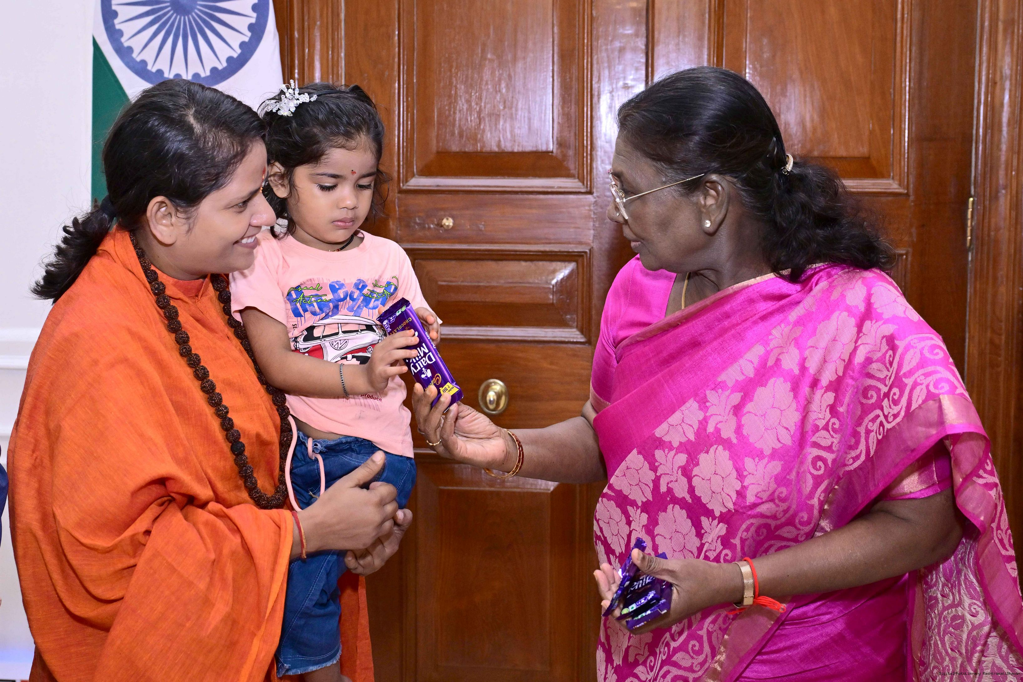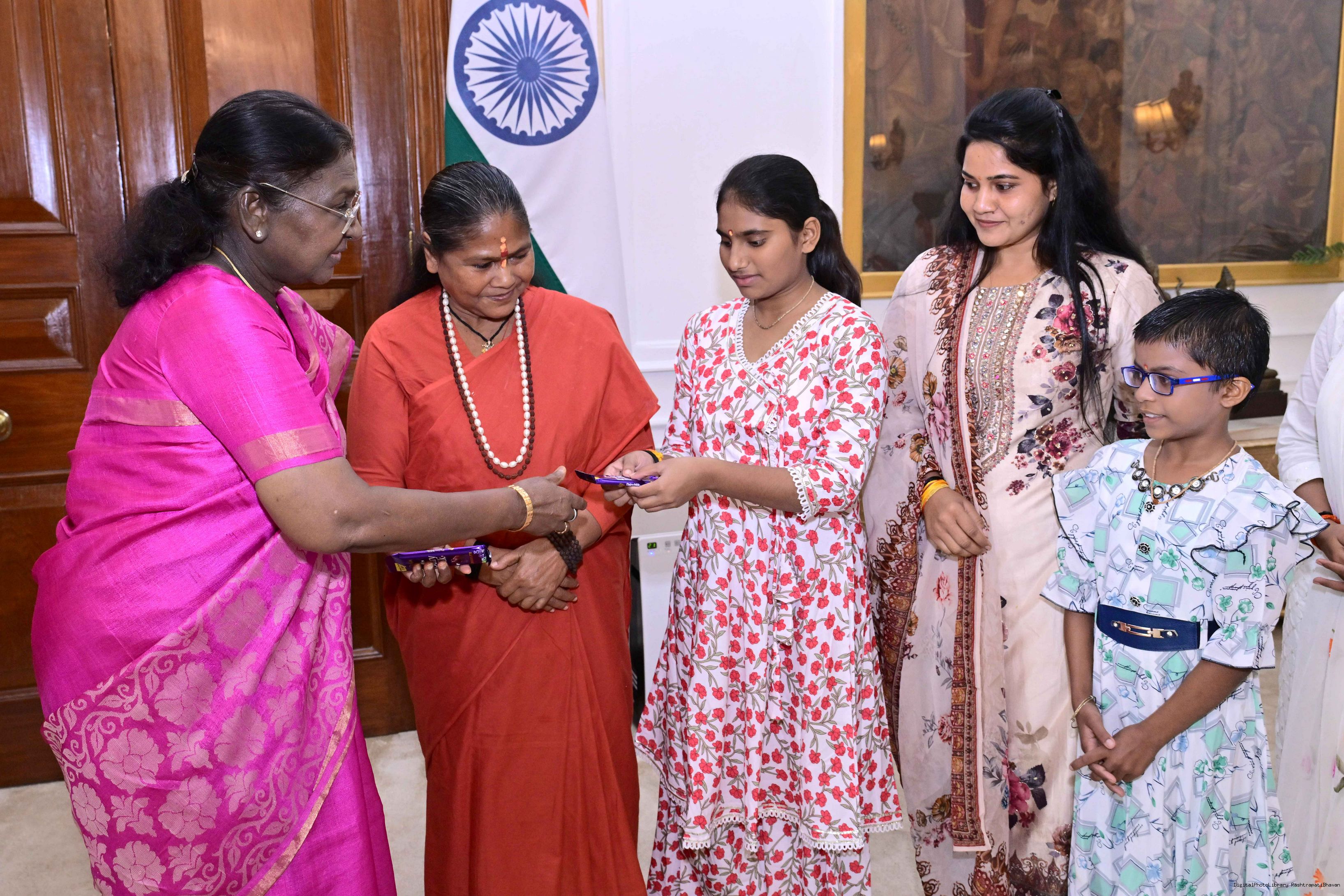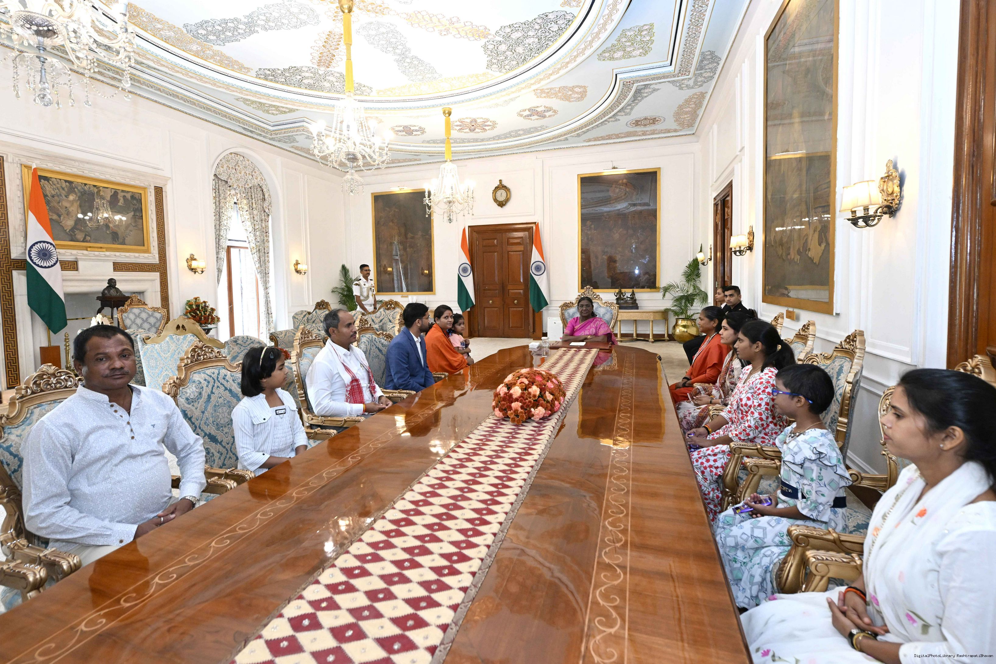 | Caption: | Sadhvi Niranjan Jyoti, Former MoS for Consumer Affairs, Food Public Distribution along with Shri Rajendra Nishad and others meeting with the President of India, Smt. Droupadi Murmu at Rashtrapati Bhavan on October 17, 2025. |