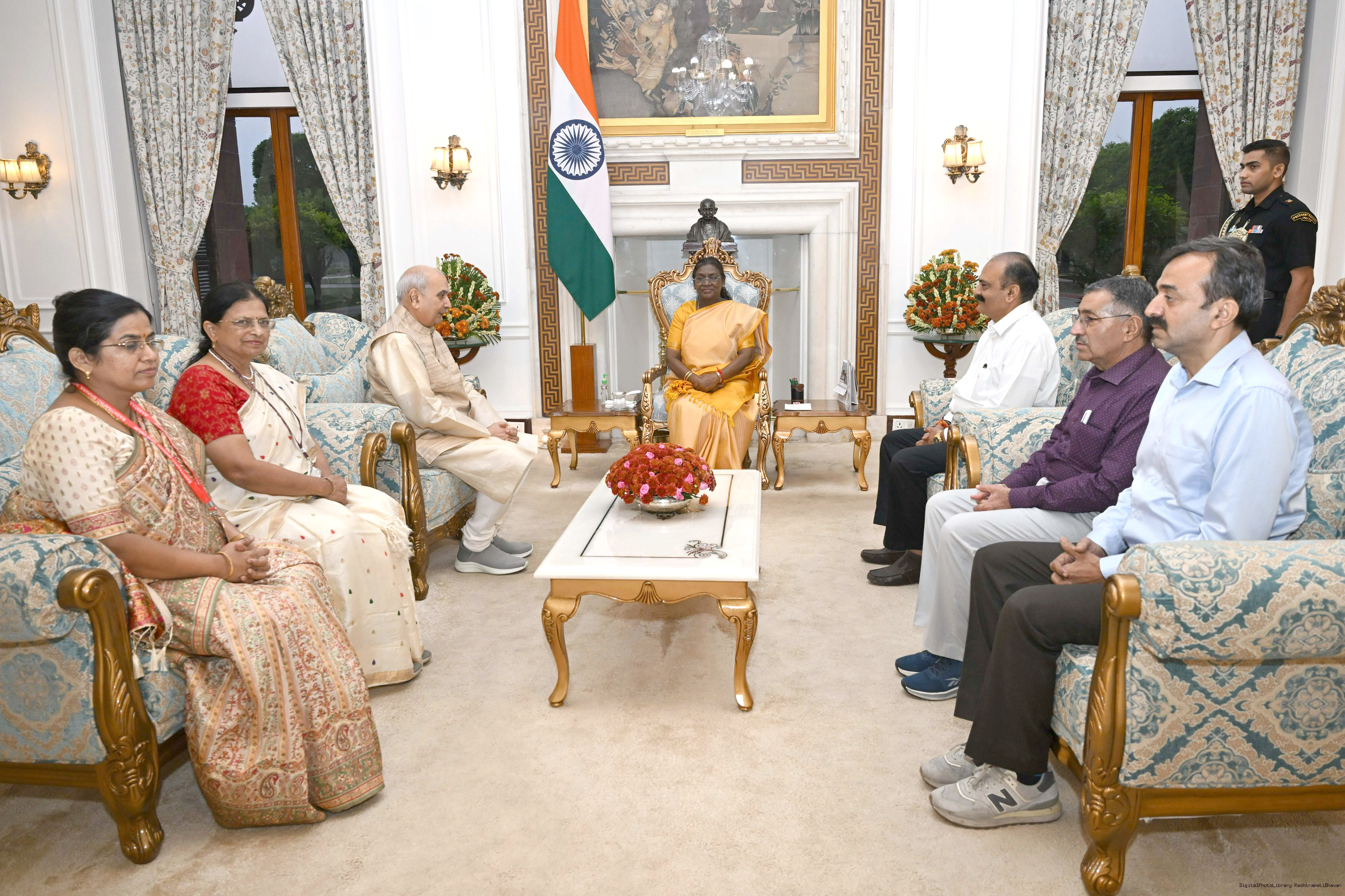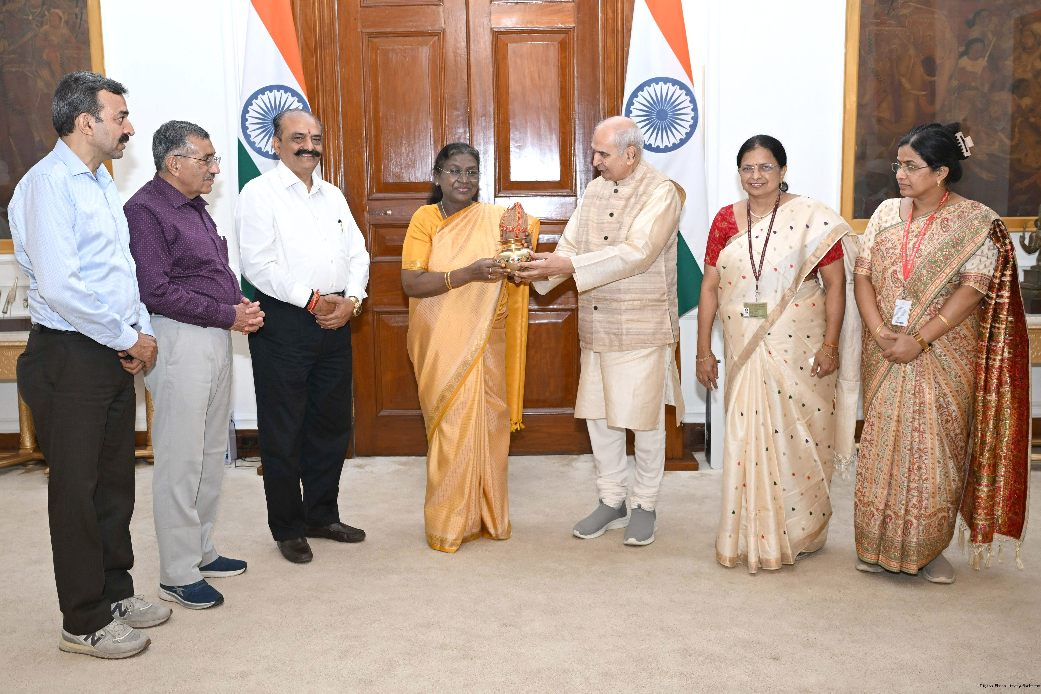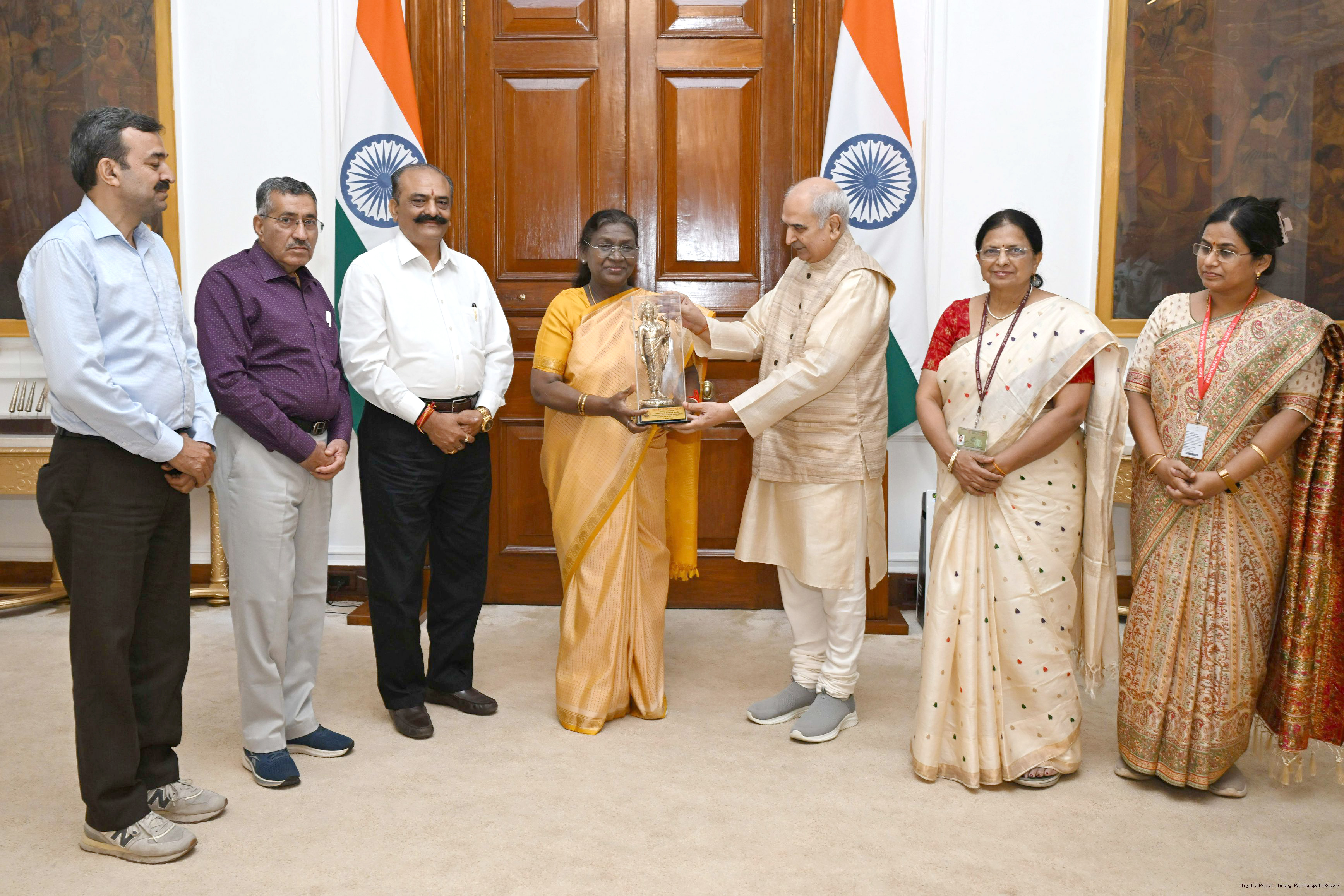 | Caption: | Vaidya Devendra Triguna, Padam Shri Padma Bhushan President Governing Body along with Prof. (Vd) Rakesh Sharma and others meeting with the President of India, Smt. Droupadi Murmu at Rashtrapati Bhavan on October 17, 2025. |