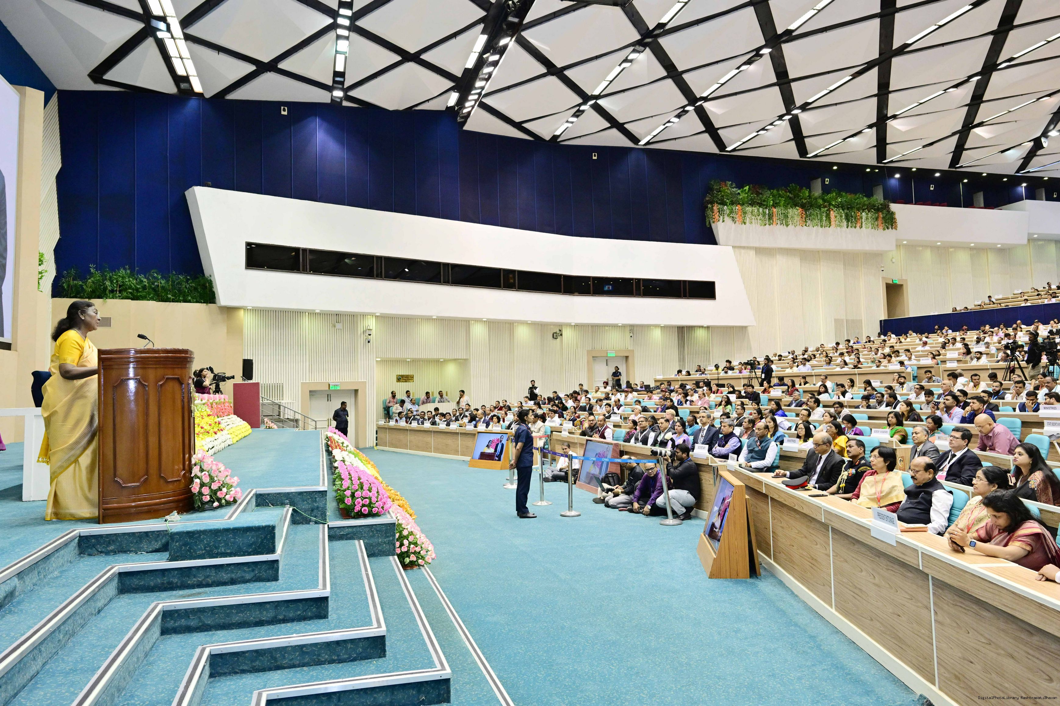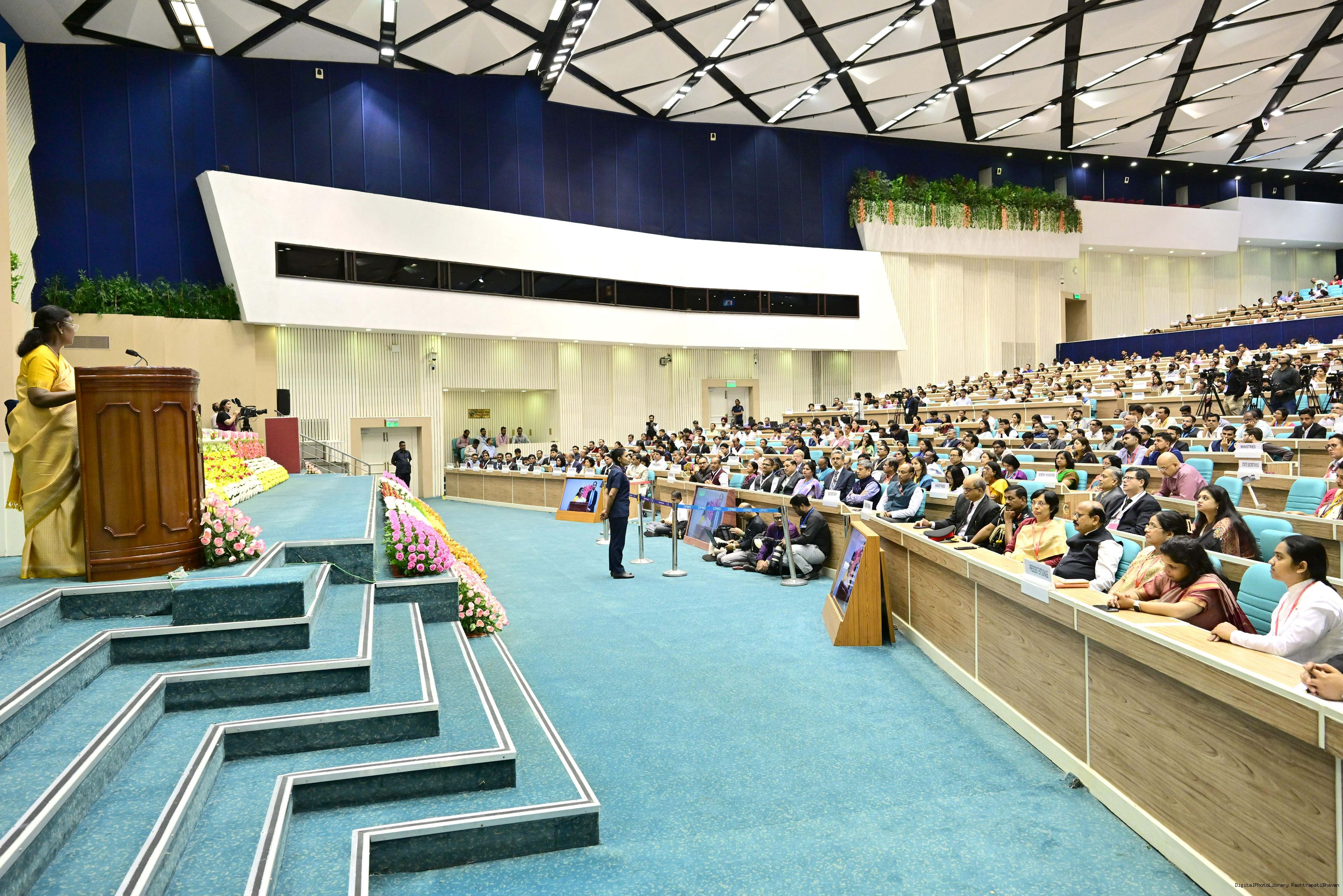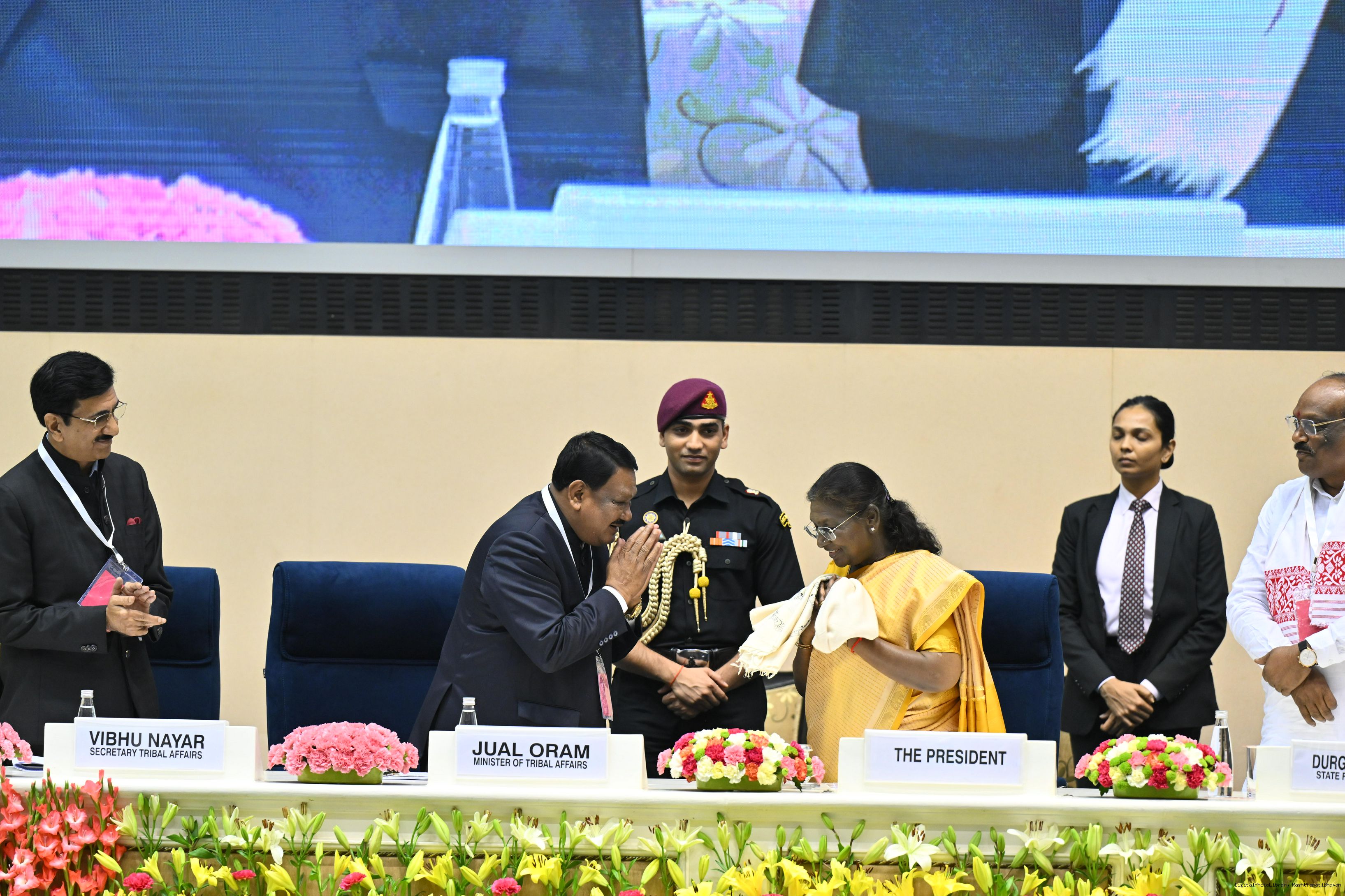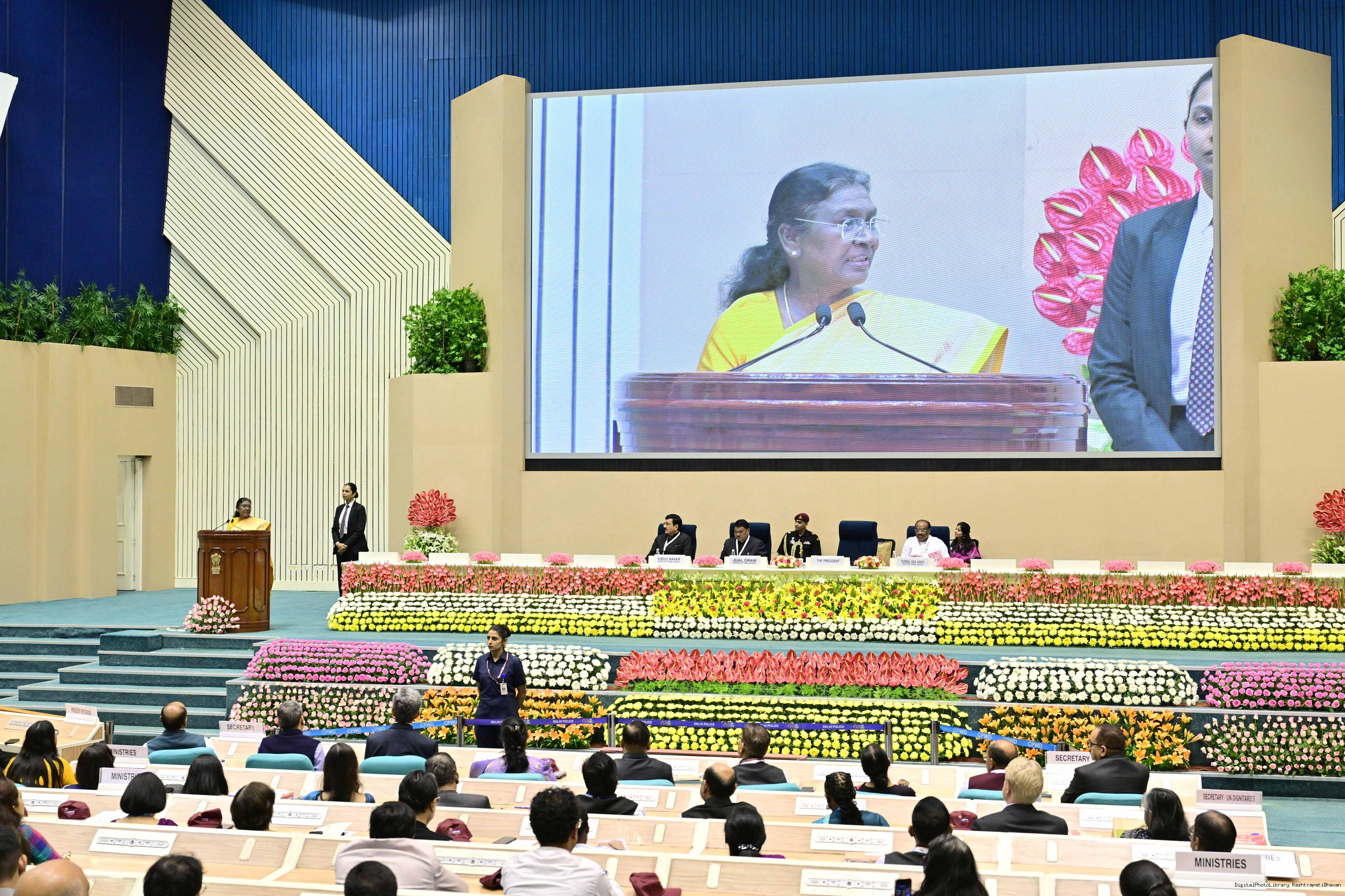 | Caption: | The President of India, Smt. Droupadi Murmu addressed the national conclave on the ‘Adi Karmayogi Abhiyan’ and presented awards to the best-performing states, districts, blocks, and Integrated Tribal Development Agencies at a function held in New Delhi on October 17, 2025. |