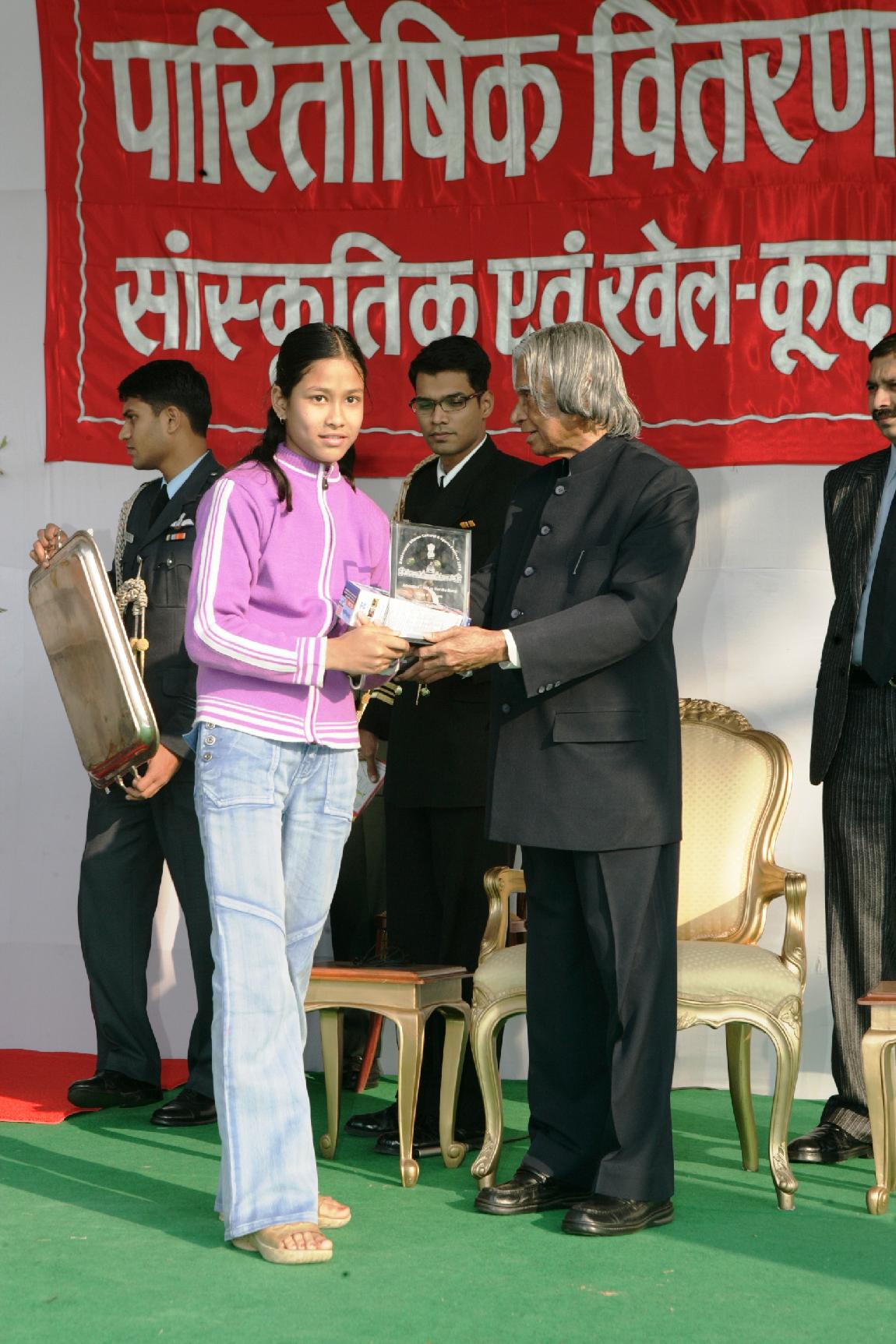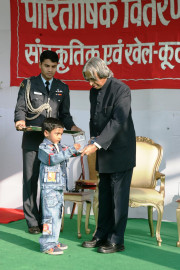 | Caption: | The President of India, Dr A P J Abdul Kalam distributing the Prizes to the Winners of the Cultural and Sports Events, 2006 at Paly Ground near Kalyan Kendra of Rashtrapati Bhavan in New Delhi on Dec 30, 2006 |